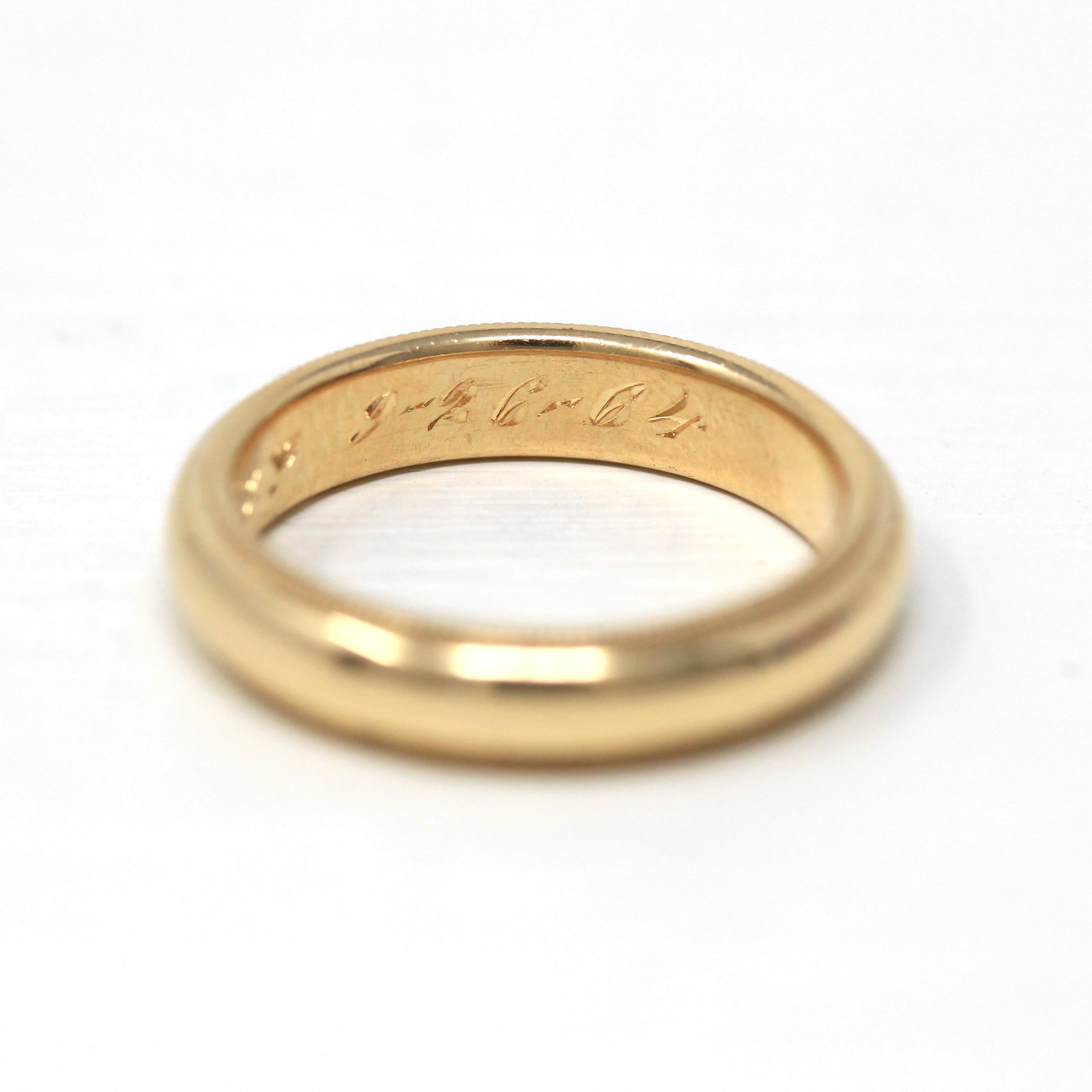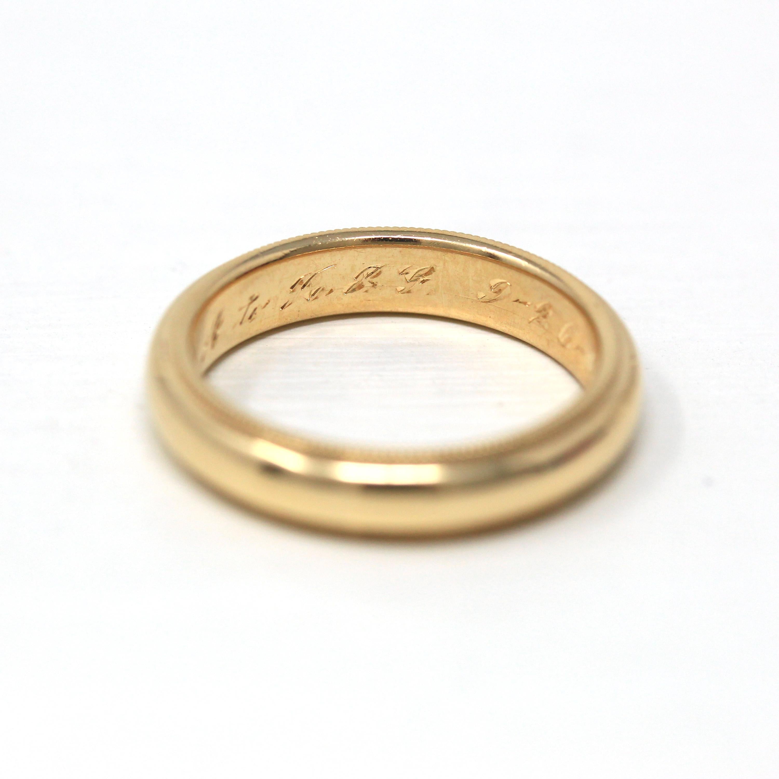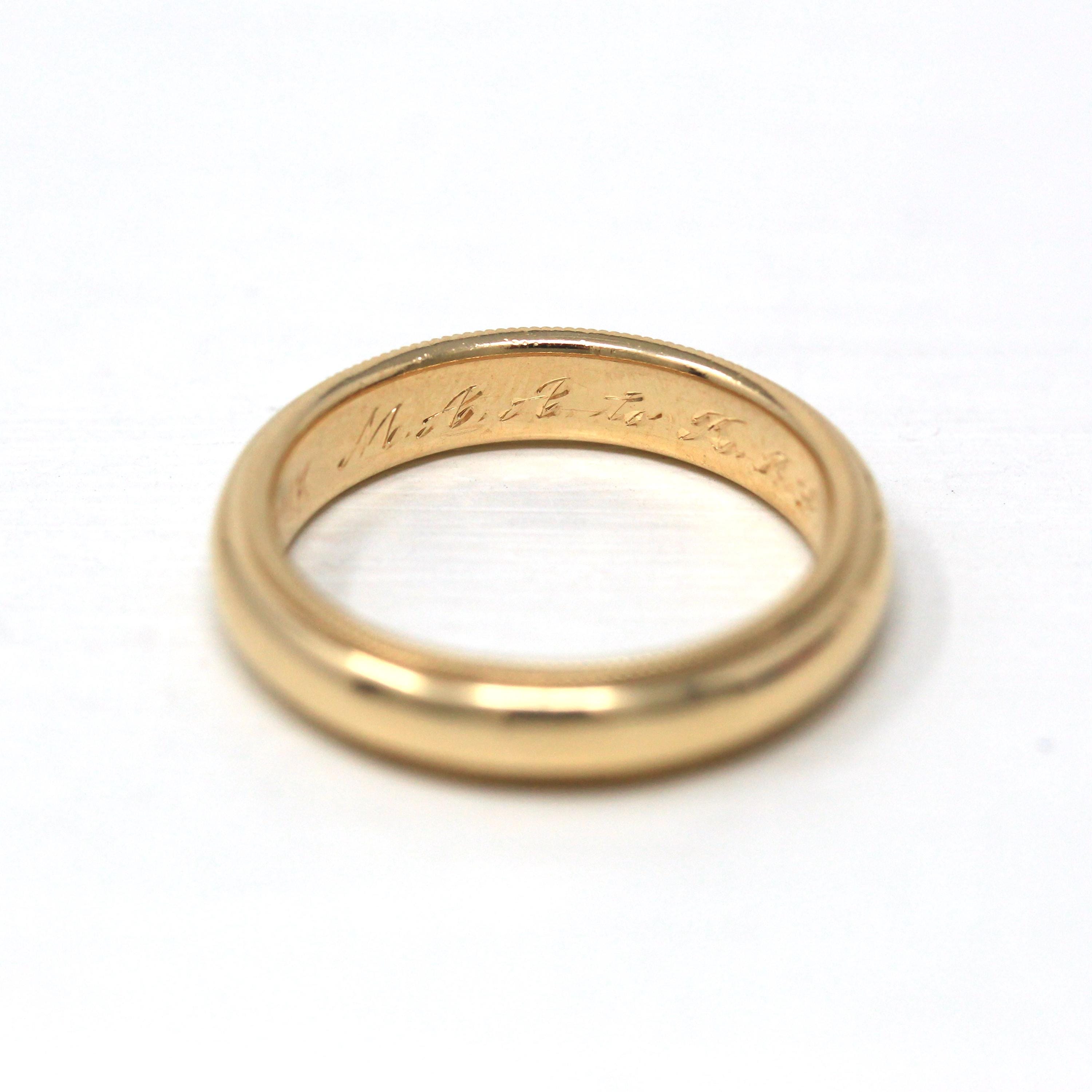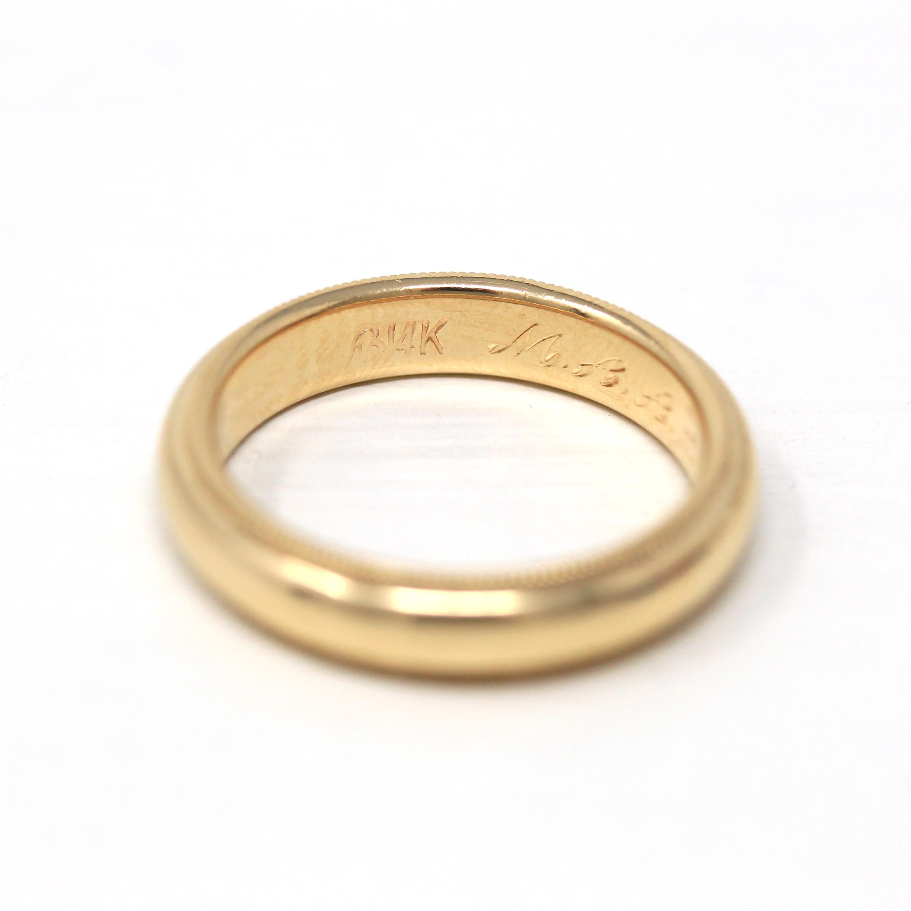 Vintage Wedding Band - Mid Century 14k White Gold Milgrain Plain Stacking Ring with Inscription - Dated 1954 Size 5 1/2 Fine Bridal Jewelry
