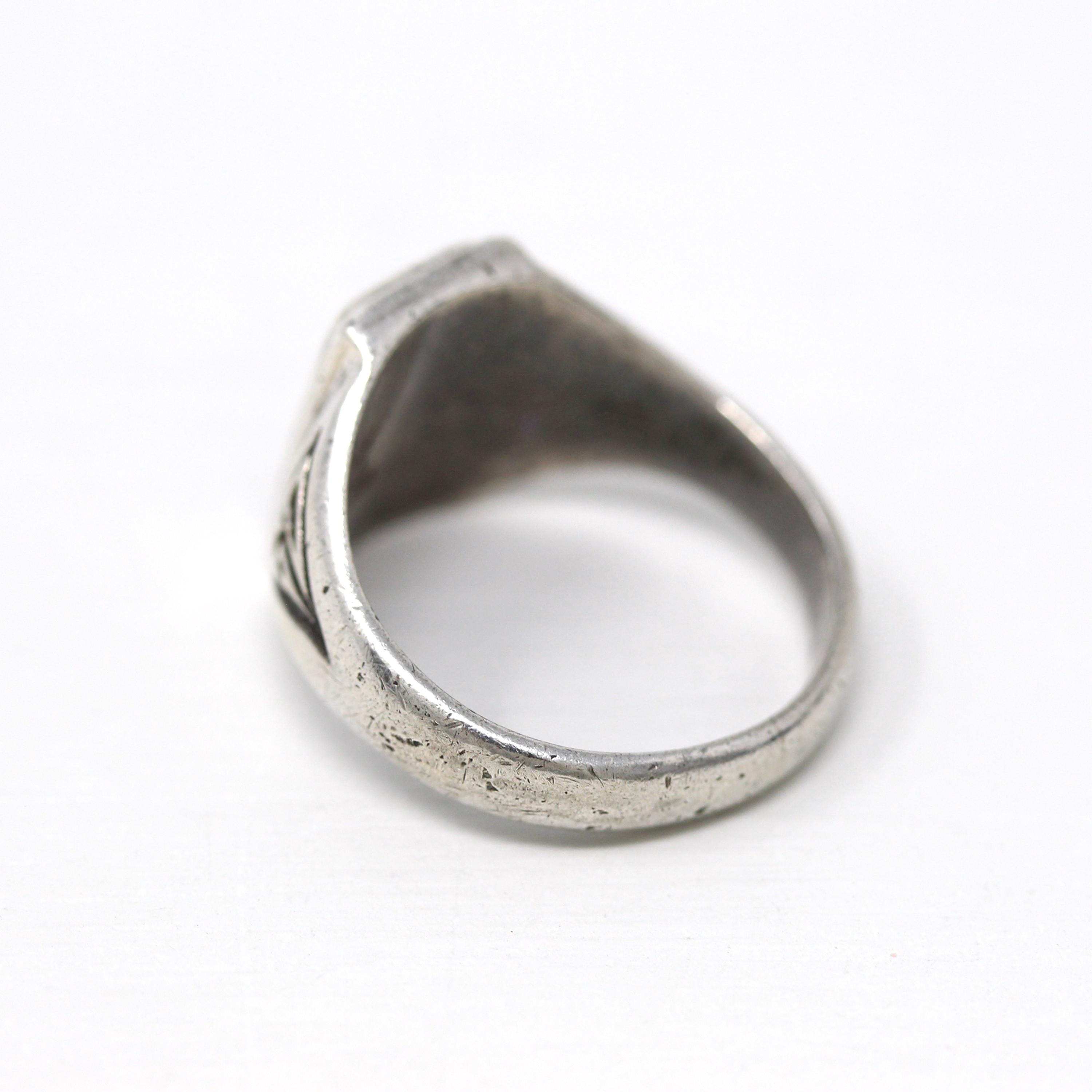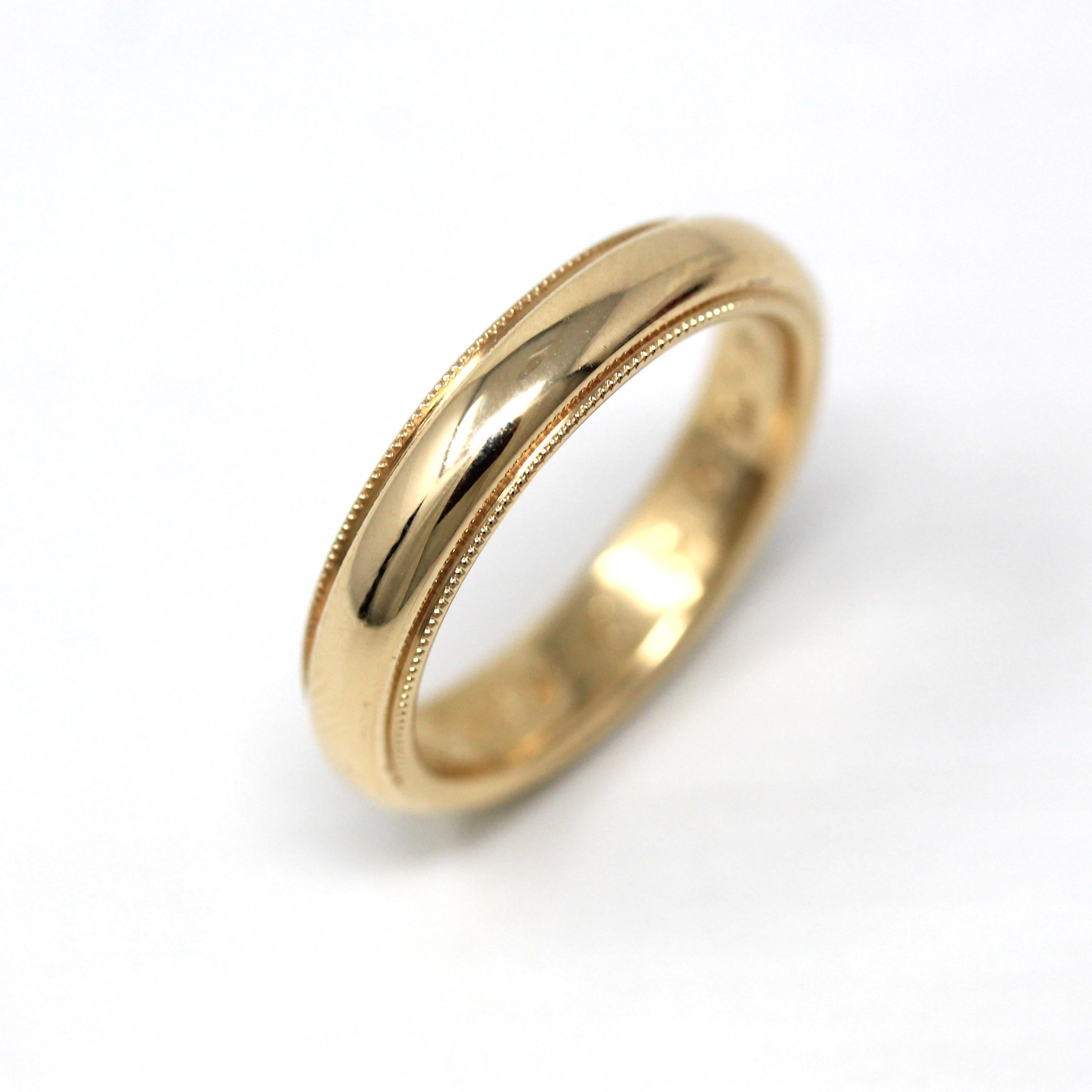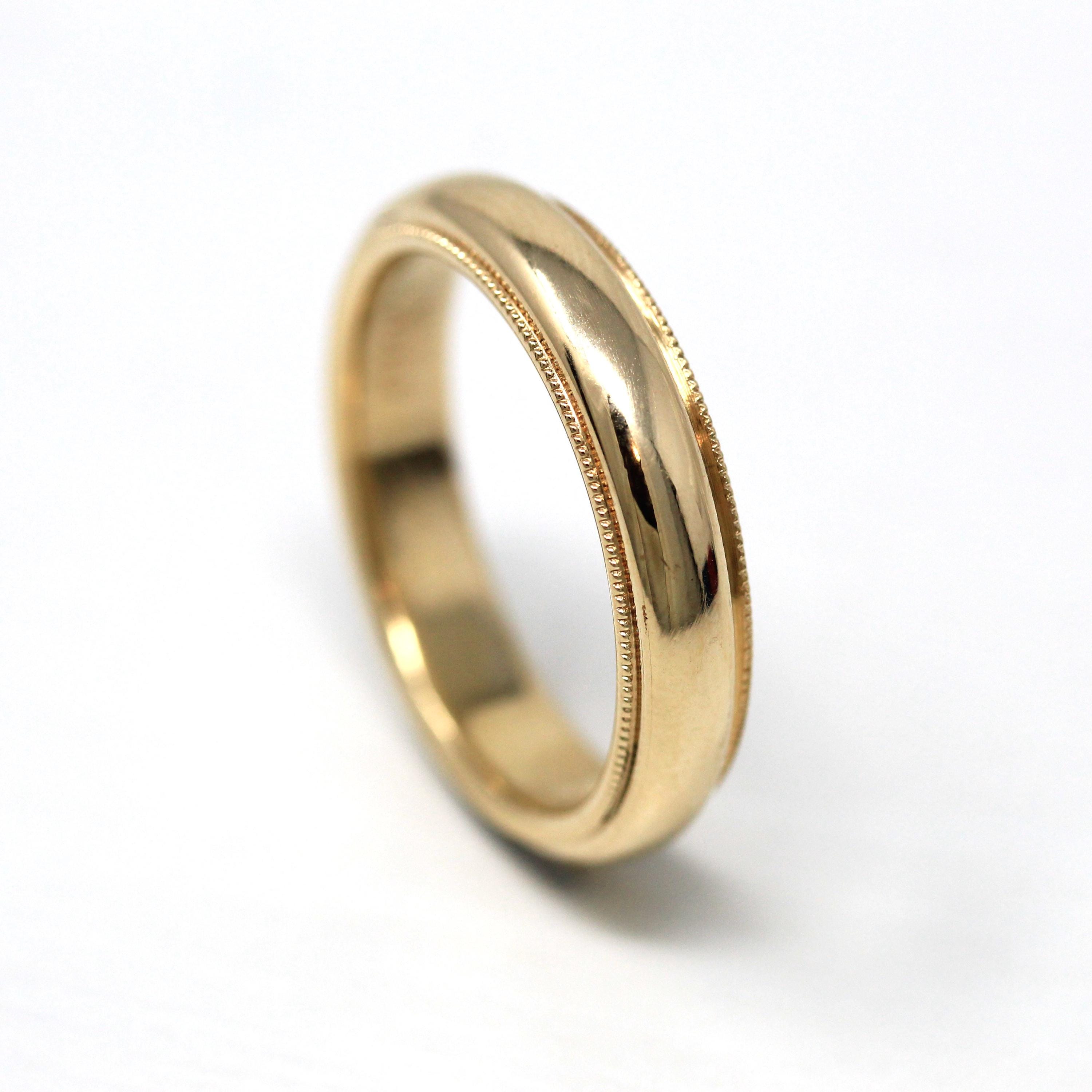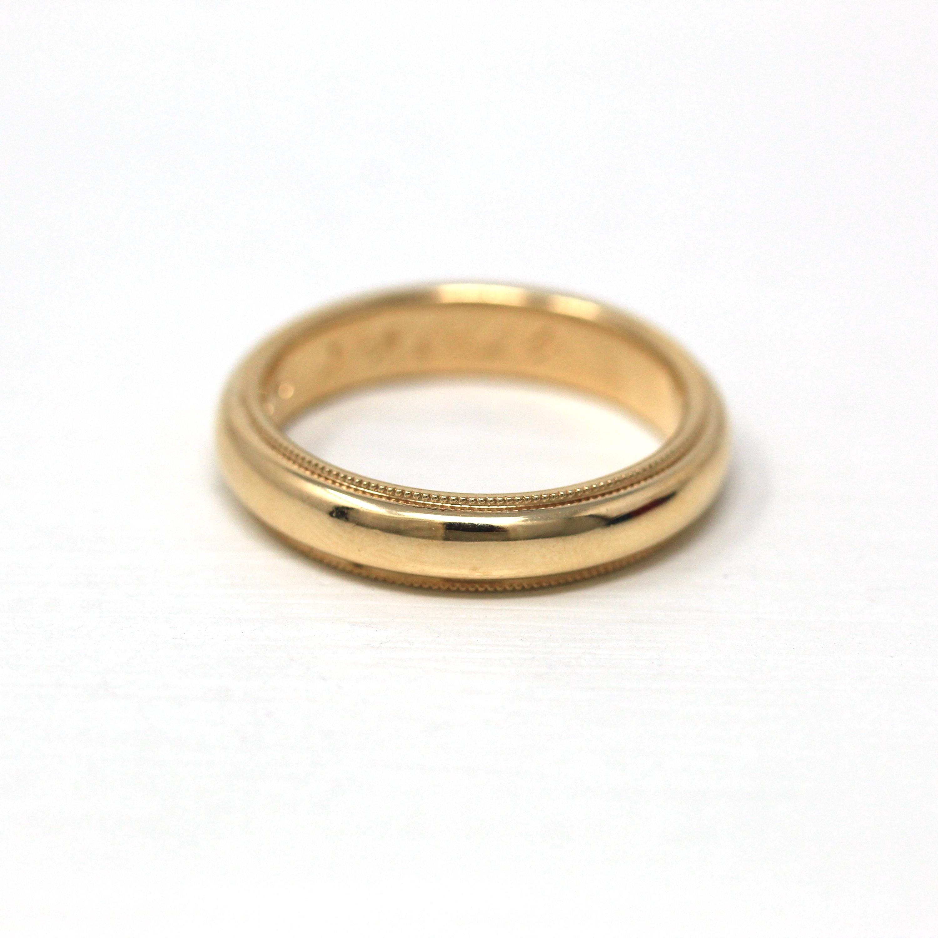 Vintage Wedding Band - Mid Century 14k White Gold Milgrain Plain Stacking Ring with Inscription - Dated 1954 Size 5 1/2 Fine Bridal Jewelry