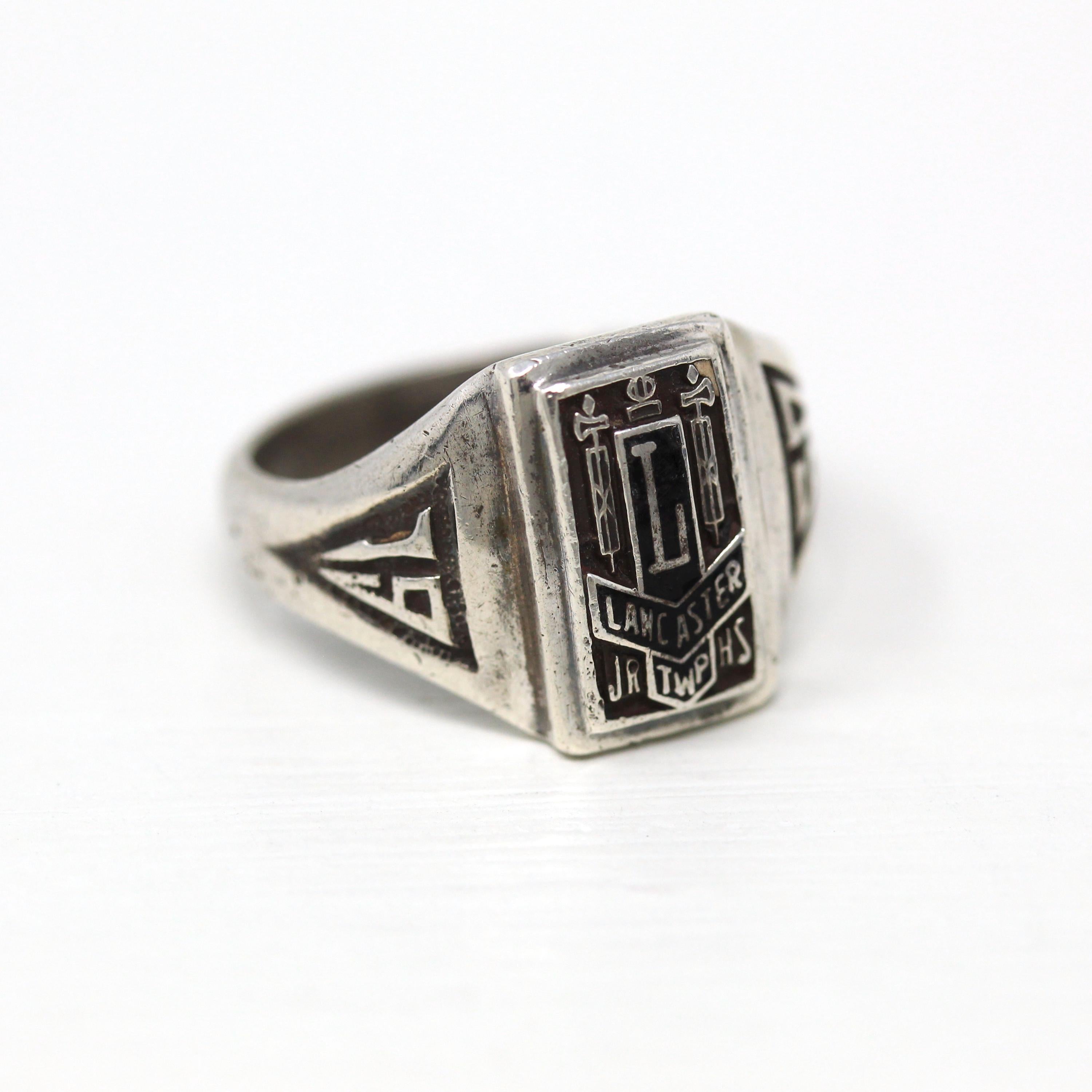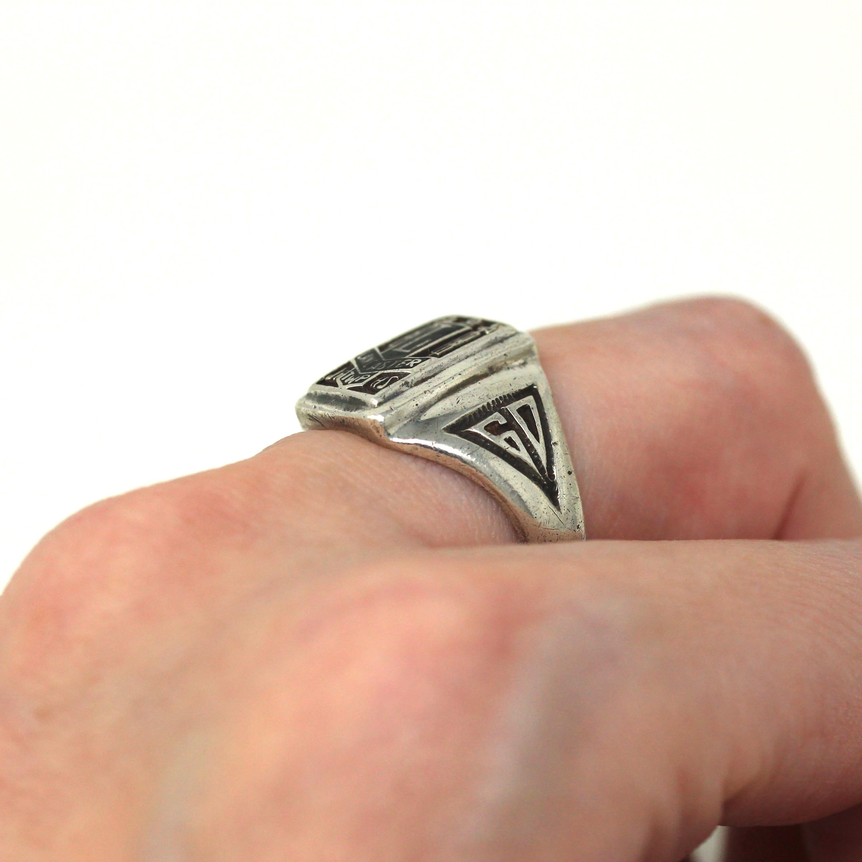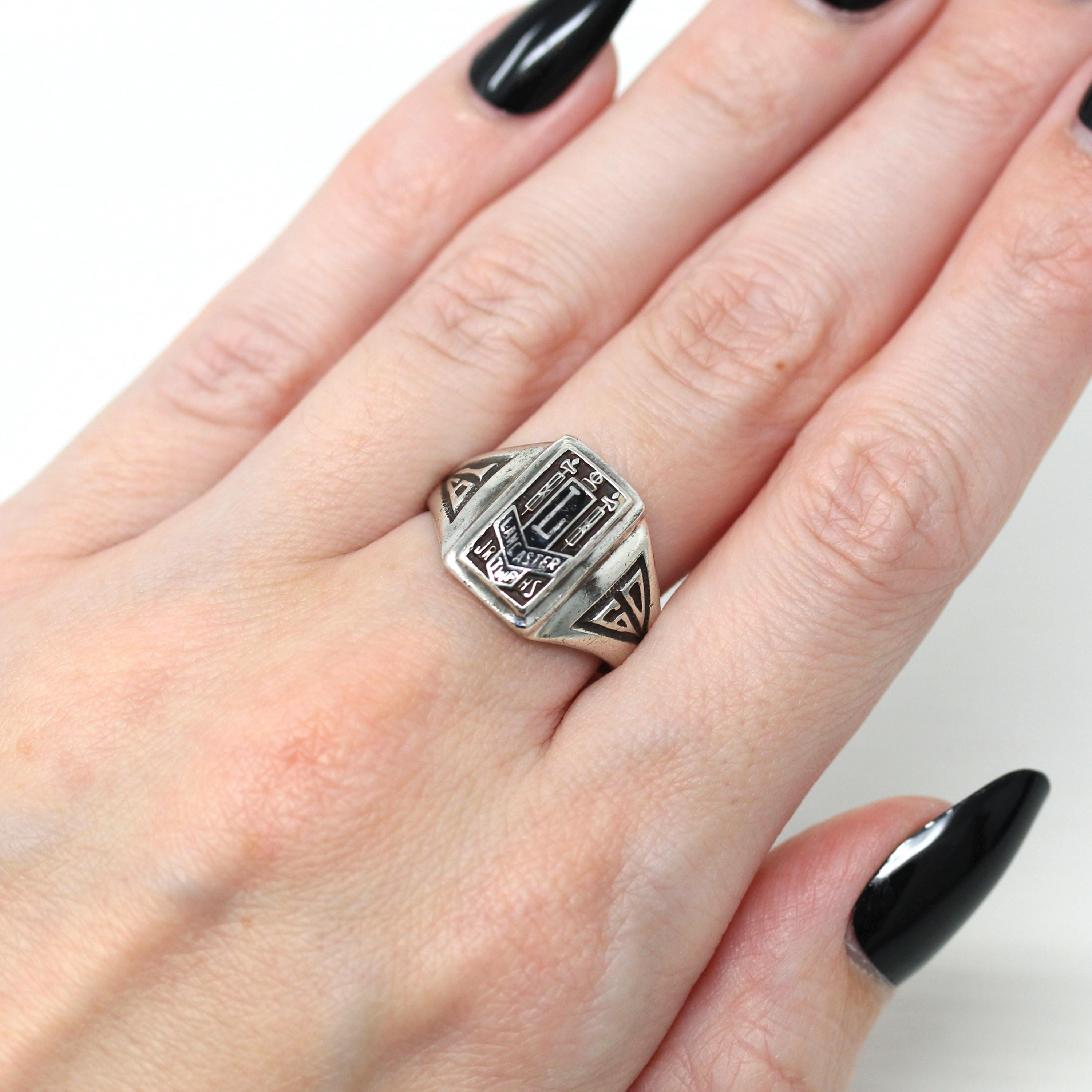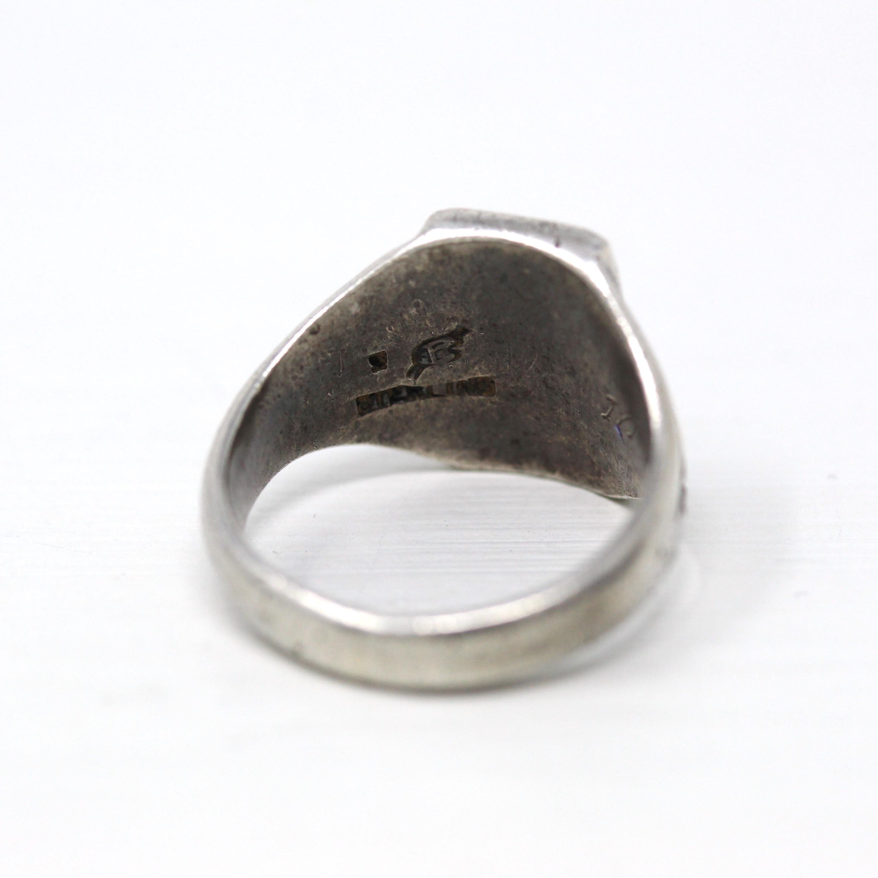 Vintage Wedding Band - Mid Century 14k White Gold Milgrain Plain Stacking Ring with Inscription - Dated 1954 Size 5 1/2 Fine Bridal Jewelry