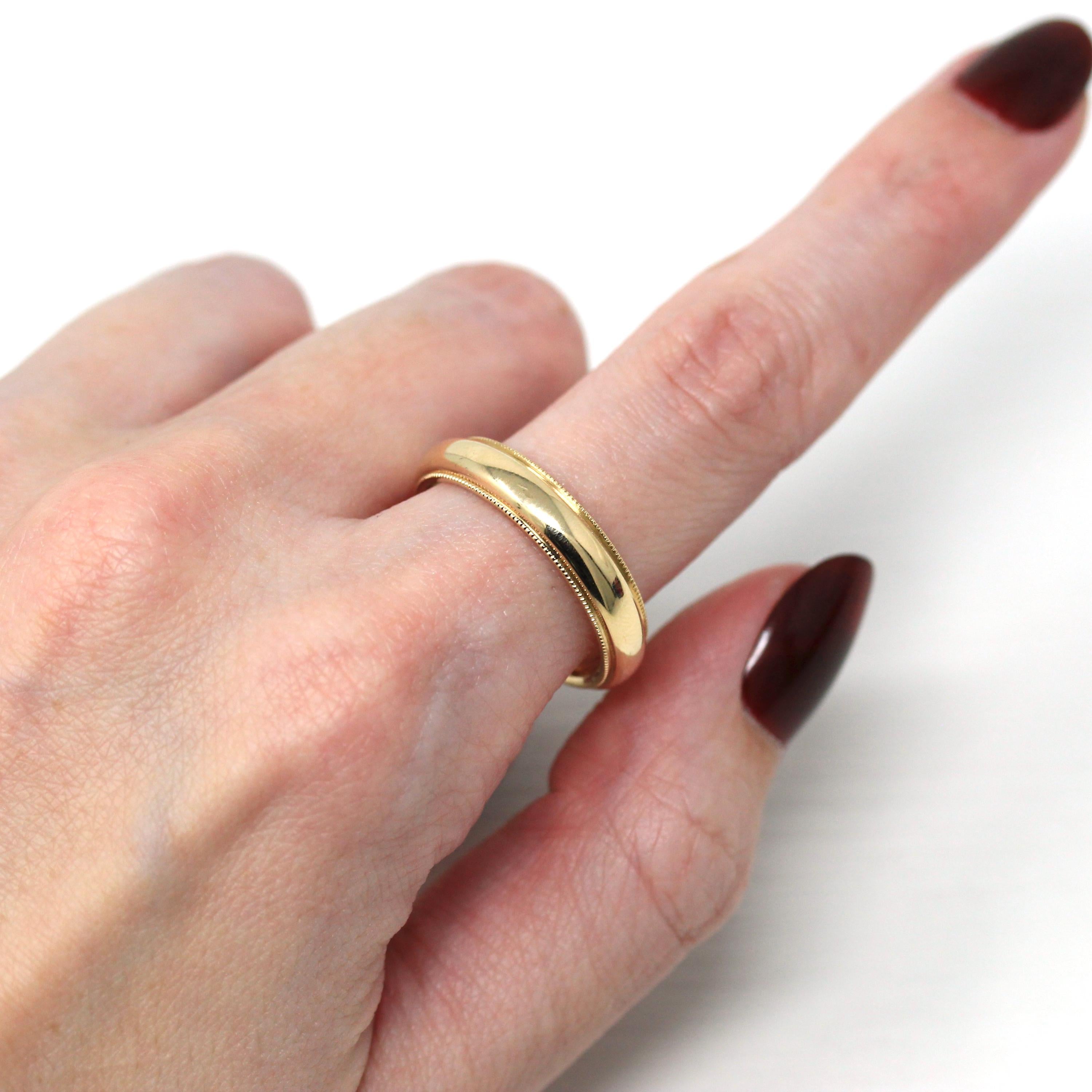 Retro Wedding Band -Vintage 14k Yellow Gold Plain Circa 1940s Ring - Size 6 Signed Art Carved J.R. Wood Bridal Stacking Fine 40s Era Jewelry