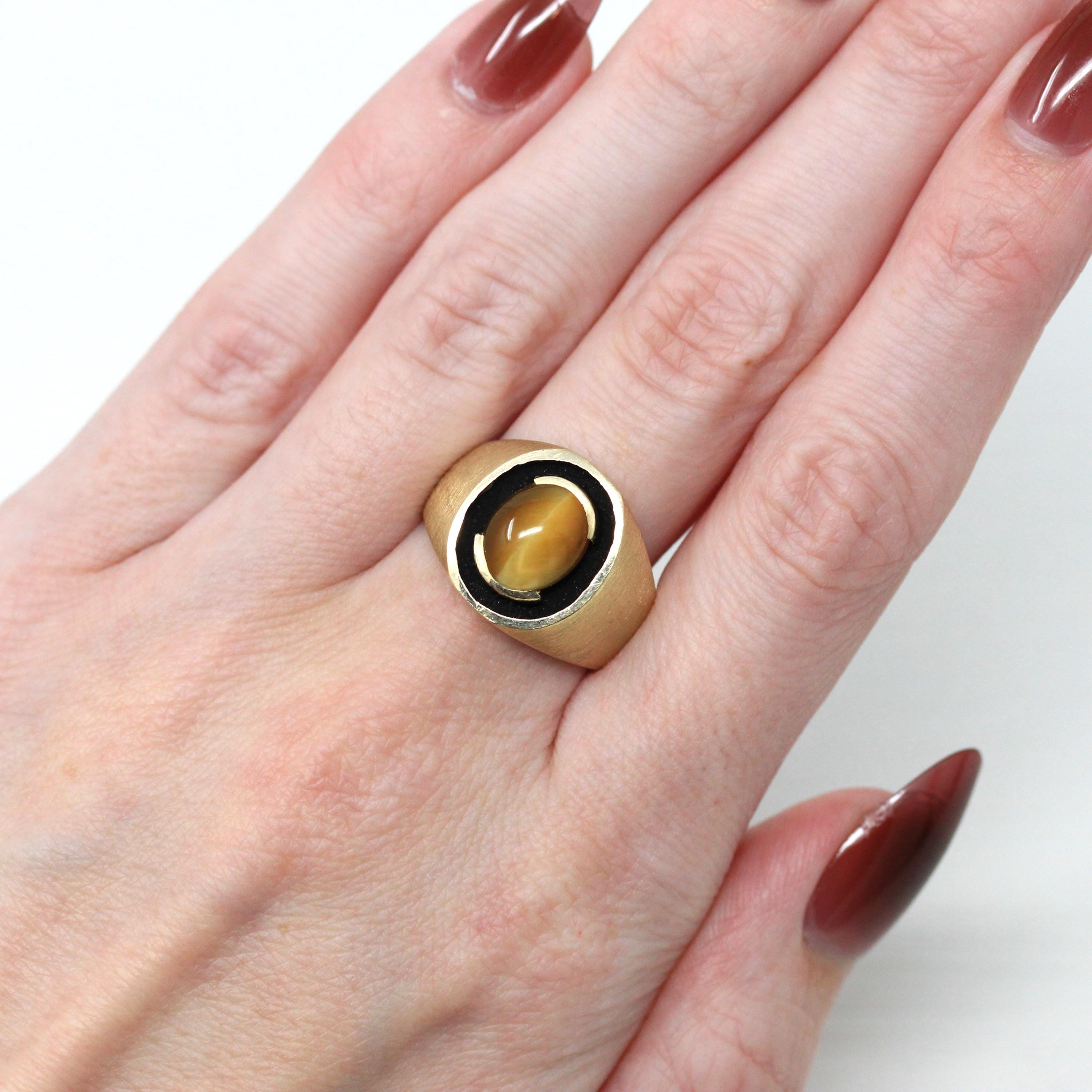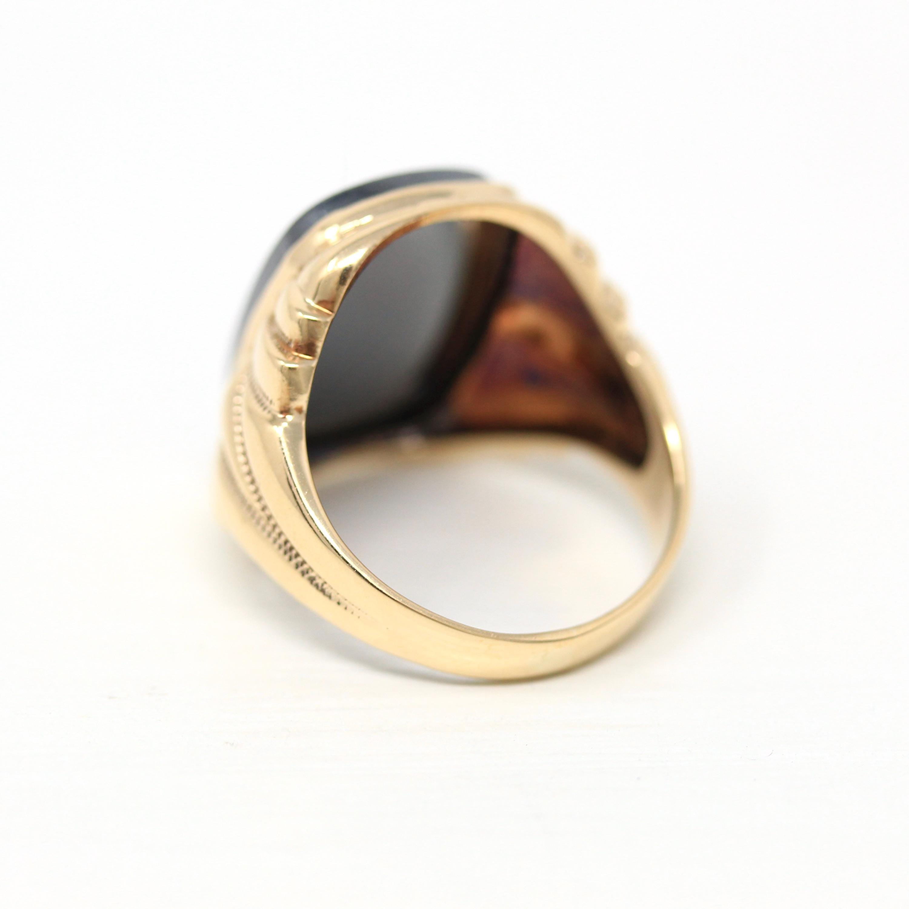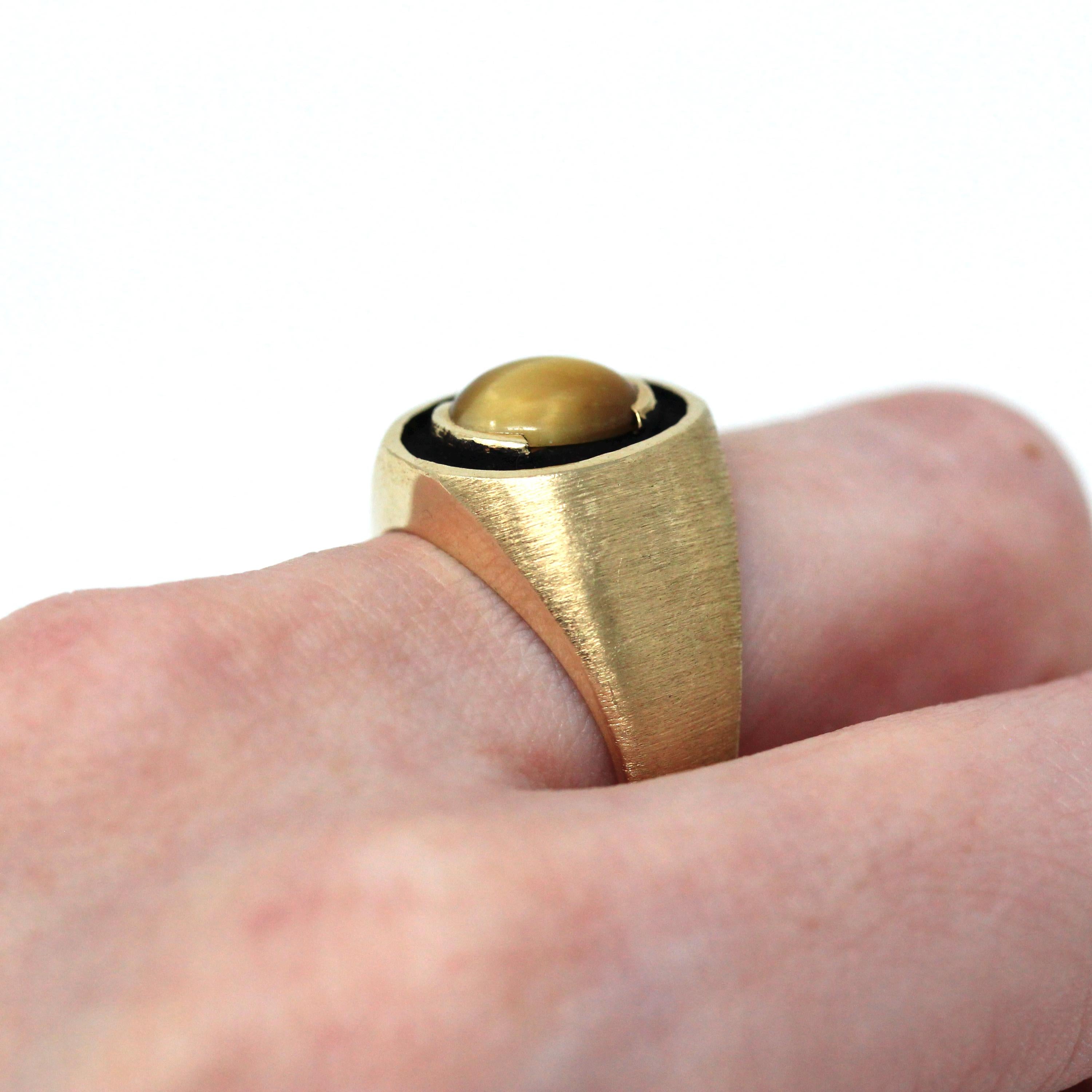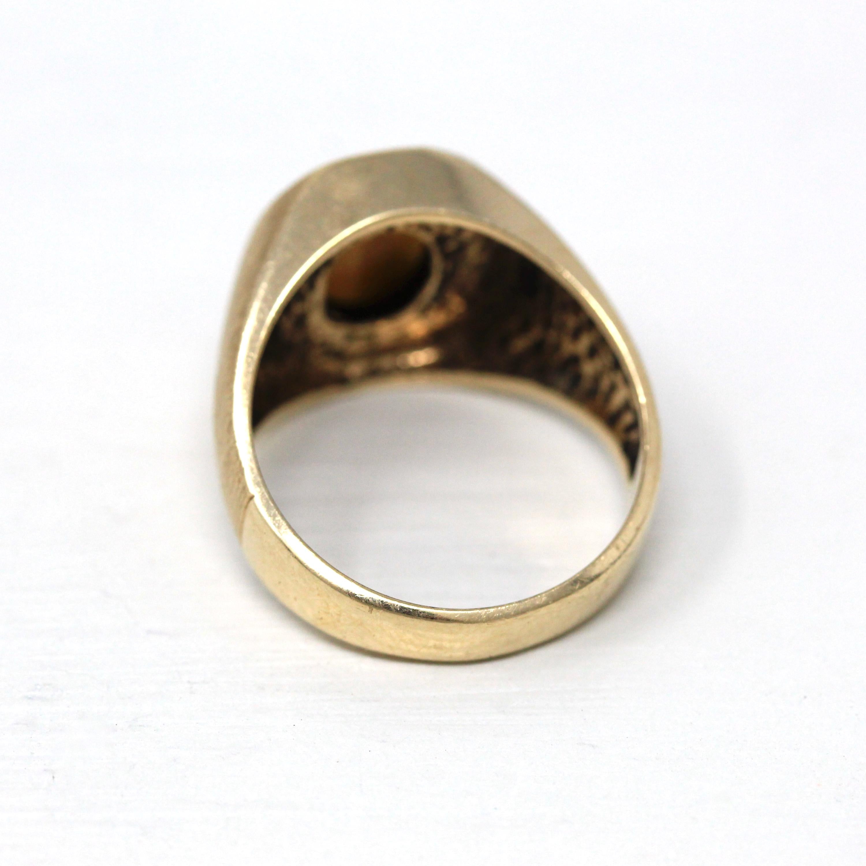 Vintage Onyx Ring - Retro 8k 333 Yellow Gold Oval Black Chalcedony Natural Gemstone - Circa 1970s Era Size 6 Statement Fine 70s Jewelry