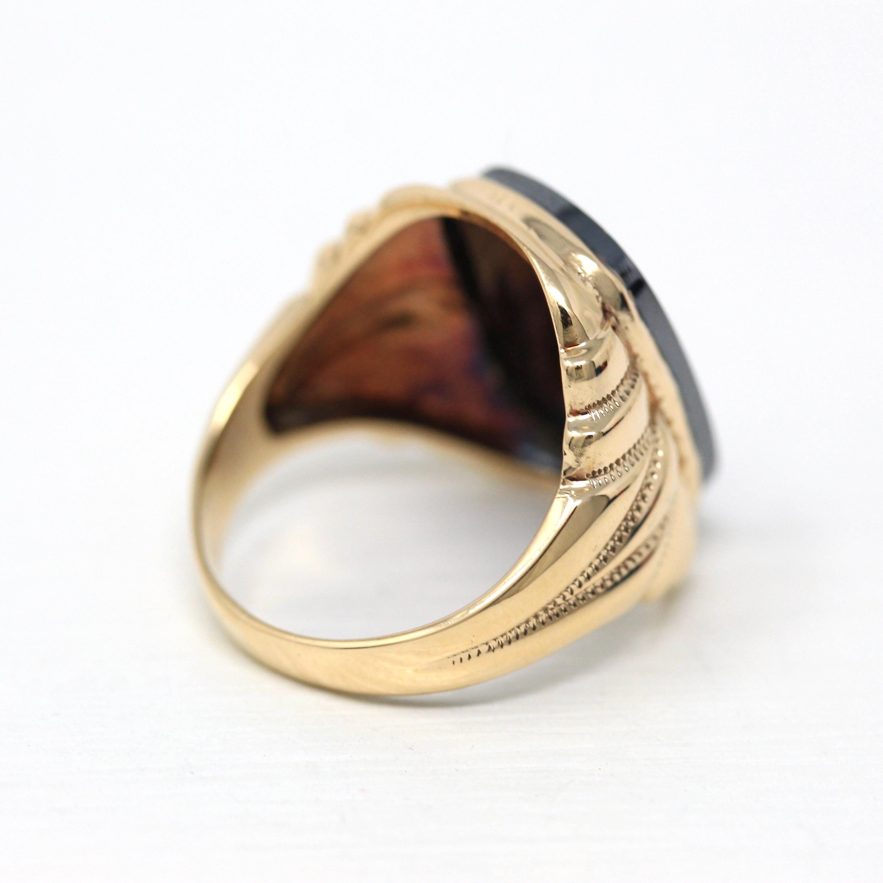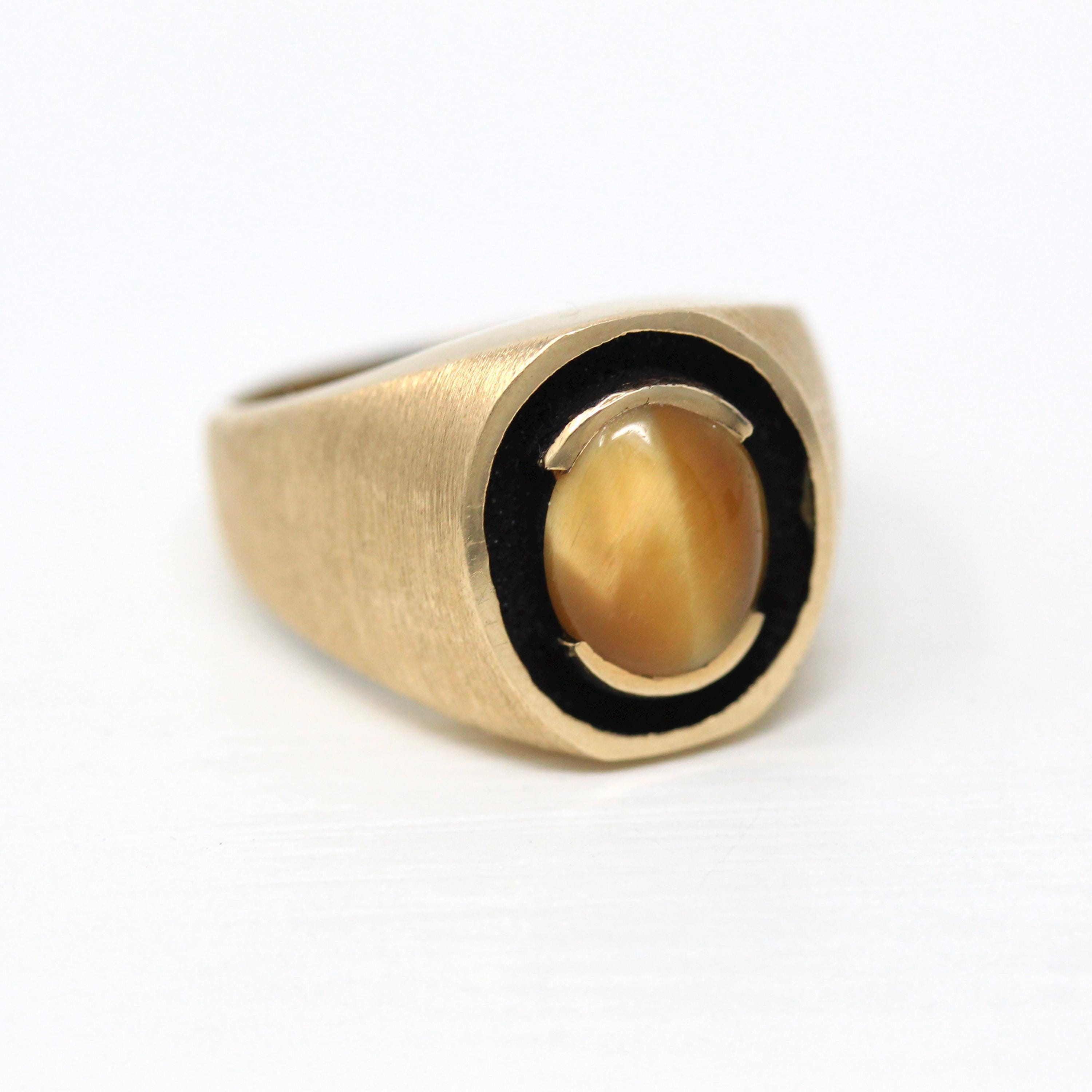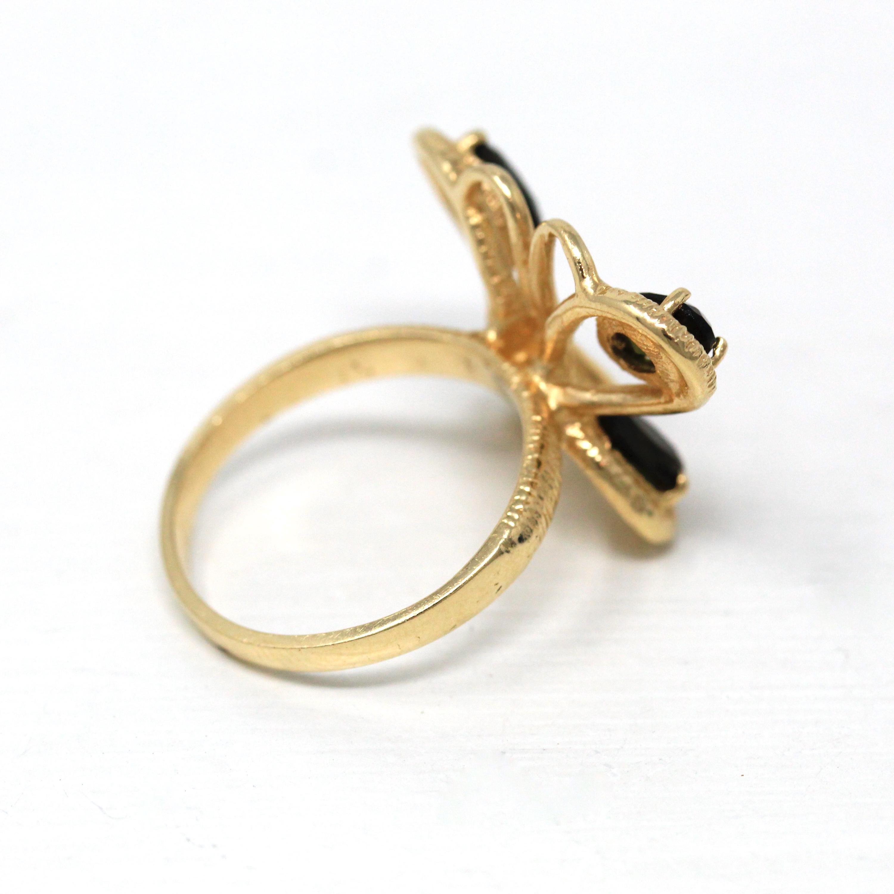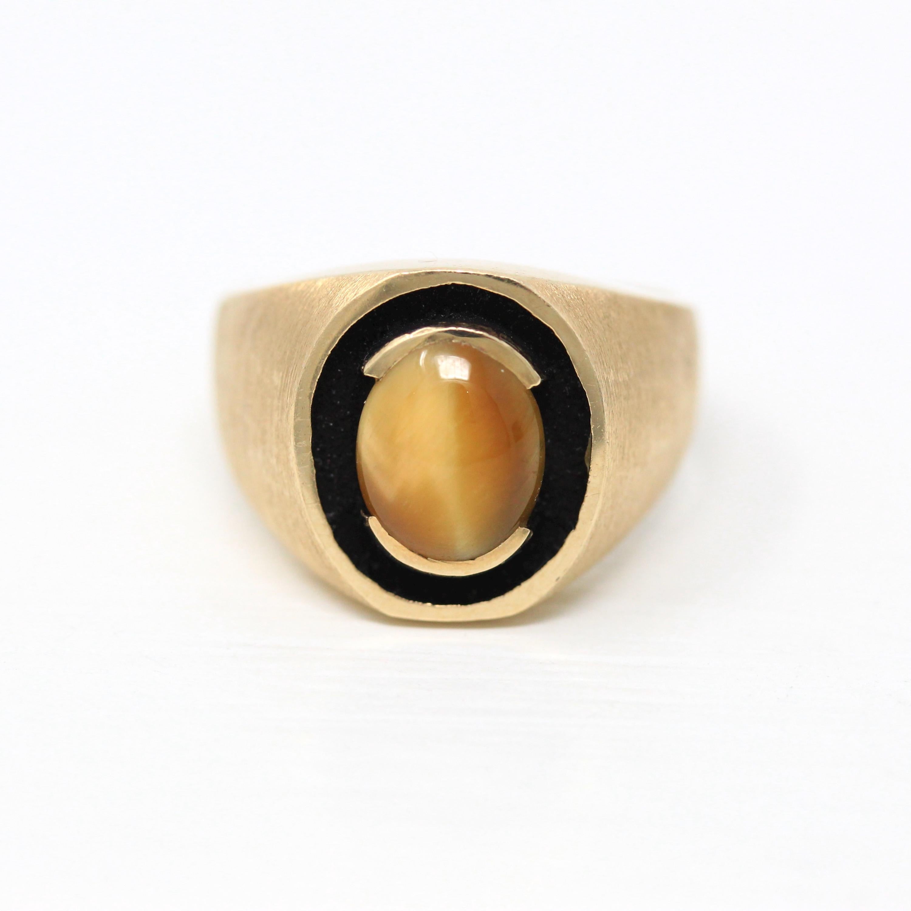 Vintage Onyx Ring - Retro 8k 333 Yellow Gold Oval Black Chalcedony Natural Gemstone - Circa 1970s Era Size 6 Statement Fine 70s Jewelry