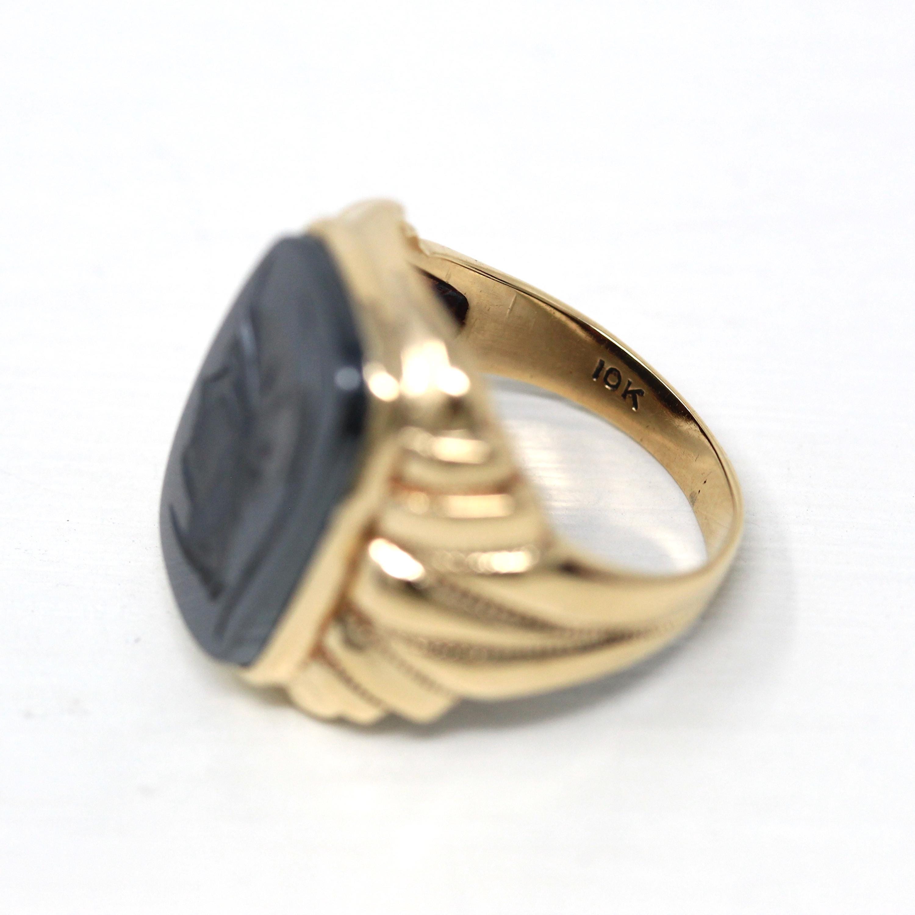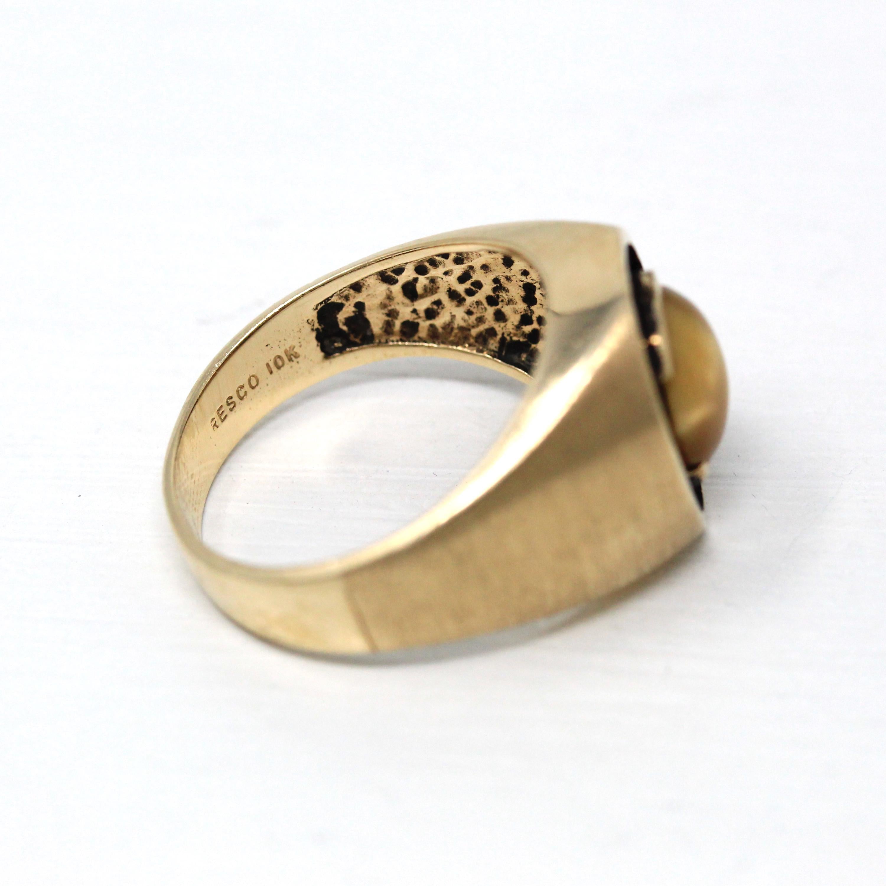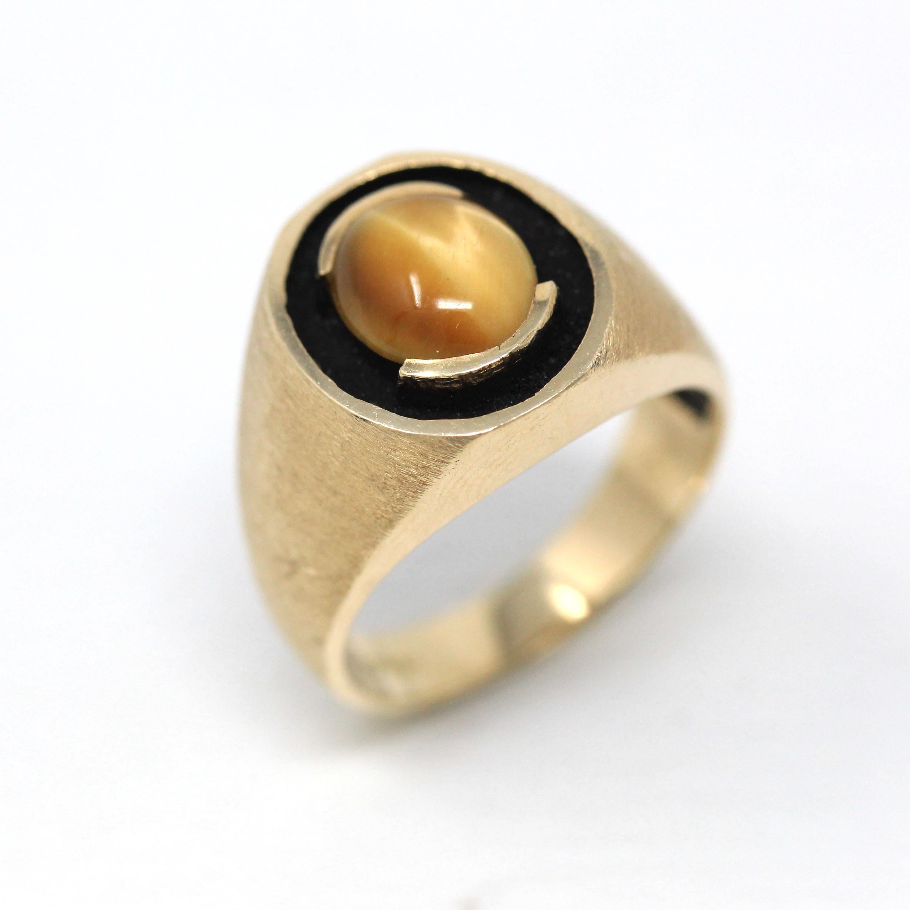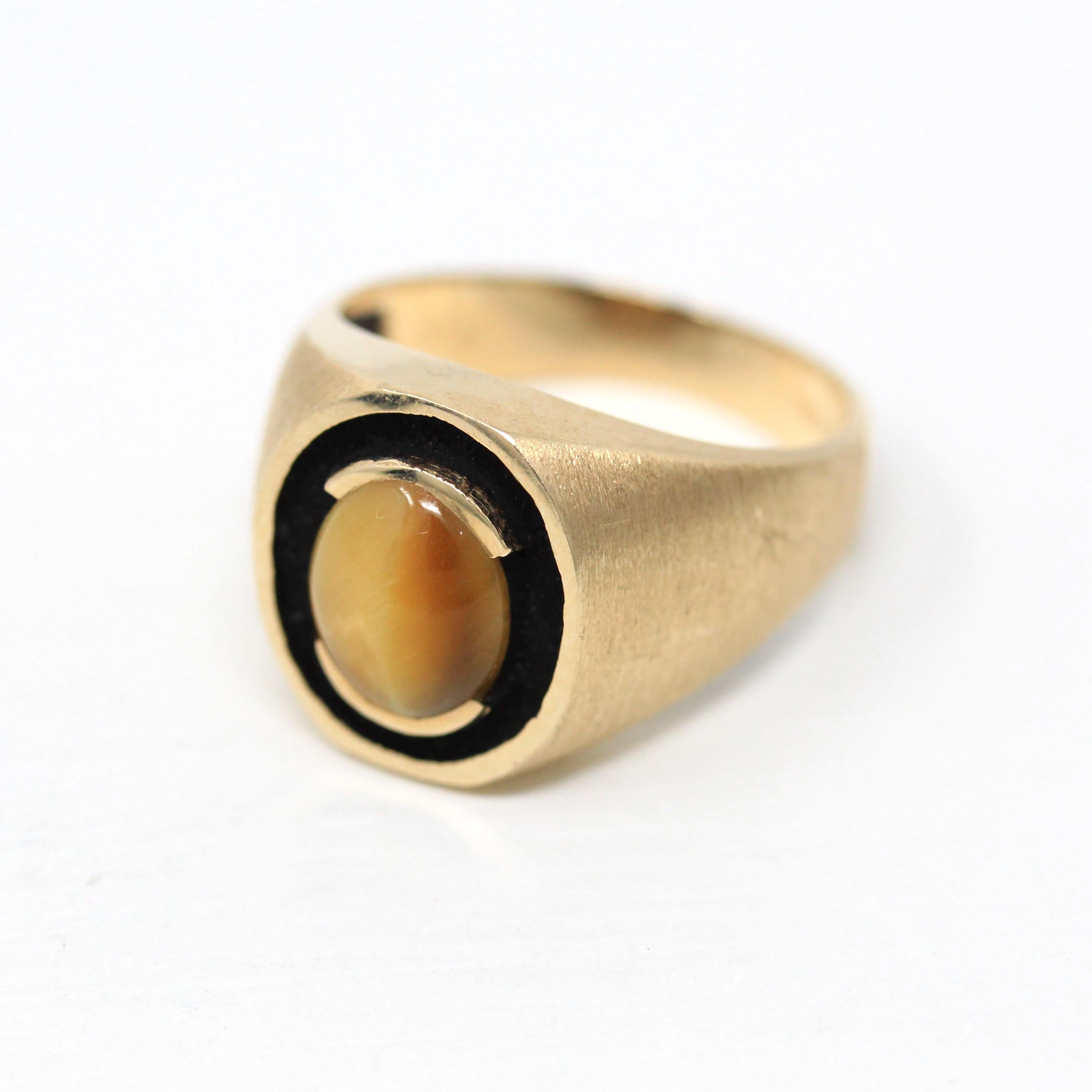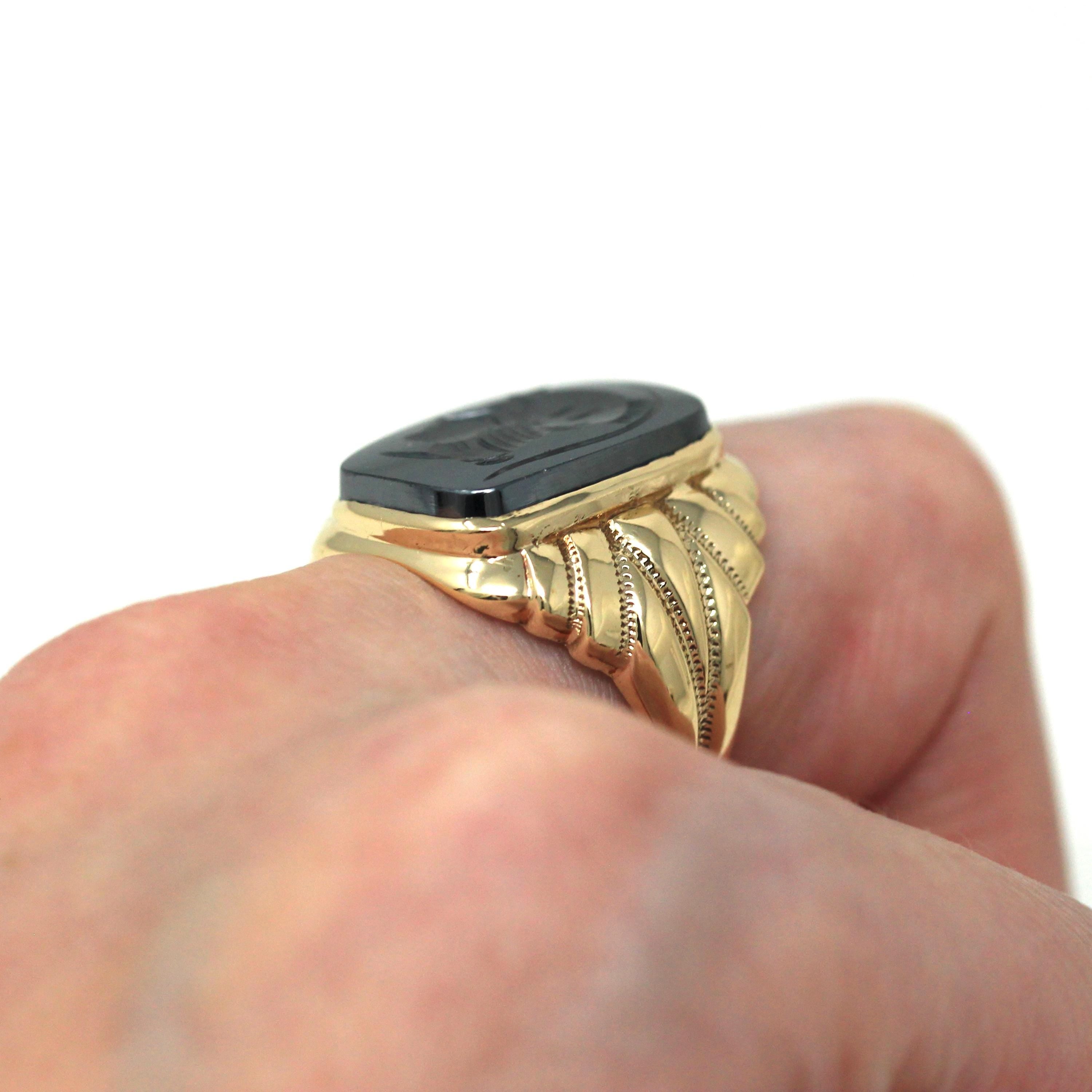 Vintage Onyx Ring - Retro 8k 333 Yellow Gold Oval Black Chalcedony Natural Gemstone - Circa 1970s Era Size 6 Statement Fine 70s Jewelry
