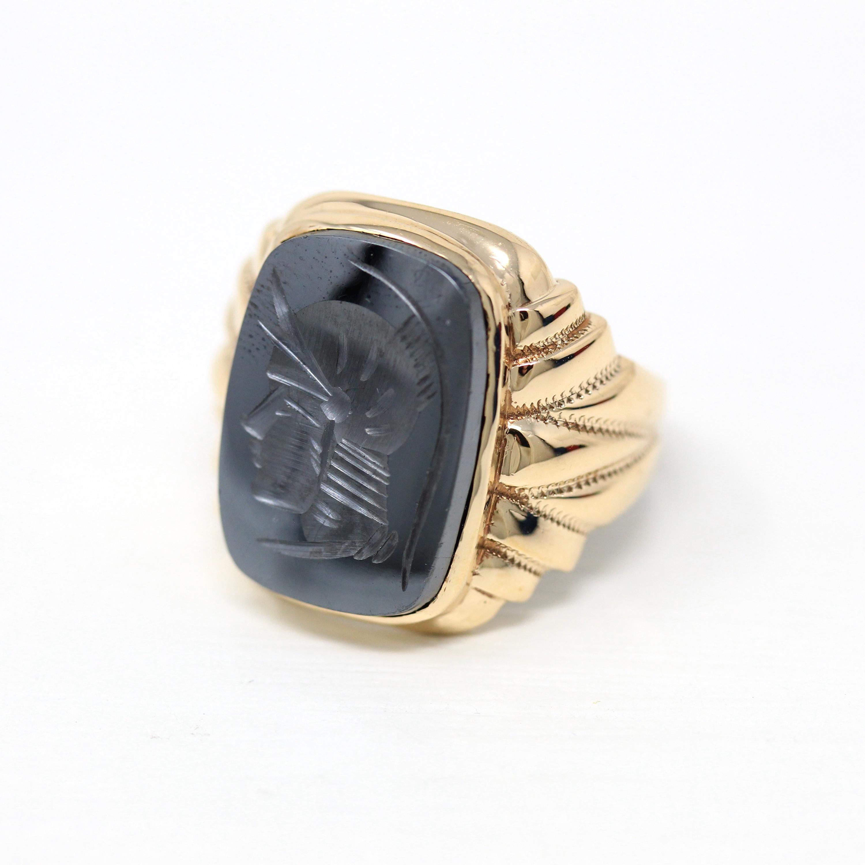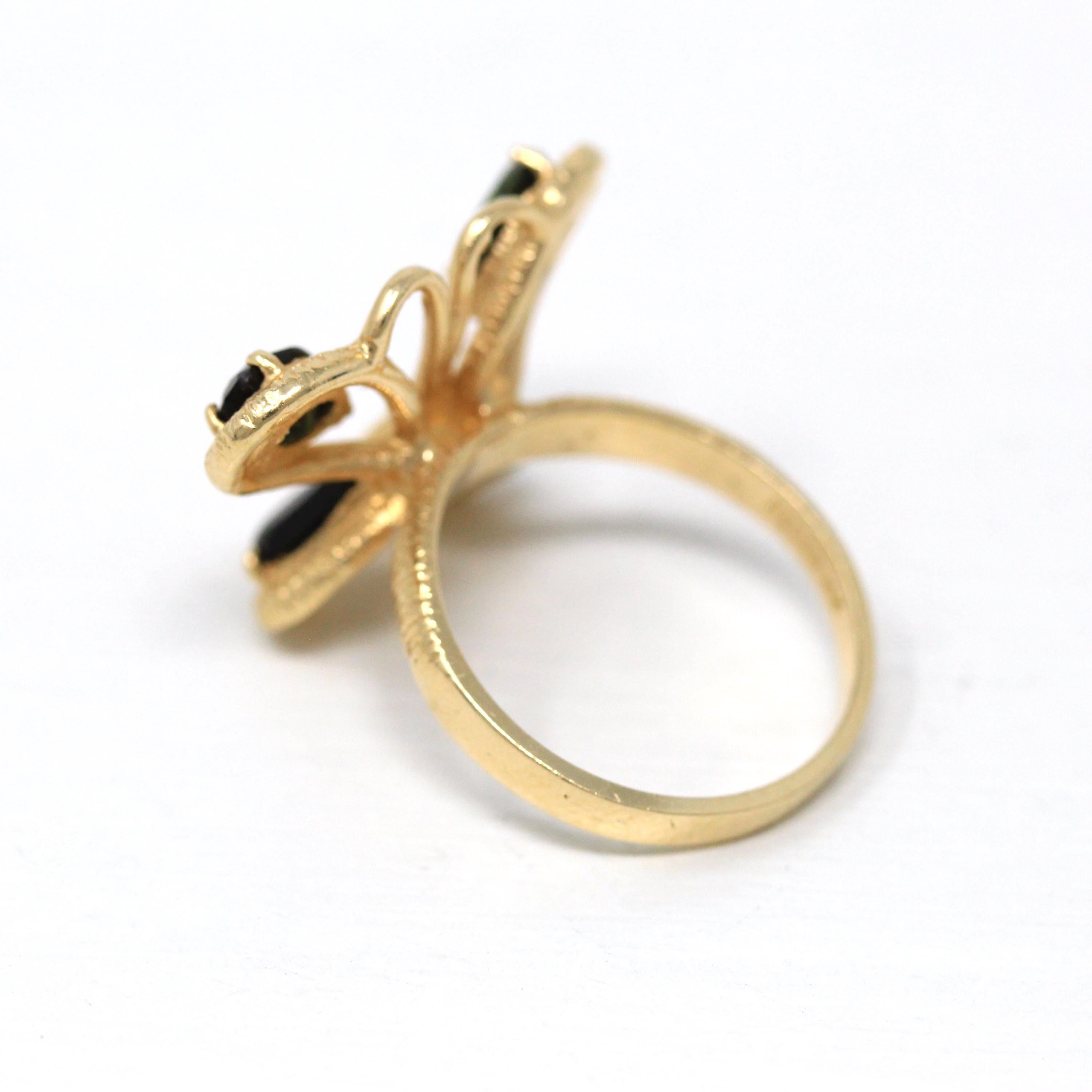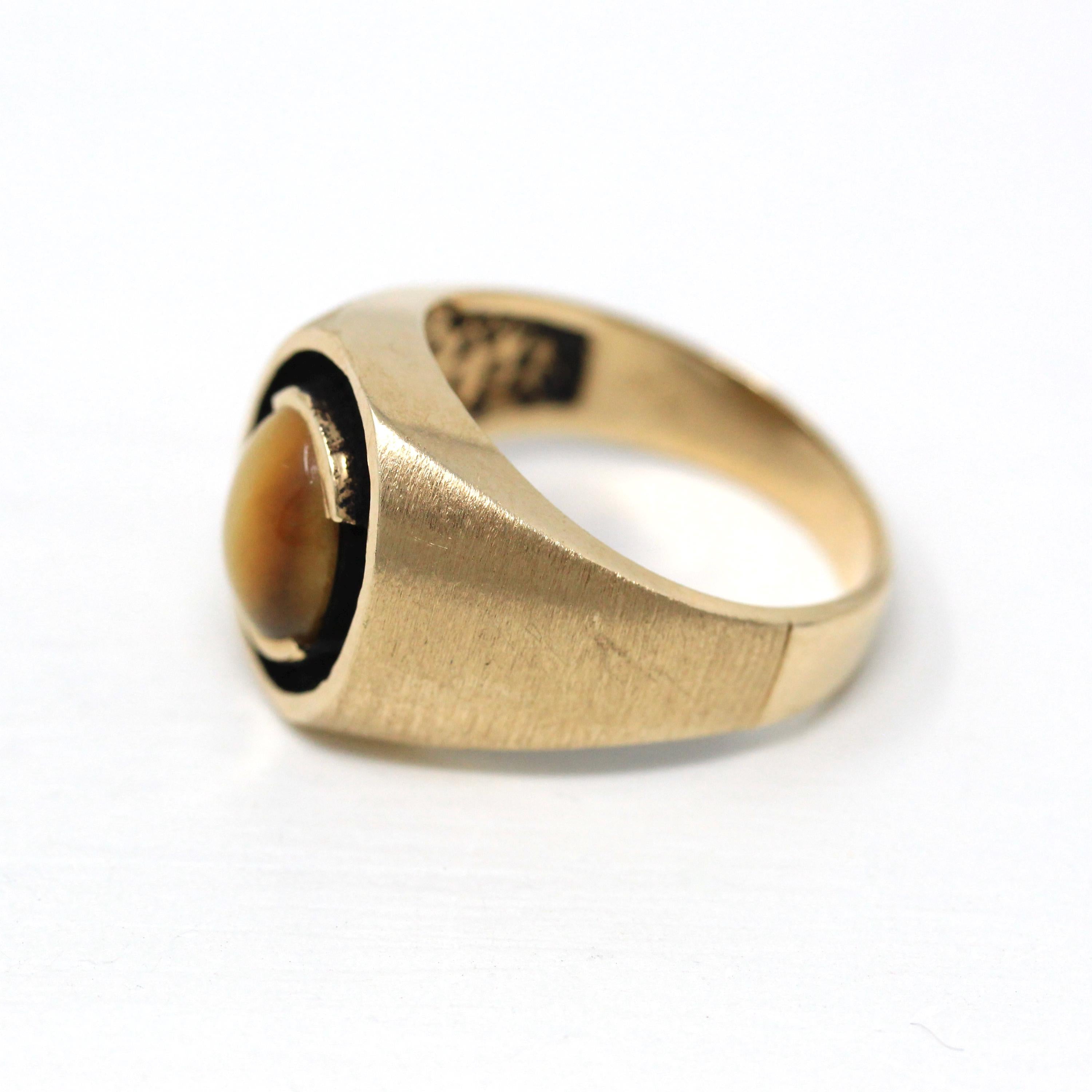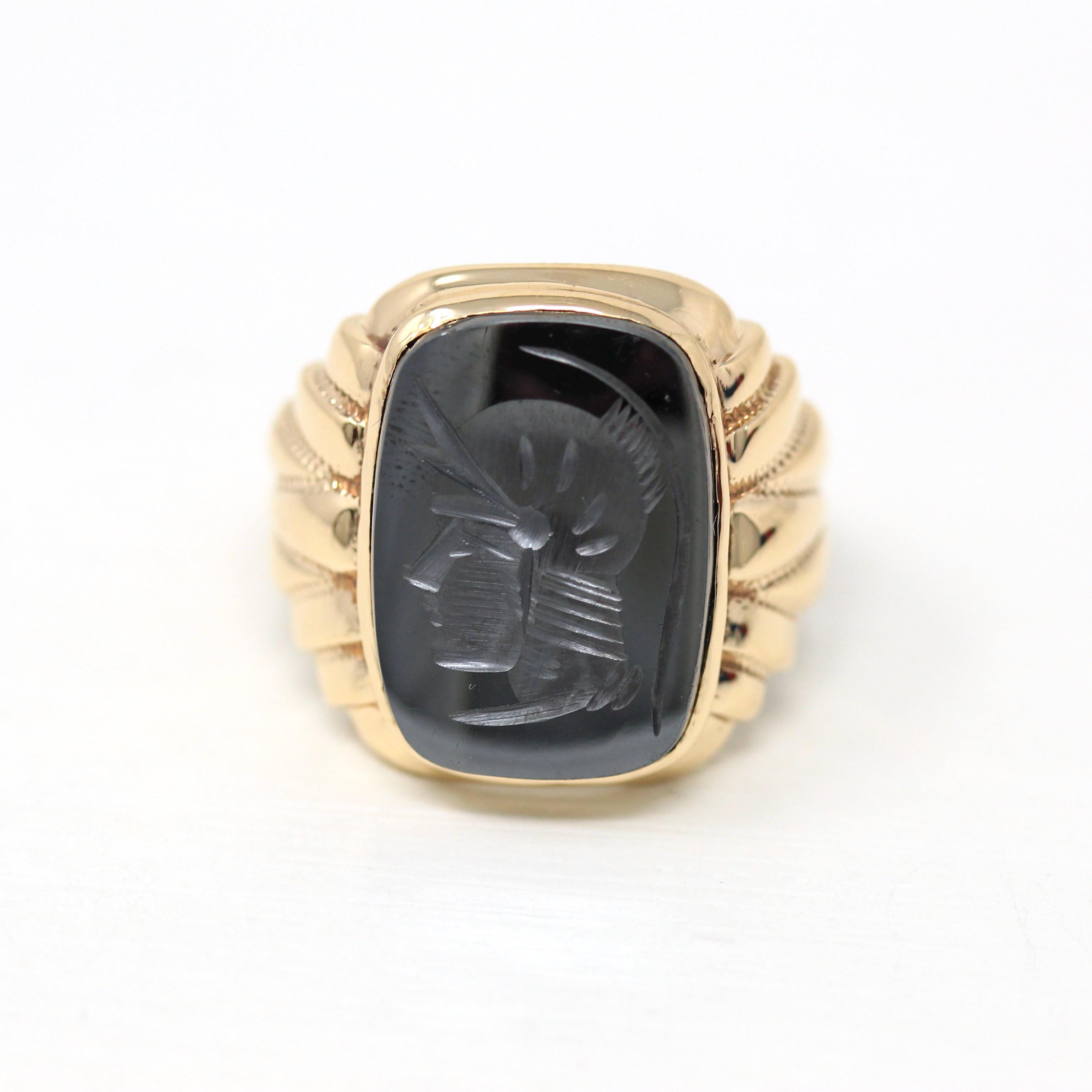Vintage Onyx Ring - Retro 8k 333 Yellow Gold Oval Black Chalcedony Natural Gemstone - Circa 1970s Era Size 6 Statement Fine 70s Jewelry
