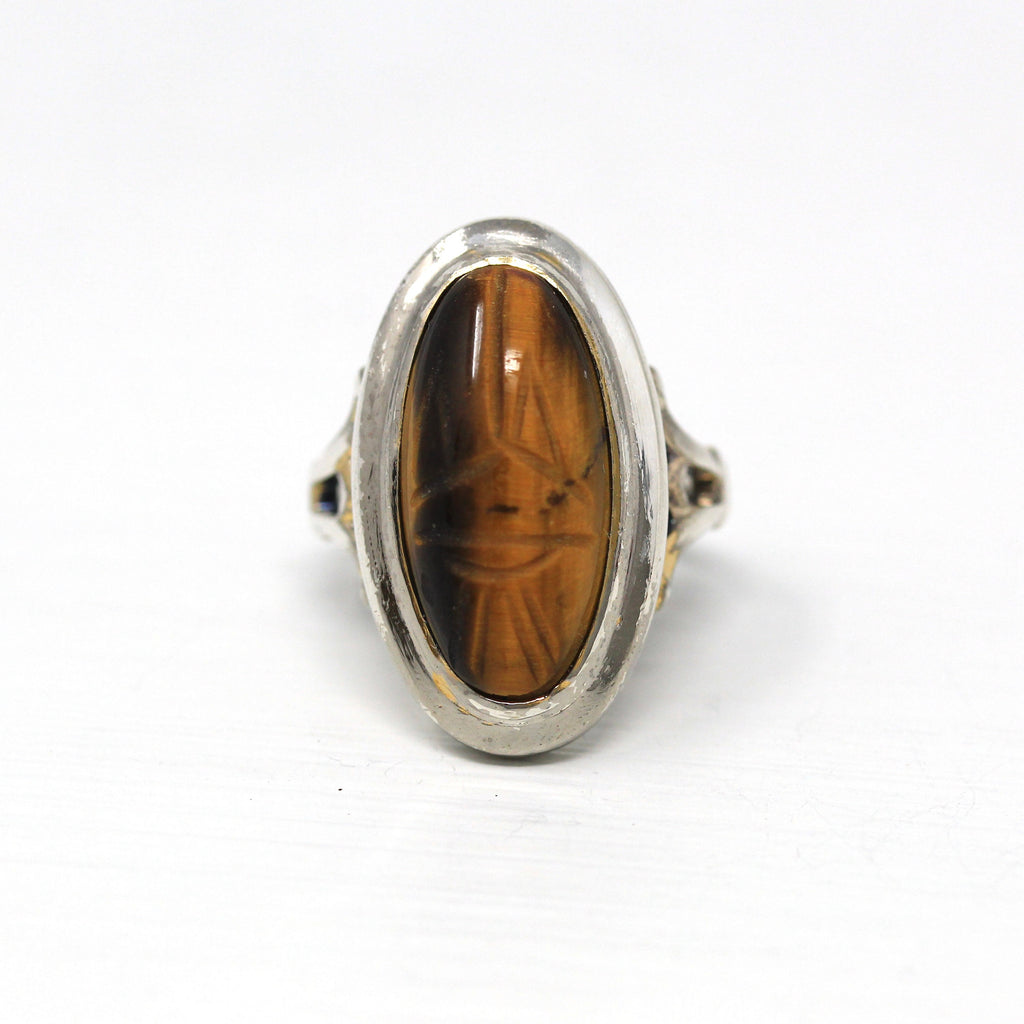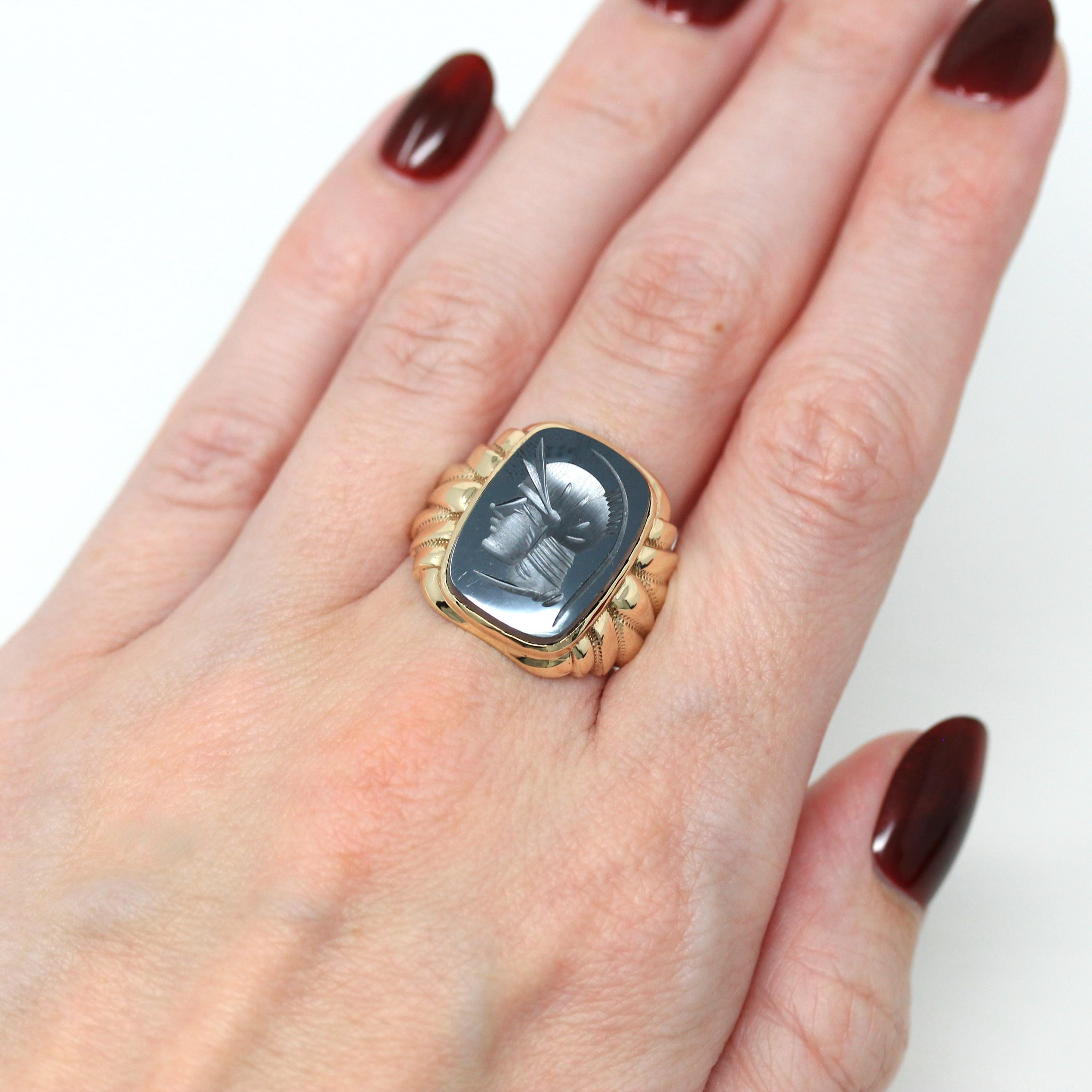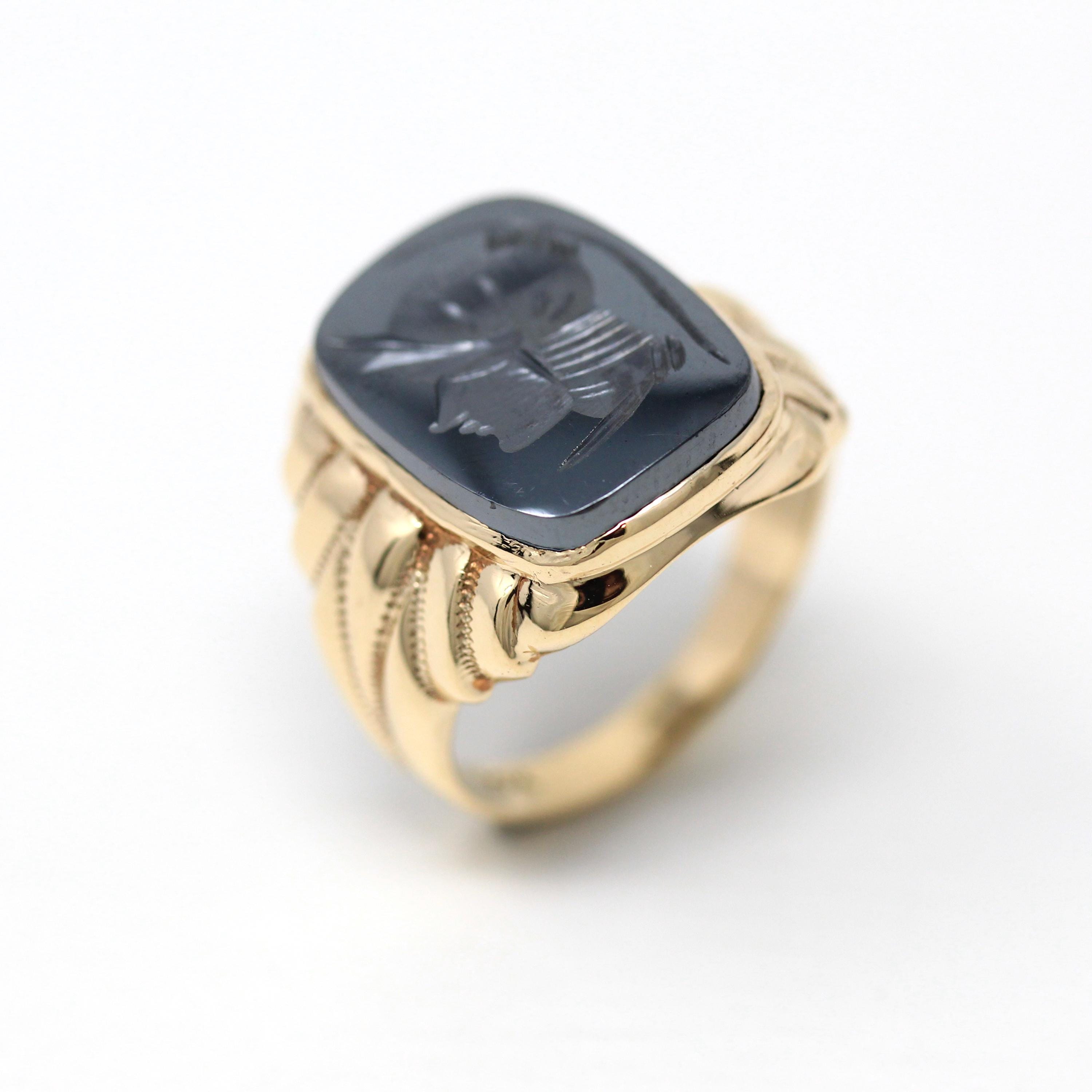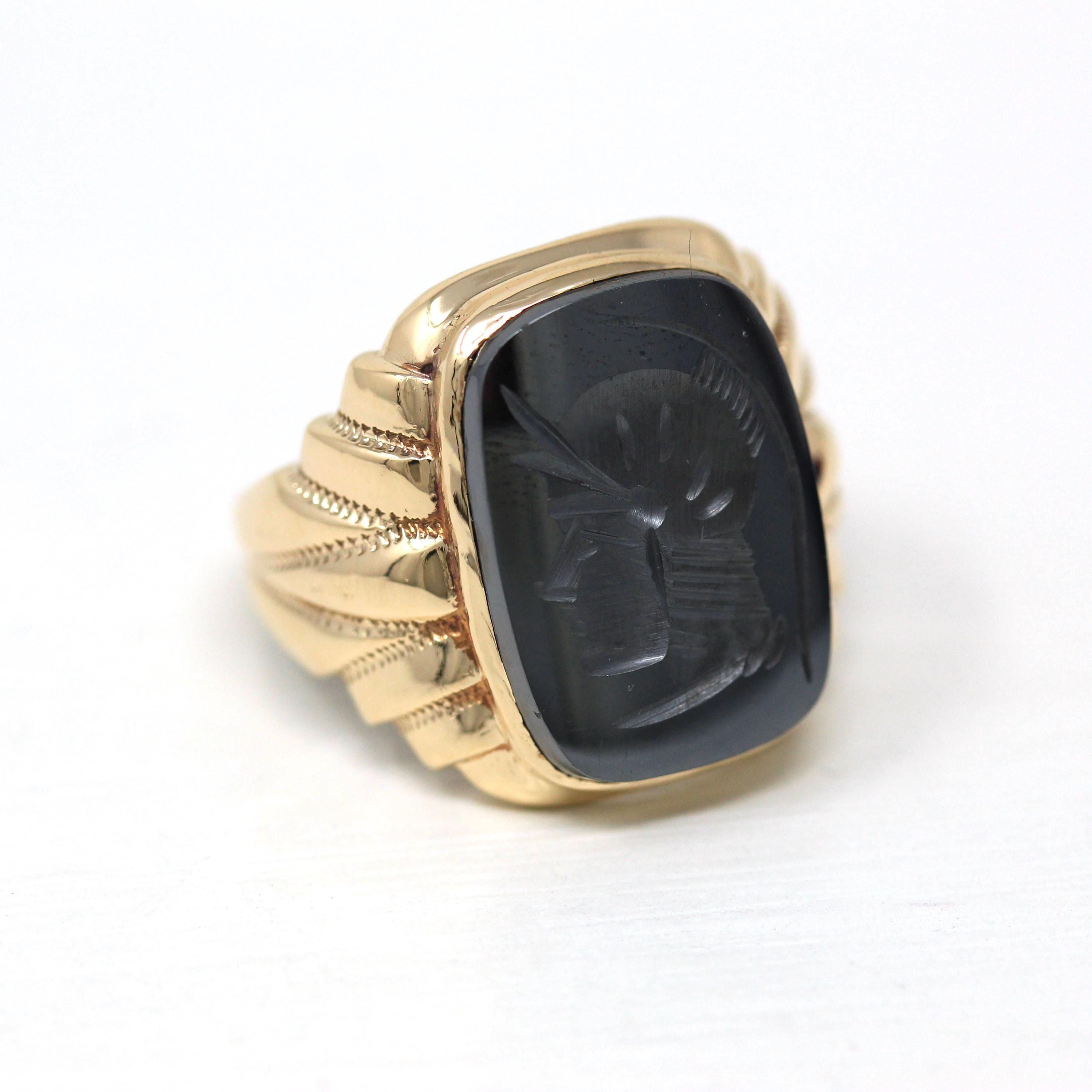 Vintage Onyx Ring - Retro 8k 333 Yellow Gold Oval Black Chalcedony Natural Gemstone - Circa 1970s Era Size 6 Statement Fine 70s Jewelry