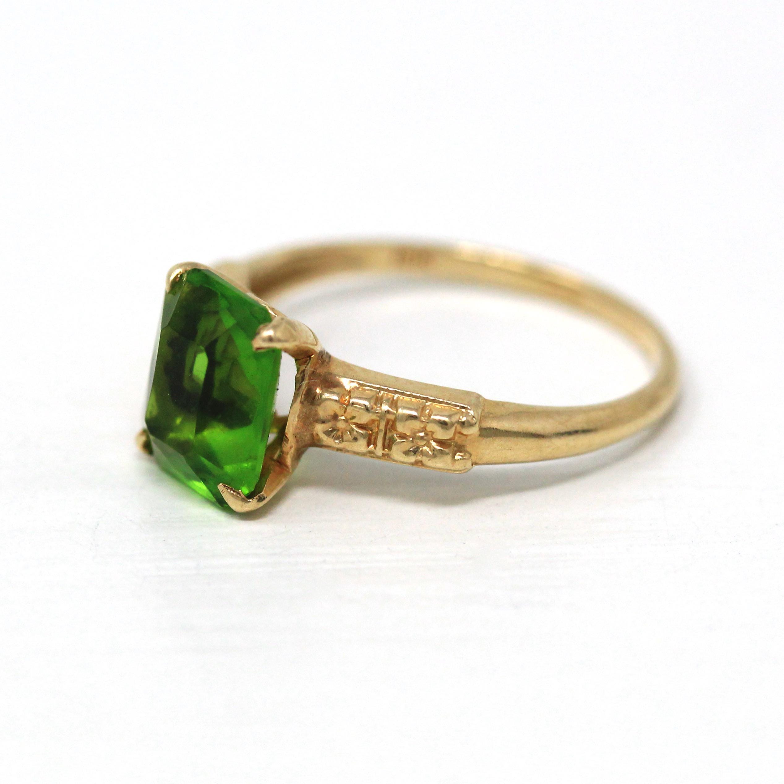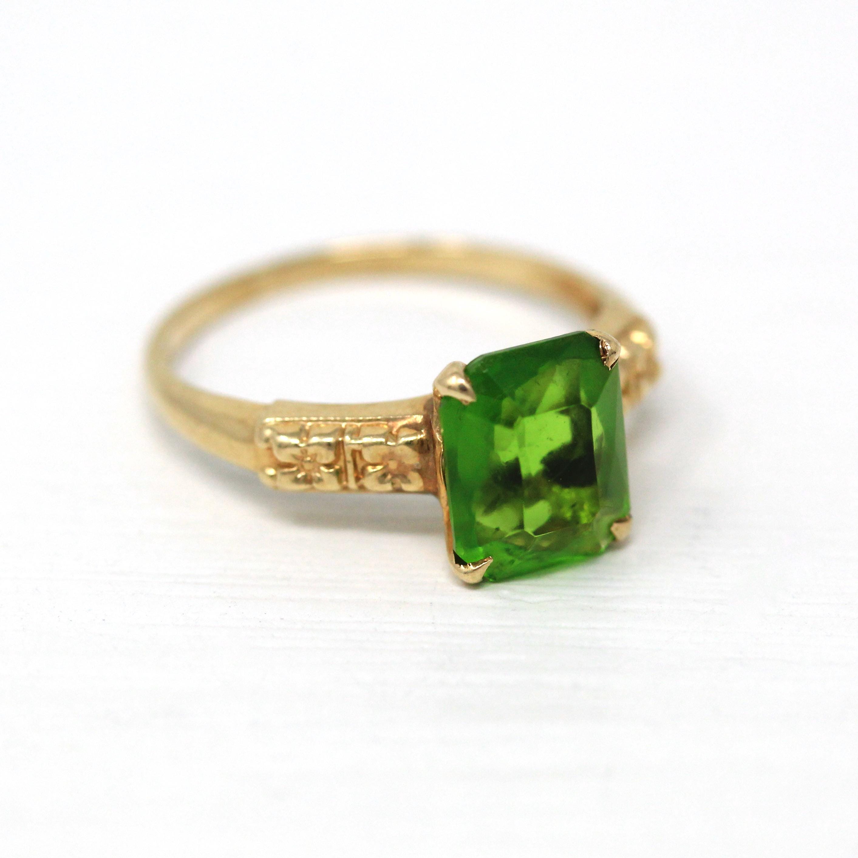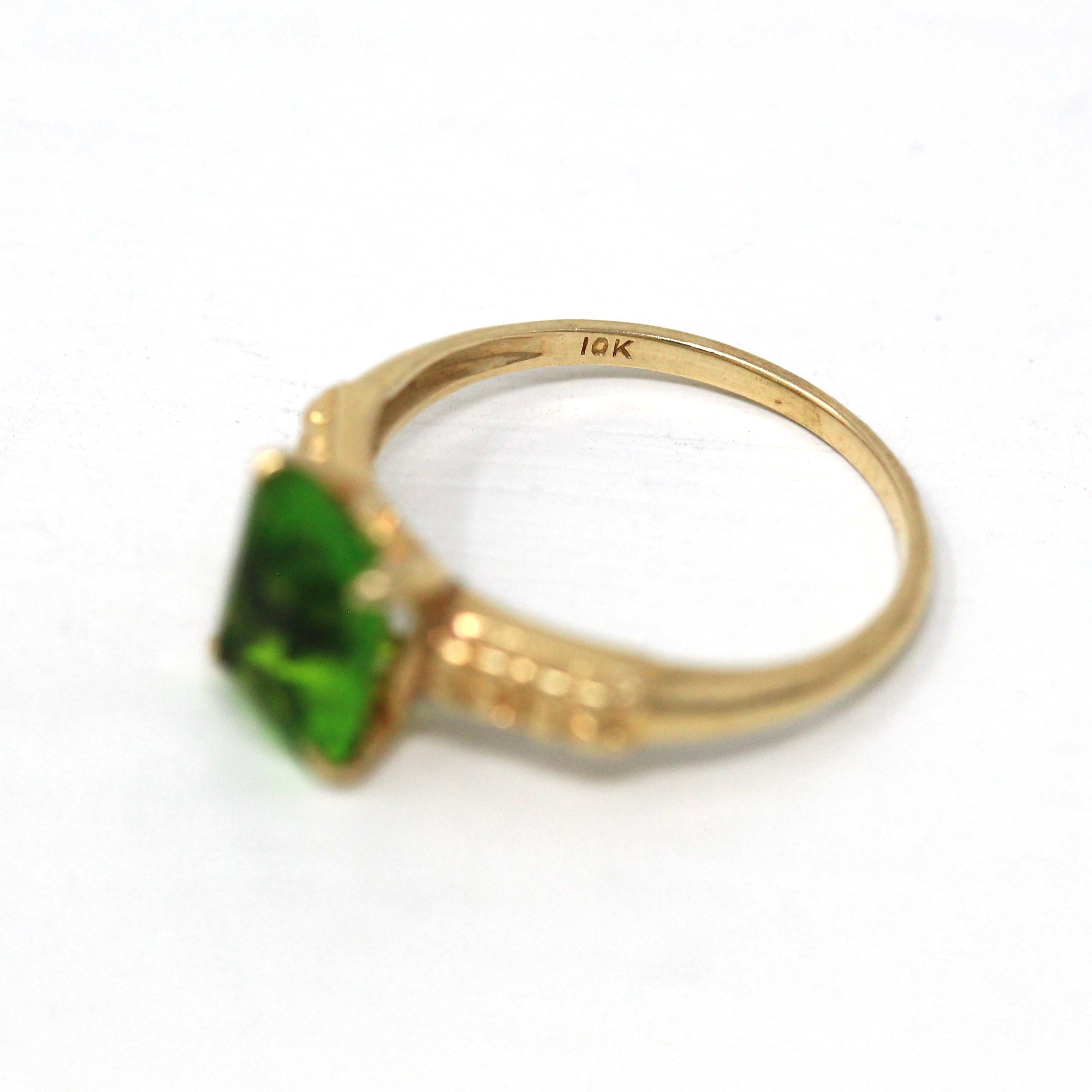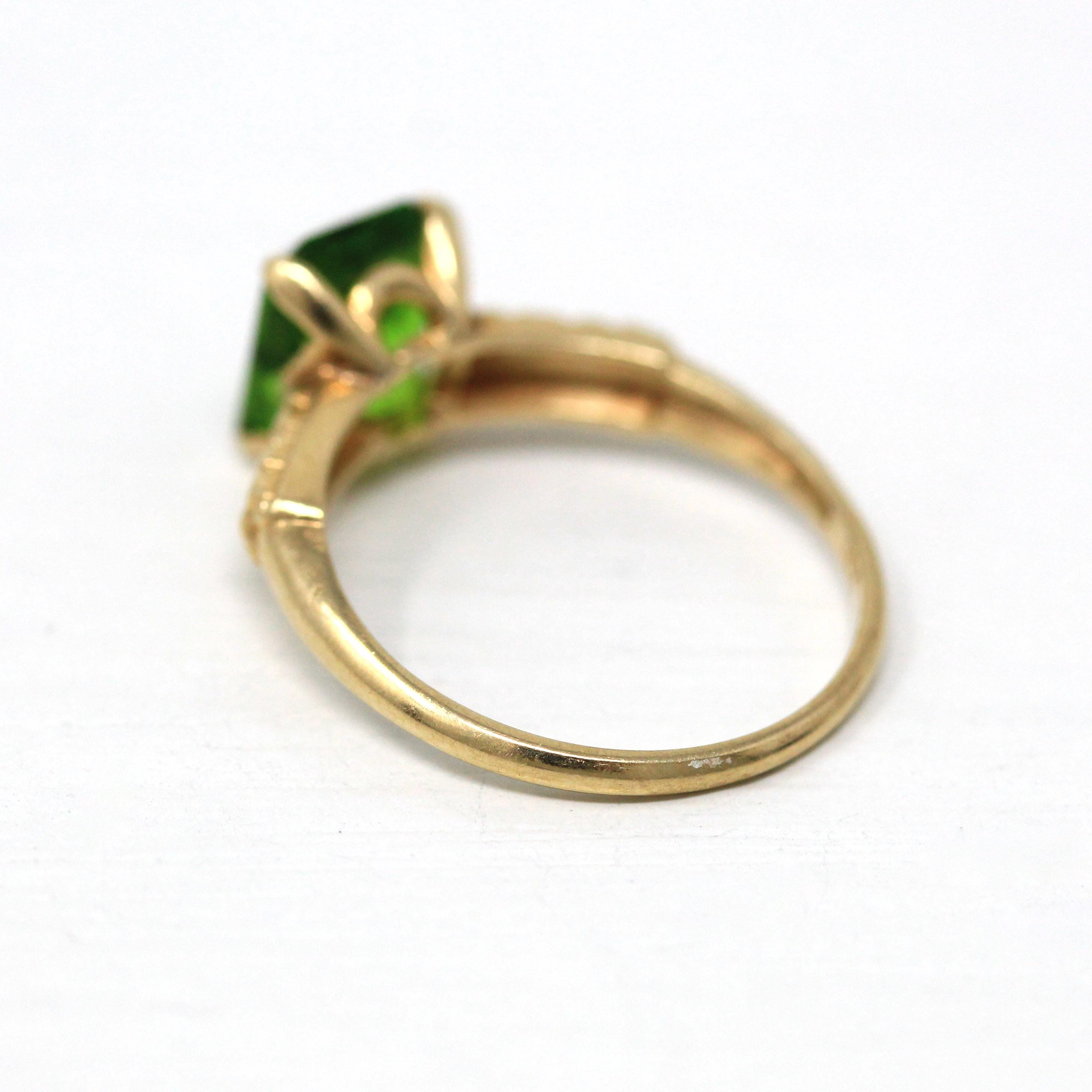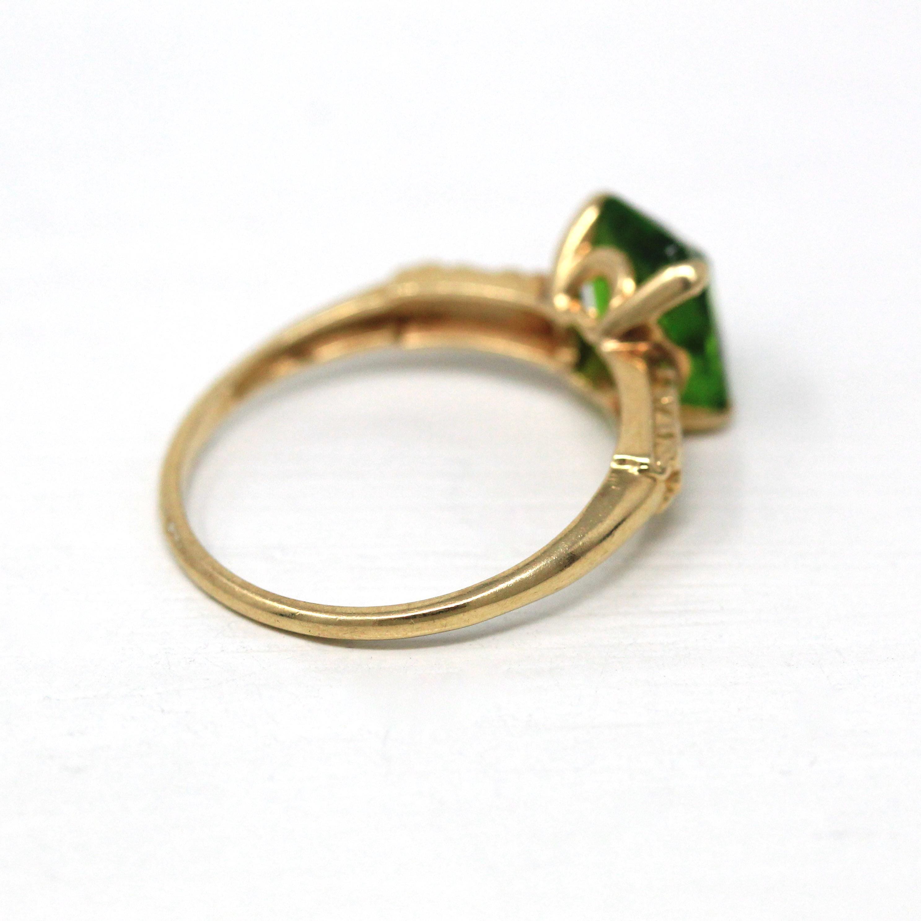 Created Spinel Ring - Retro 10k White Gold Marquise Cut Green Stone - Vintage Circa 1960s Era Size 5 3/4 Fine Statement Cocktail 60s Jewelry