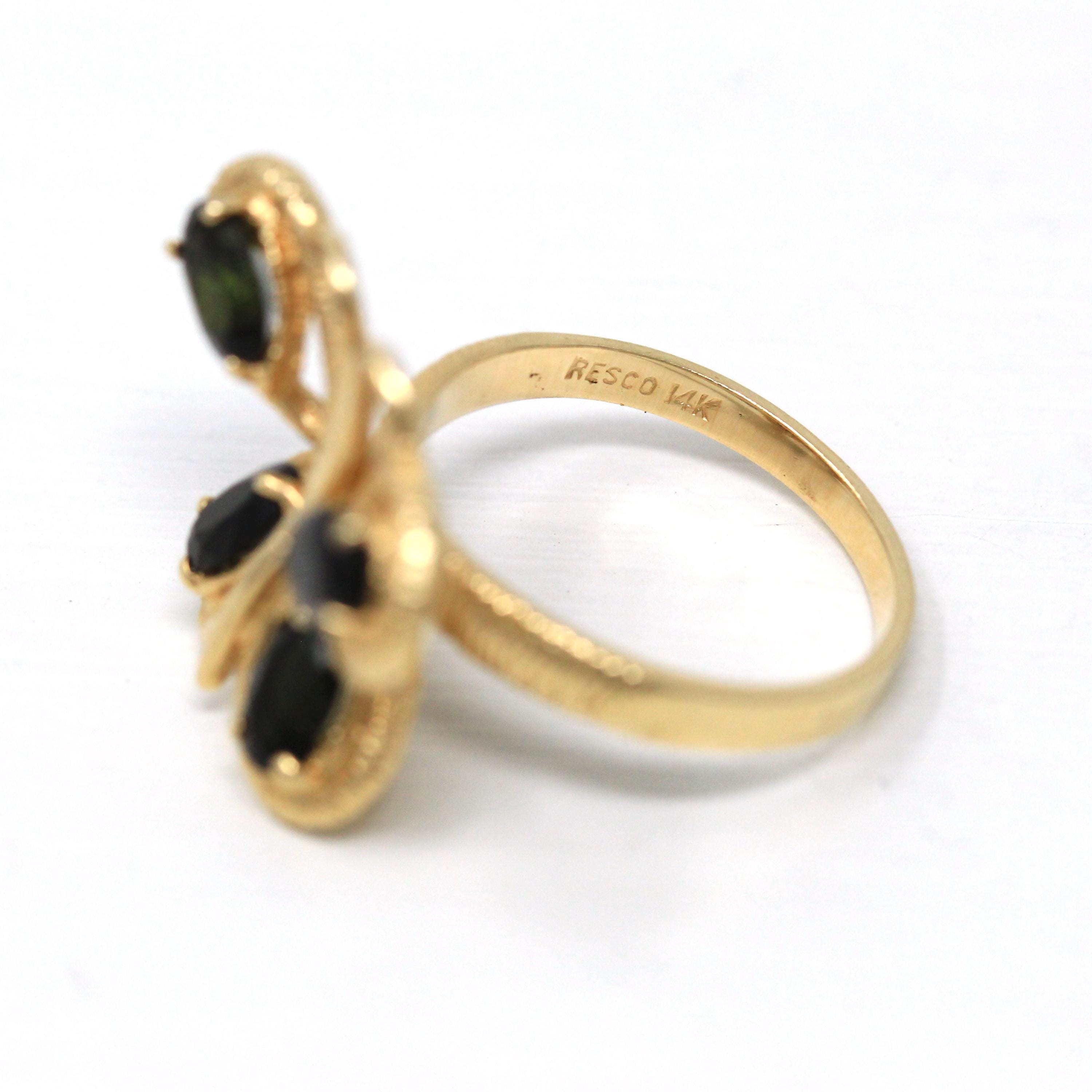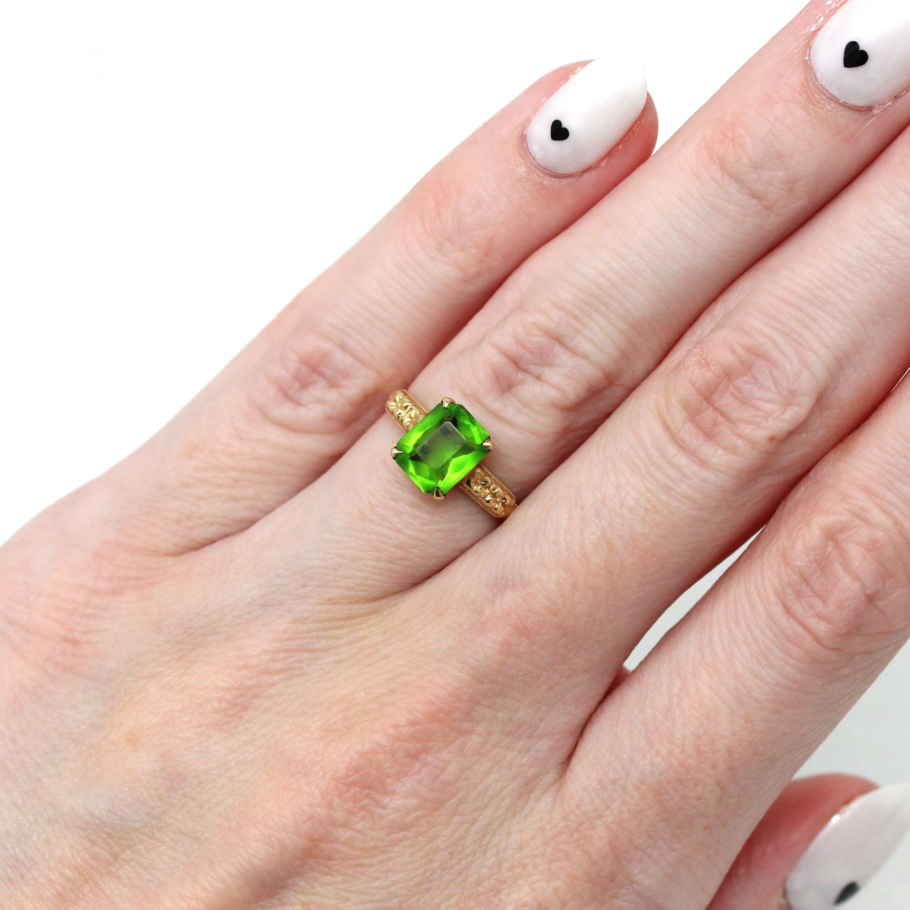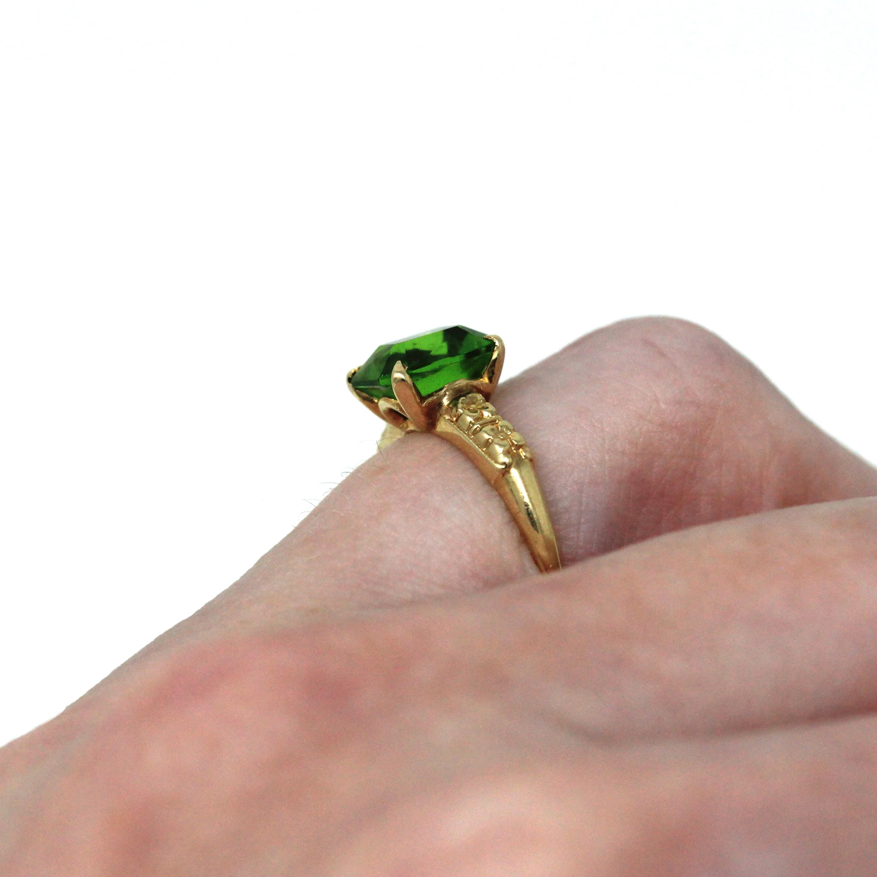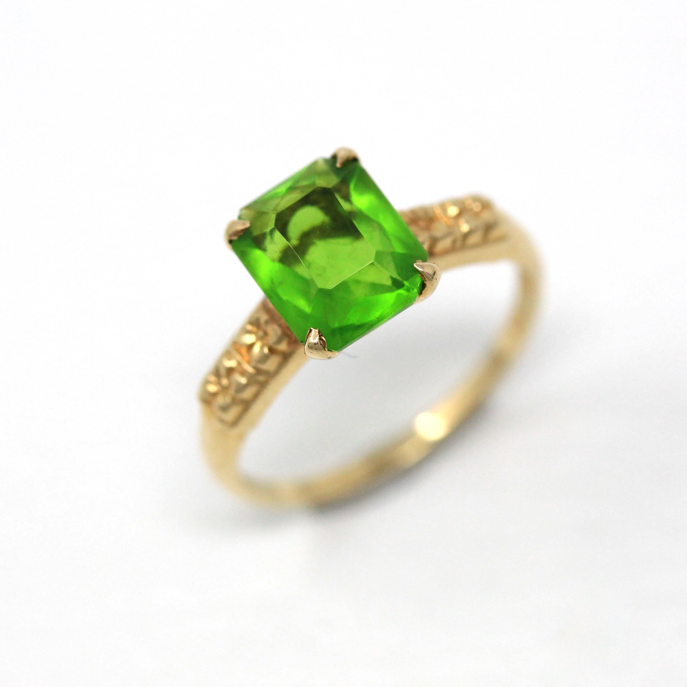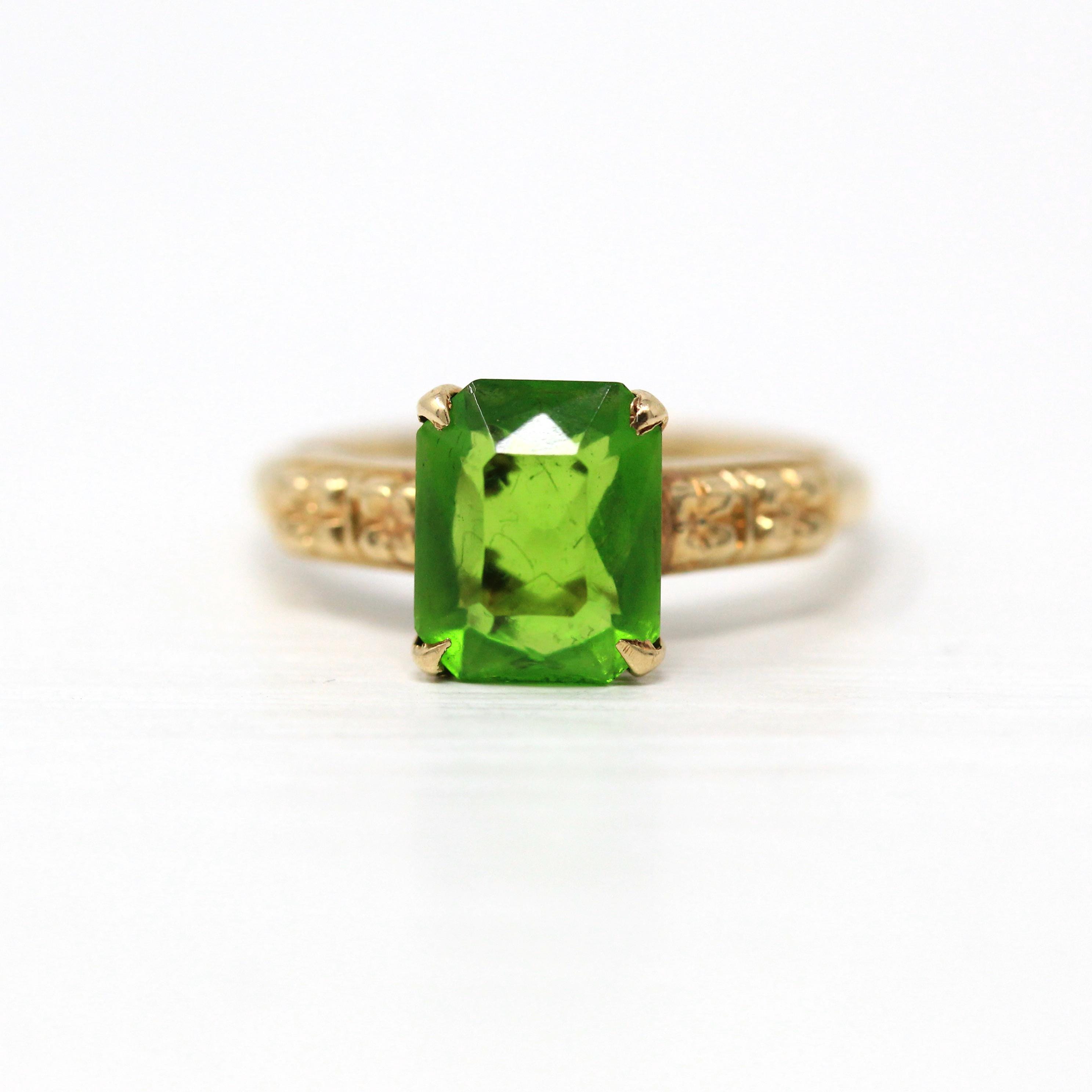 Created Spinel Ring - Retro 10k White Gold Marquise Cut Green Stone - Vintage Circa 1960s Era Size 5 3/4 Fine Statement Cocktail 60s Jewelry