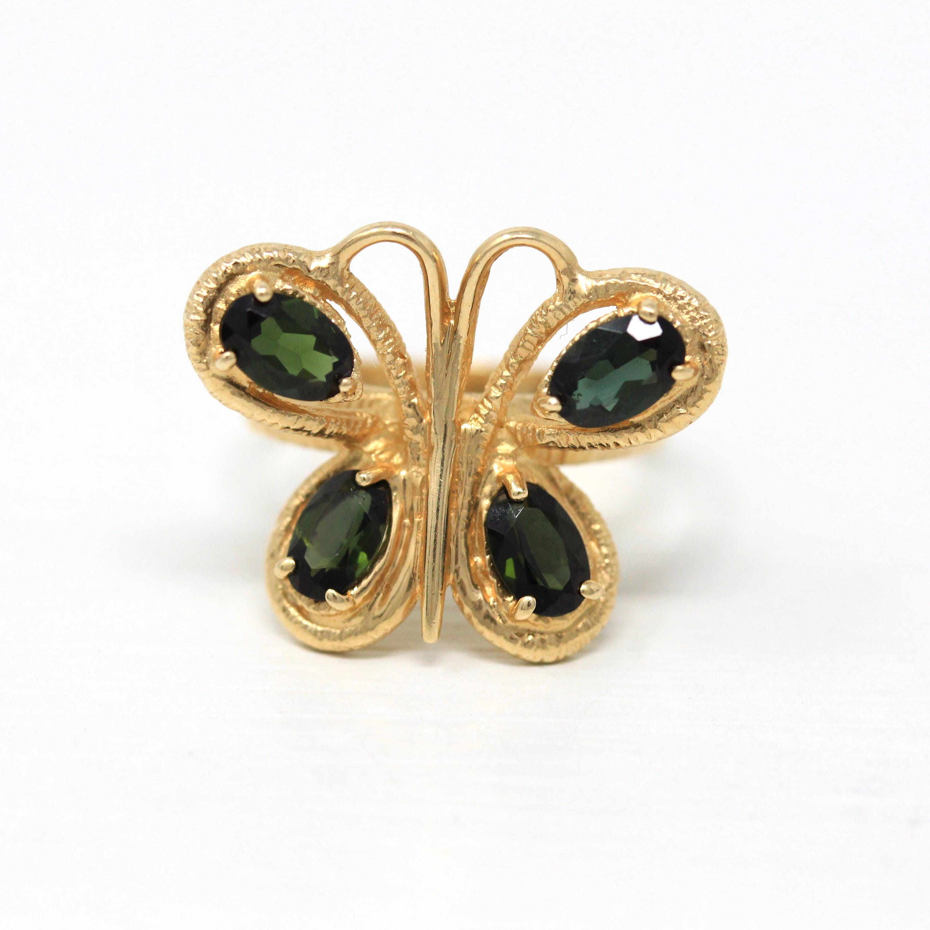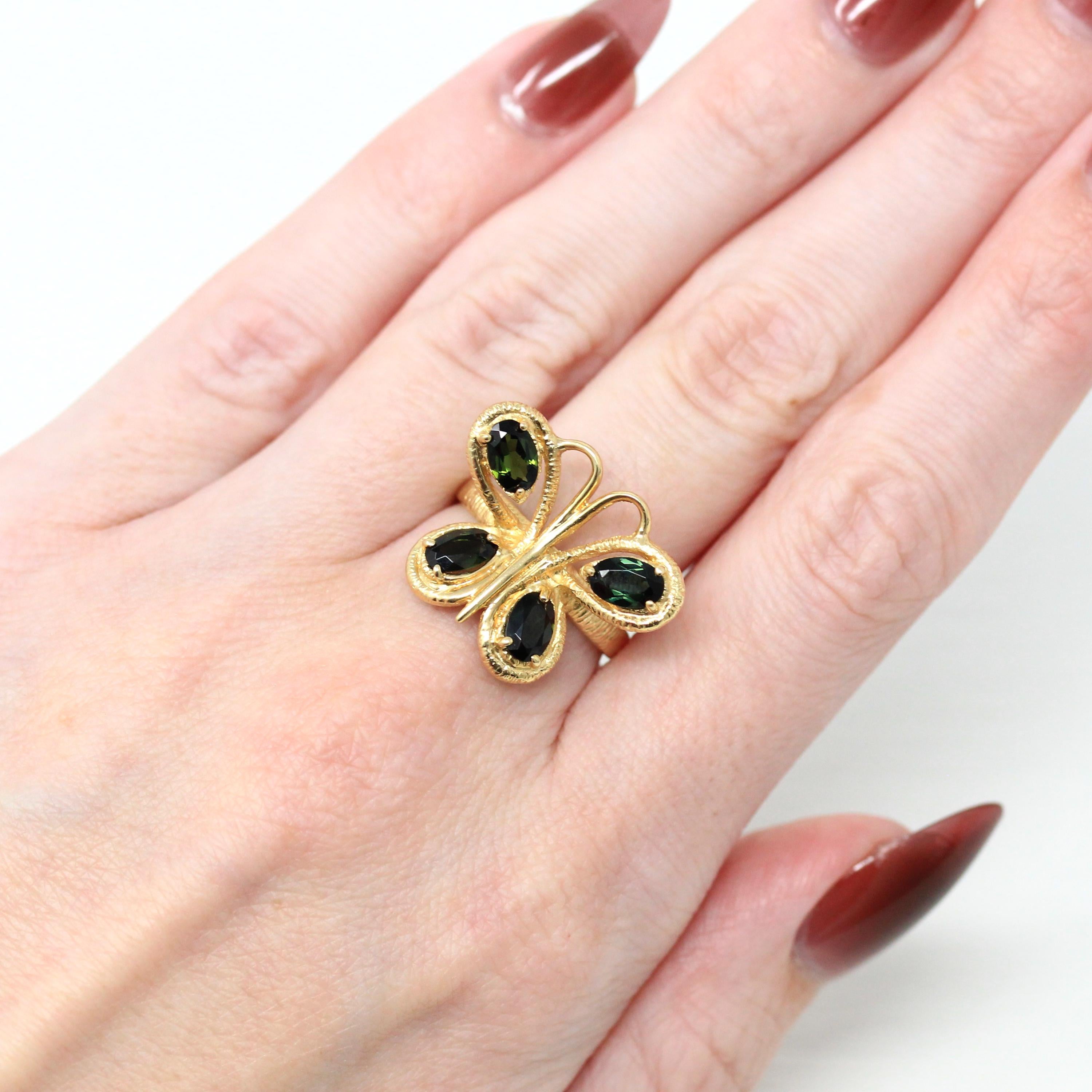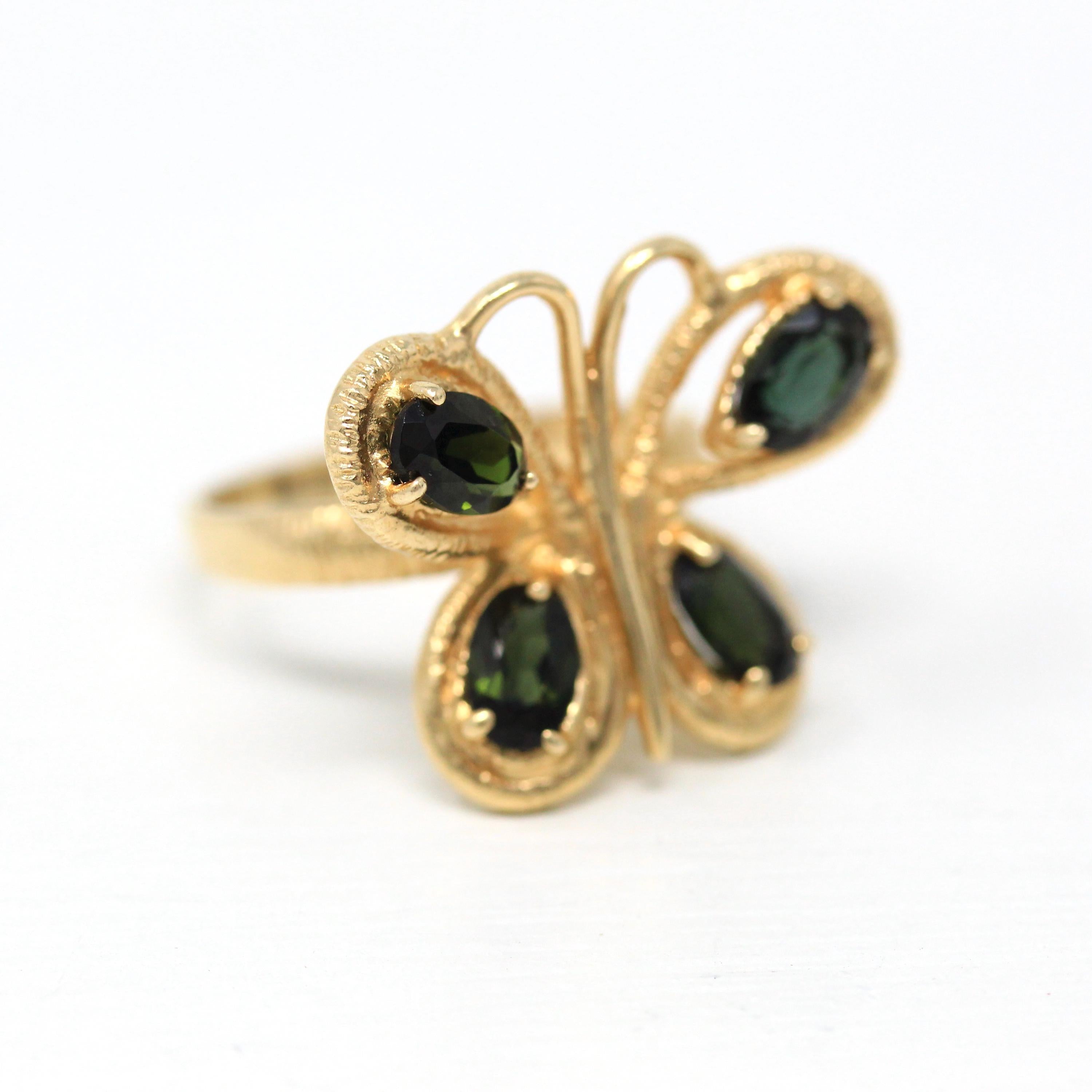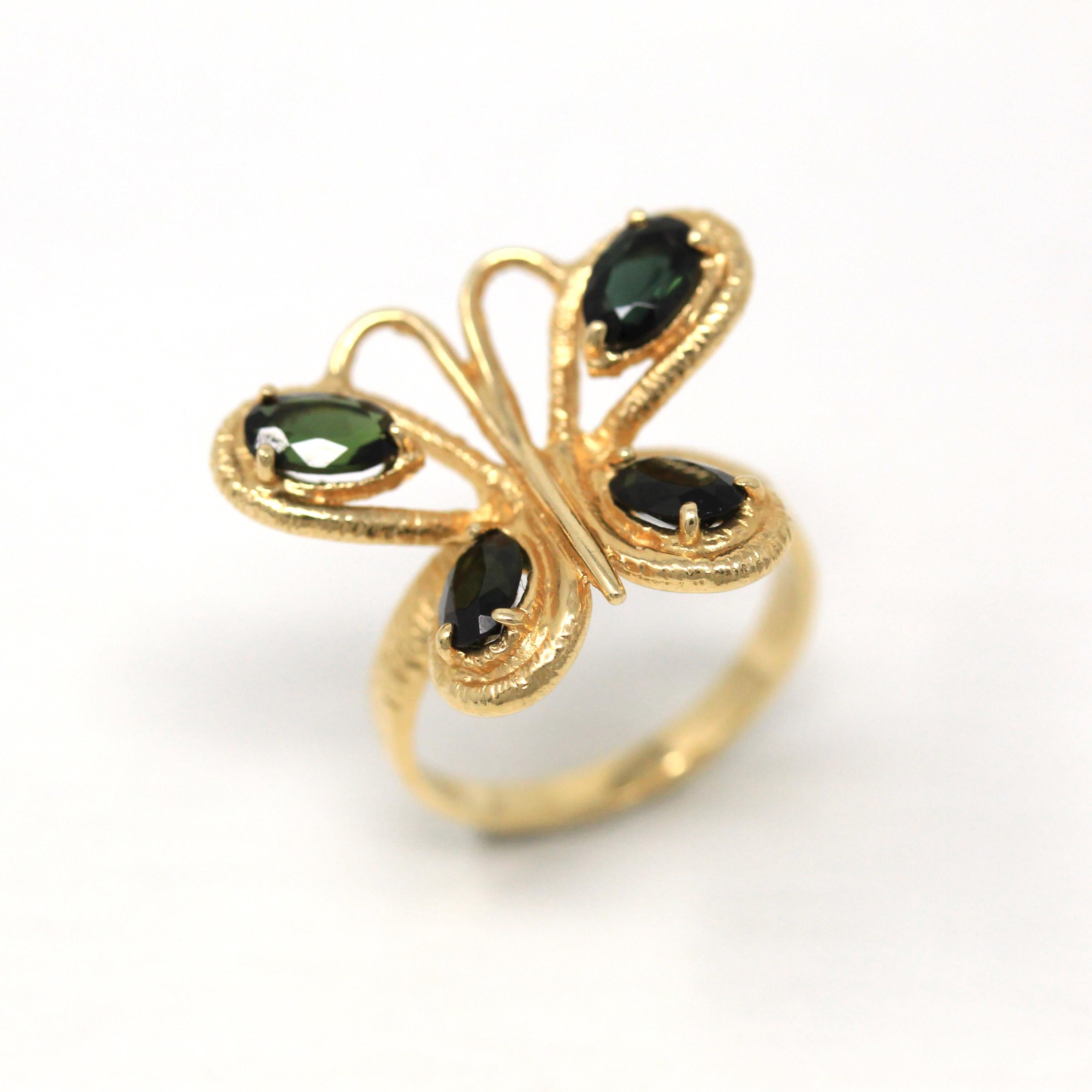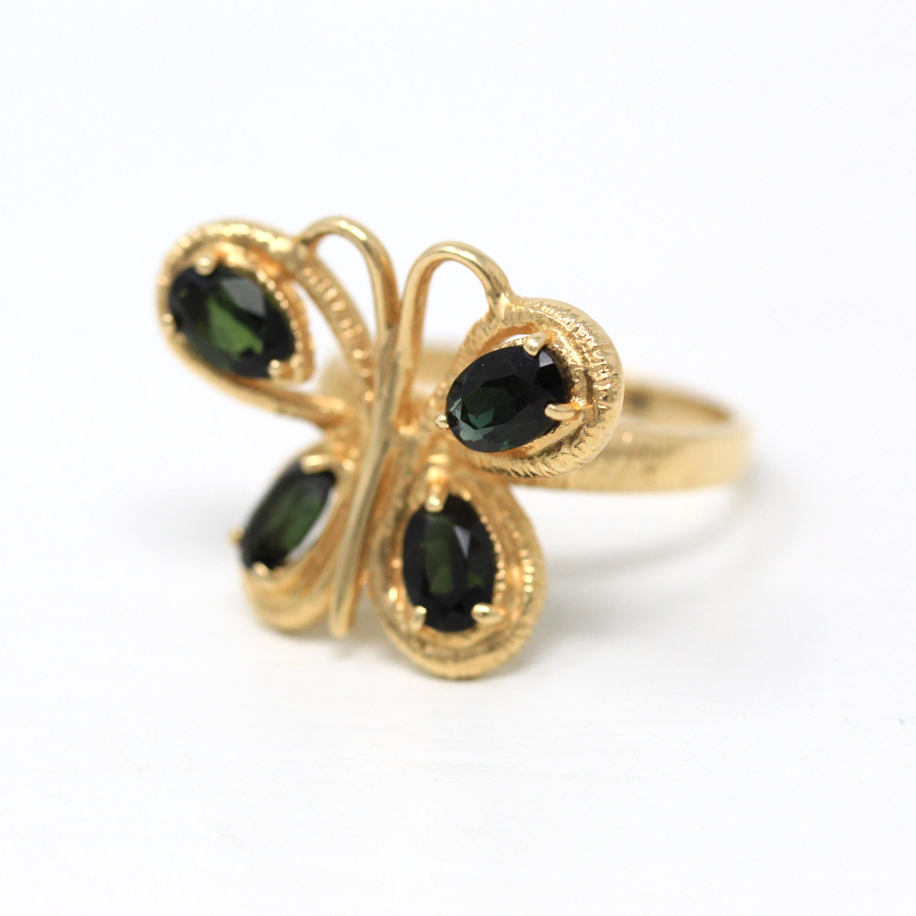 Created Spinel Ring - Retro 10k White Gold Marquise Cut Green Stone - Vintage Circa 1960s Era Size 5 3/4 Fine Statement Cocktail 60s Jewelry