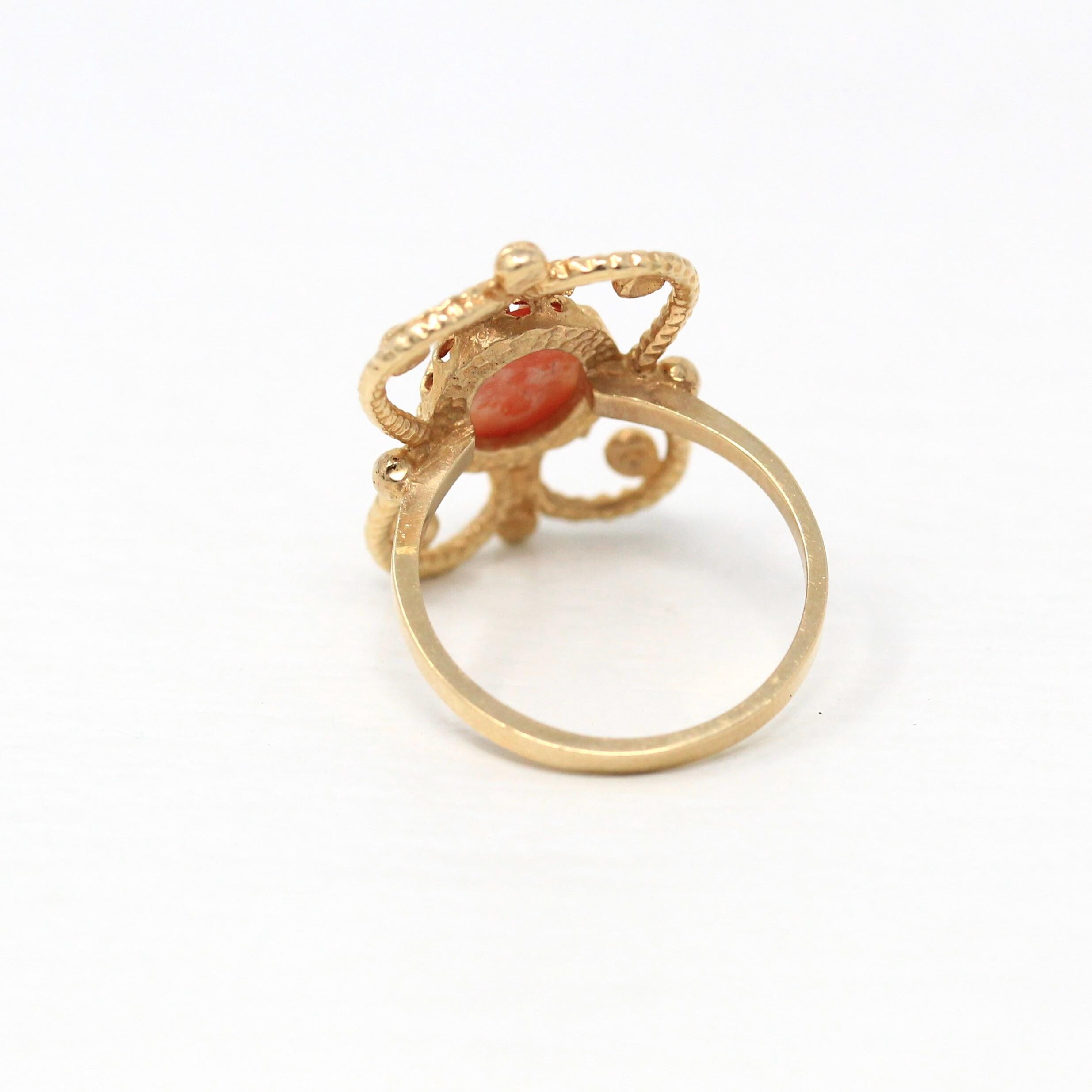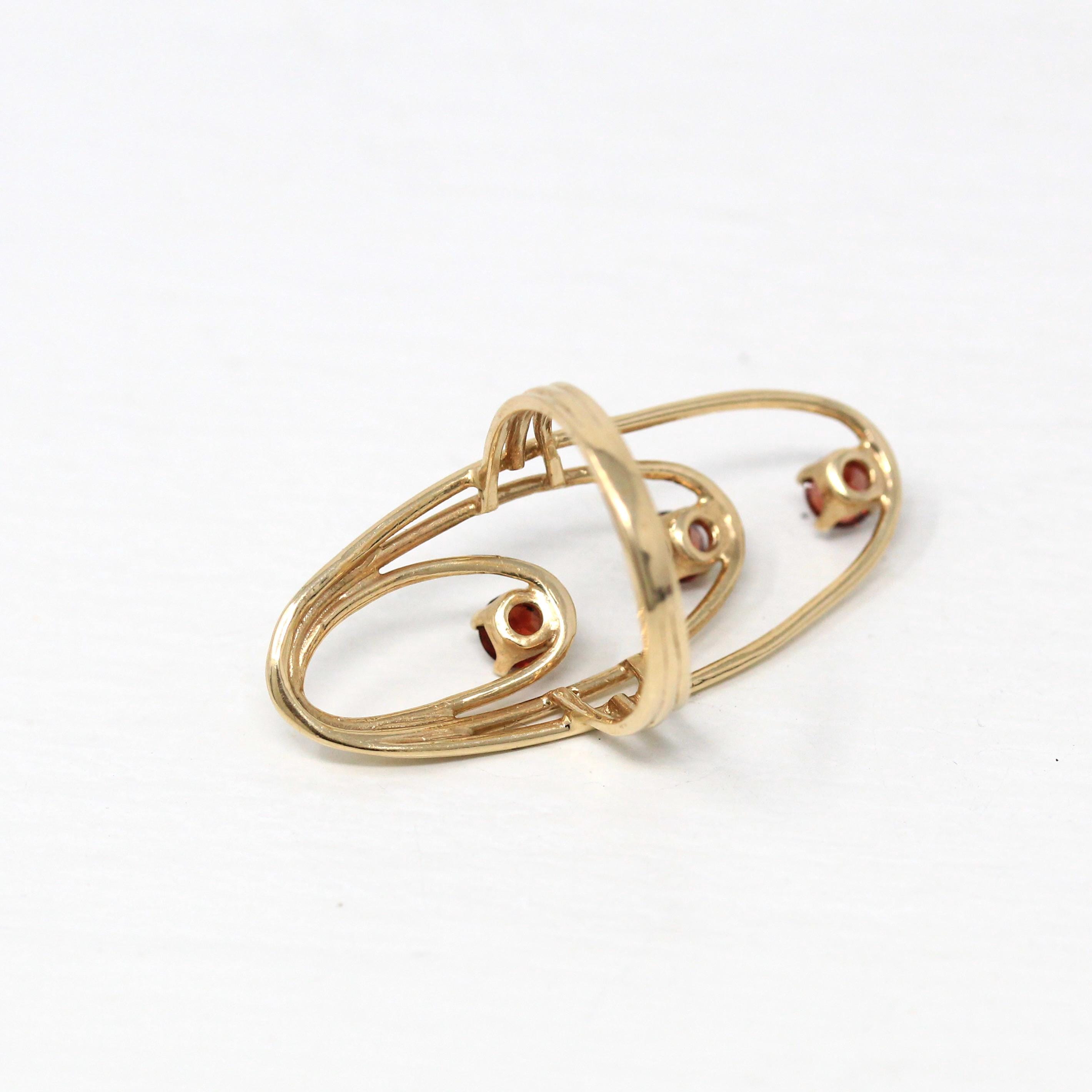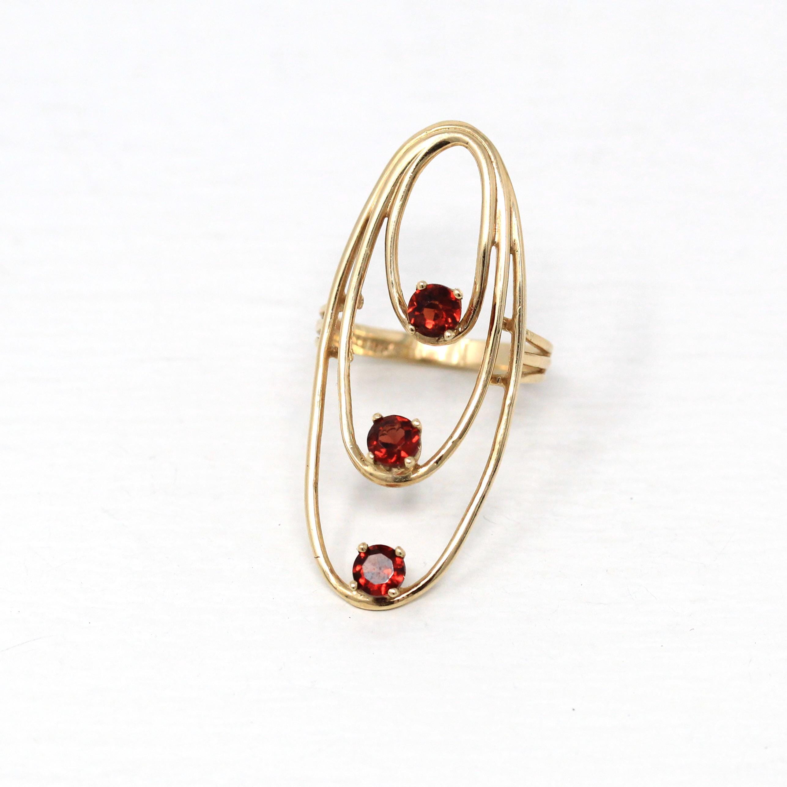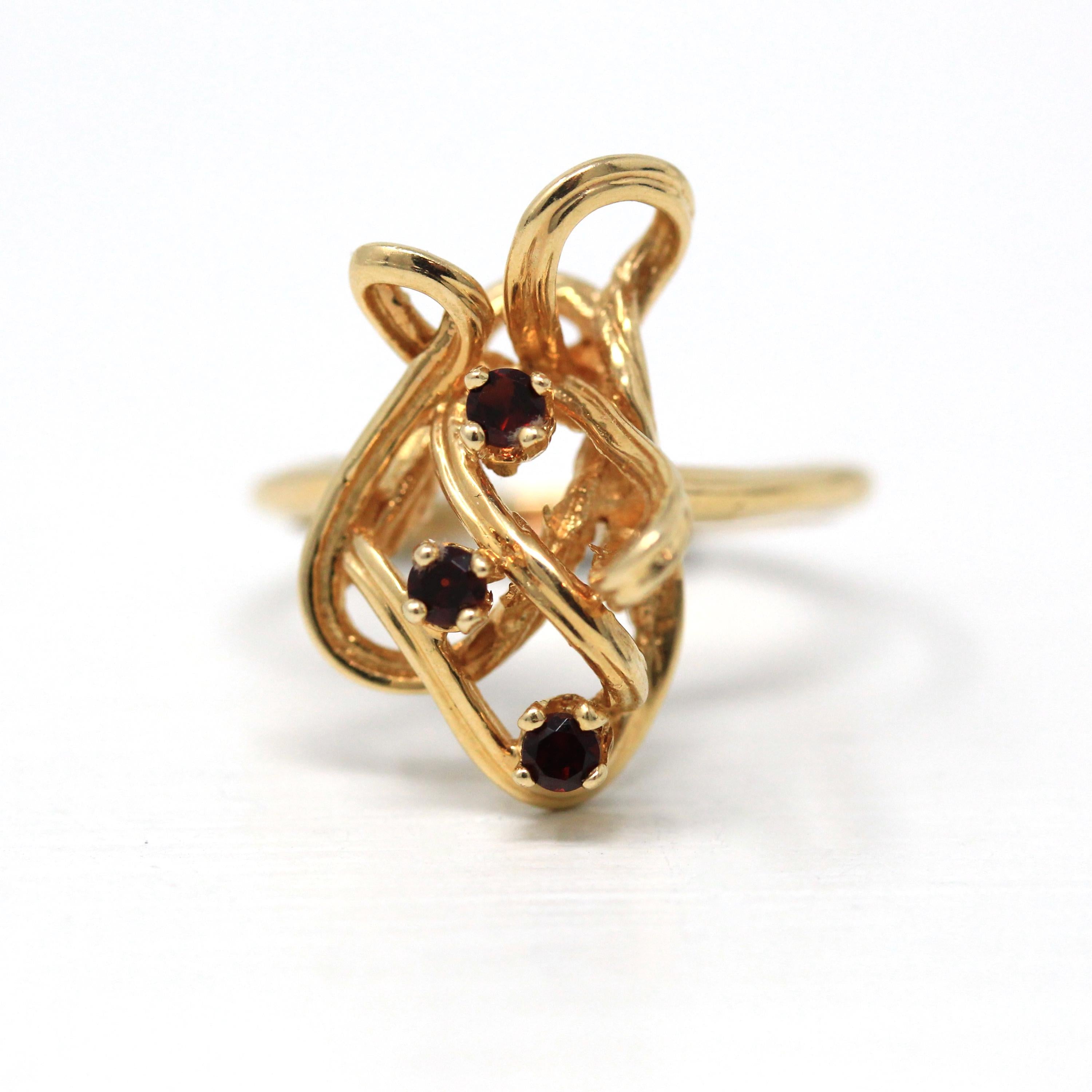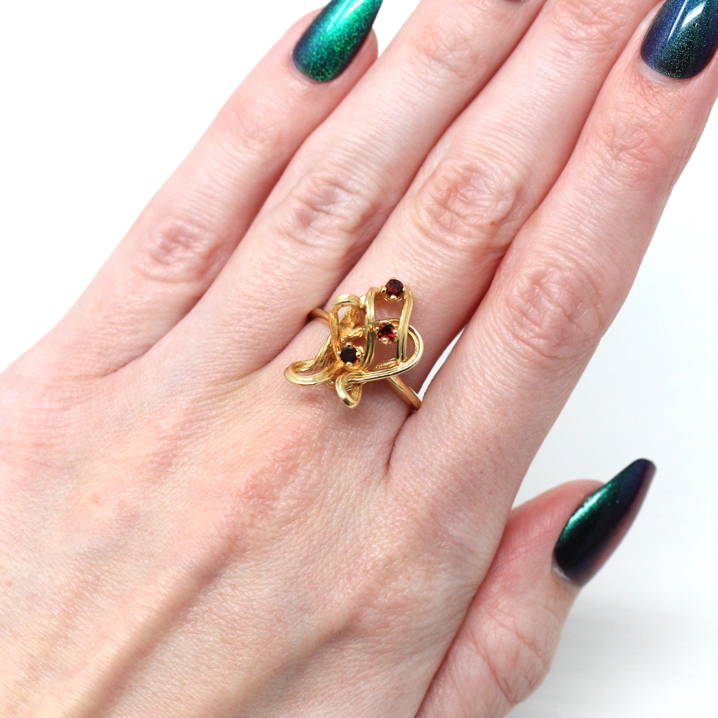 Created Star Ruby Ring - Retro 14k Yellow Gold Cabochon Cut Pink Gemstone - Vintage Circa 1960s Era Size 6 1/4 Bypass Fine Statement Jewelry