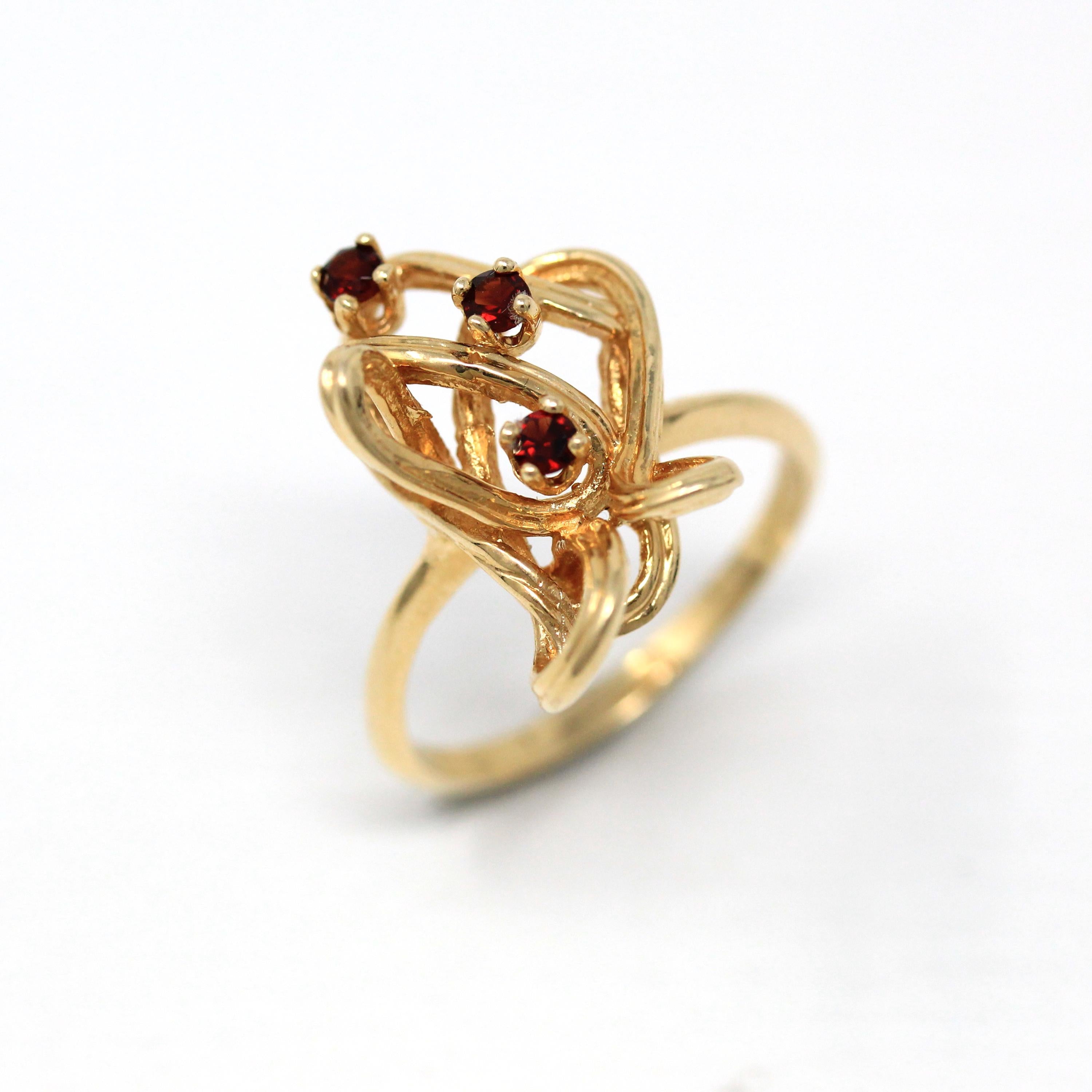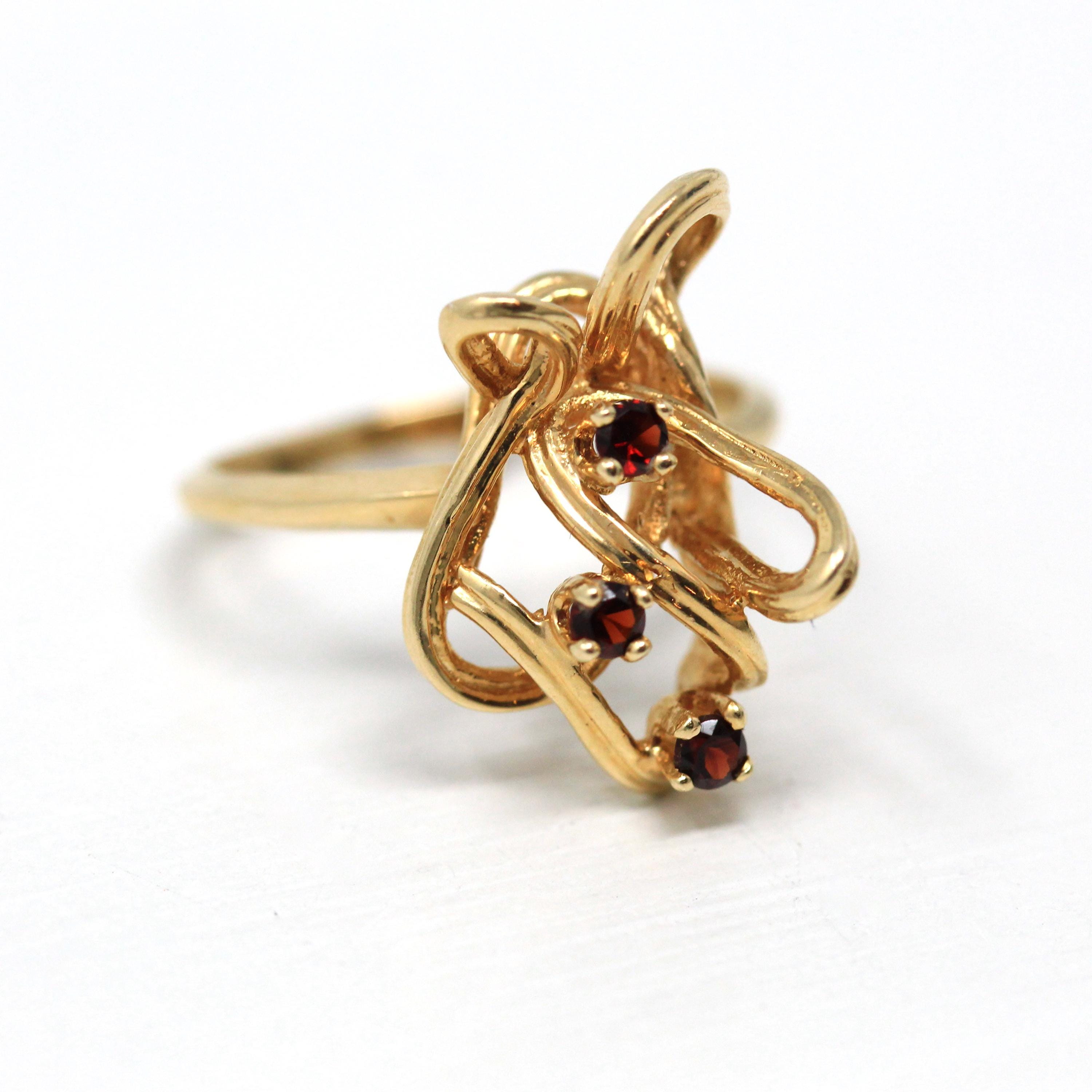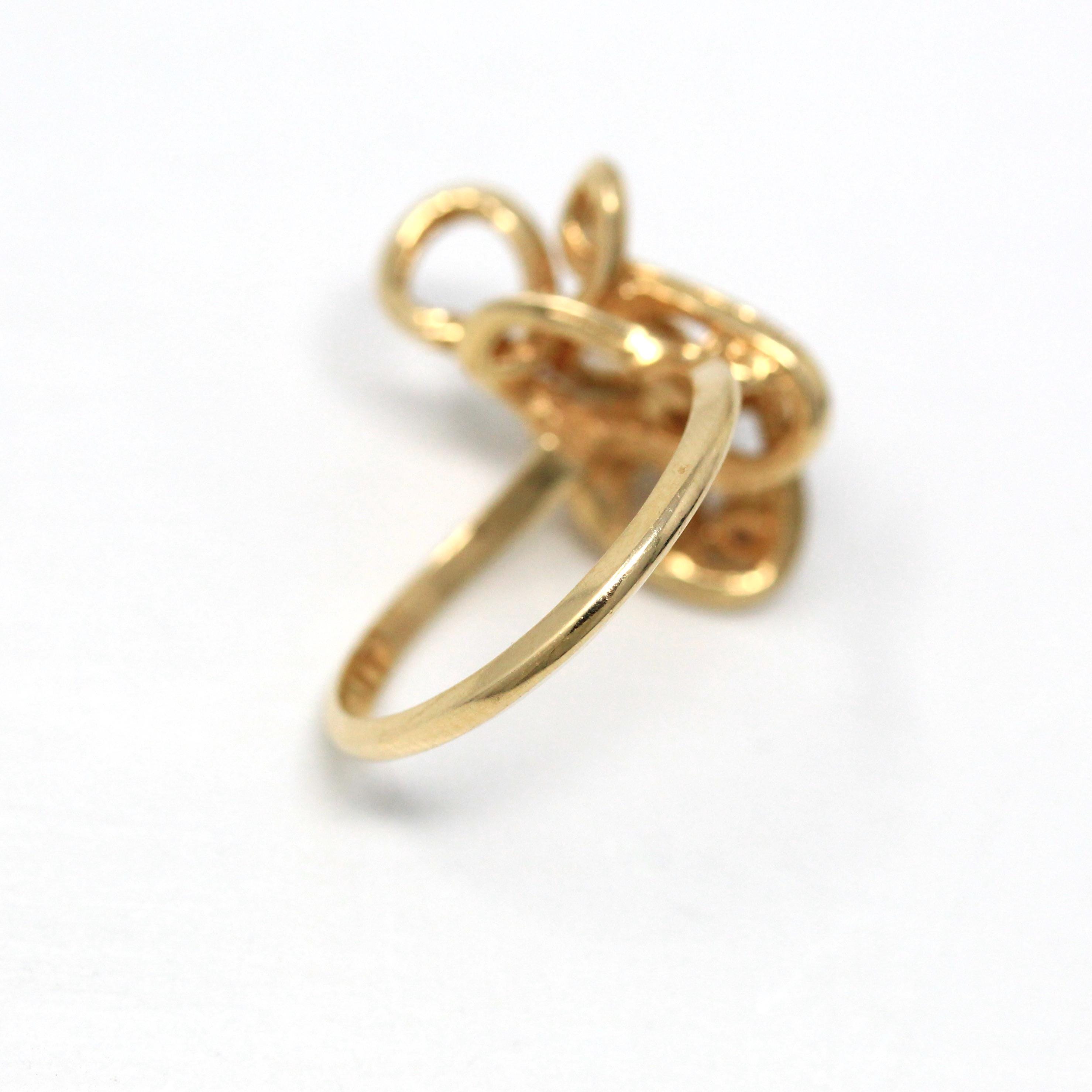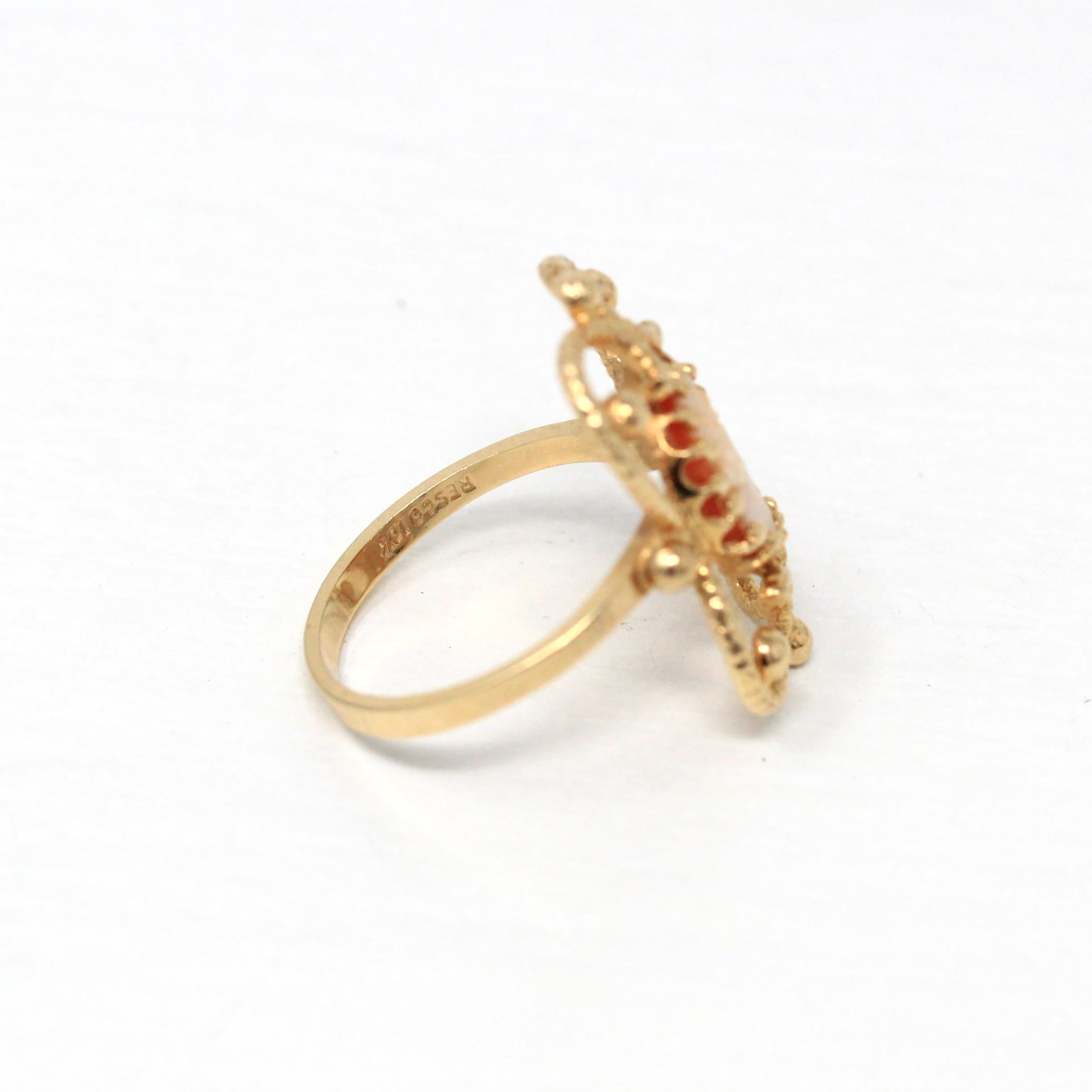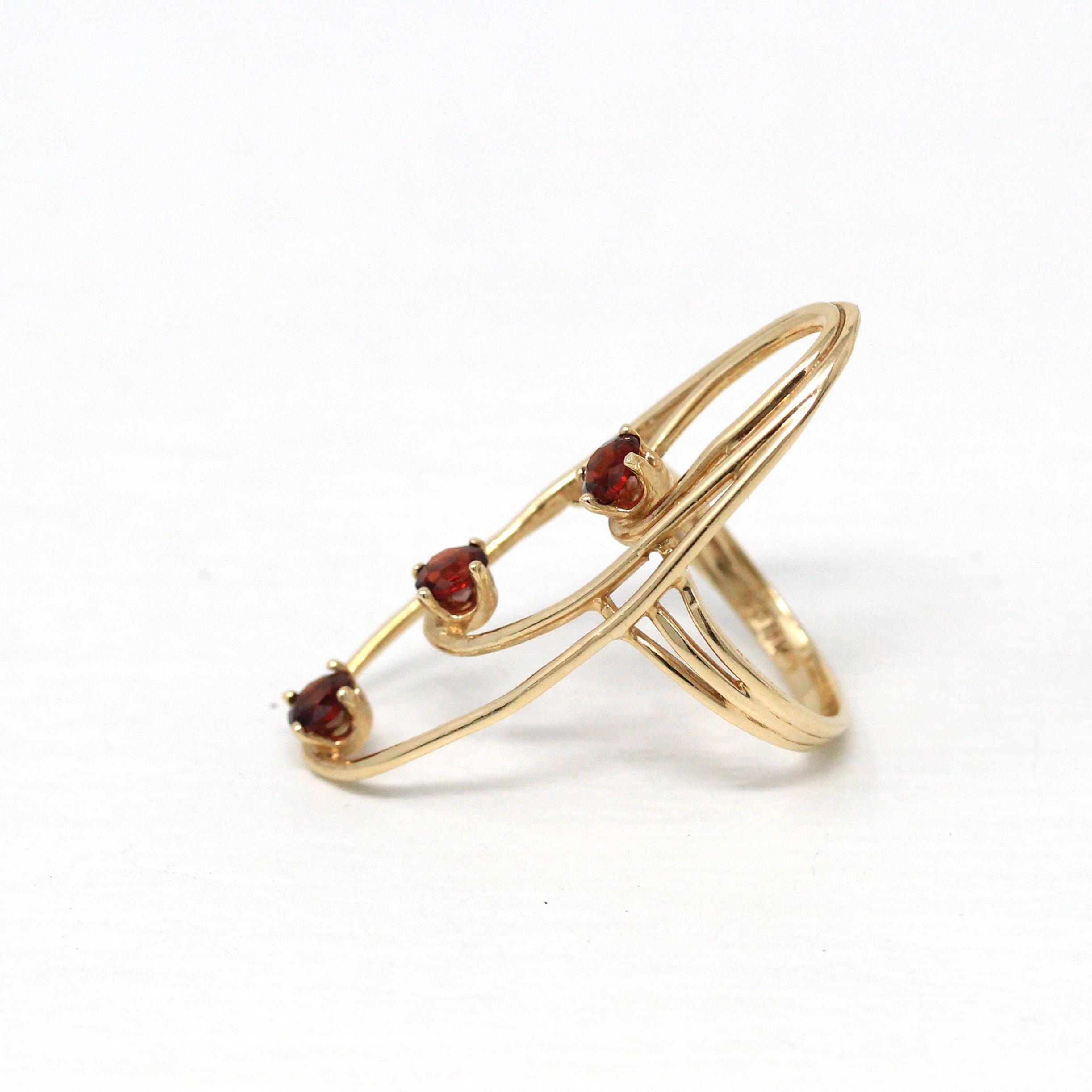Created Star Ruby Ring - Retro 14k Yellow Gold Cabochon Cut Pink Gemstone - Vintage Circa 1960s Era Size 6 1/4 Bypass Fine Statement Jewelry