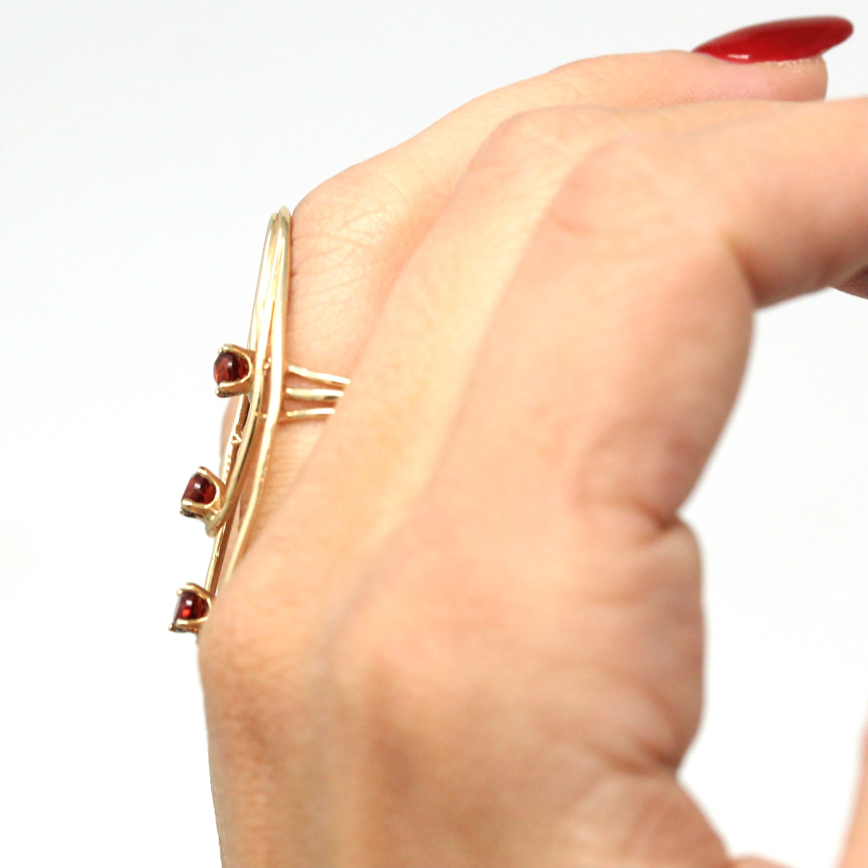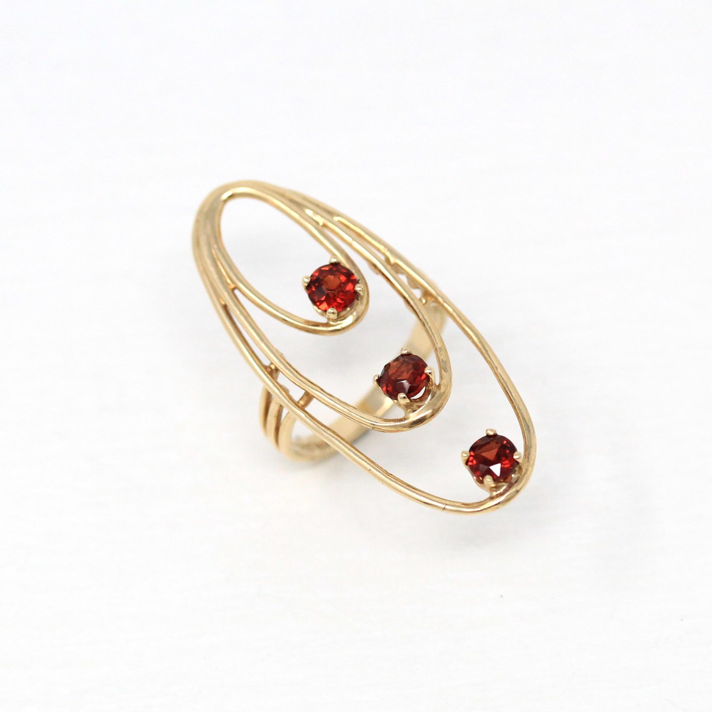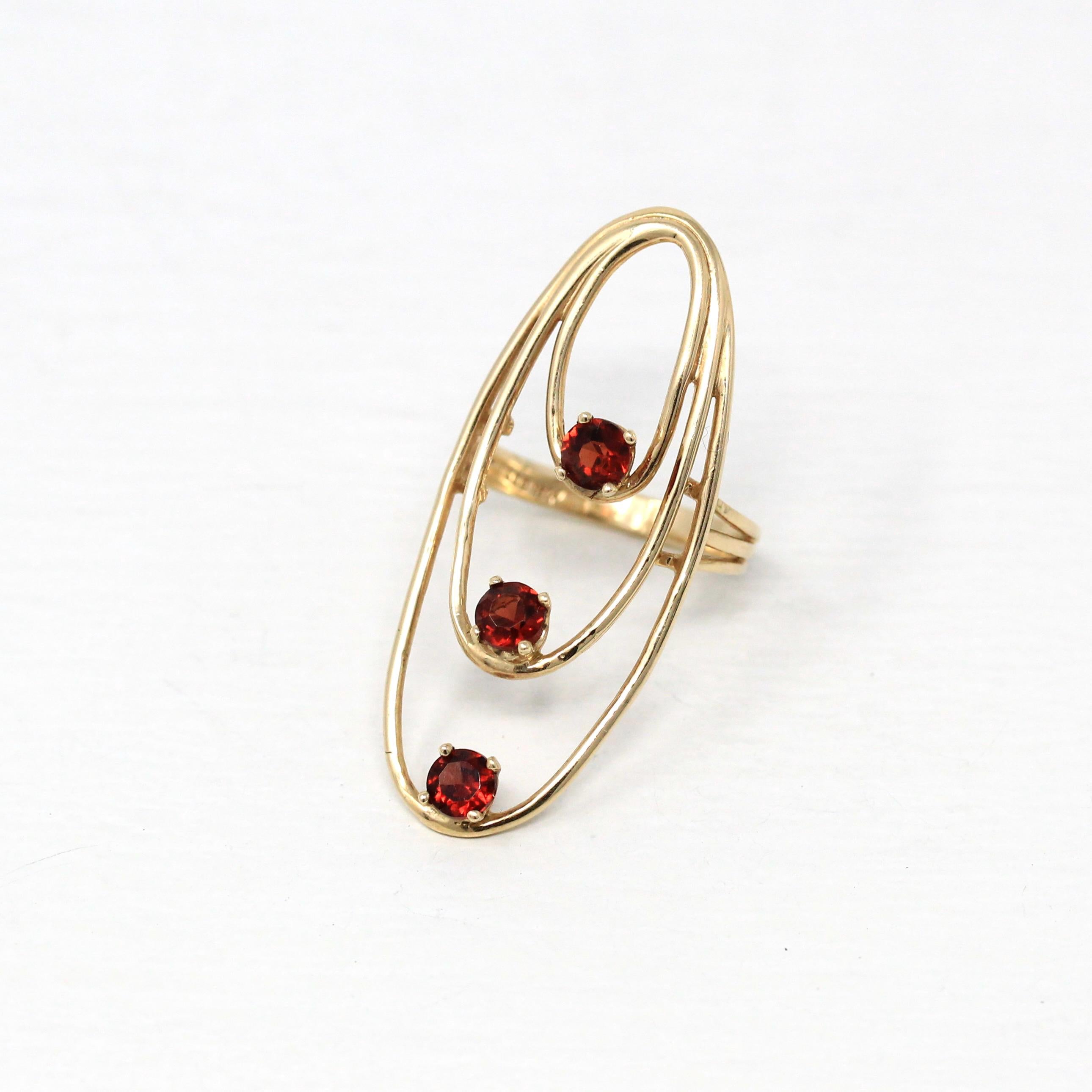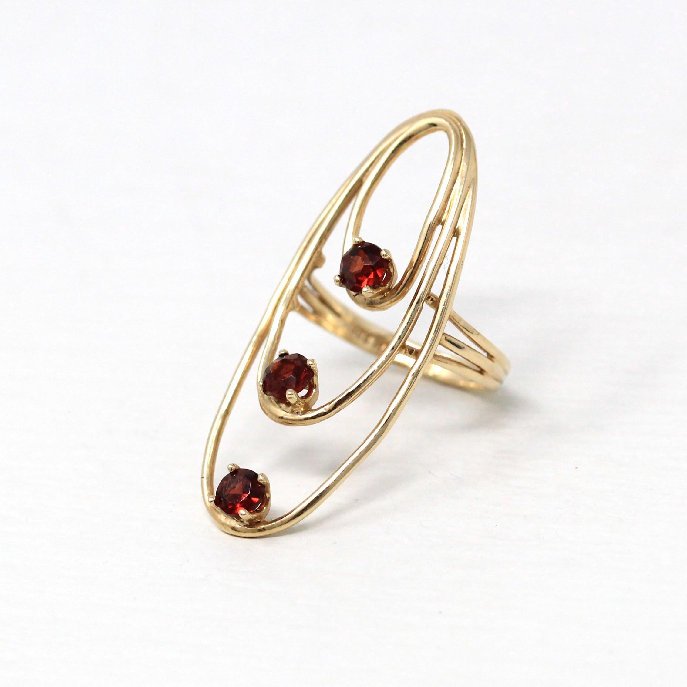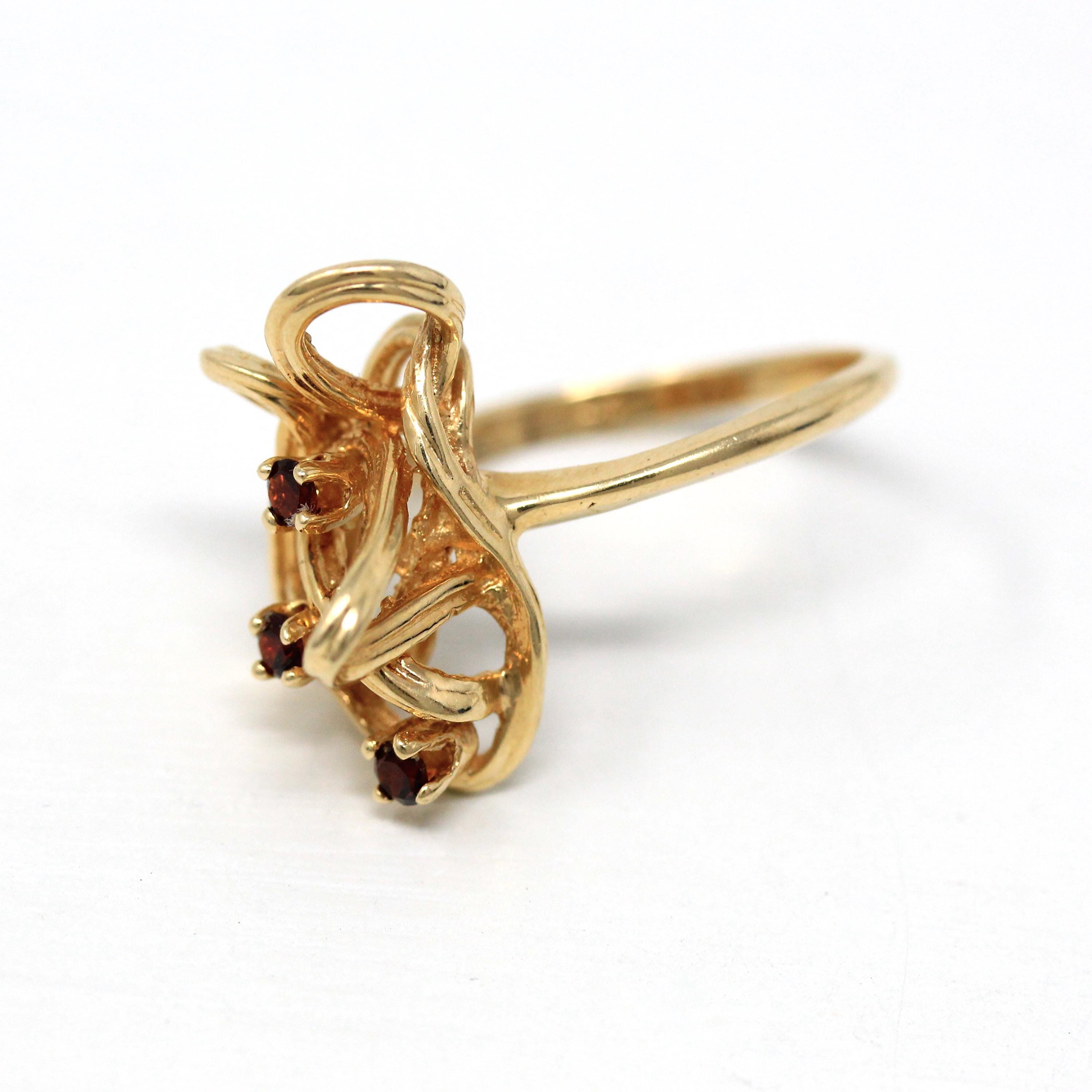 Created Star Ruby Ring - Retro 14k Yellow Gold Cabochon Cut Pink Gemstone - Vintage Circa 1960s Era Size 6 1/4 Bypass Fine Statement Jewelry