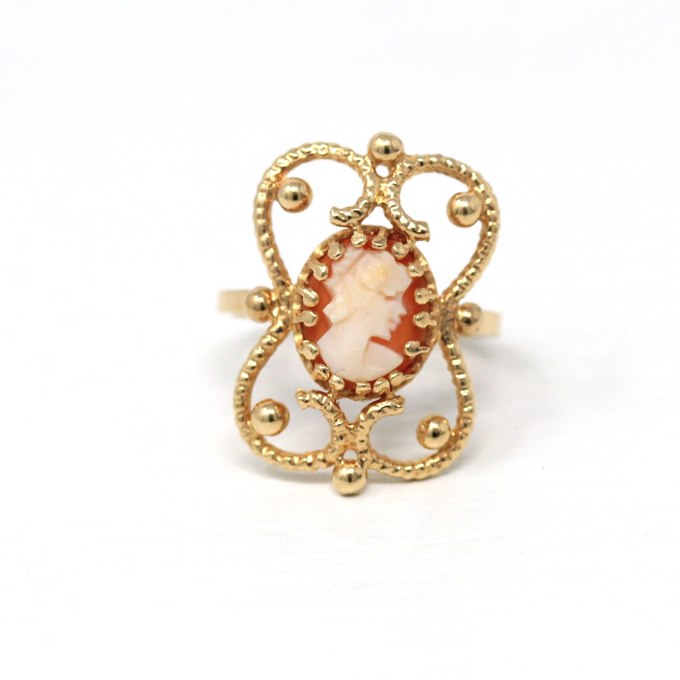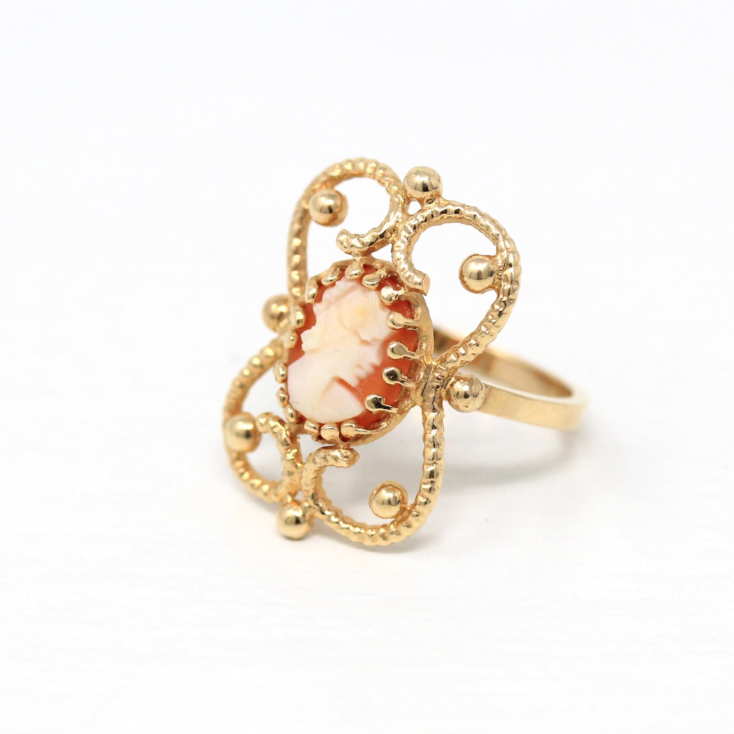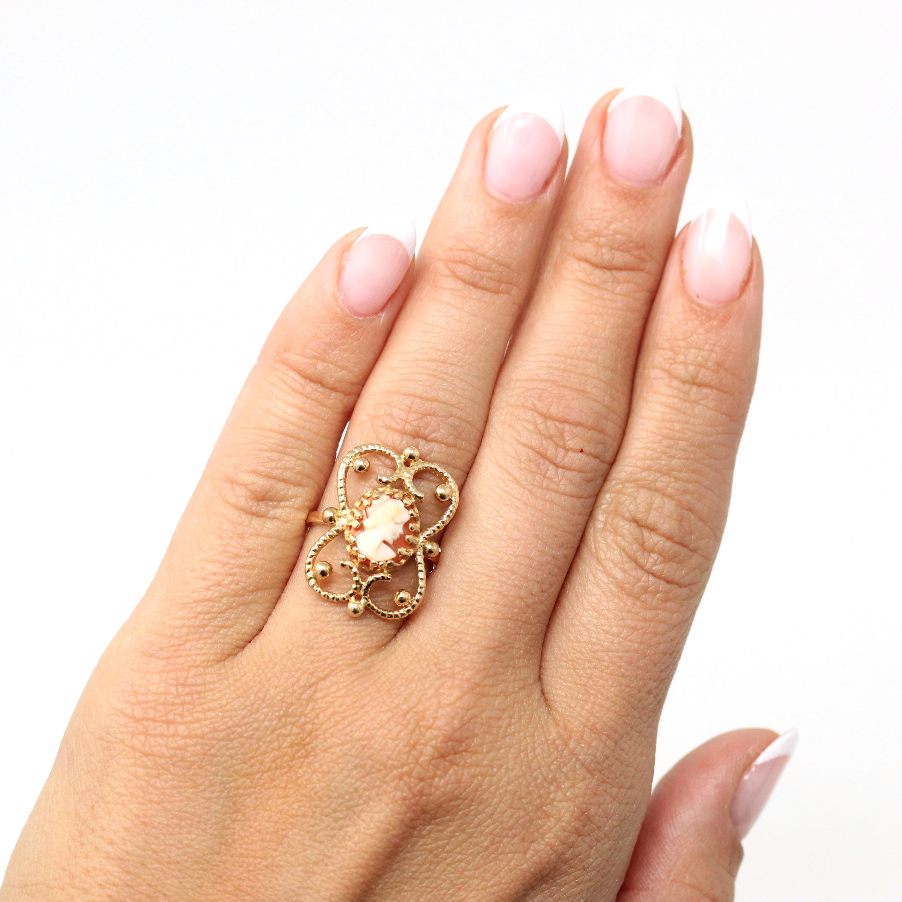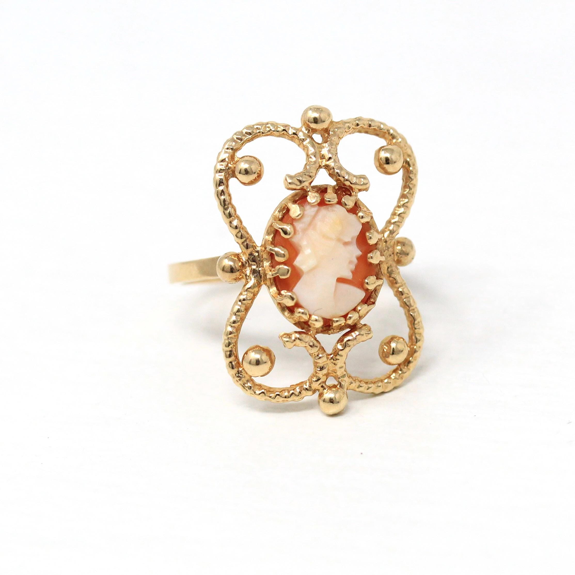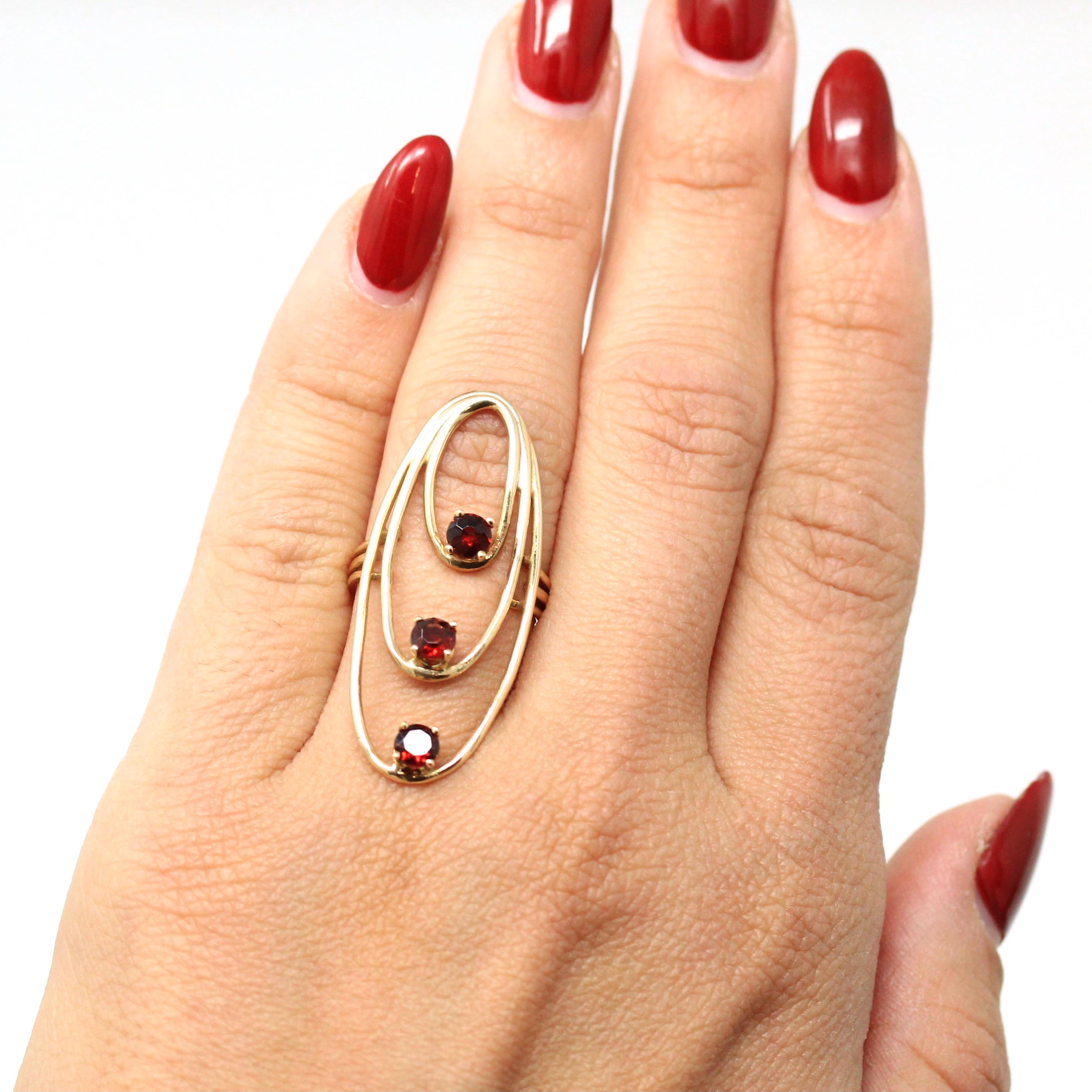 Created Star Ruby Ring - Retro 14k Yellow Gold Cabochon Cut Pink Gemstone - Vintage Circa 1960s Era Size 6 1/4 Bypass Fine Statement Jewelry