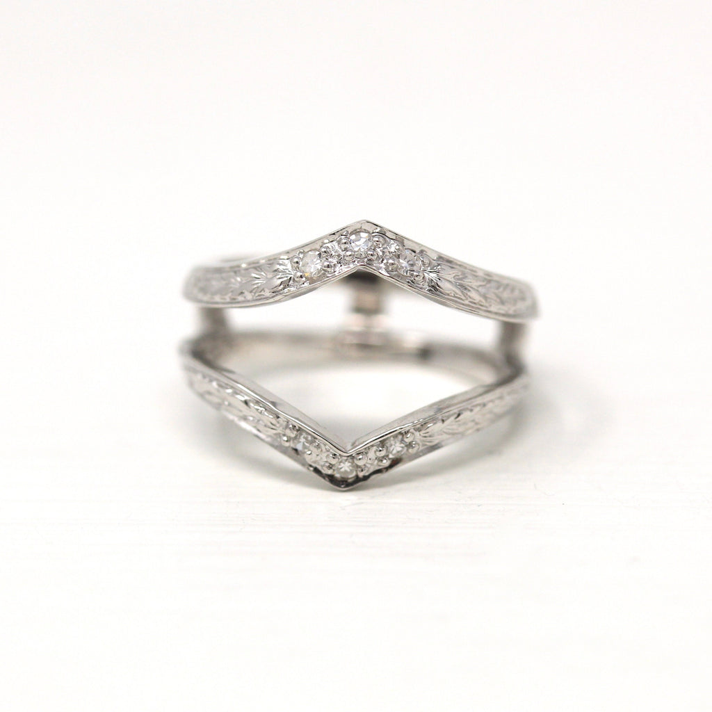 Retro Diamond Band - Vintage 14k White Gold Natural .06 CTW Gemstone Ring - Circa 1950s Size 5 1/4 Fine Mid Century Wedding Bridal Jewelry
