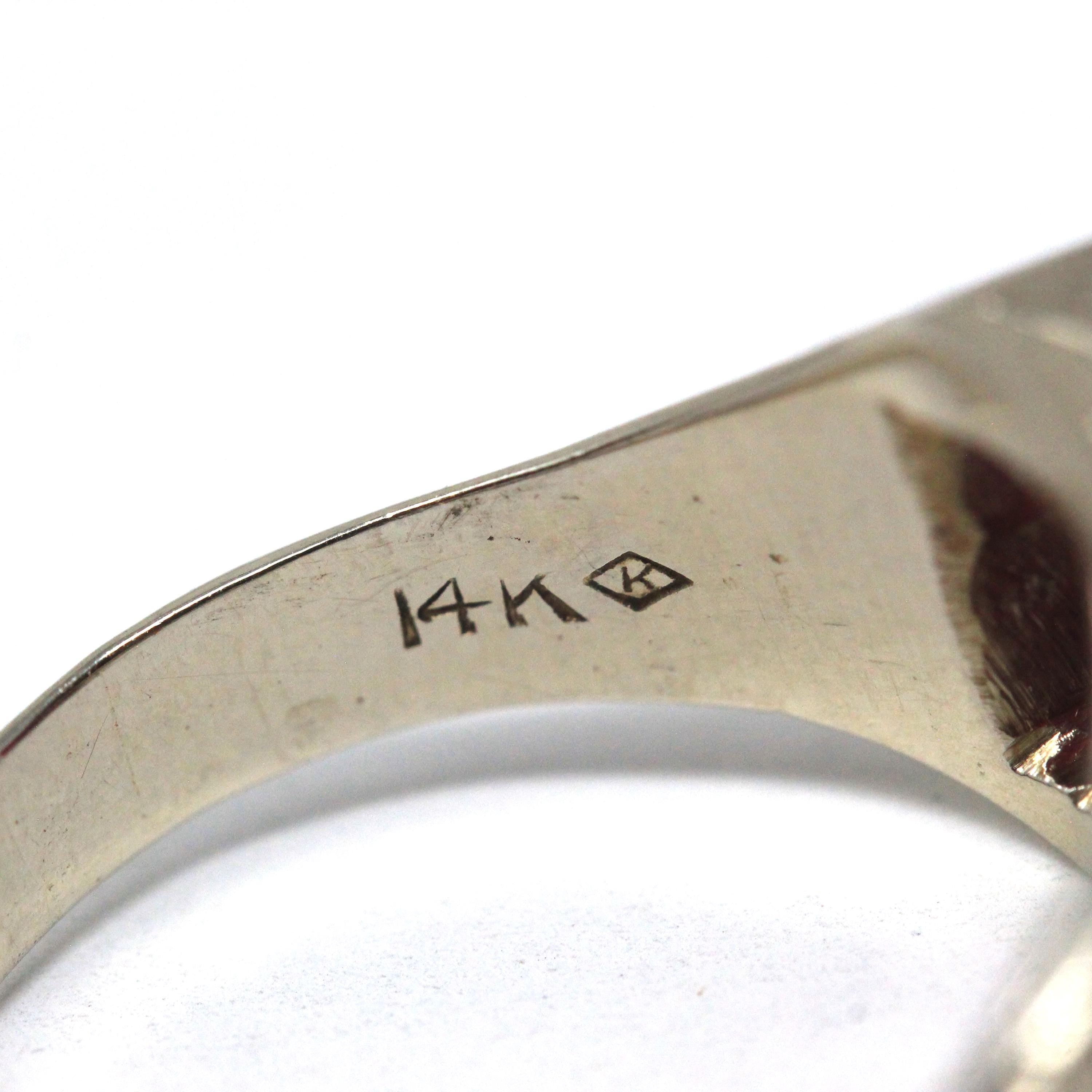 Art Deco Ring - Vintage 14k White Gold Rectangular Created Ruby Gemstone - Circa 1930s Size 10 1/4 Men's Unisex Bow Wheat Fine 30s Jewelry