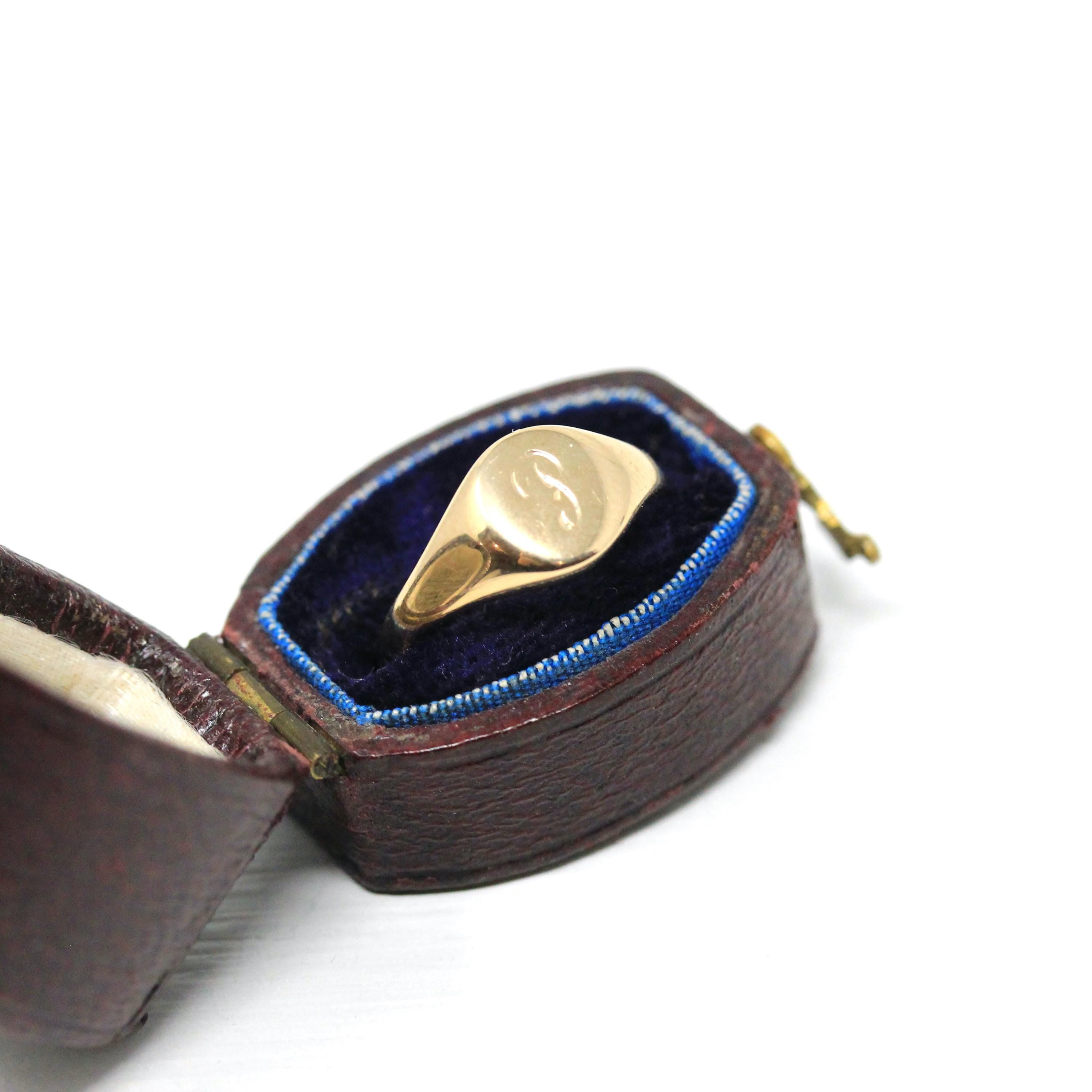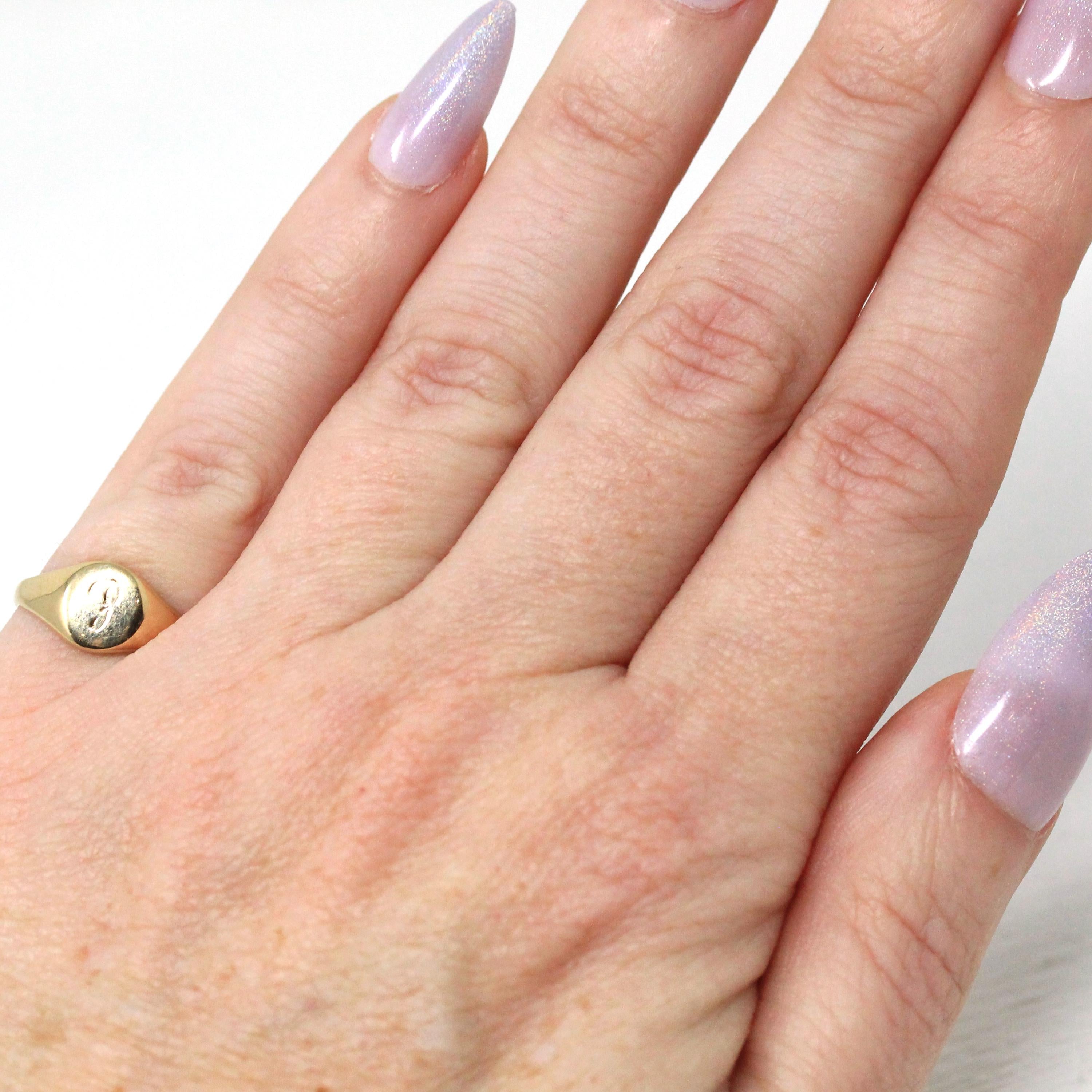 Letter "P" Ring - Retro 14k Yellow Gold Engraved Initial Signet Band - Vintage Circa 1970s Era Size 3 1/2 Pinky Midi Fine Children's Jewelry