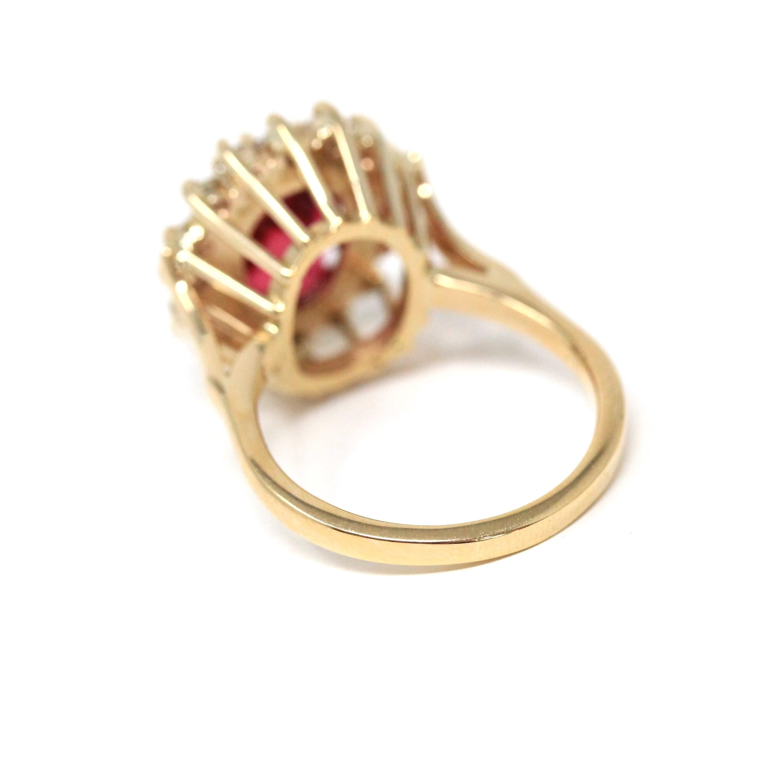 Gorgeous modern estate 14k yellow gold tourmaline and diamond halo ring! This amazing statement halo ring features a center oval faceted pink tourmaline that is surrounded by a halo of sparkly round brilliant cut diamonds. The undergallery is a raised open metal cage style with cathedral style shoulders, and the shank is polished and free of design. A stunning high-profile halo ring, featuring an October birthstone!