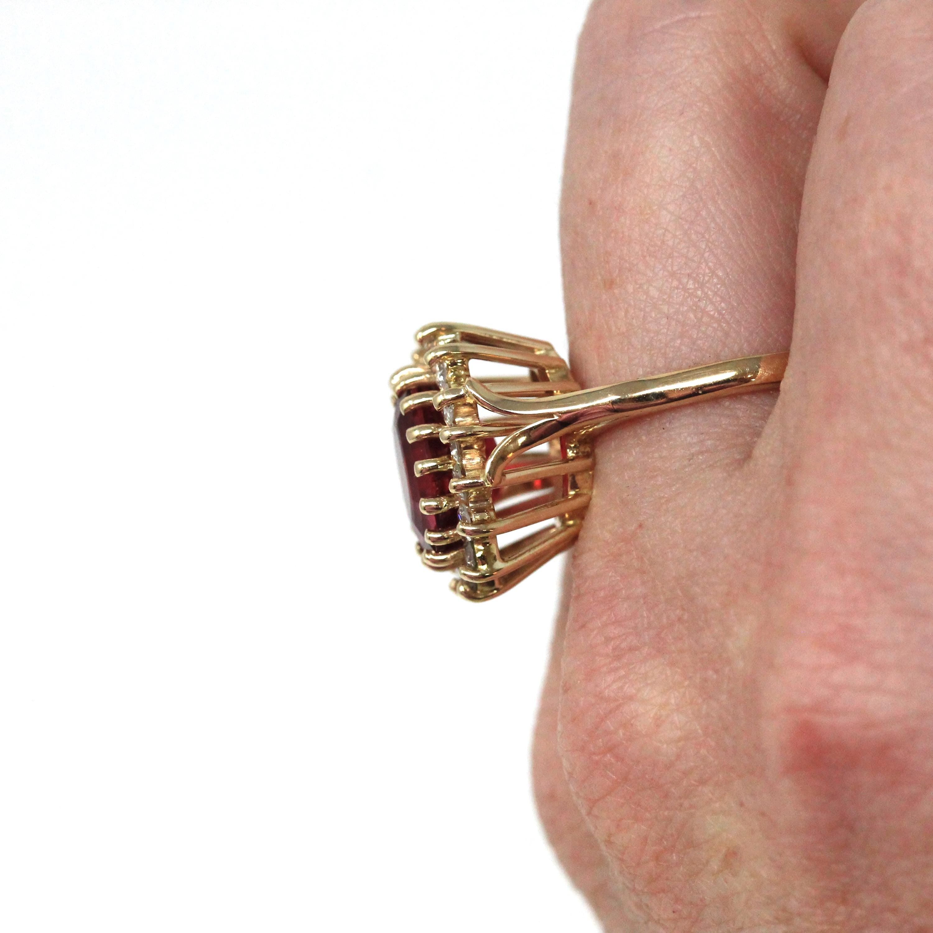 Tourmaline Halo Ring - Modern Era 14k White Gold Large Oval Natural Pink Gemstone Diamond Cluster - Estate Size 7 1/2 Statement Fine Jewelry