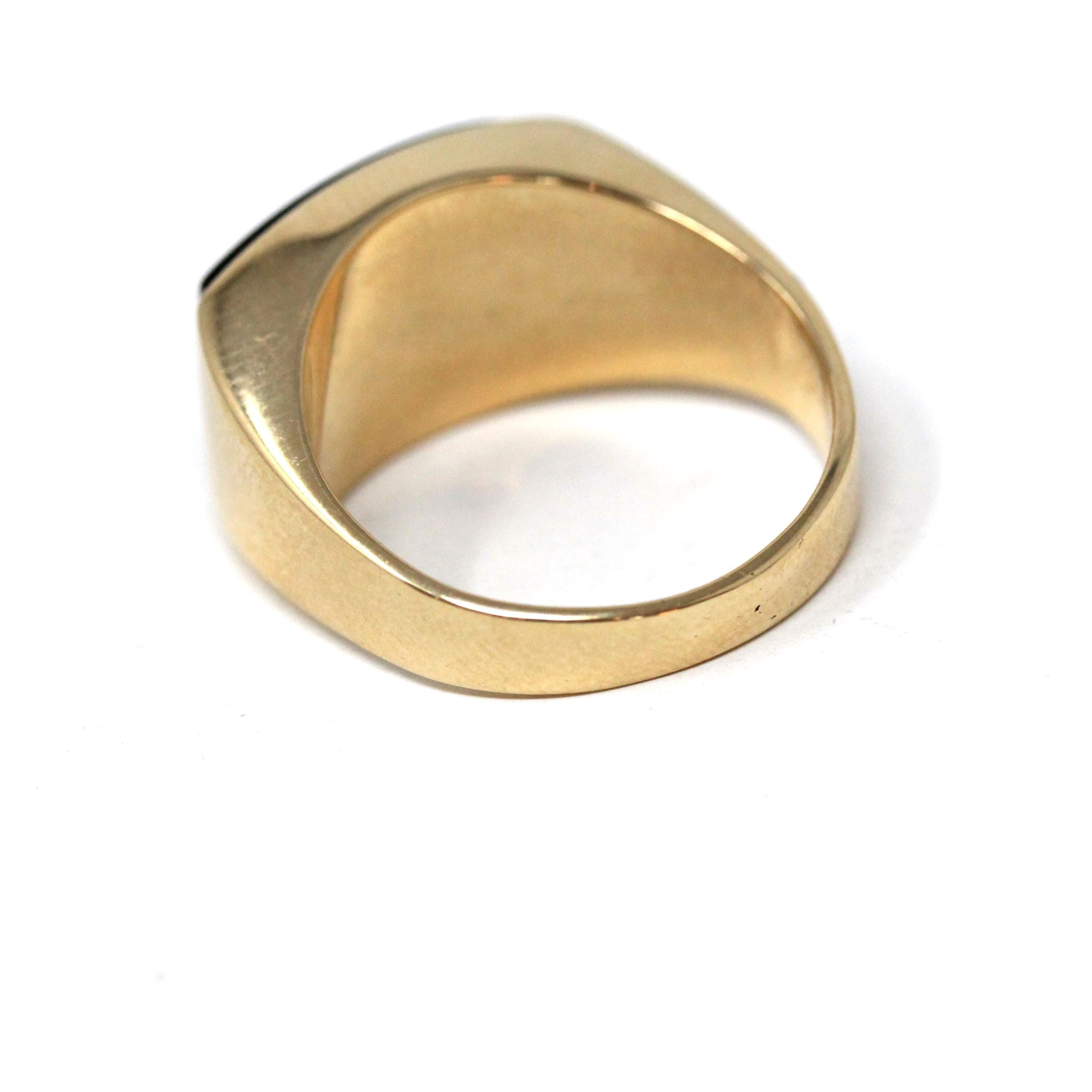 Vintage Onyx Ring - Retro 14k Yellow Gold Black Chalcedony Gemstone Men's Unisex - Vintage Circa 1960s Era Size 8 1/4 Statement Fine Jewelry