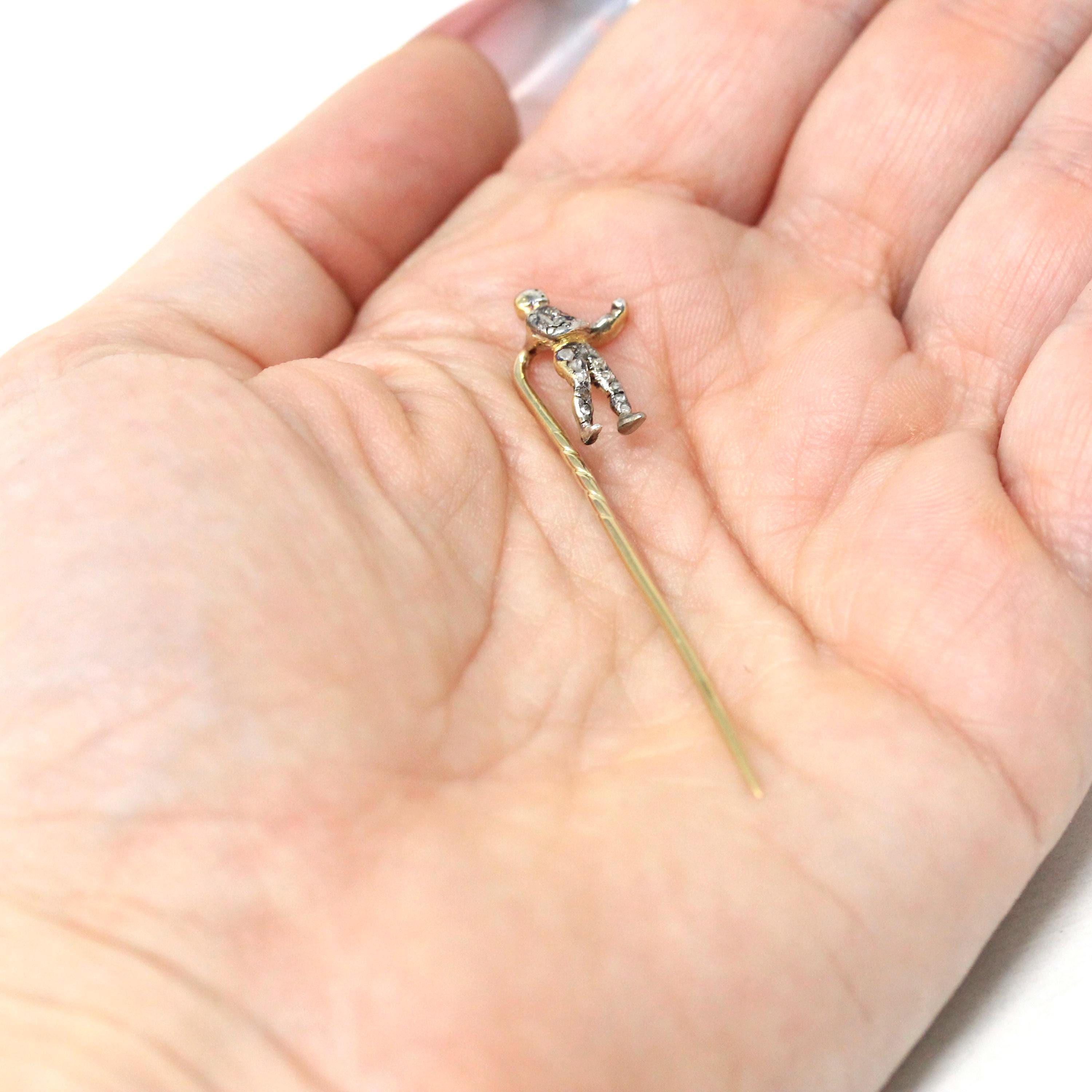 Antique Boxer Pin - Victorian Era Sterling Silver & 14k Yellow Gold Lapel Cravat Brooch - Vintage Late 1800s Pugilist Diamond Fine Jewelry