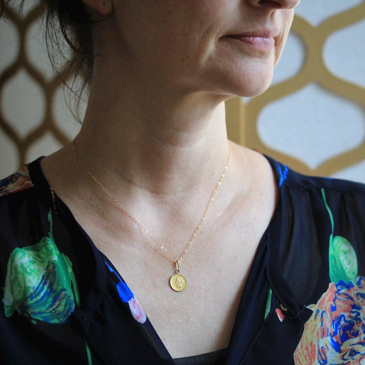 METAL / MATERIAL - 22k yellow gold pendant, 14k yellow gold bail, 14k yellow gold filled chain