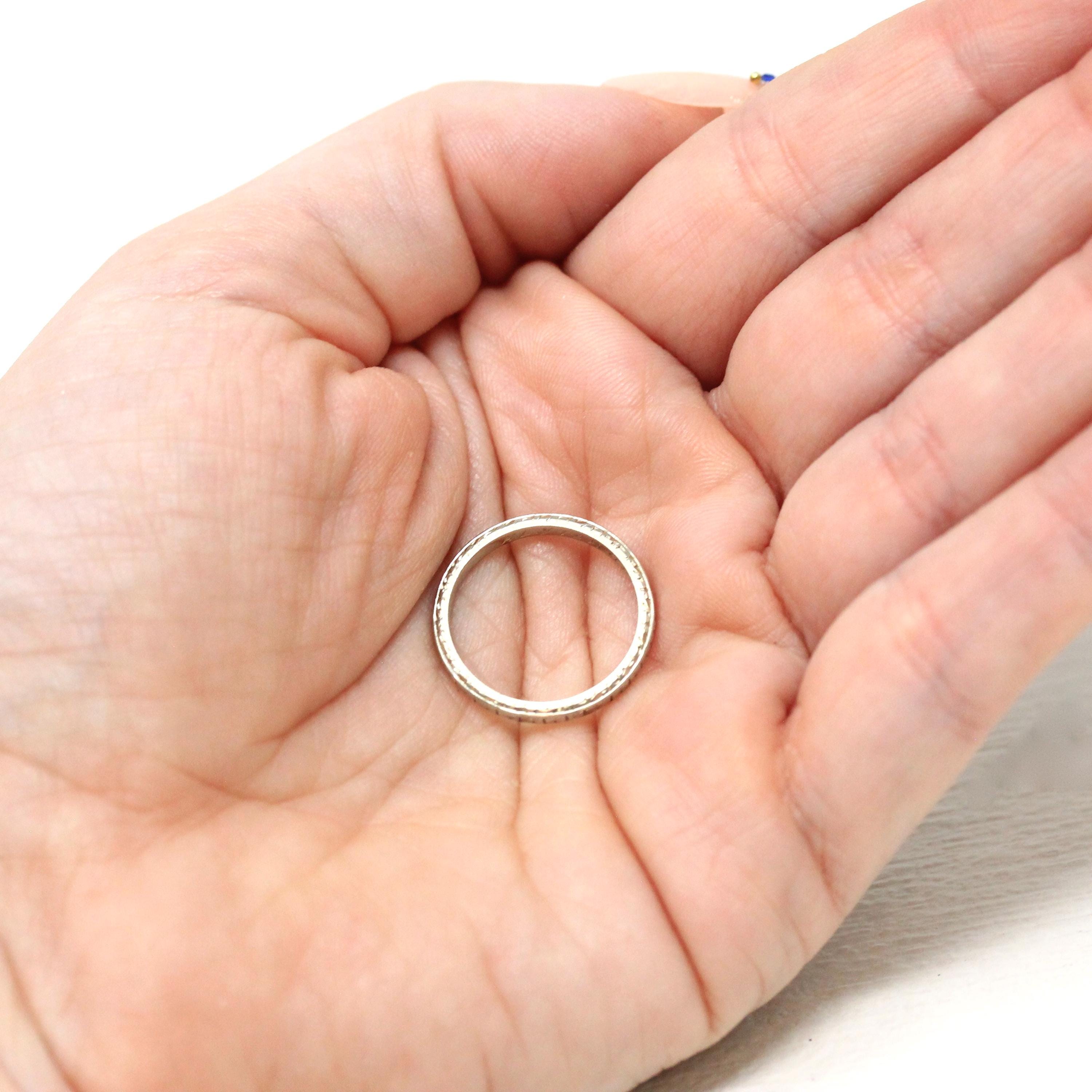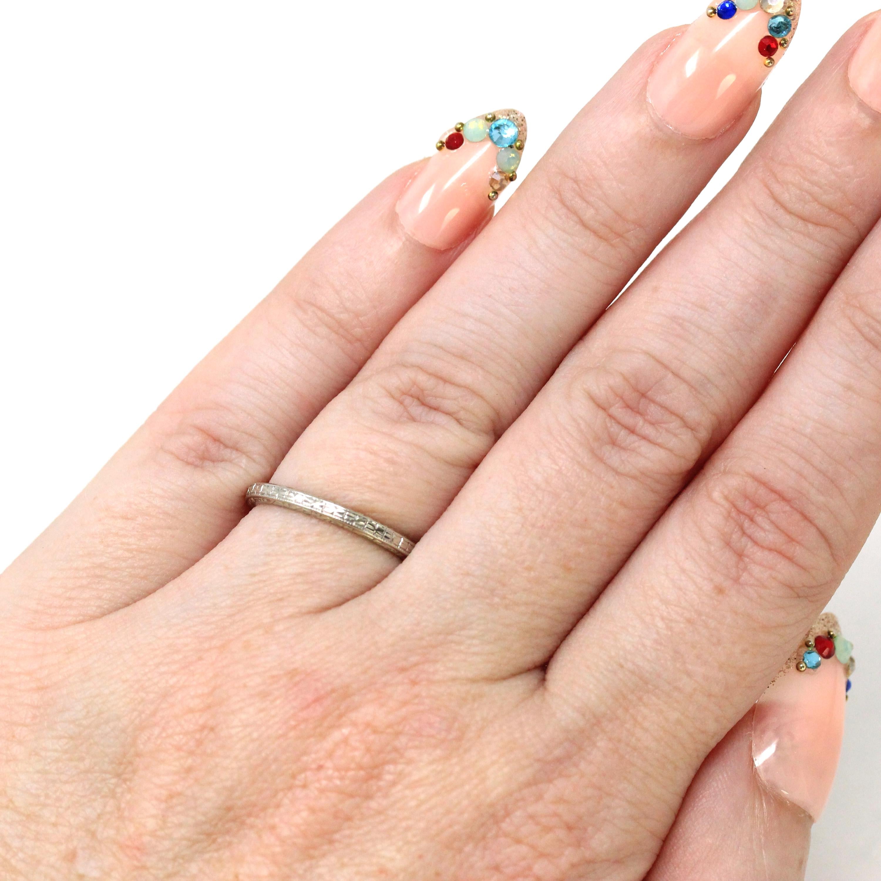Antique Wedding Band - Art Deco Era 18k White Gold Eternity Design Ring - Vintage Dated 1934 Size 4 3/4 Stacking Bridal Fine 1930s Jewelry