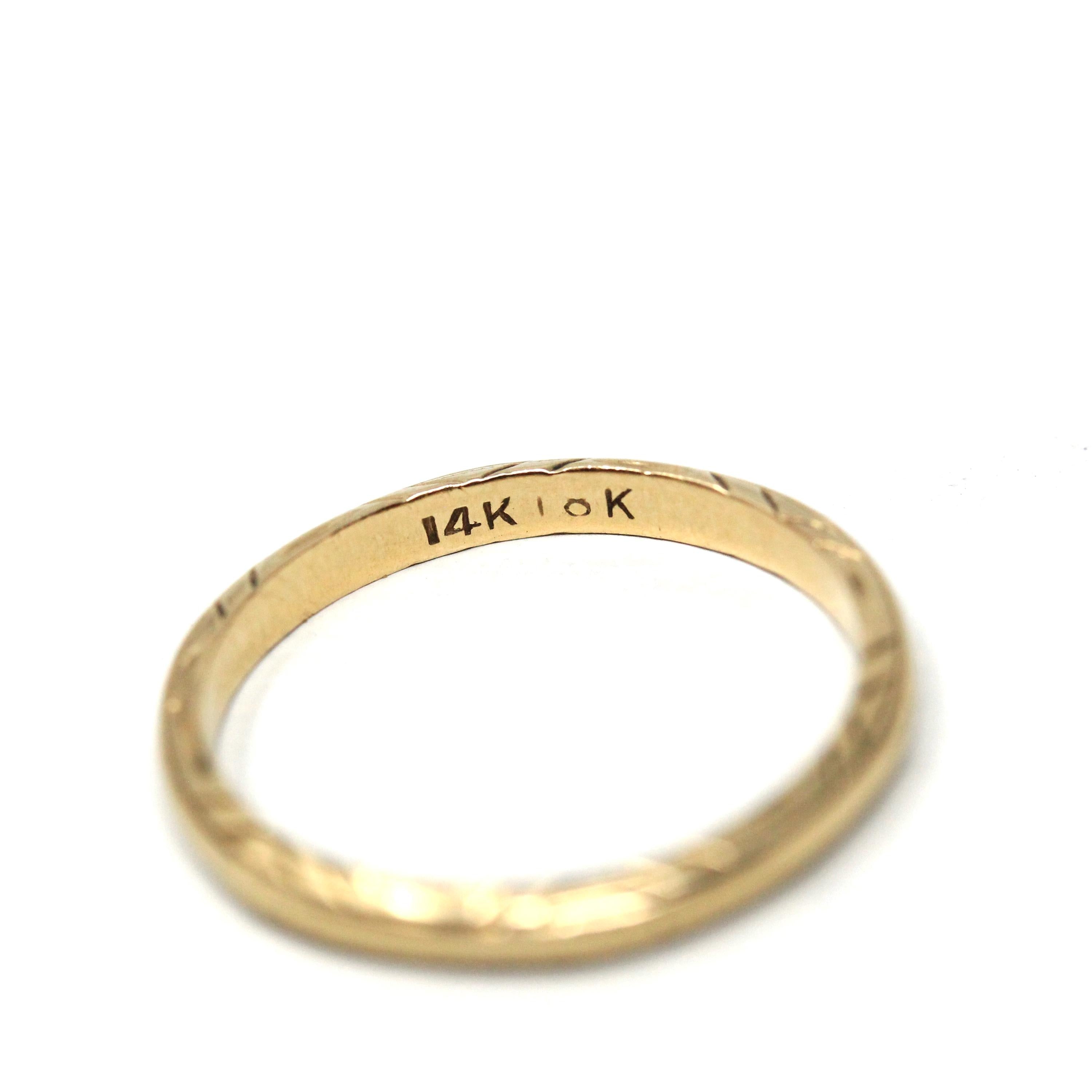 Retro Eternity Band - Circa 1940s 14k Yellow Gold Textured Statement Band - Vintage Size 5 3/4 Diagonal Etched Pattern Fine 40s Era Jewelry