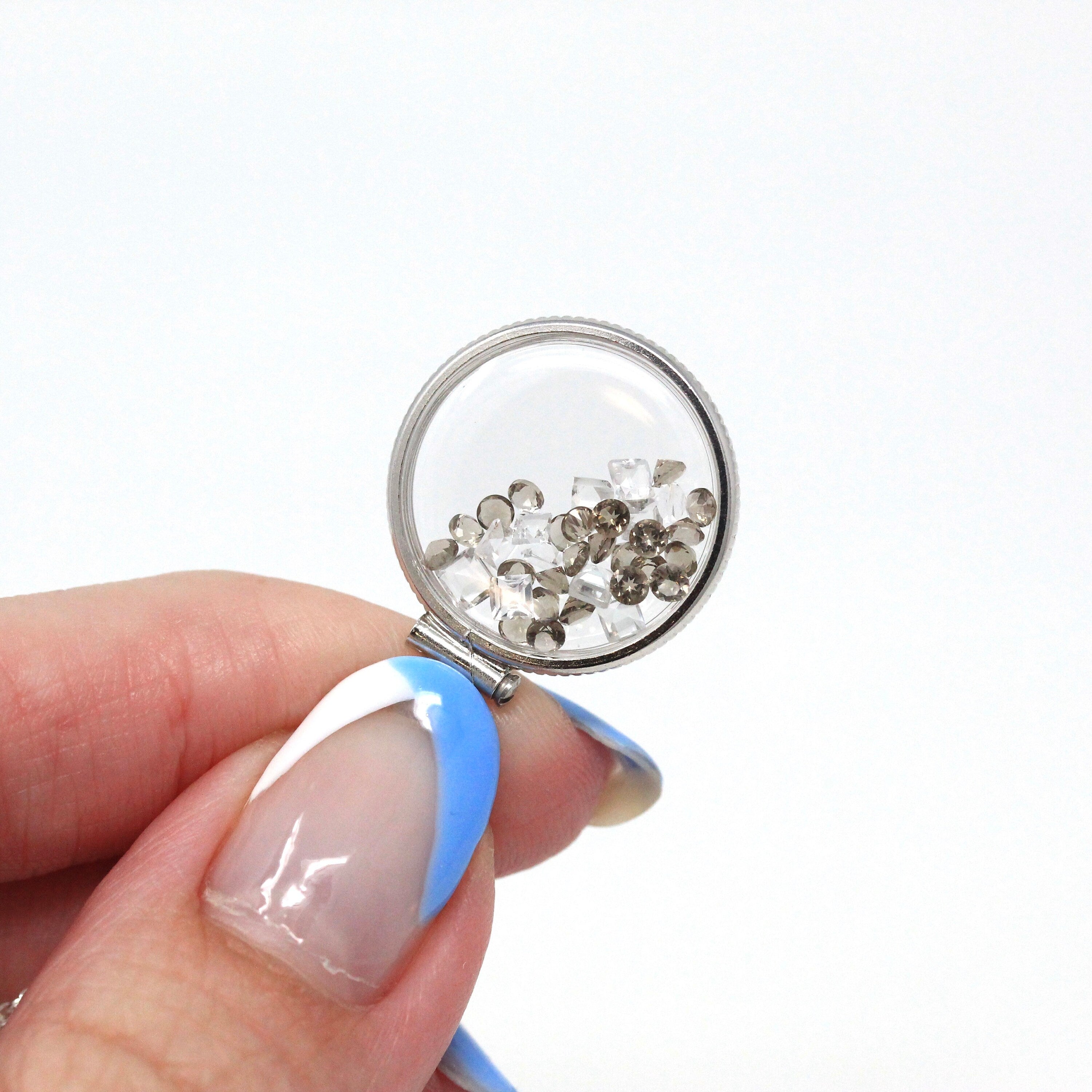 Edelstein-Shaker-Medaillon – handgefertigter Anhänger aus Sterlingsilber mit Lucite-Anhänger – echter Rauchquarz und weißer Topas, 1,5 Karat, Edelsteinschmuck