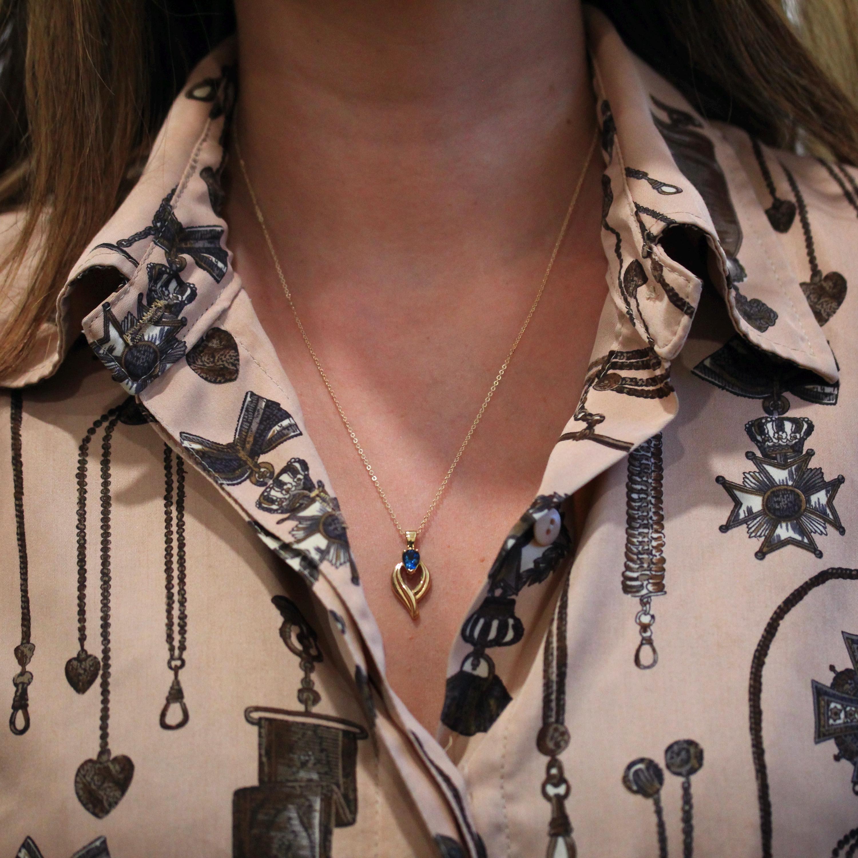 CONDITION - Good condition. Yellow gold metal has been professionally polished & cleaned. London blue topaz is securely prong set. Amazing modern topaz necklace!
