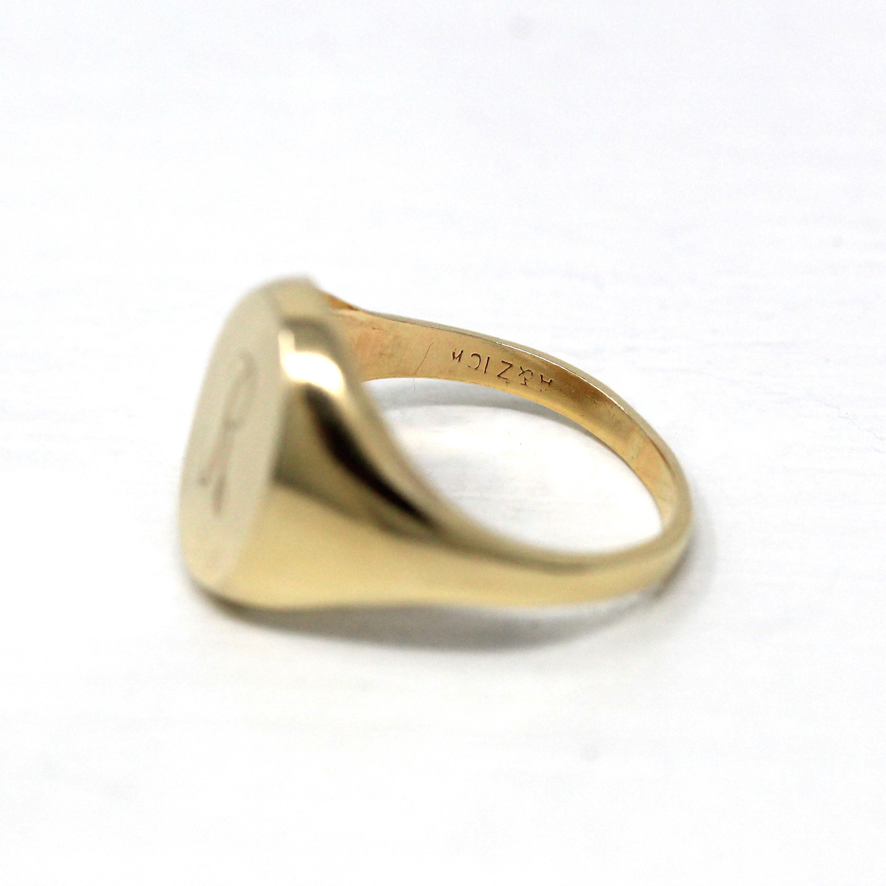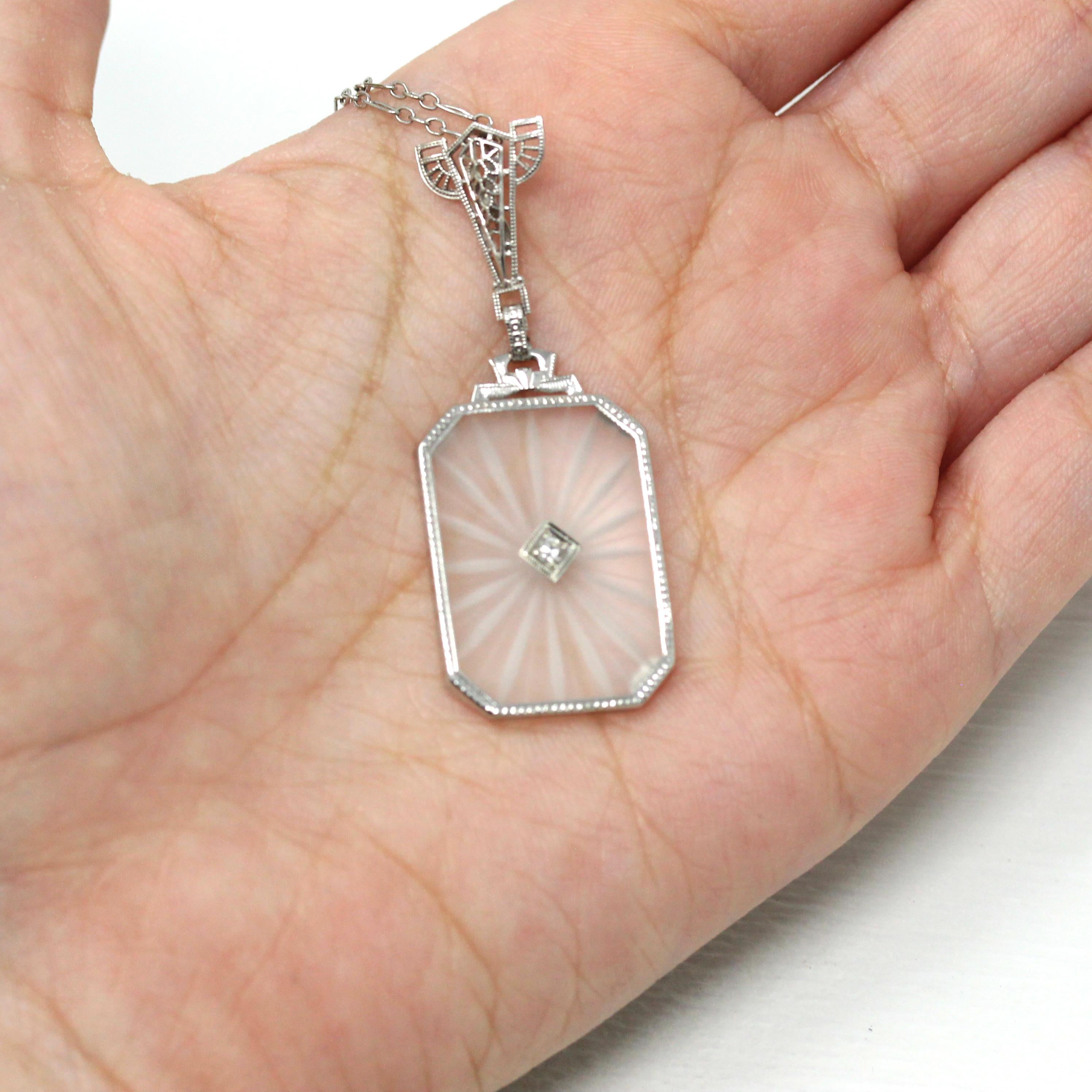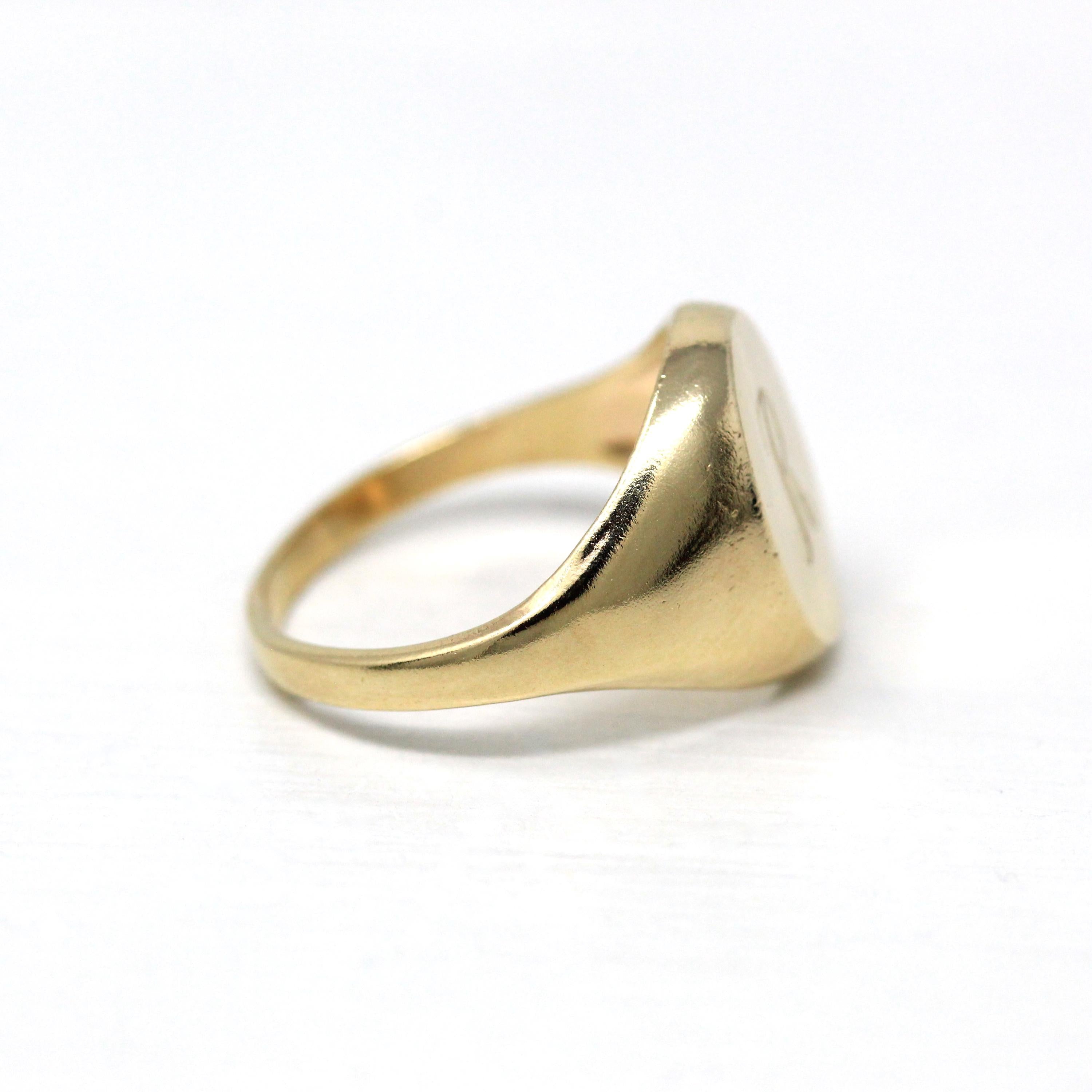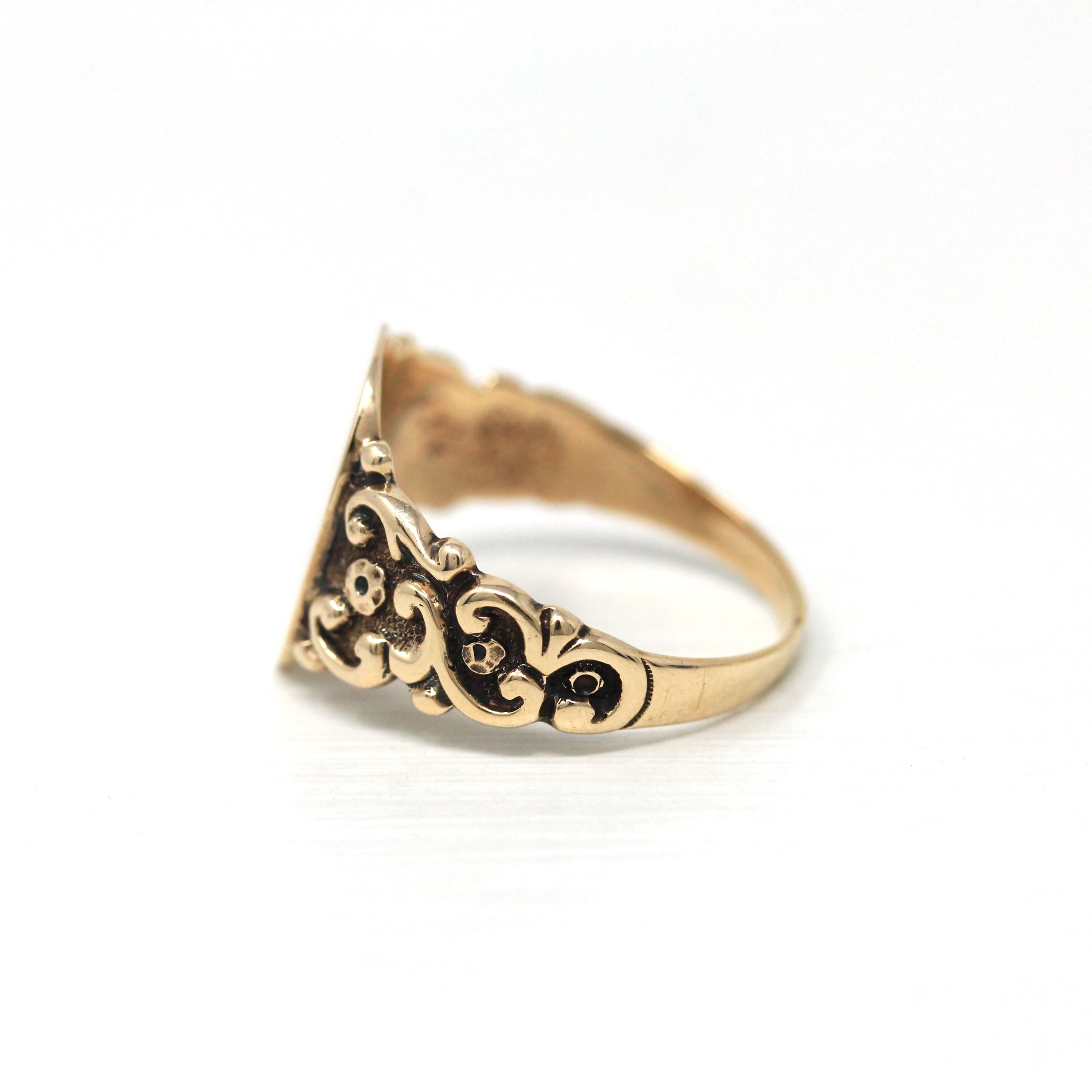 Onyx & Diamond Ring - Art Deco 14k White Gold Carved Black Gem Rectangle Filigree - Vintage Circa 1930s Sz 3.5 Fine Engraved Signet Jewelry
