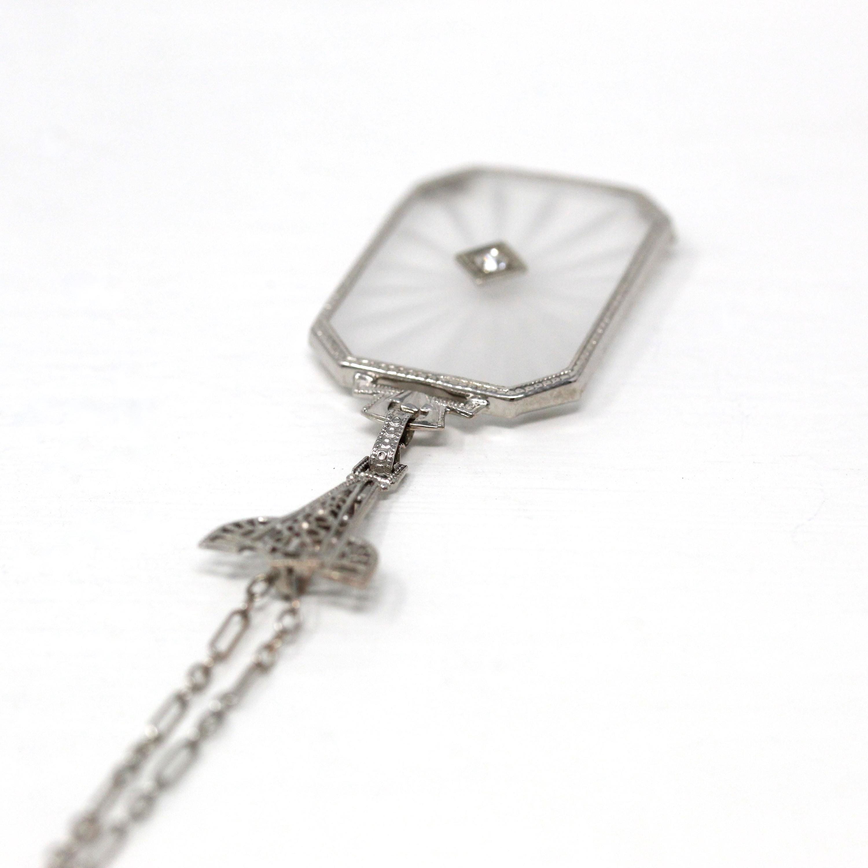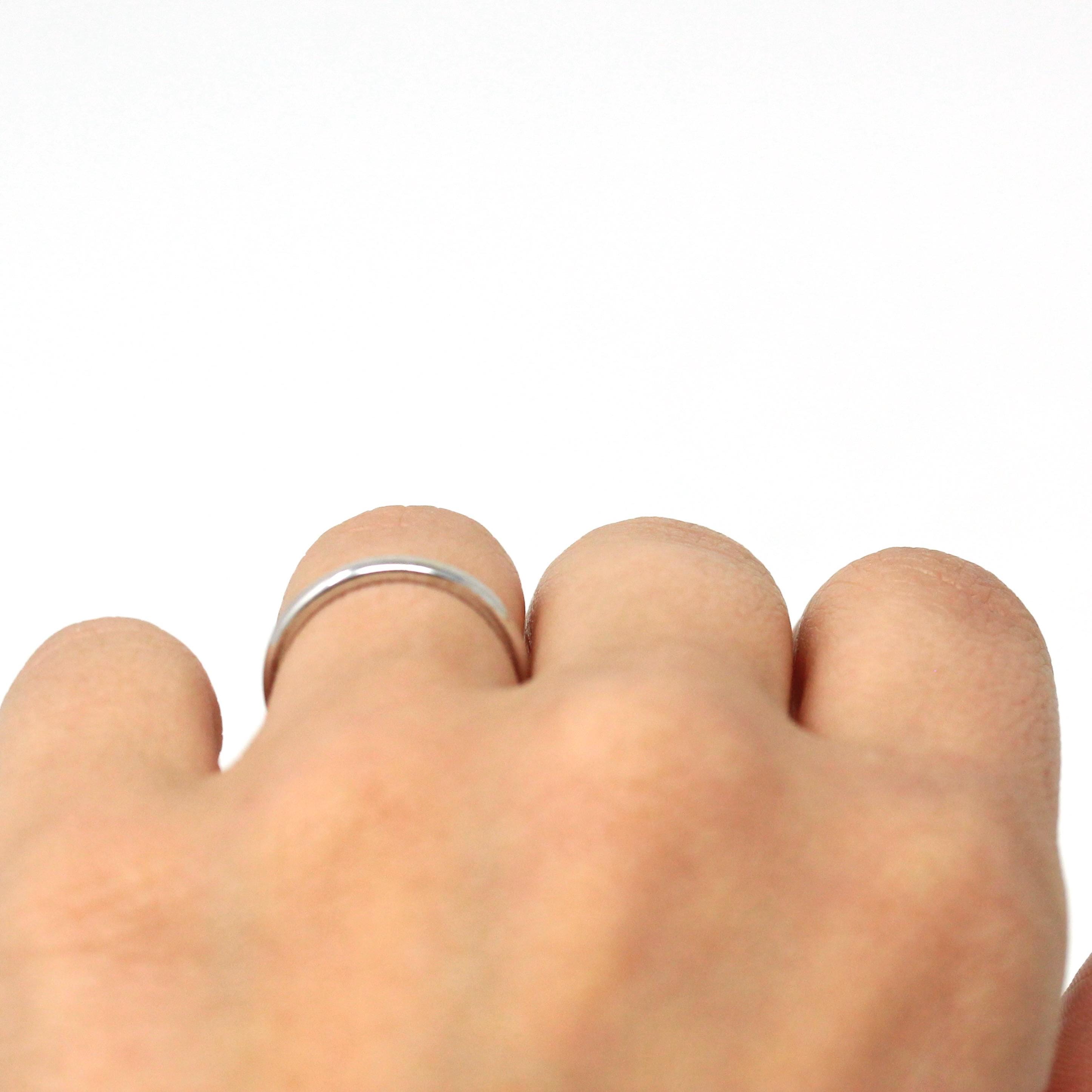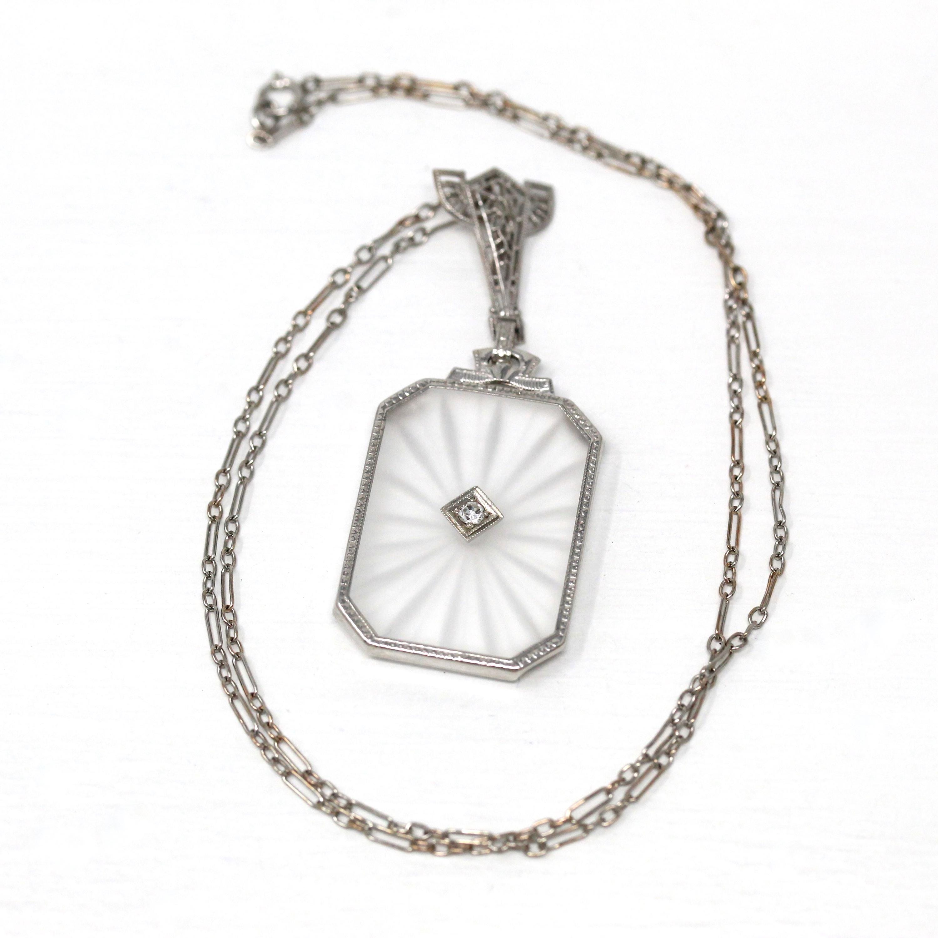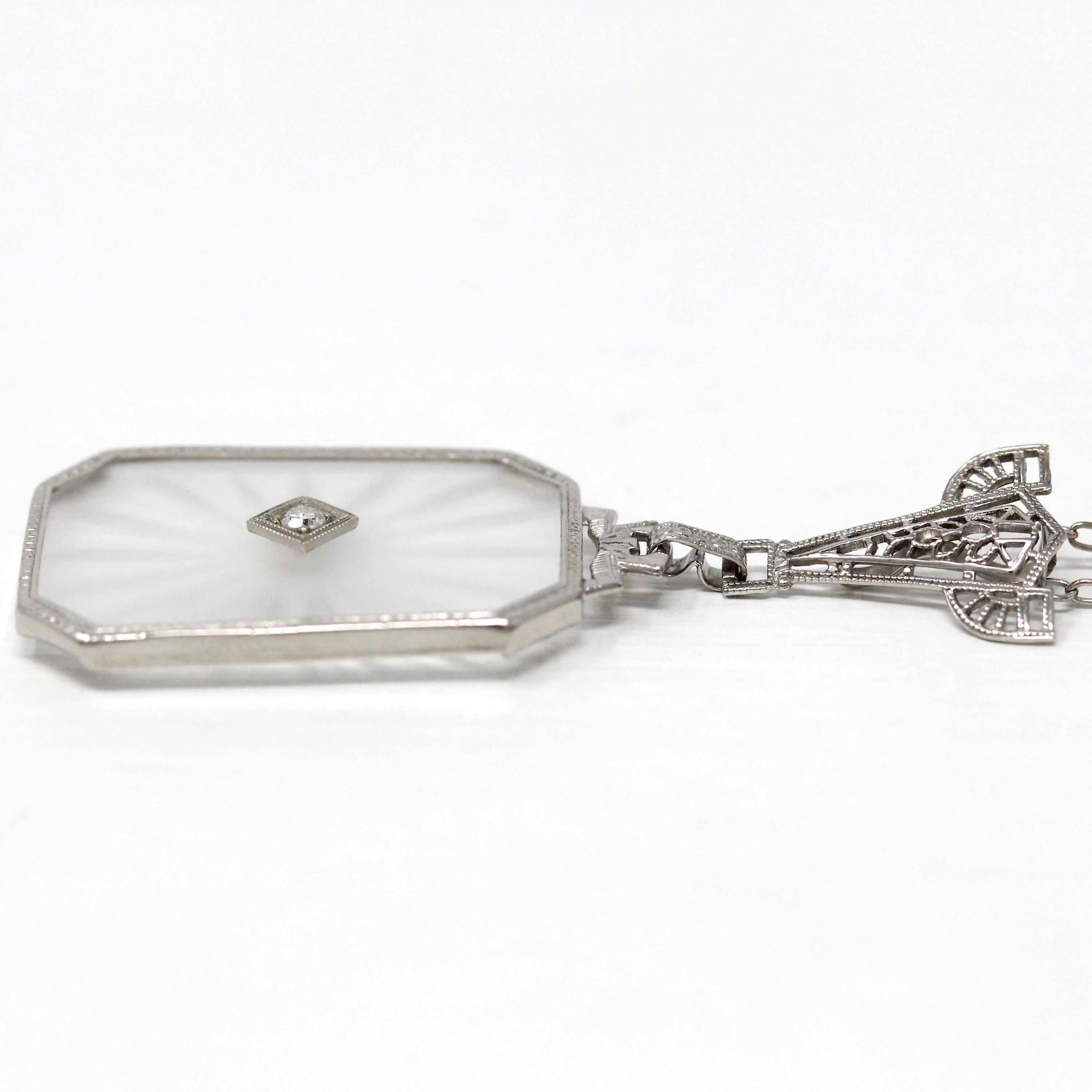Onyx & Diamond Ring - Art Deco 14k White Gold Carved Black Gem Rectangle Filigree - Vintage Circa 1930s Sz 3.5 Fine Engraved Signet Jewelry