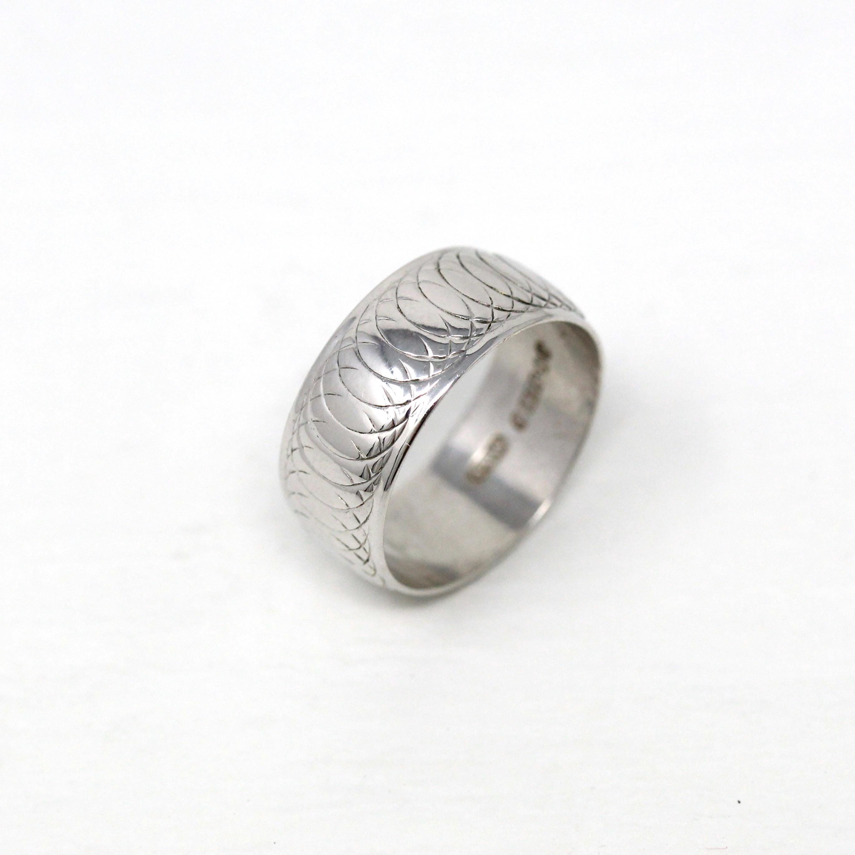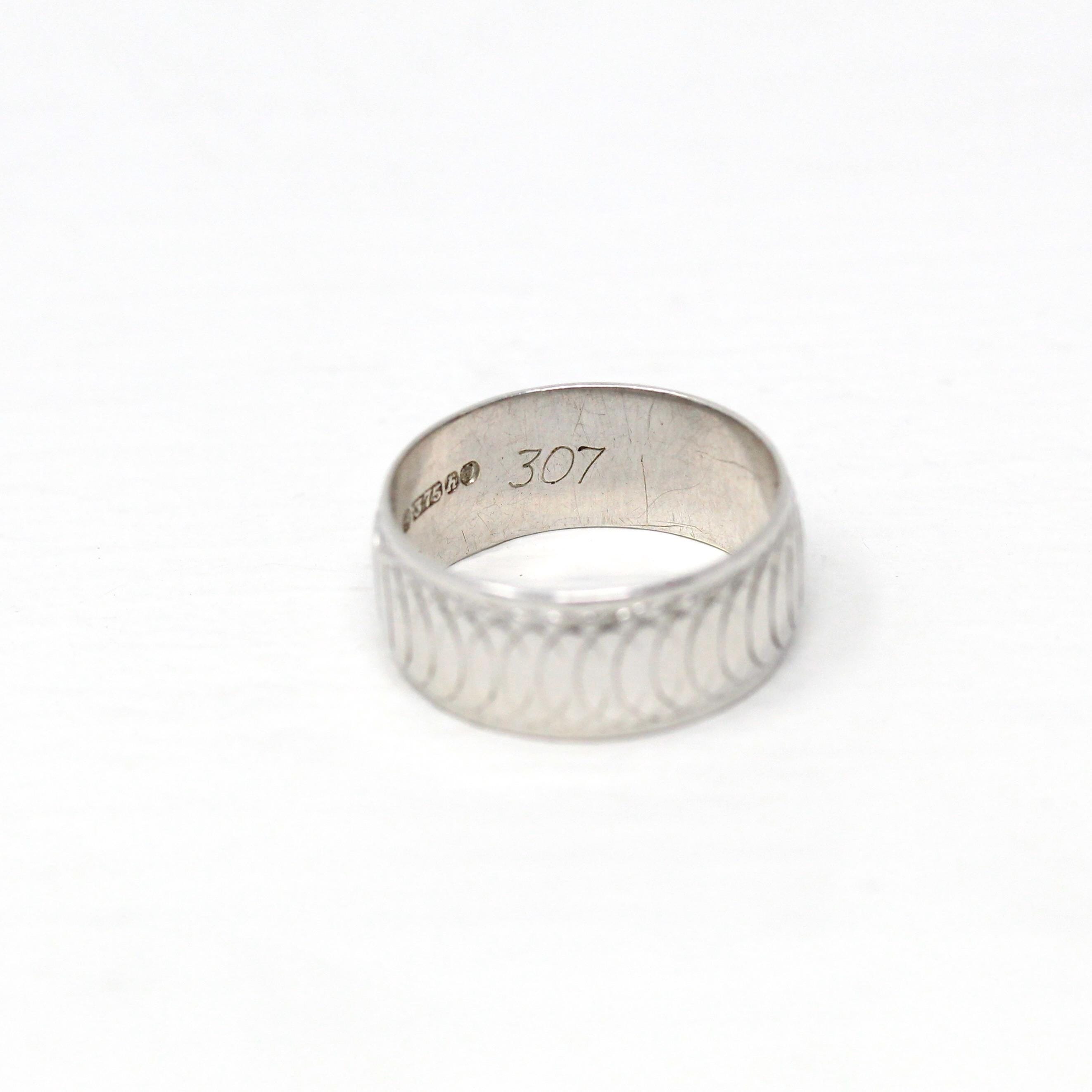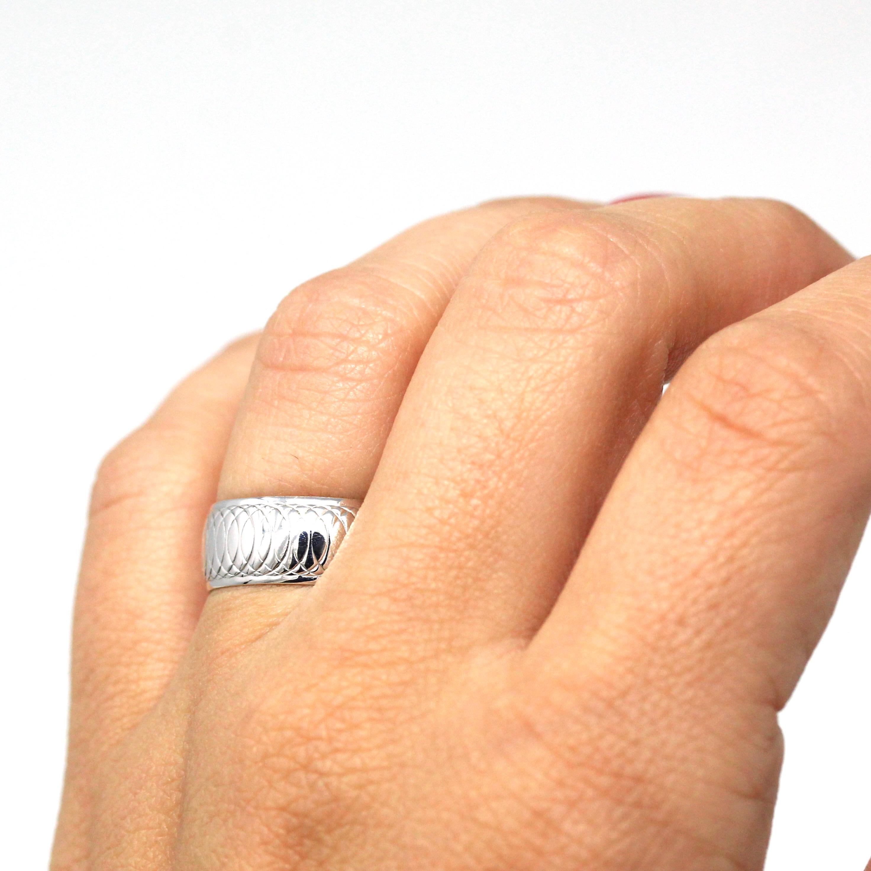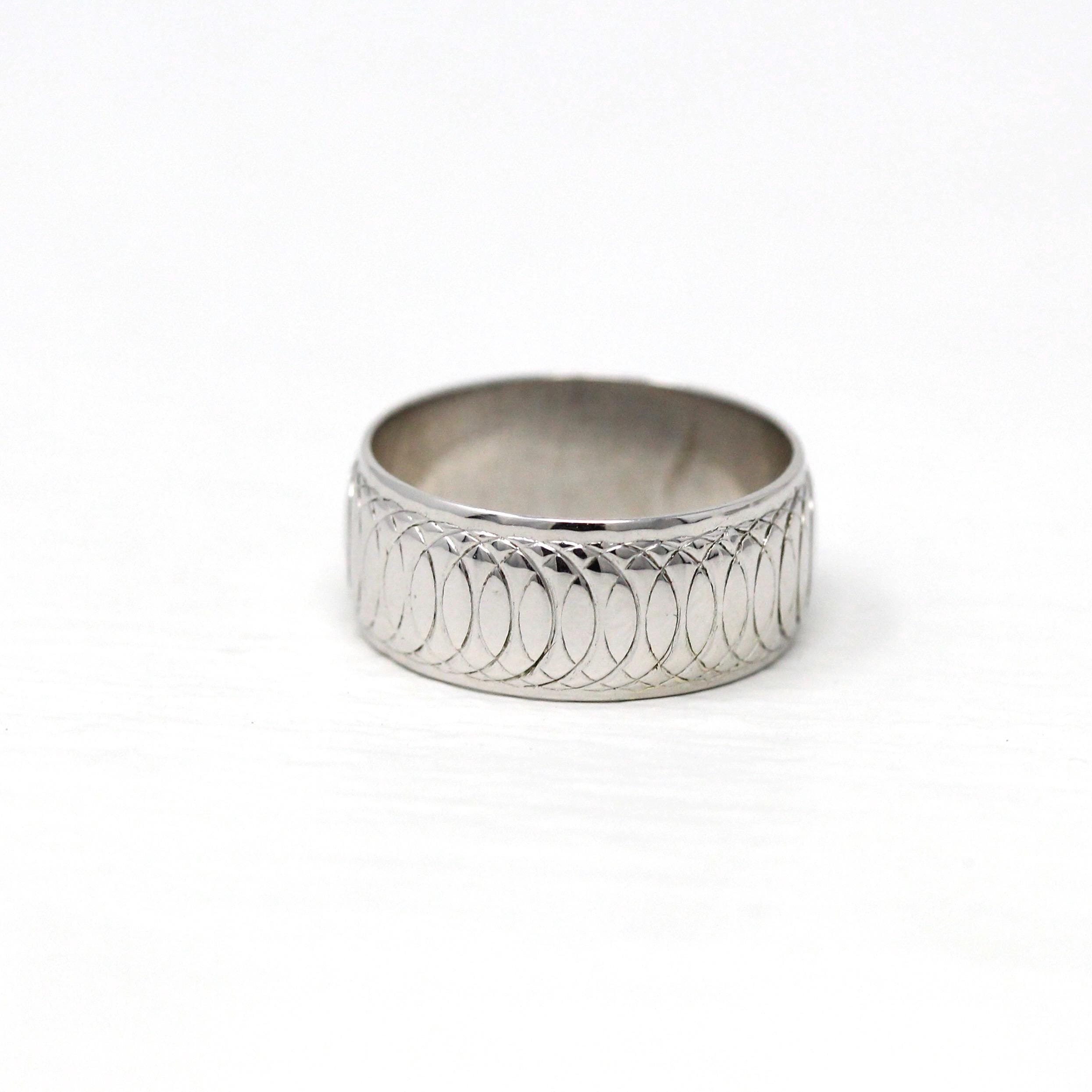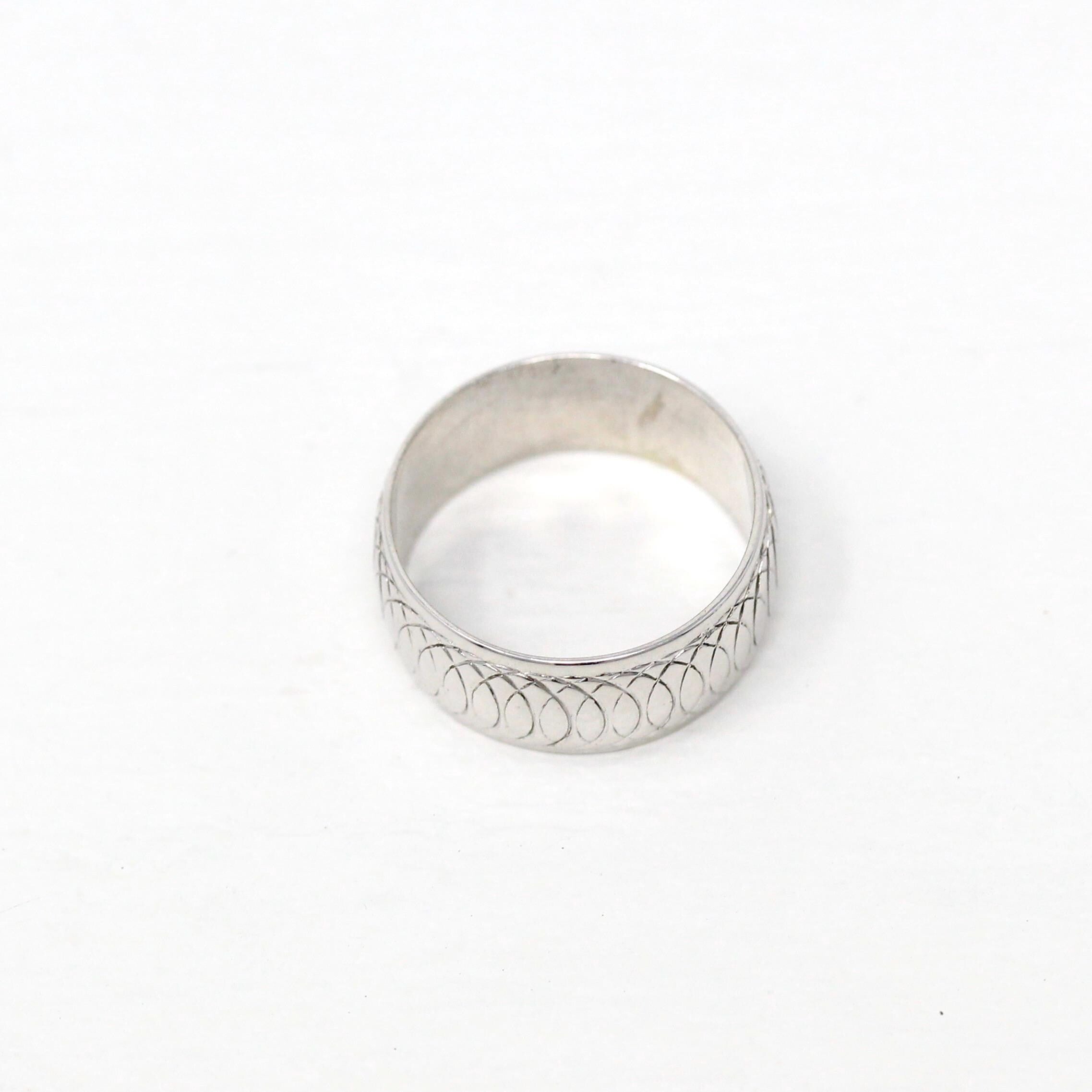 Floral Wedding Band - Art Deco 18k White Gold Flower Eternity Ring - Vintage Circa 1930s Era Size 7 Bridal Unisex Engraved Fine 30s Jewelry