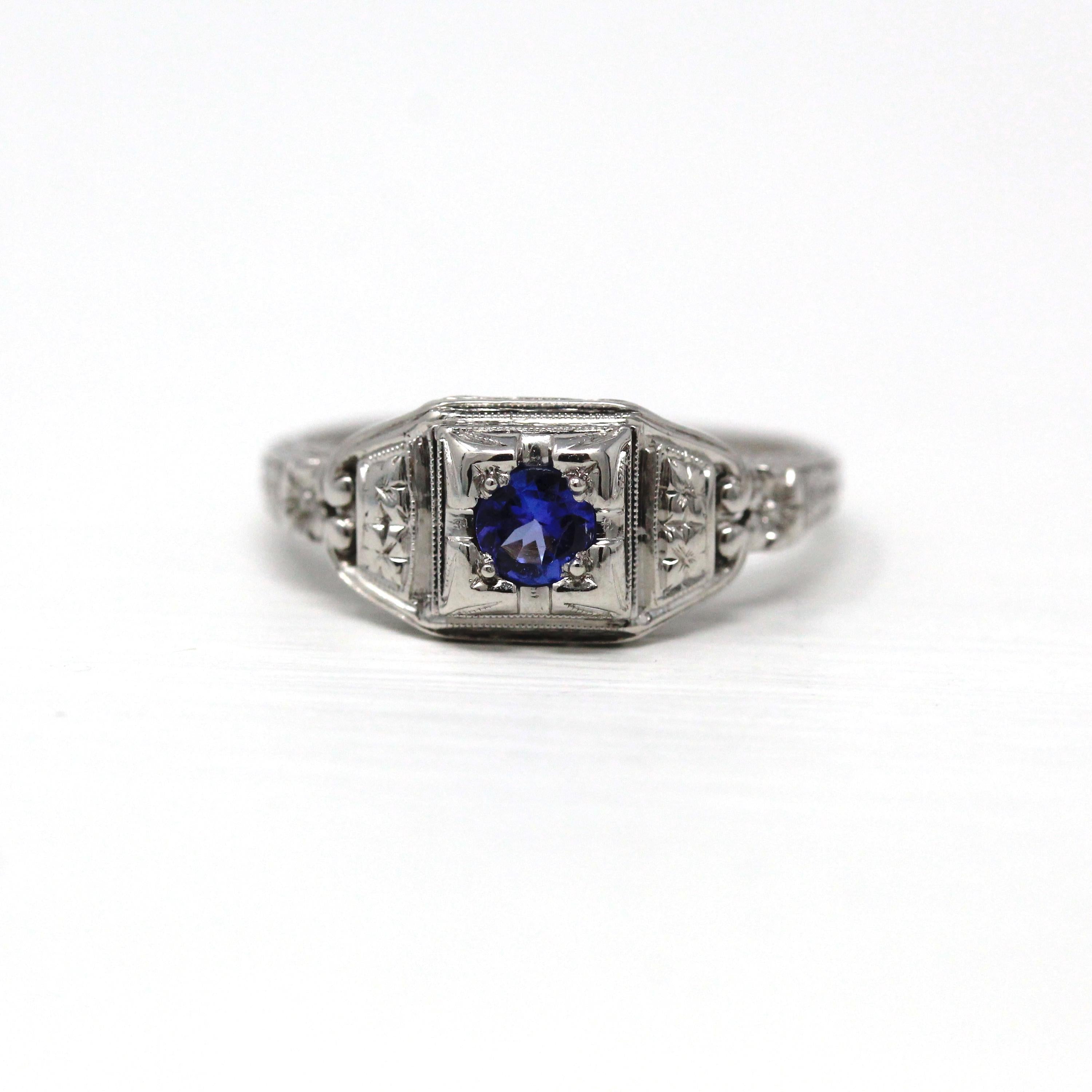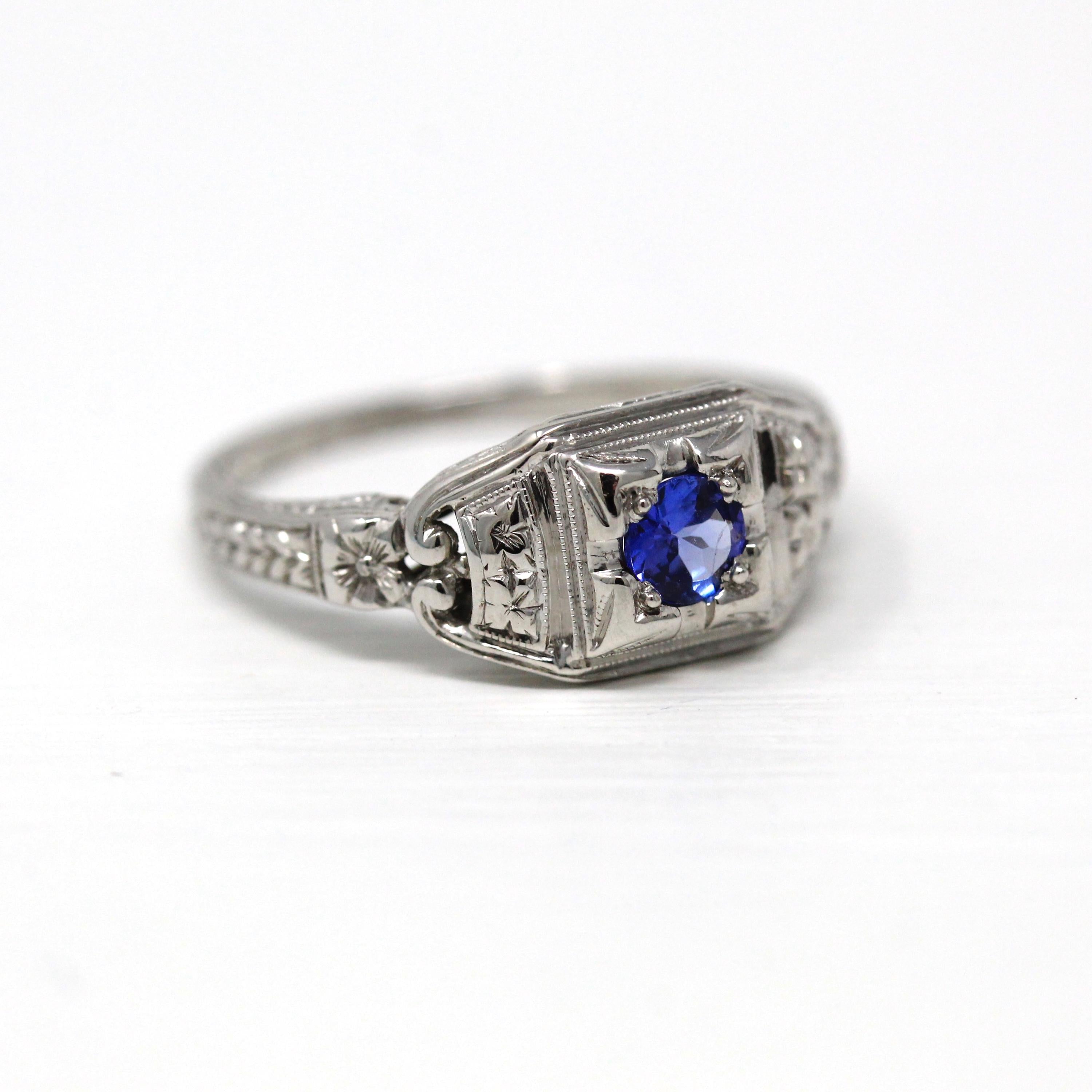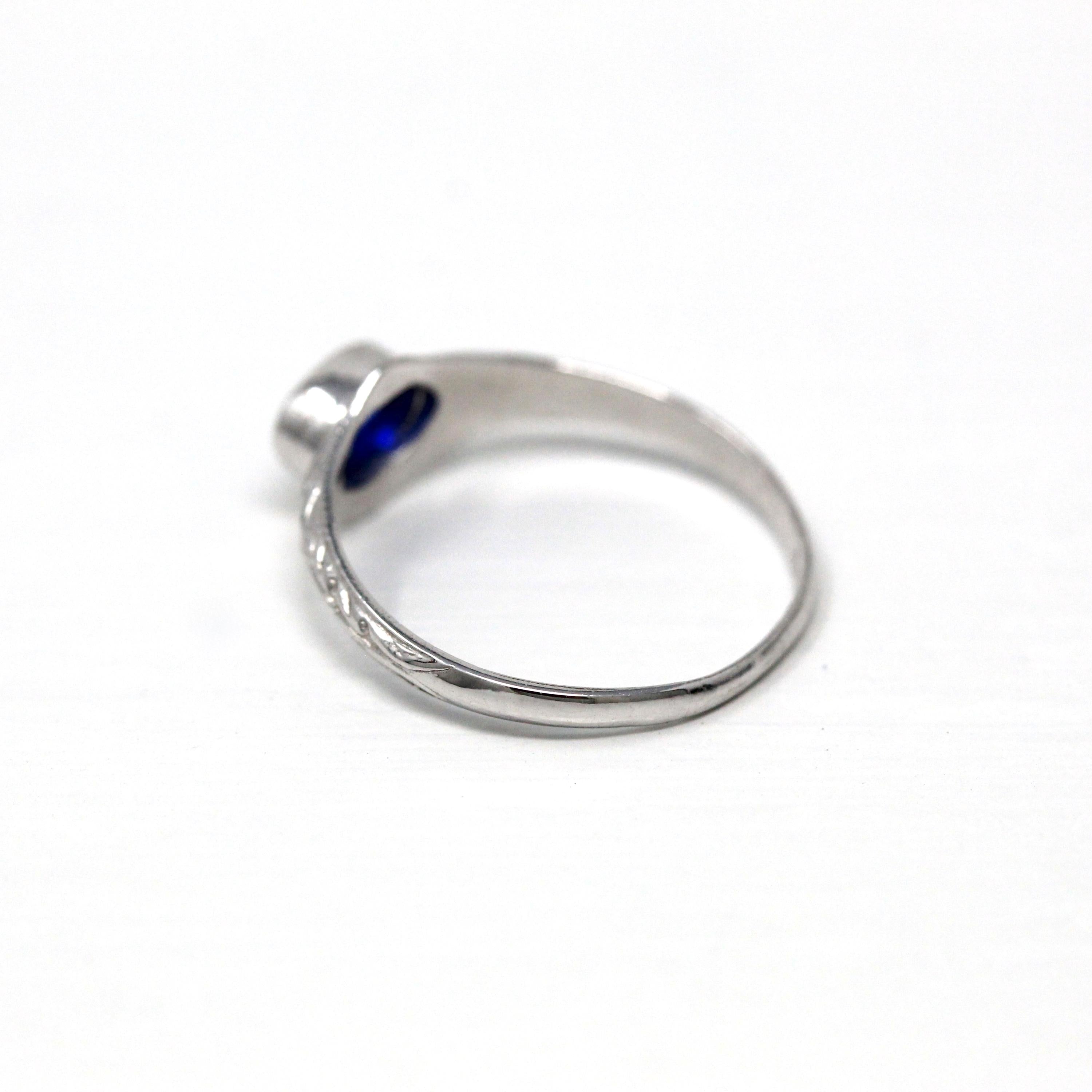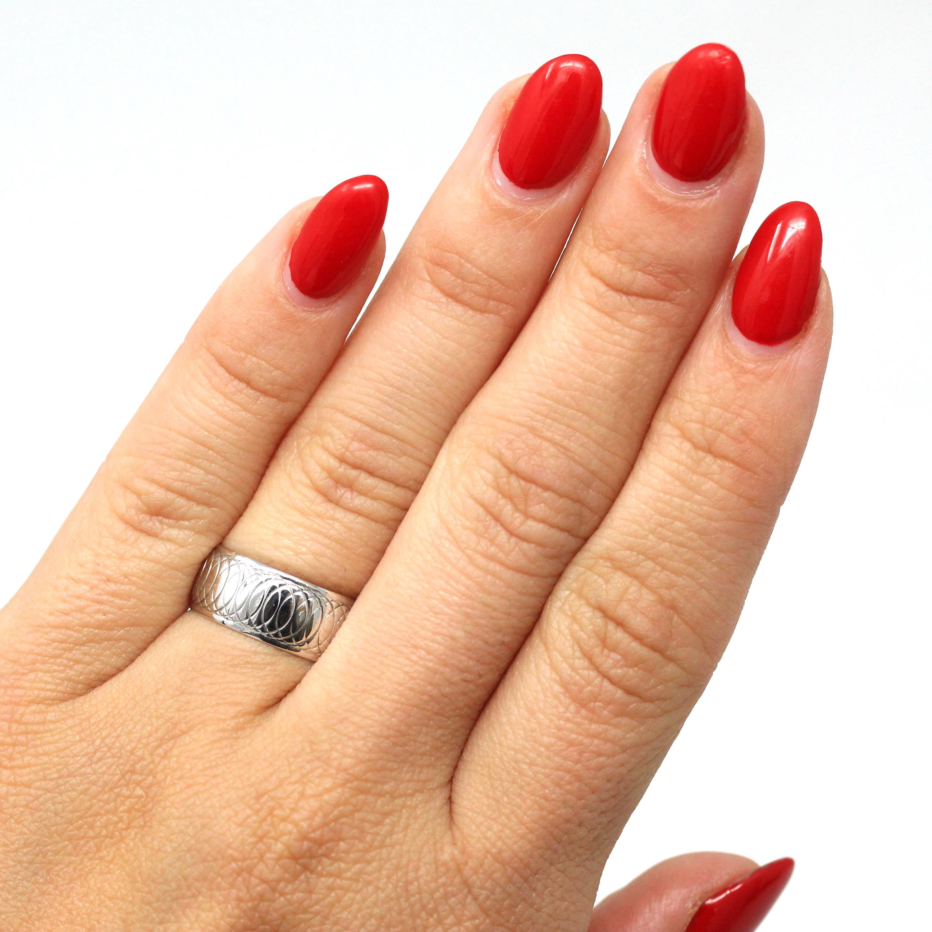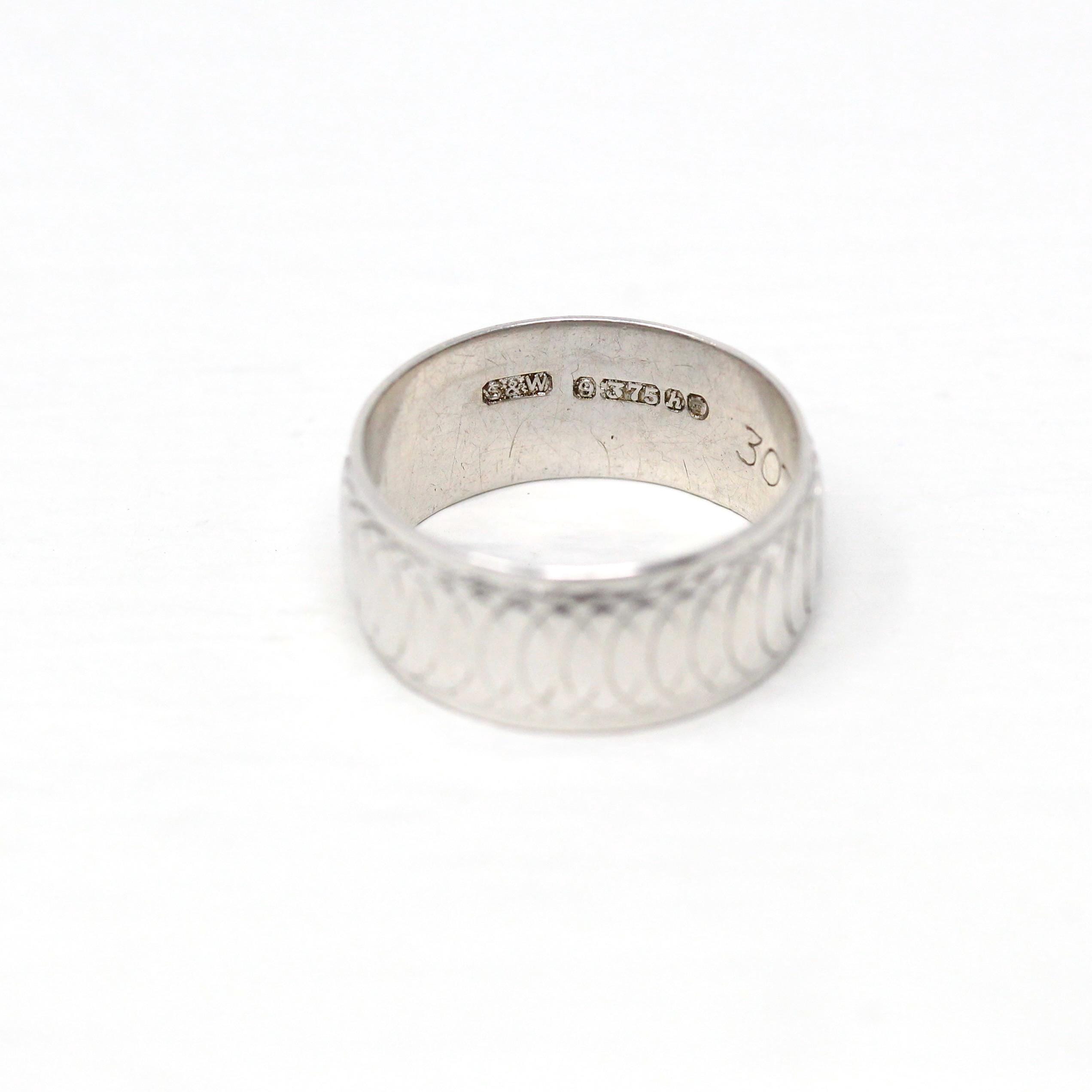 Floral Wedding Band - Art Deco 18k White Gold Flower Eternity Ring - Vintage Circa 1930s Era Size 7 Bridal Unisex Engraved Fine 30s Jewelry
