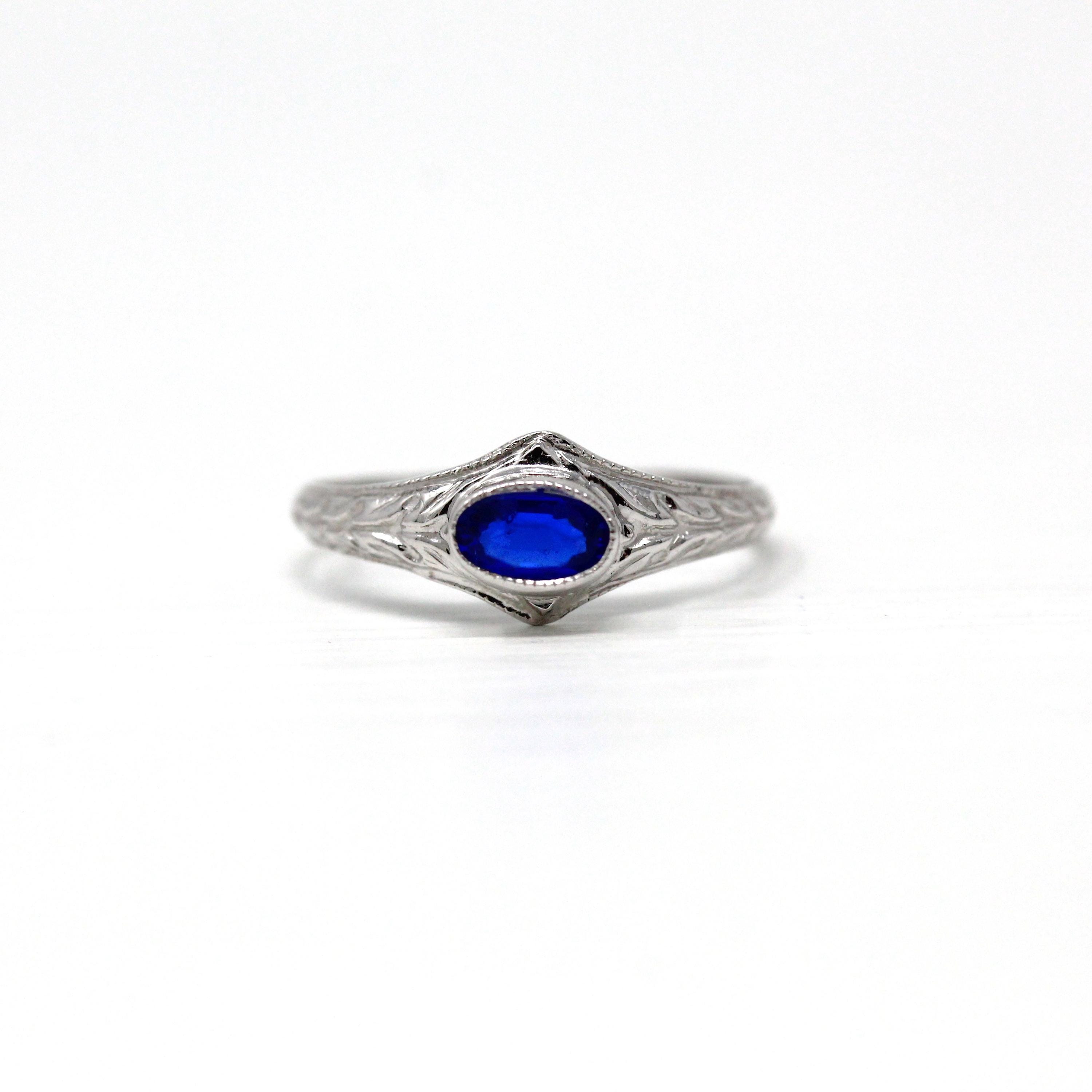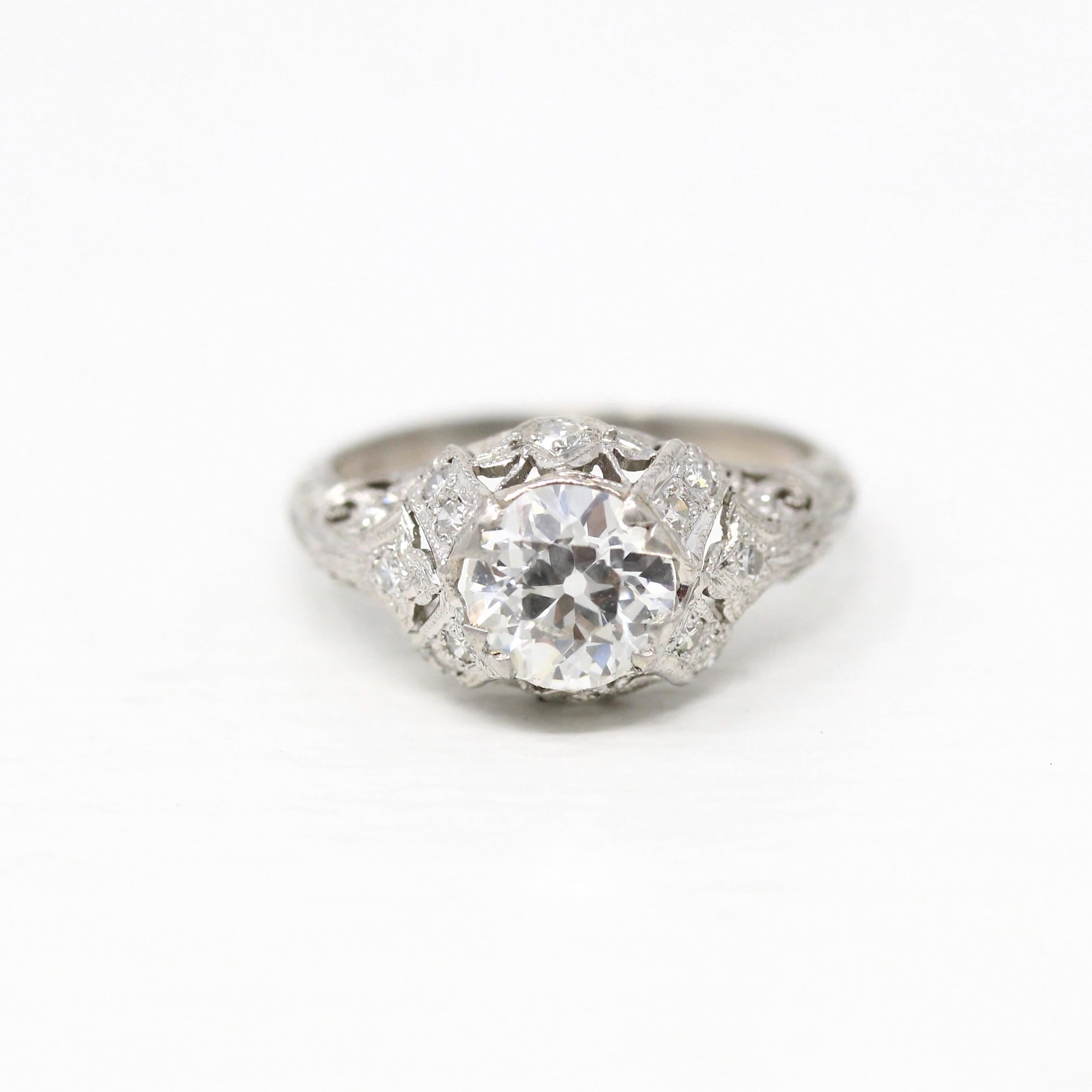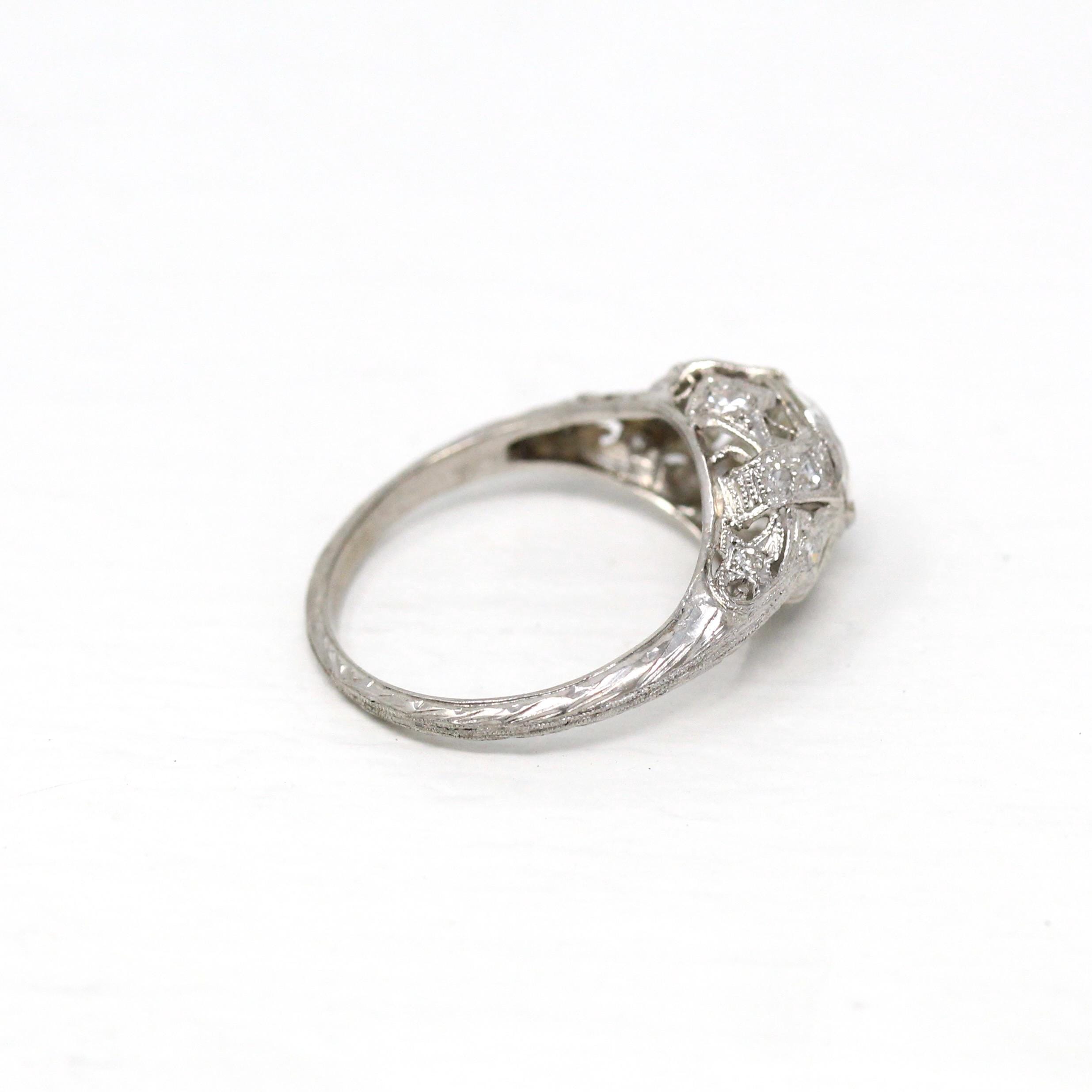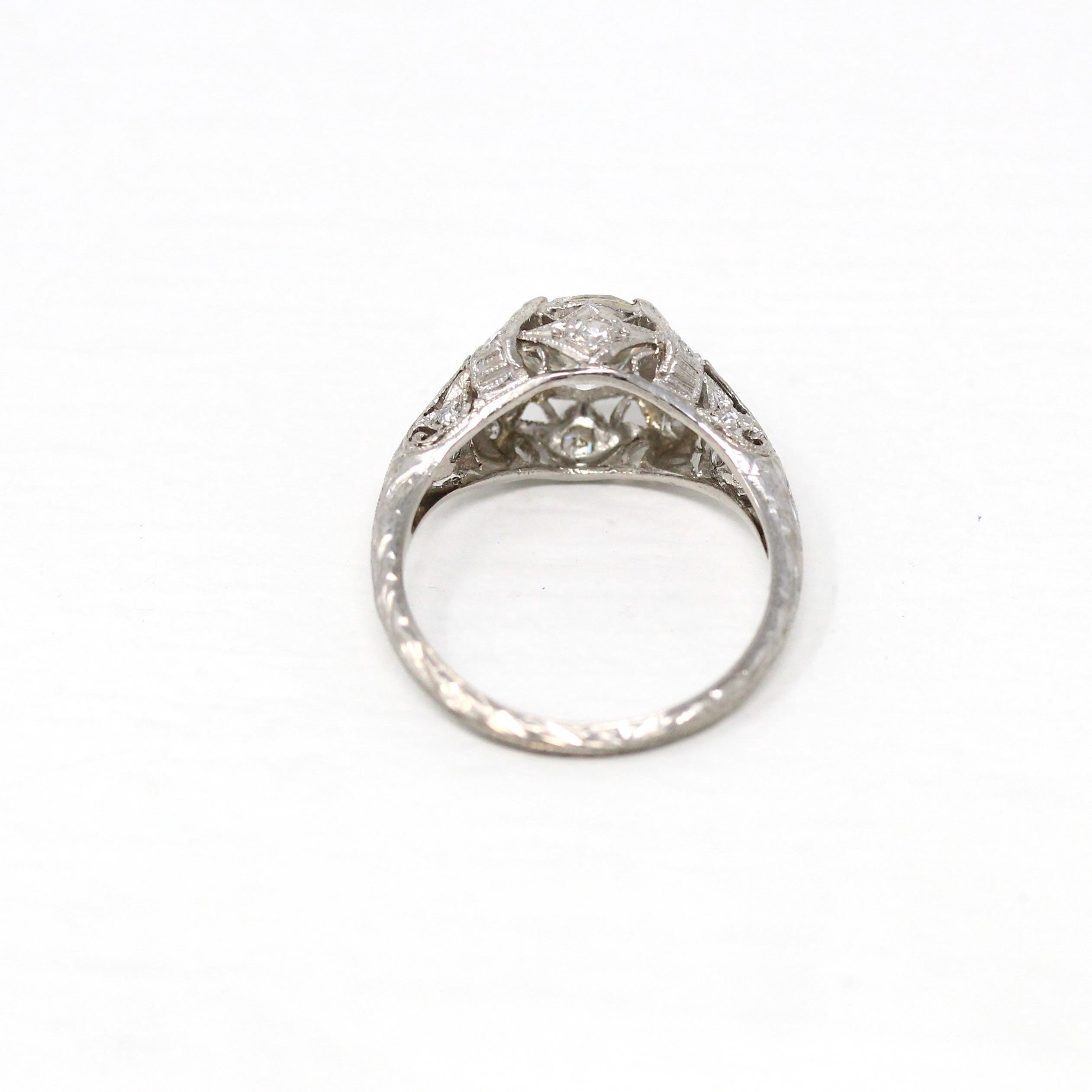 Vintage Onyx Ring - Art Deco 10k White Gold Natural Black & White Gemstone Statement - Circa 1930s Size 6 1/2 Fine Floral Filigree Jewelry