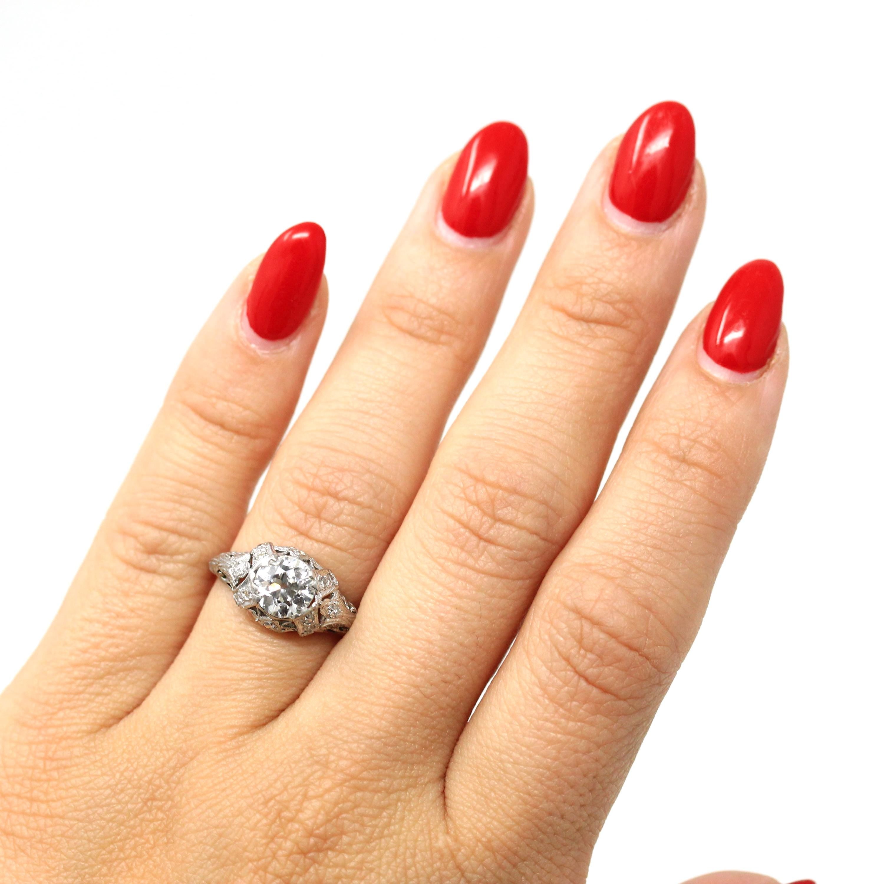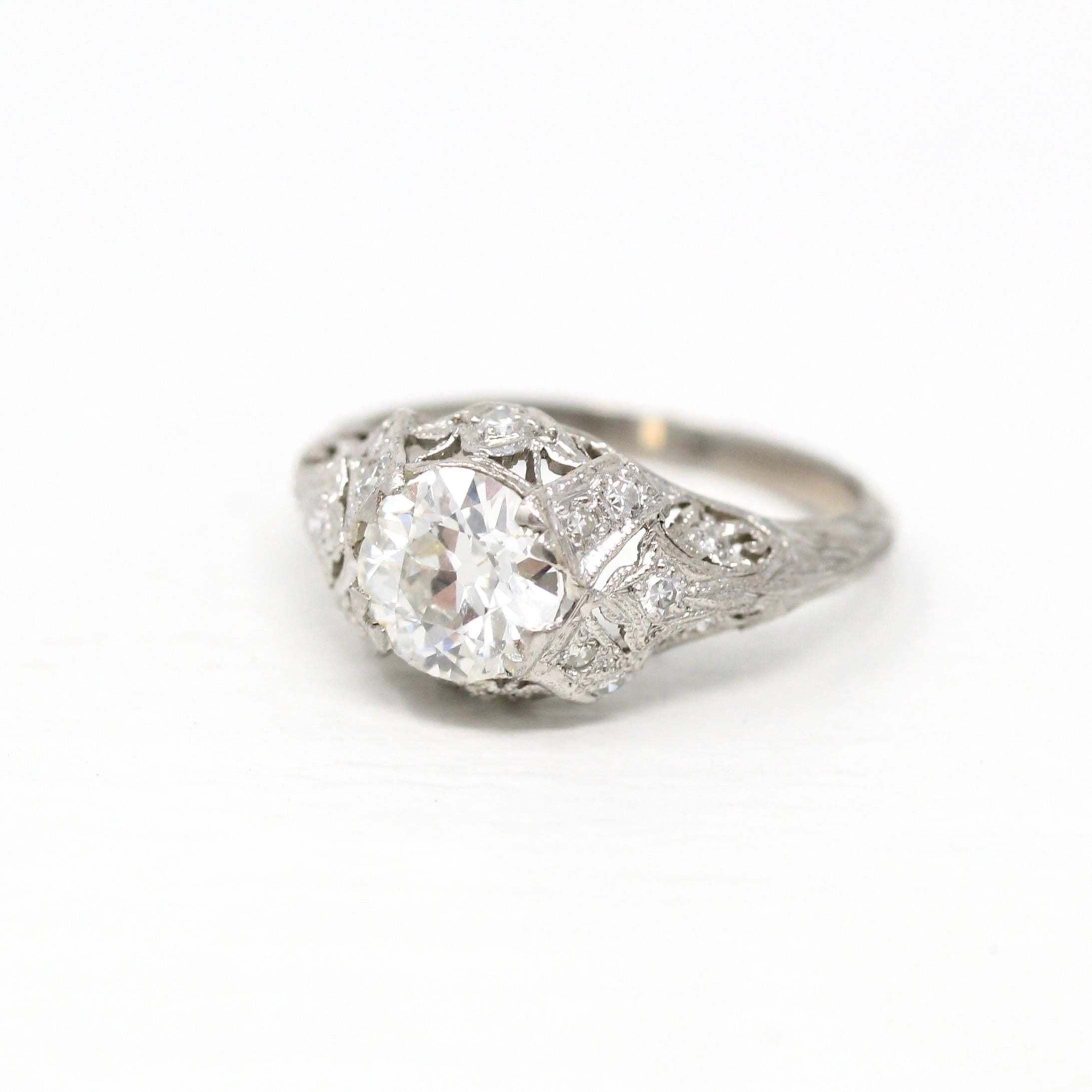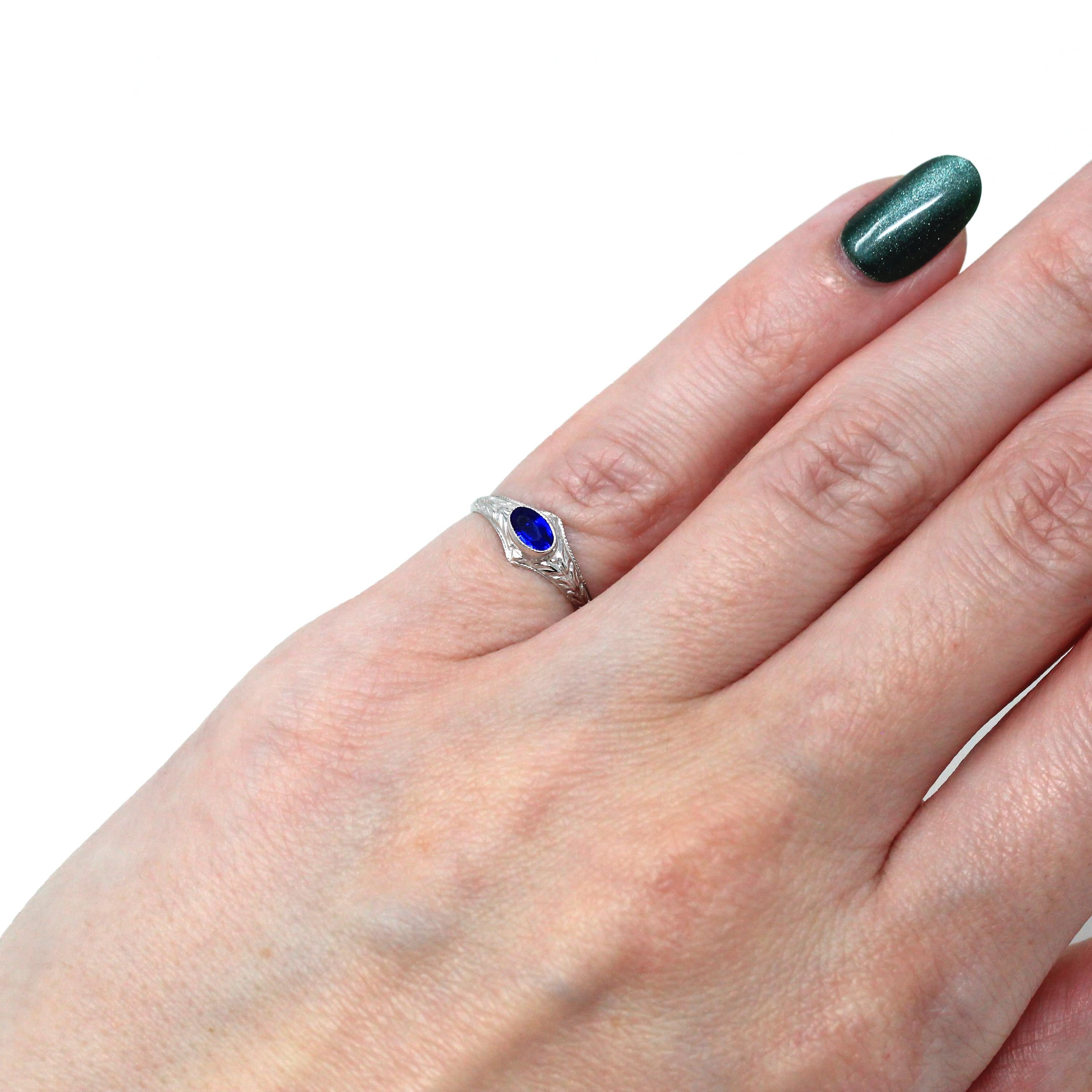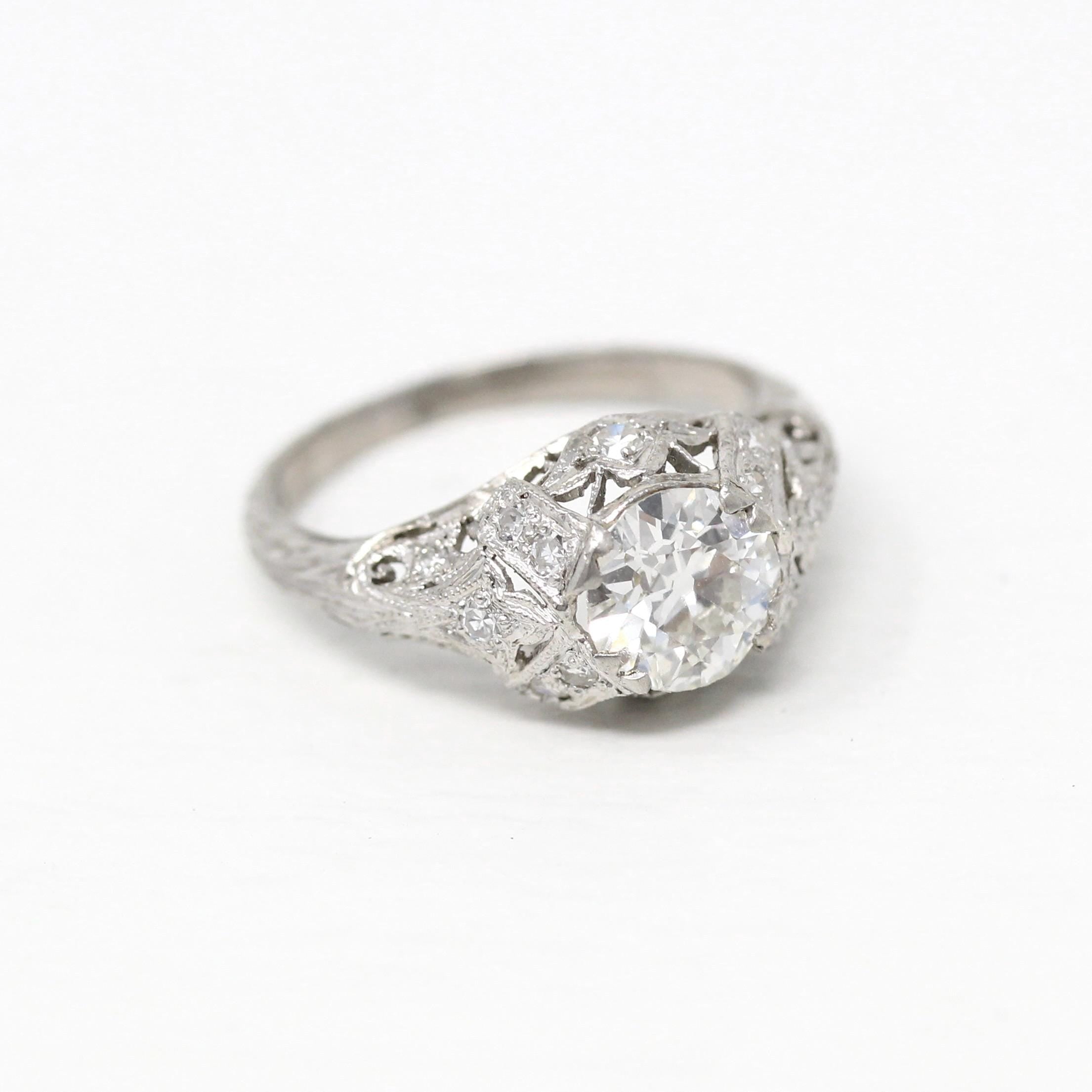 Vintage Onyx Ring - Art Deco 10k White Gold Natural Black & White Gemstone Statement - Circa 1930s Size 6 1/2 Fine Floral Filigree Jewelry