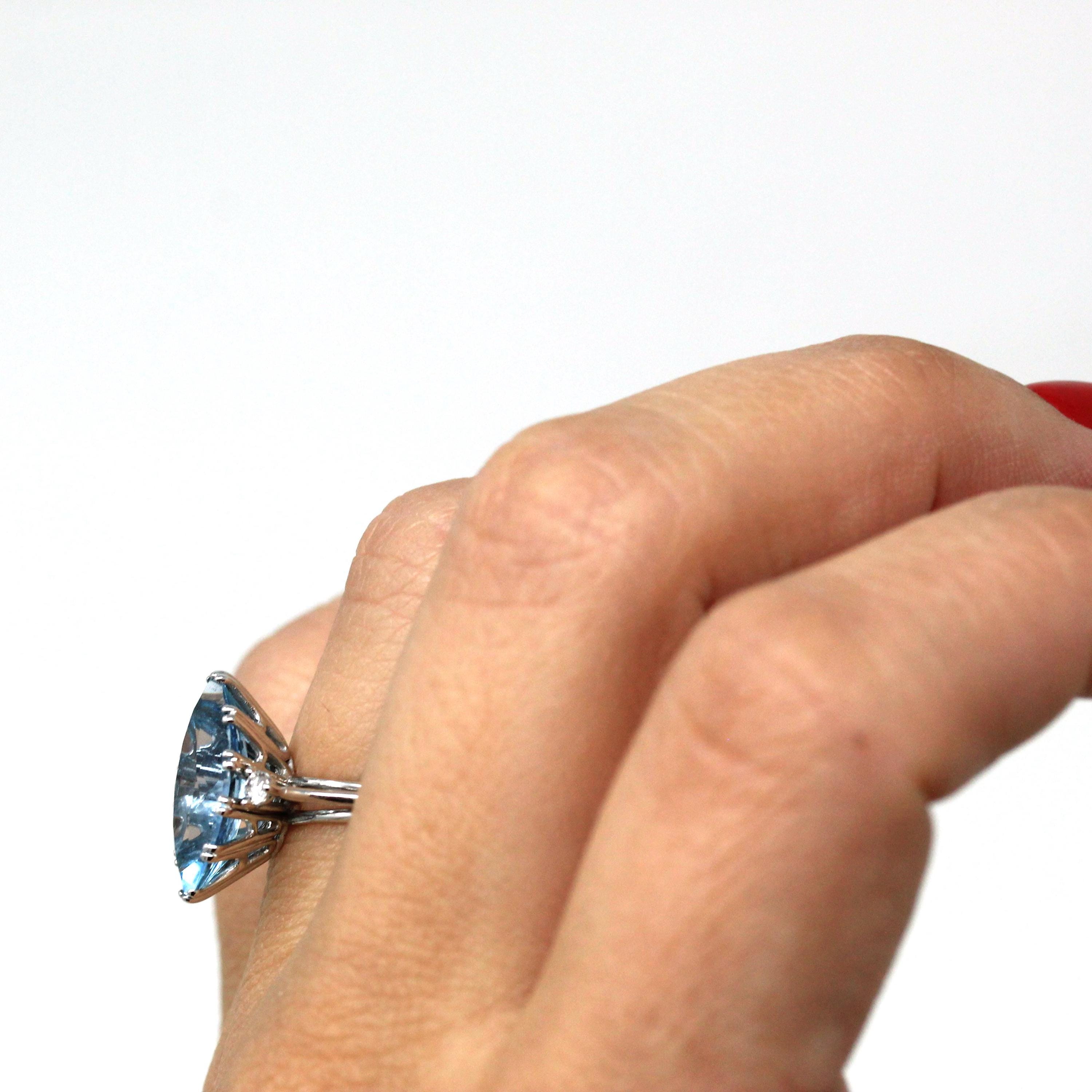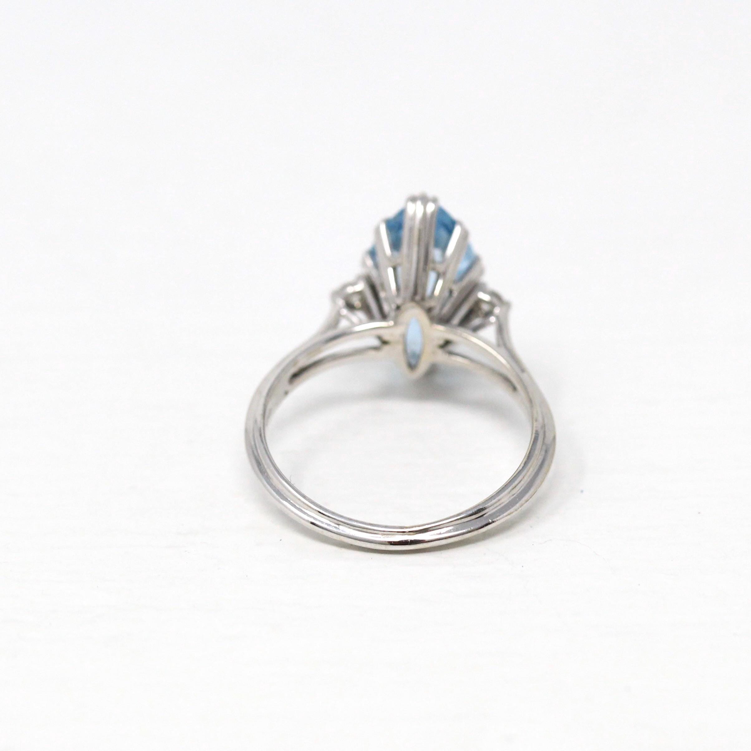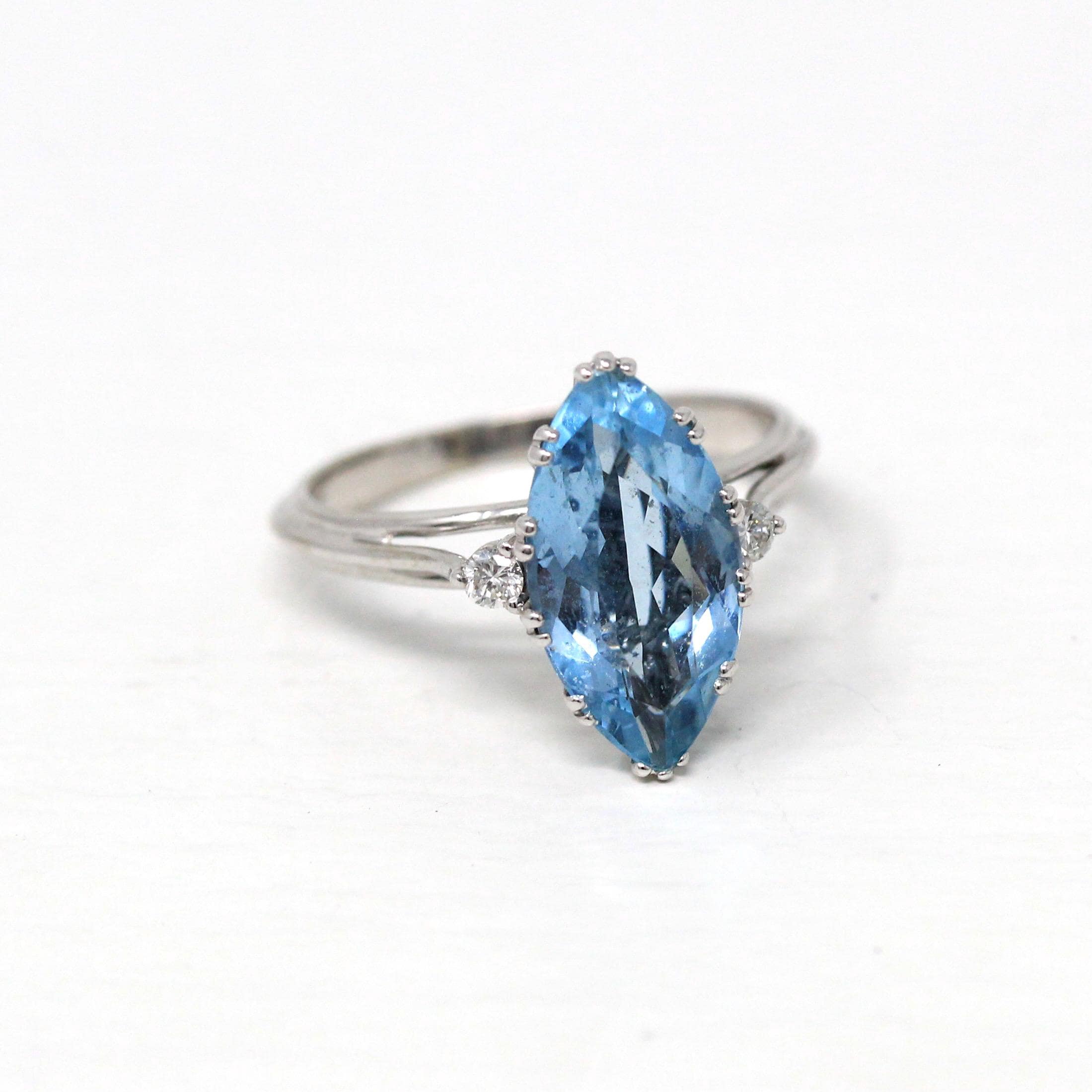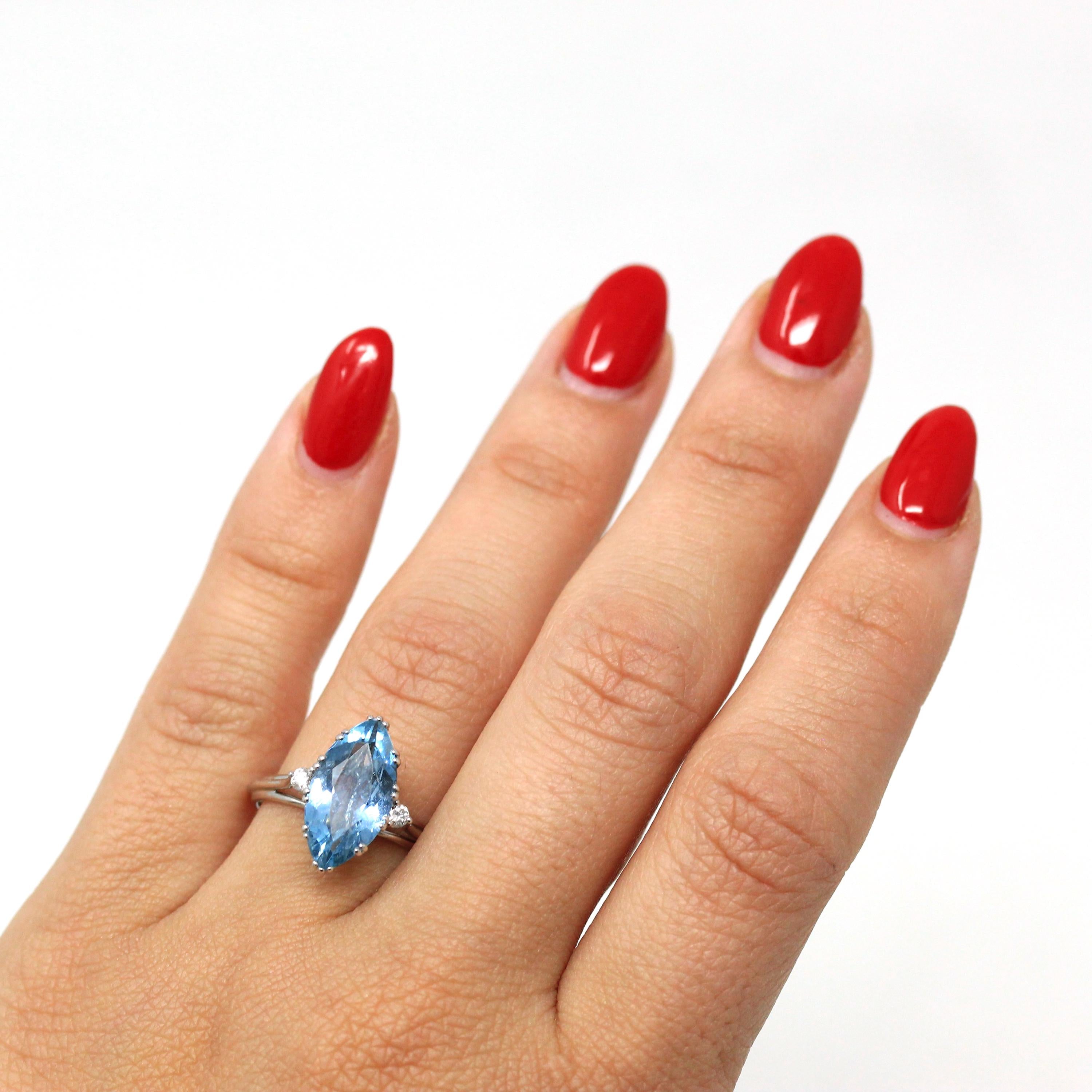 Marquise Halo Ring - Modern 14k Yellow Gold Created Sapphire Natural Diamond Gemstones - Estate Circa 1990s Size 6 Engagement Fine Jewelry