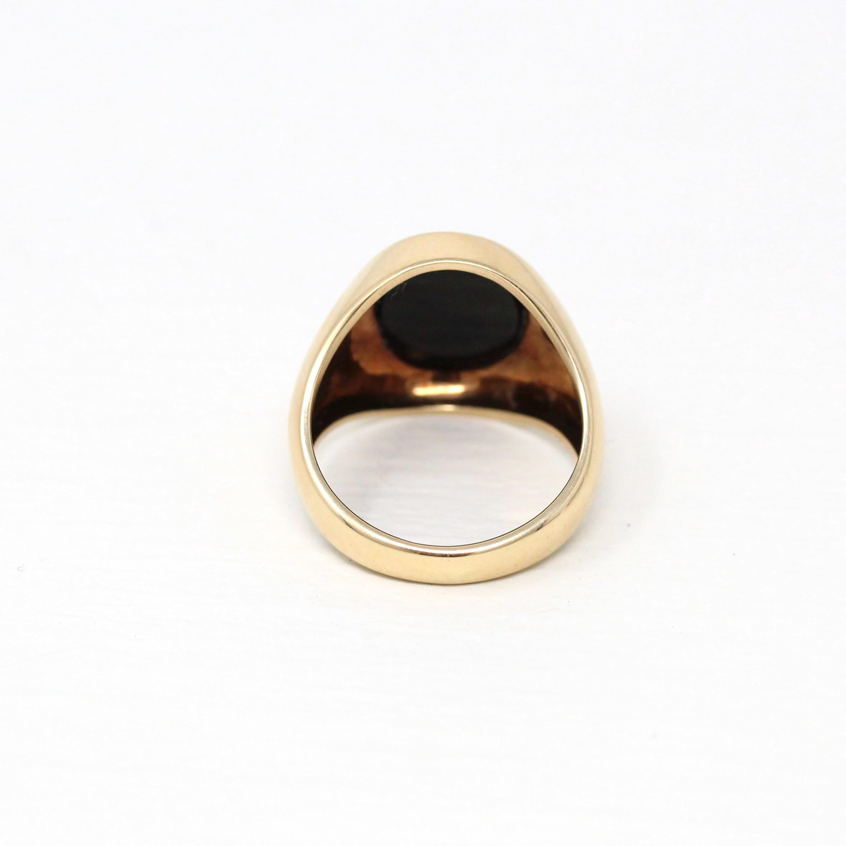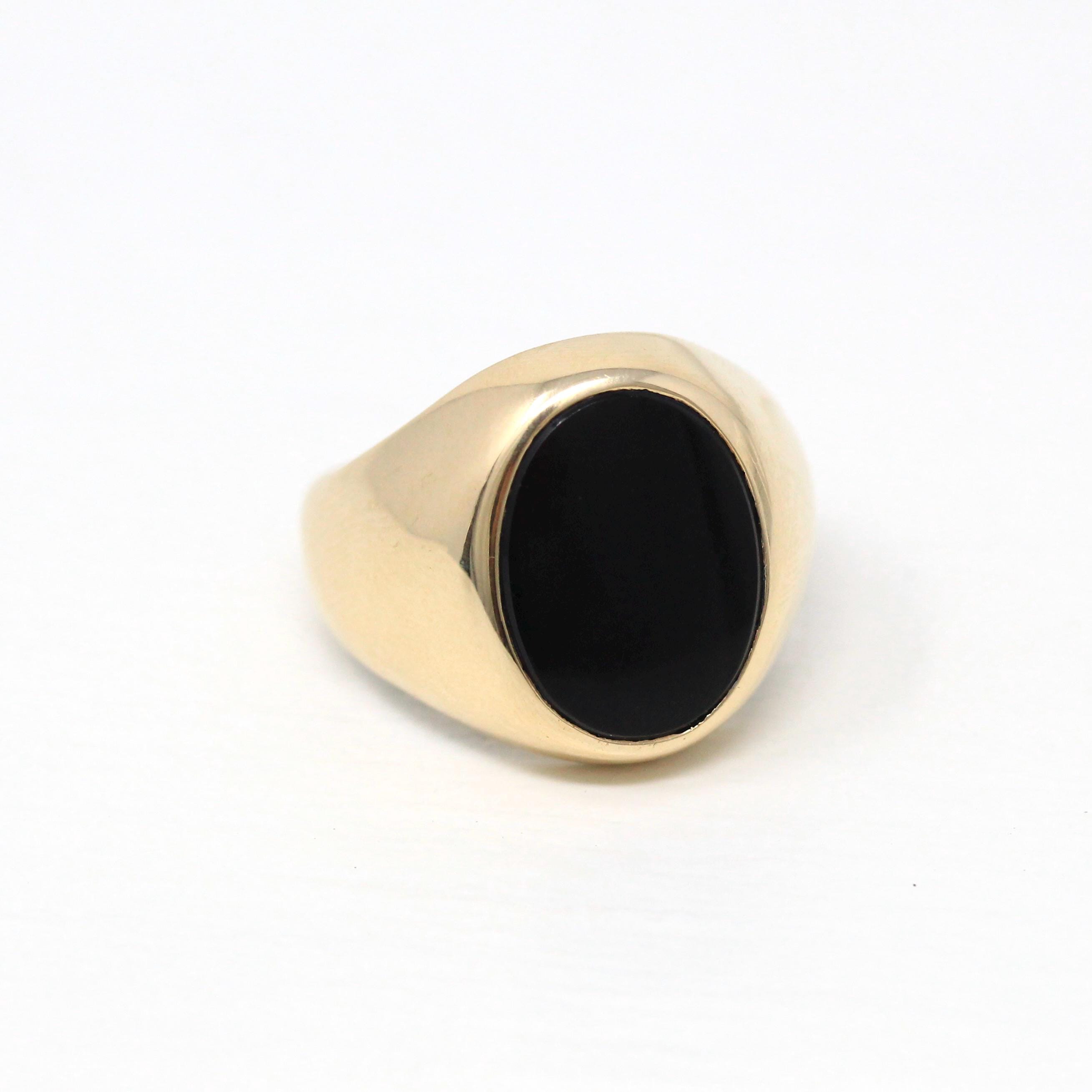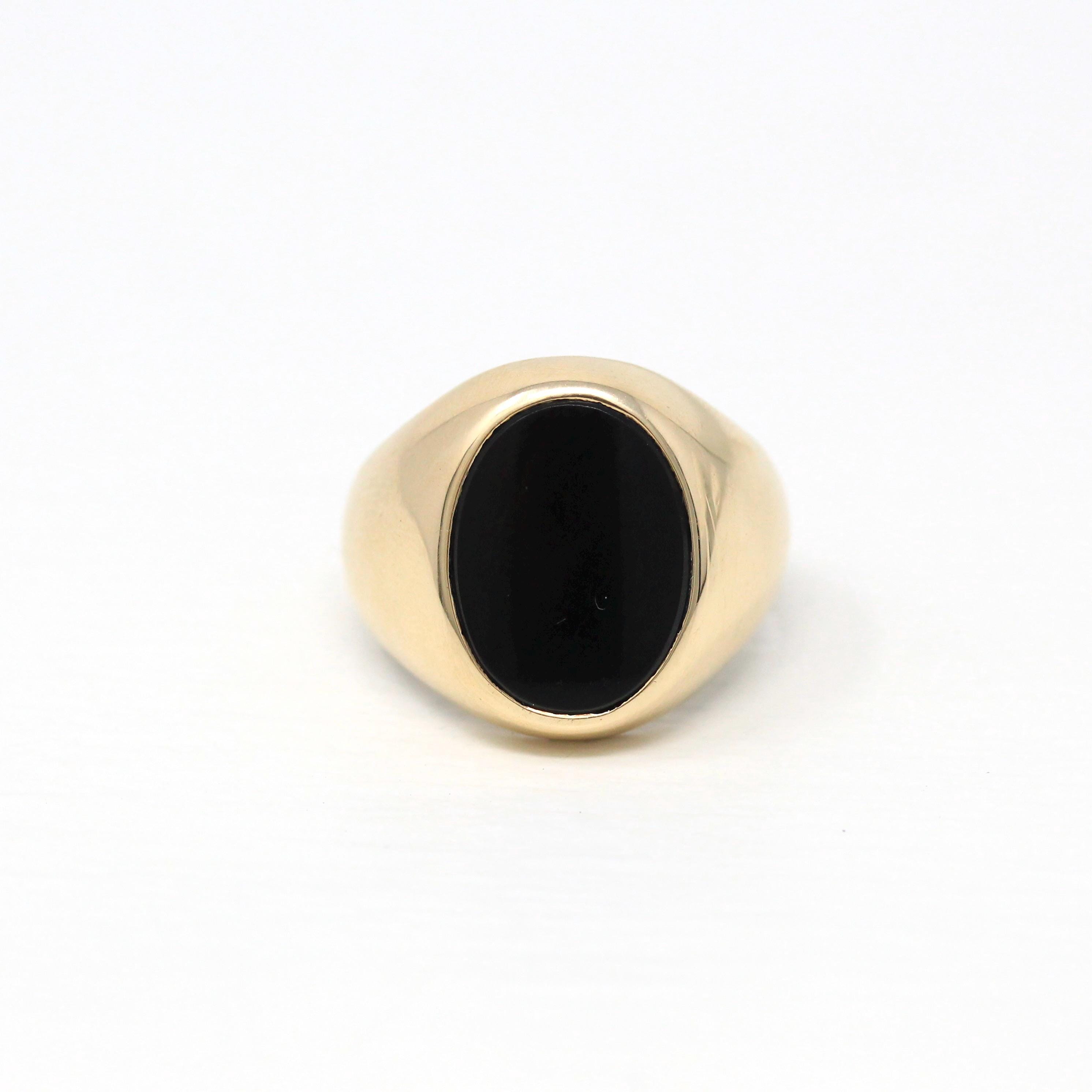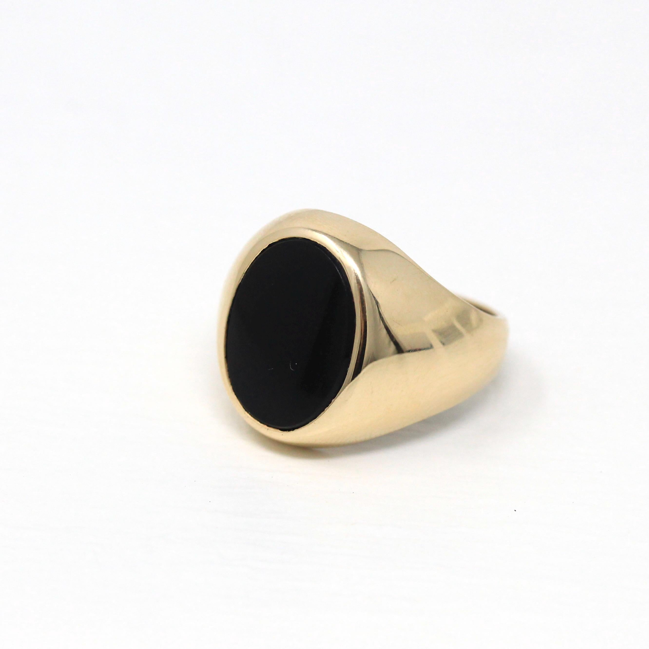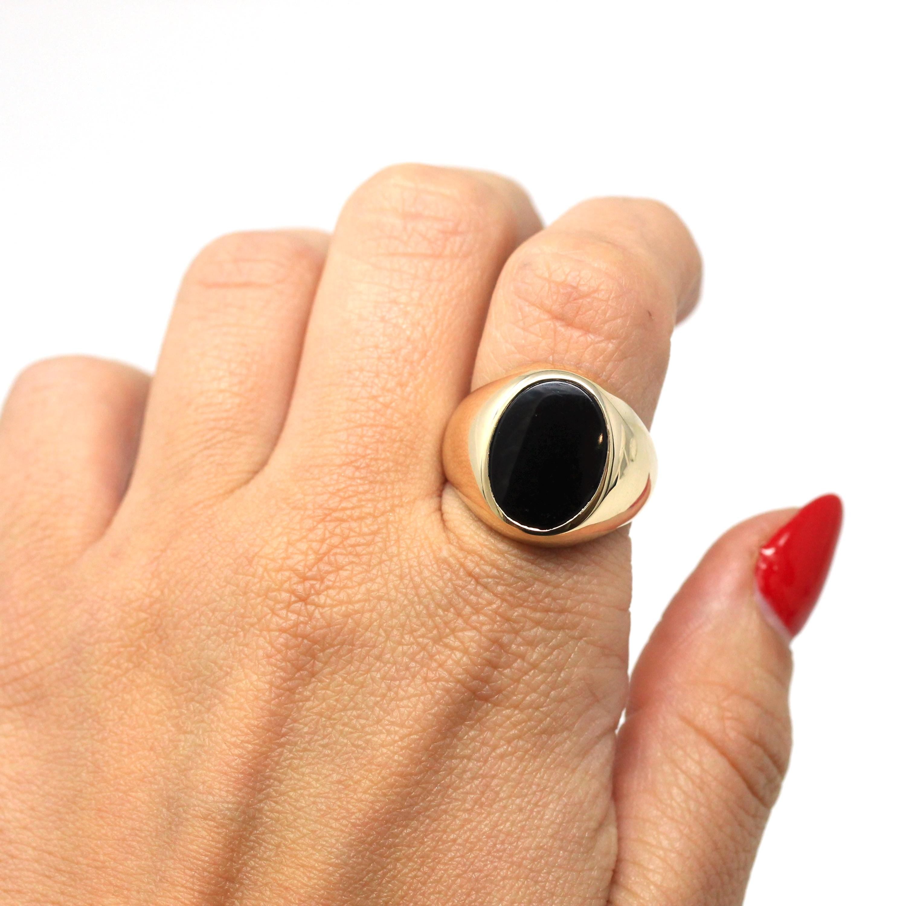 Retro Onyx Ring - Vintage 10k Yellow Gold Oval Black Chalcedony & Natural Diamond - Circa 1940s Era Size 6 Statement Two Tone Fine Jewelry