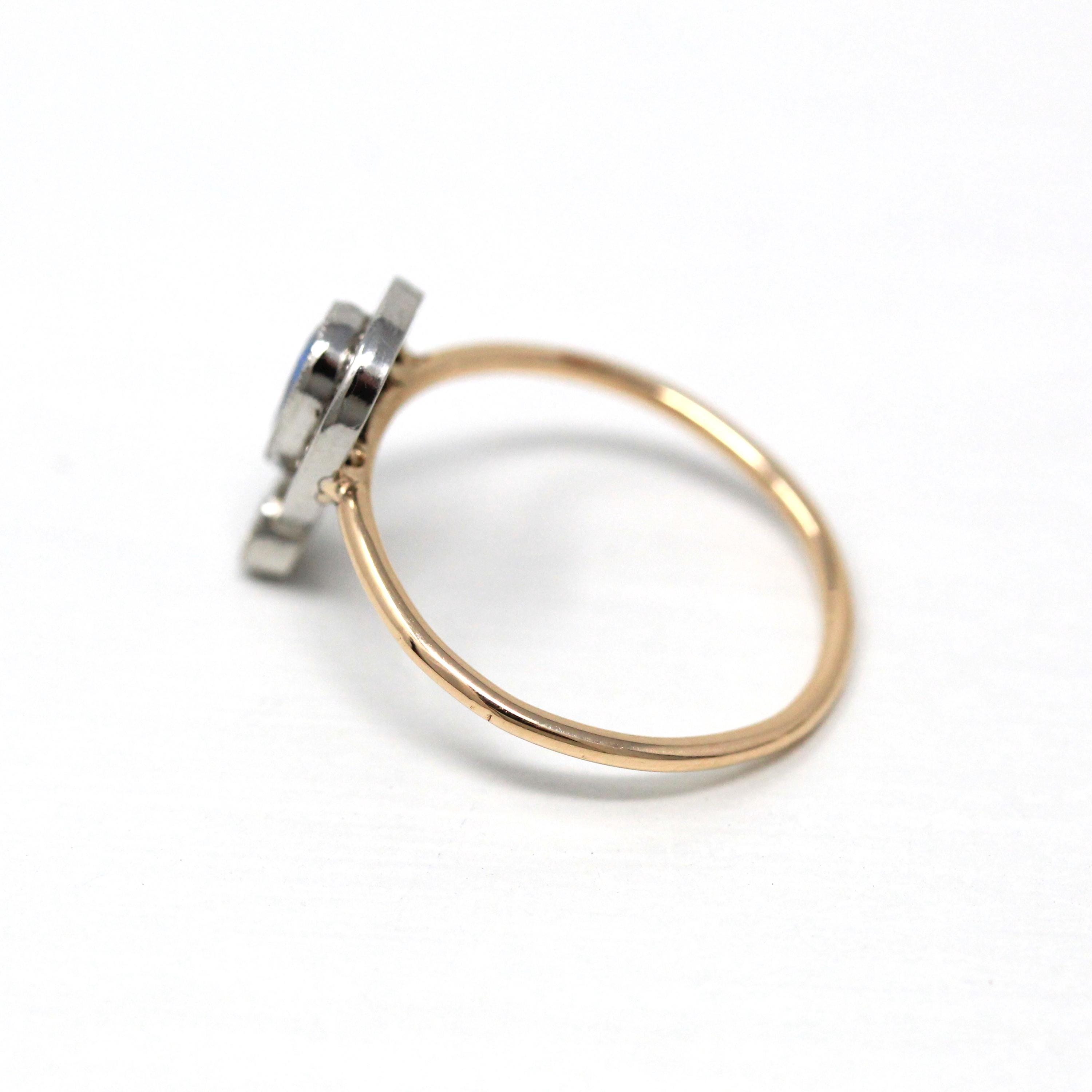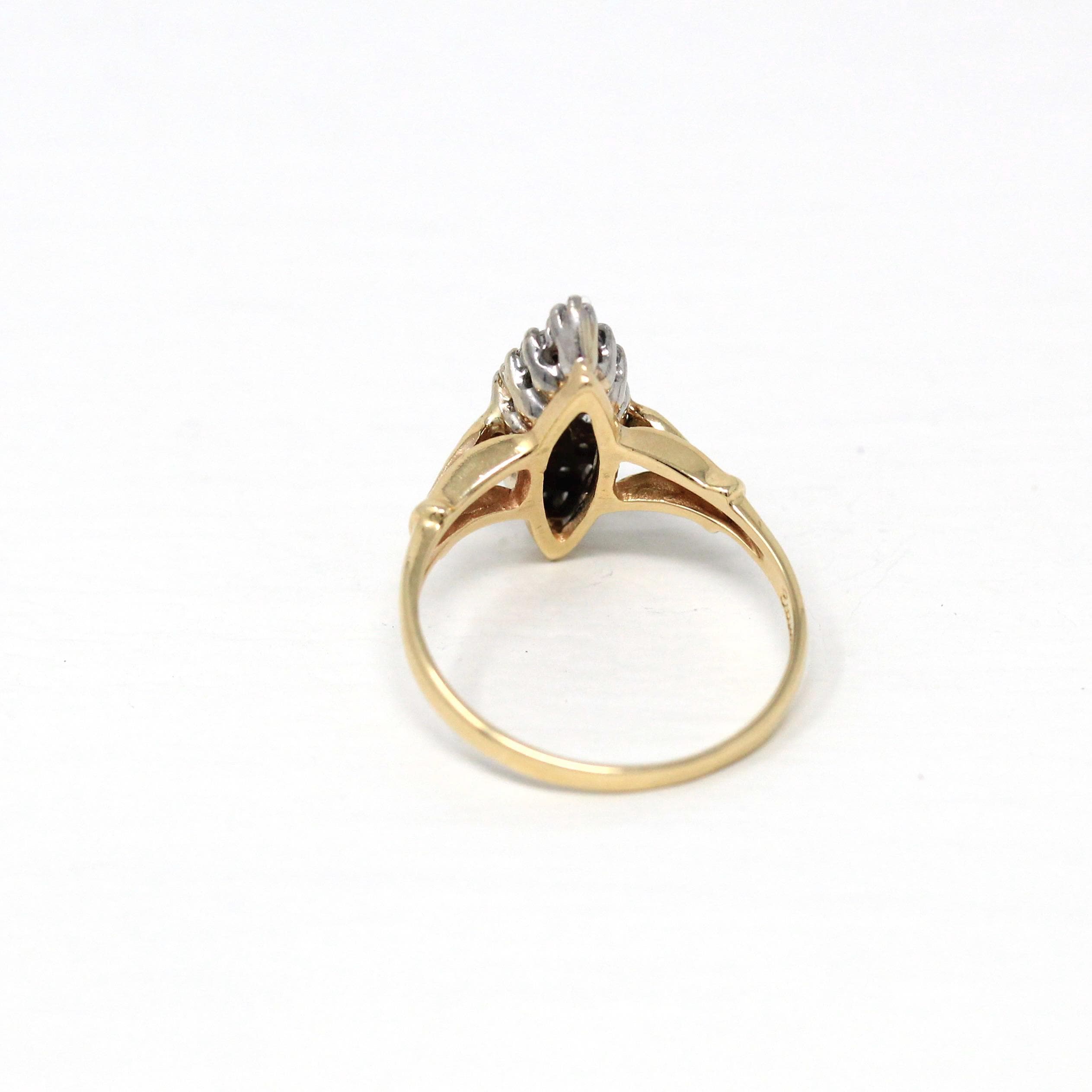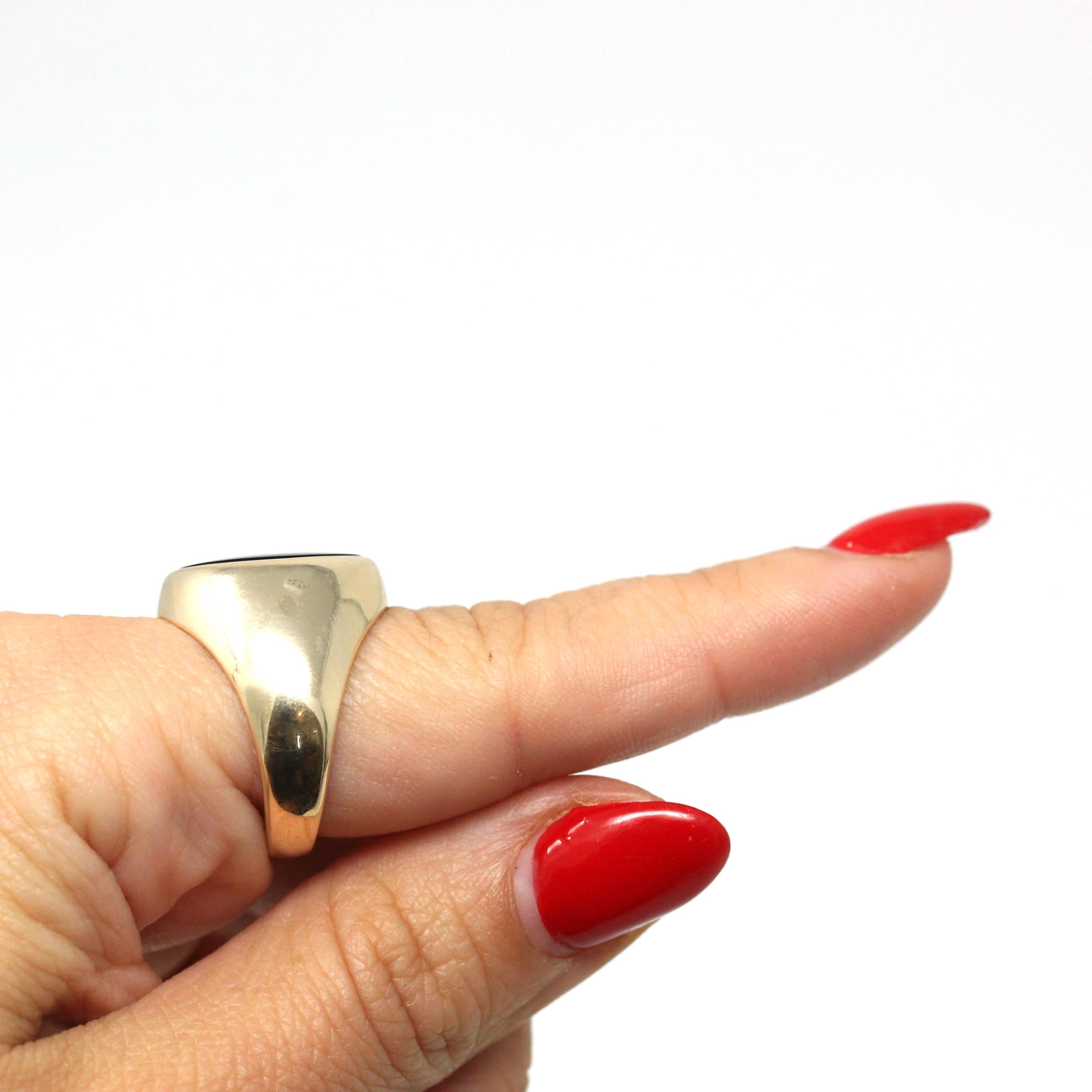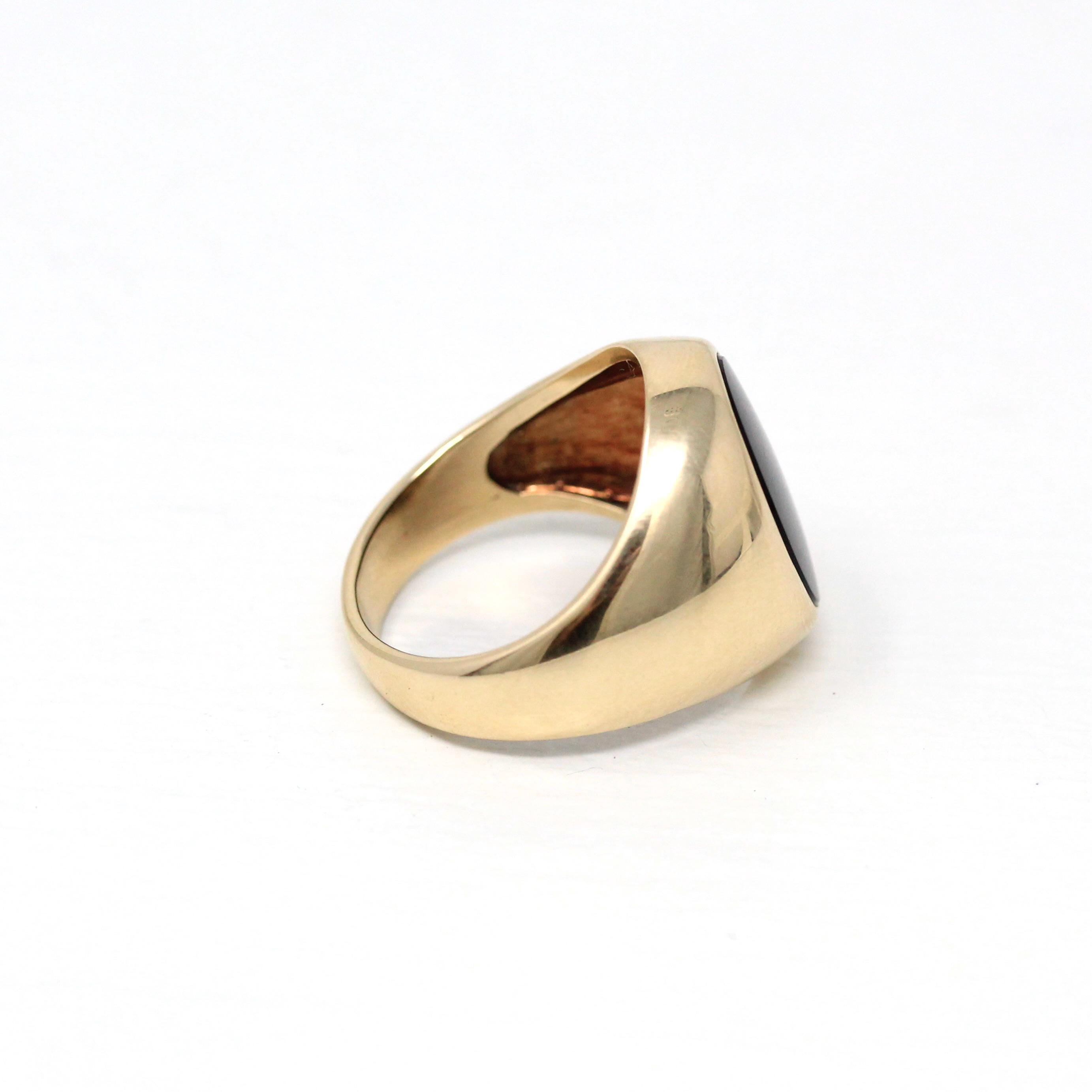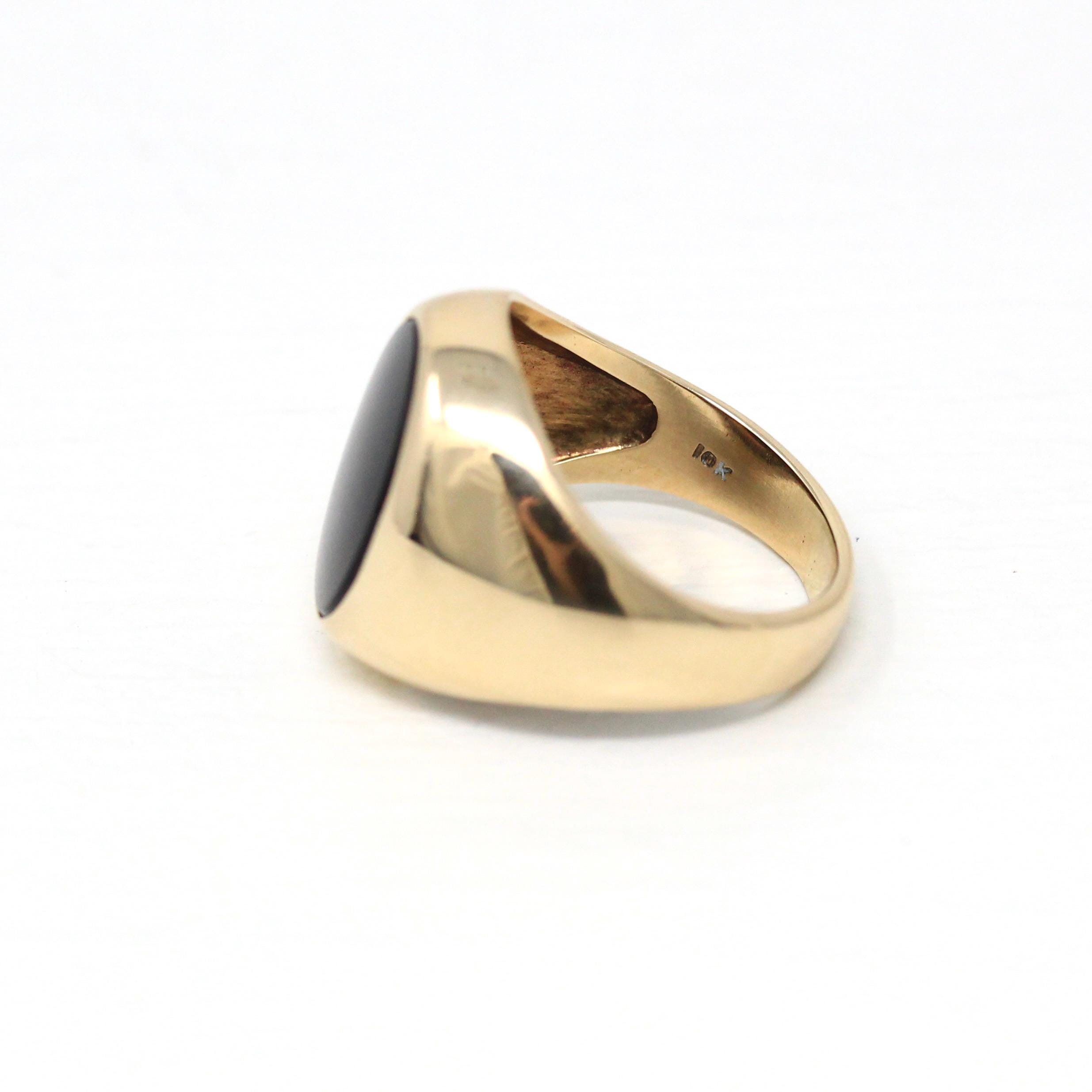 Retro Onyx Ring - Vintage 10k Yellow Gold Oval Black Chalcedony & Natural Diamond - Circa 1940s Era Size 6 Statement Two Tone Fine Jewelry
