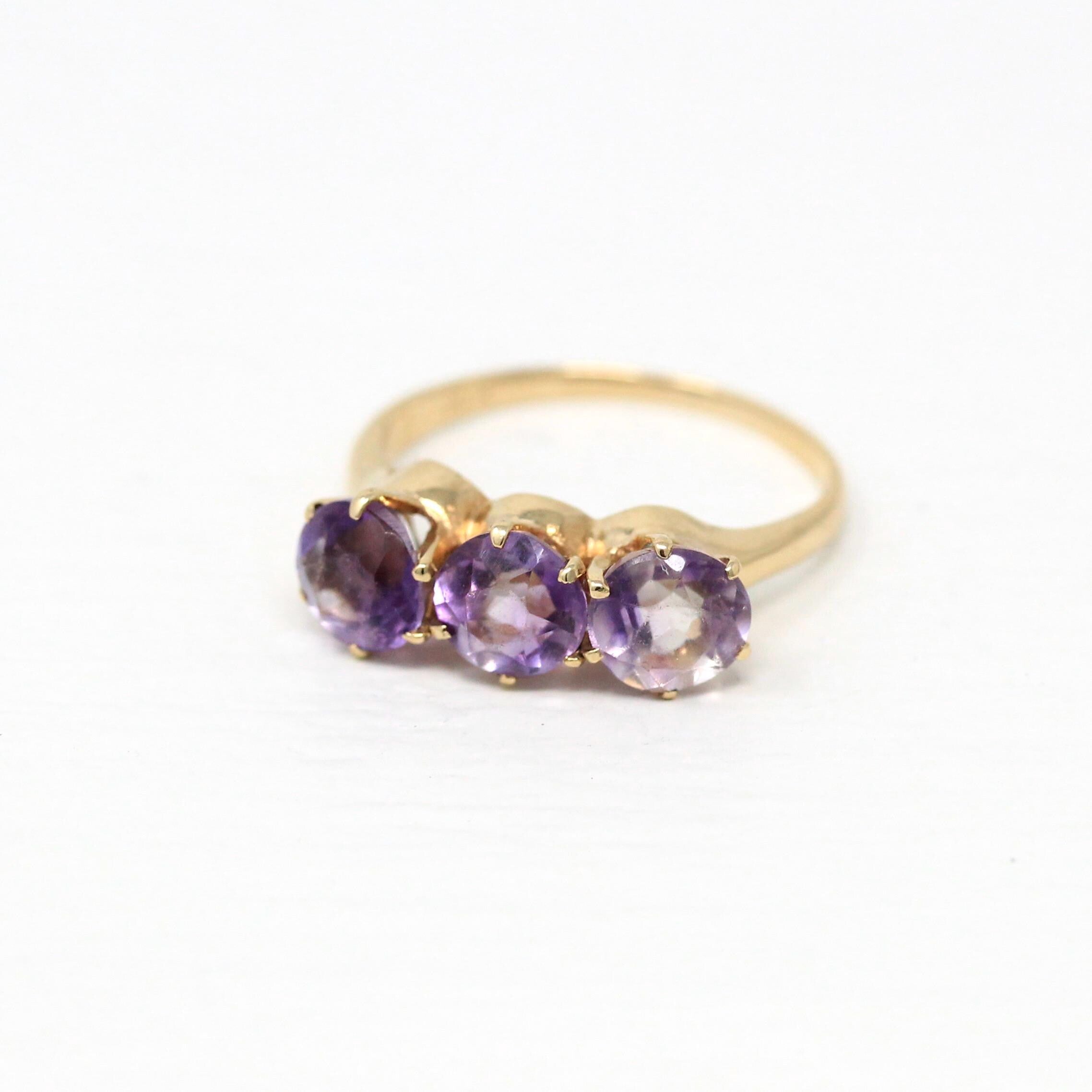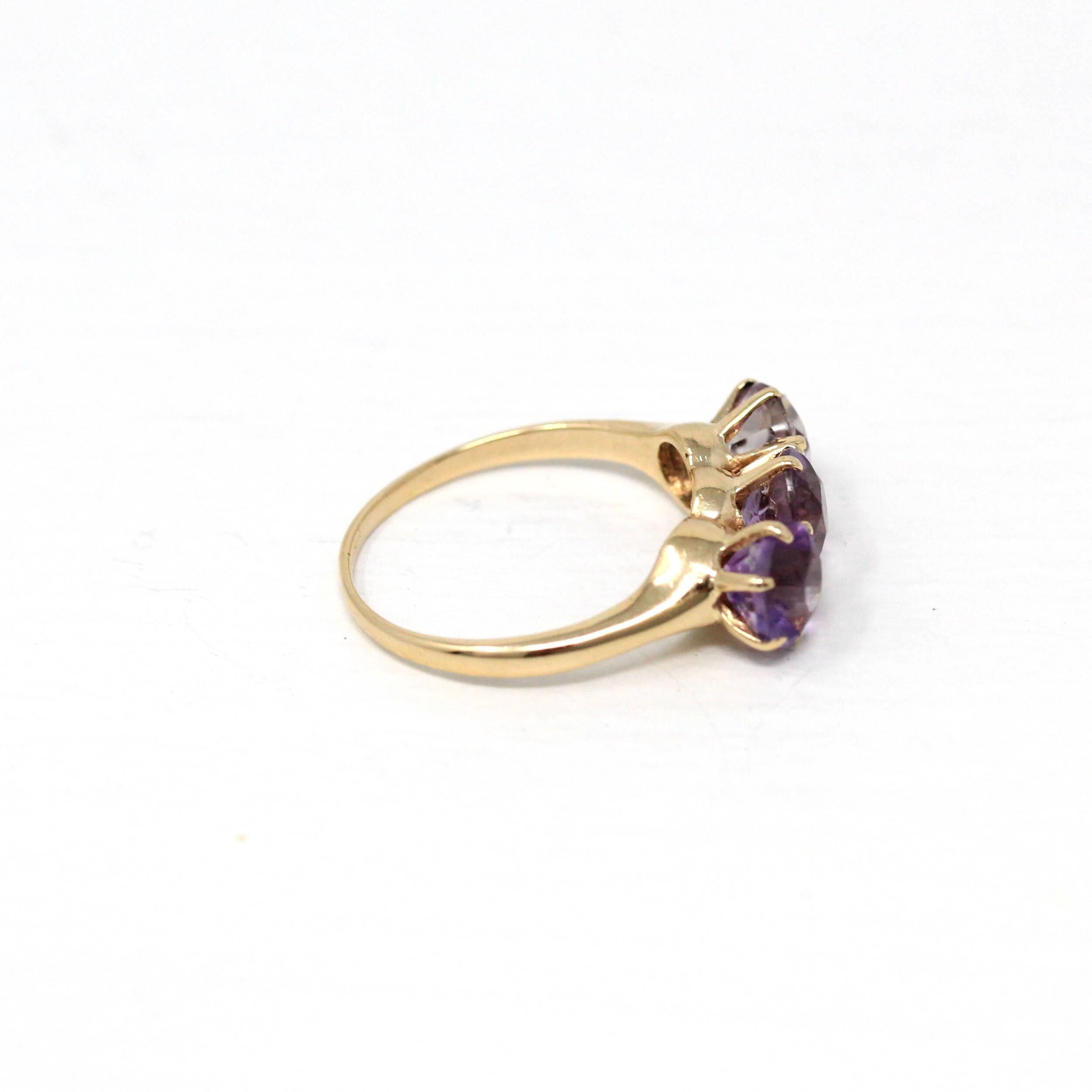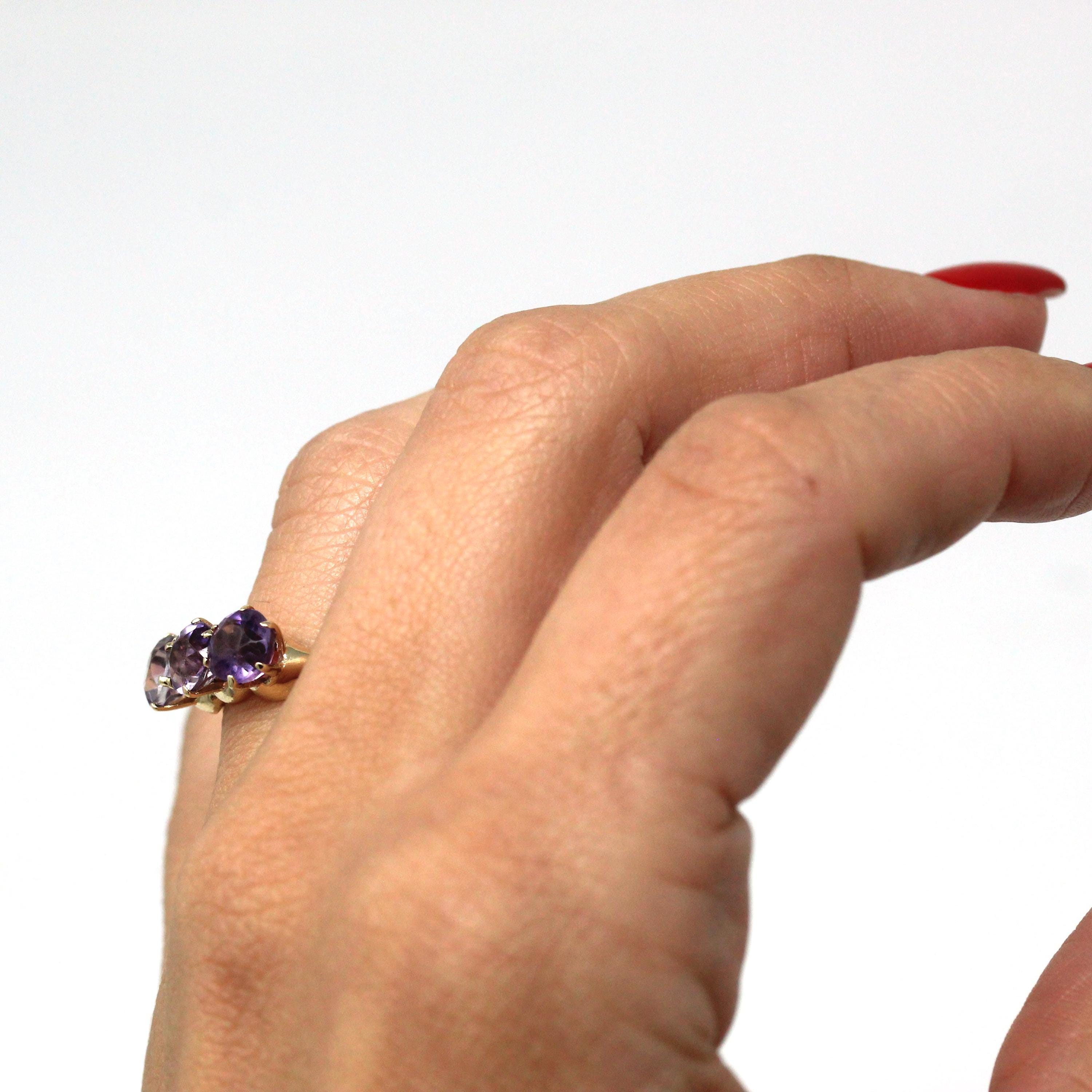 Vintage Amethyst Ring - Retro 10k Yellow & Rose Gold Natural Purple Faceted Gemstone - Circa 1940s Era Size 7 1/2 Two Tone Fine 40s Jewelry