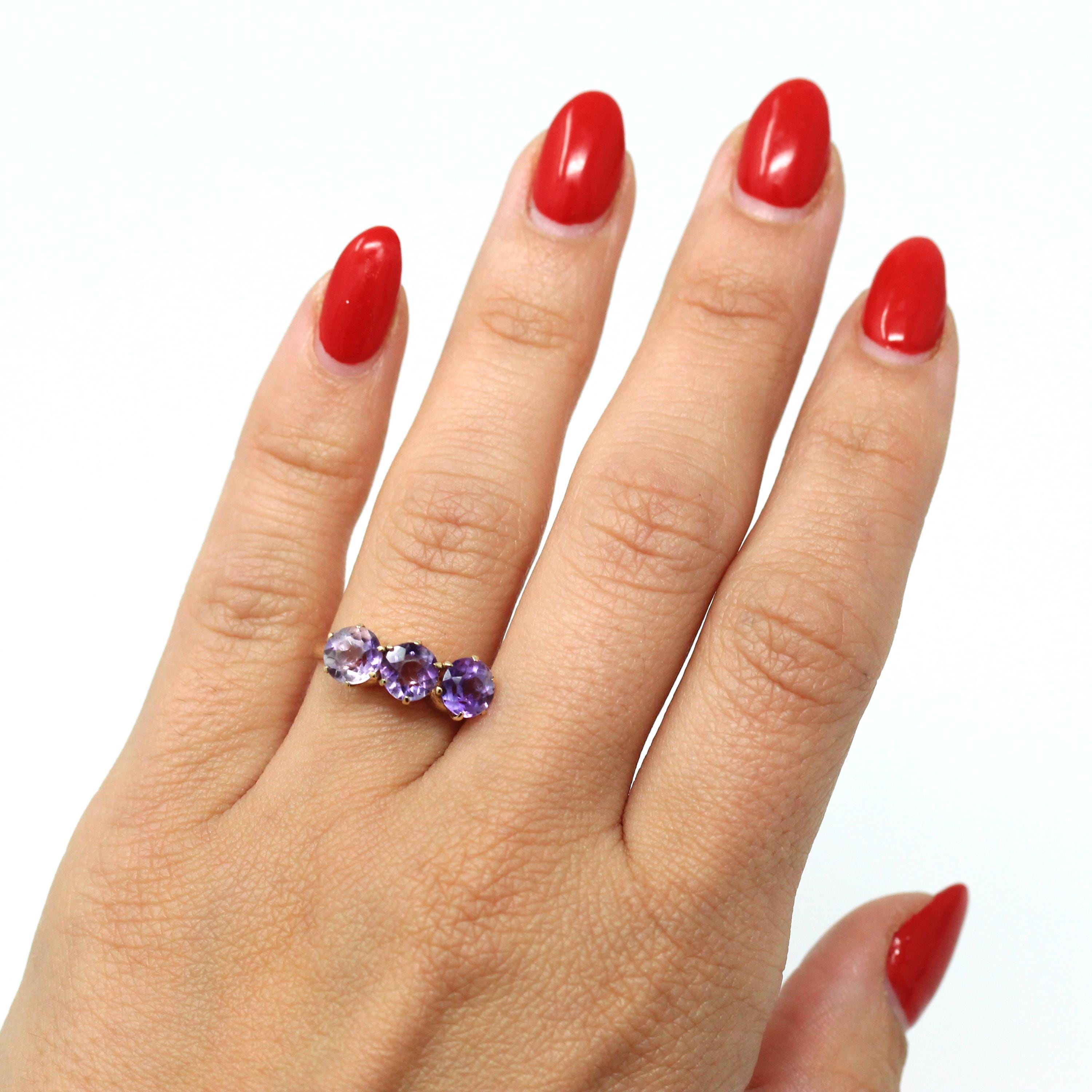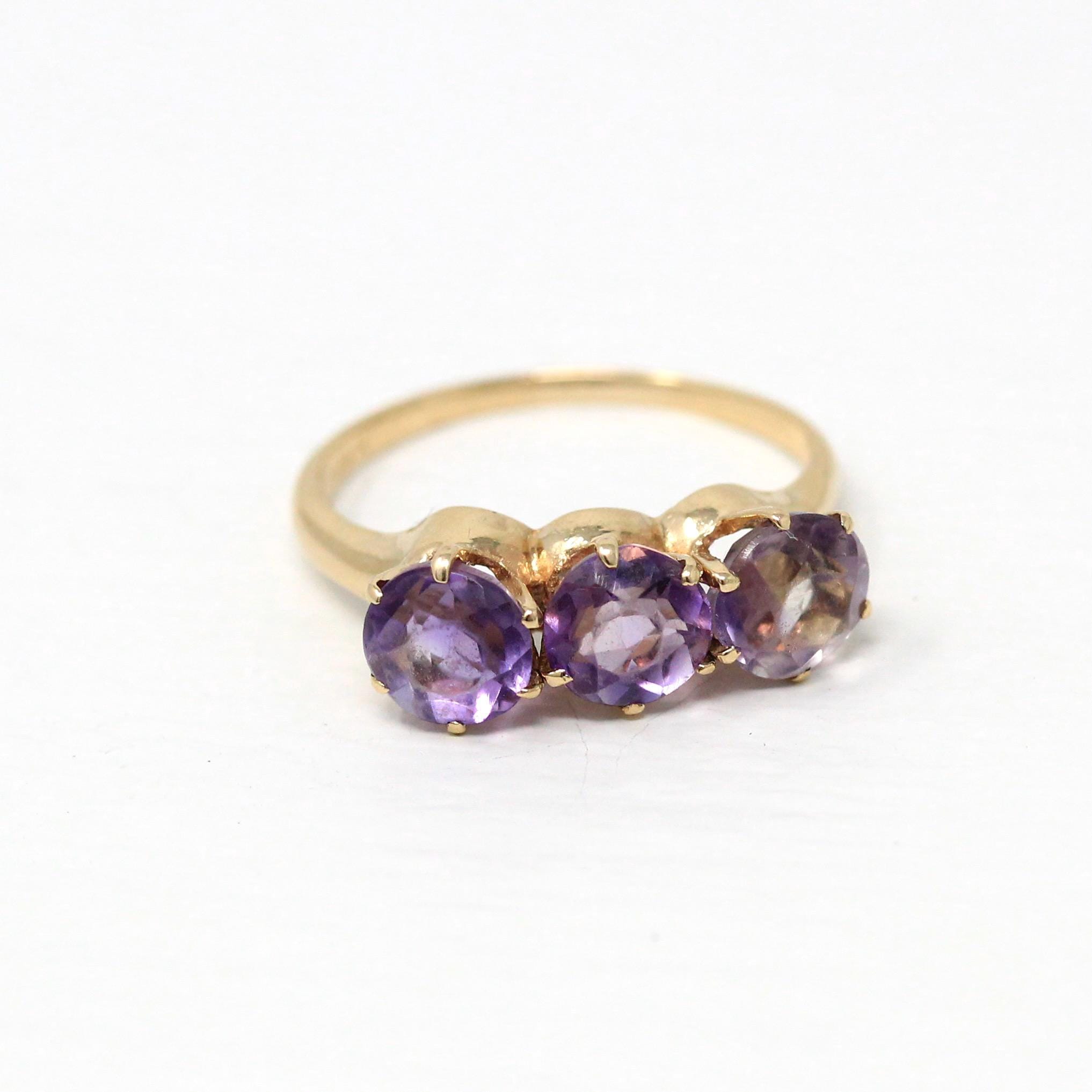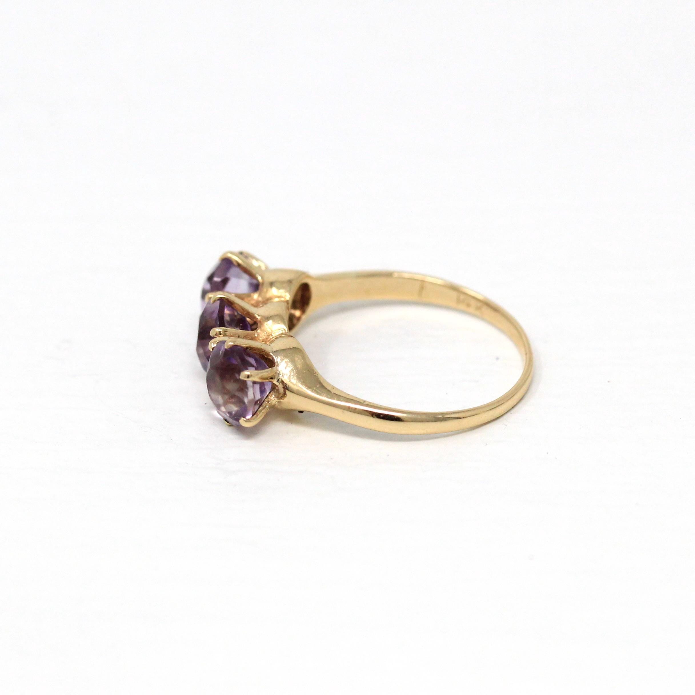Vintage Amethyst Ring - Retro 10k Yellow & Rose Gold Natural Purple Faceted Gemstone - Circa 1940s Era Size 7 1/2 Two Tone Fine 40s Jewelry