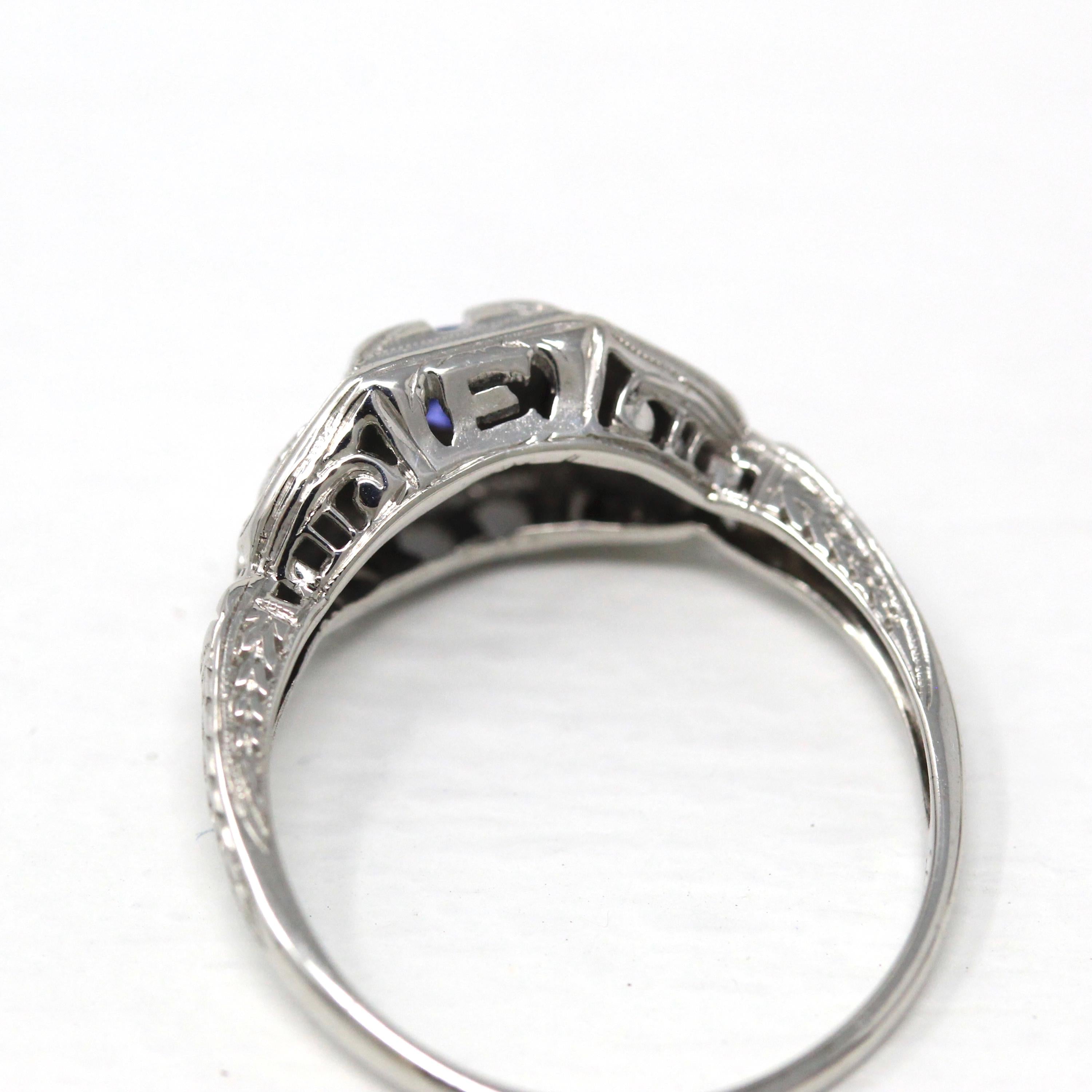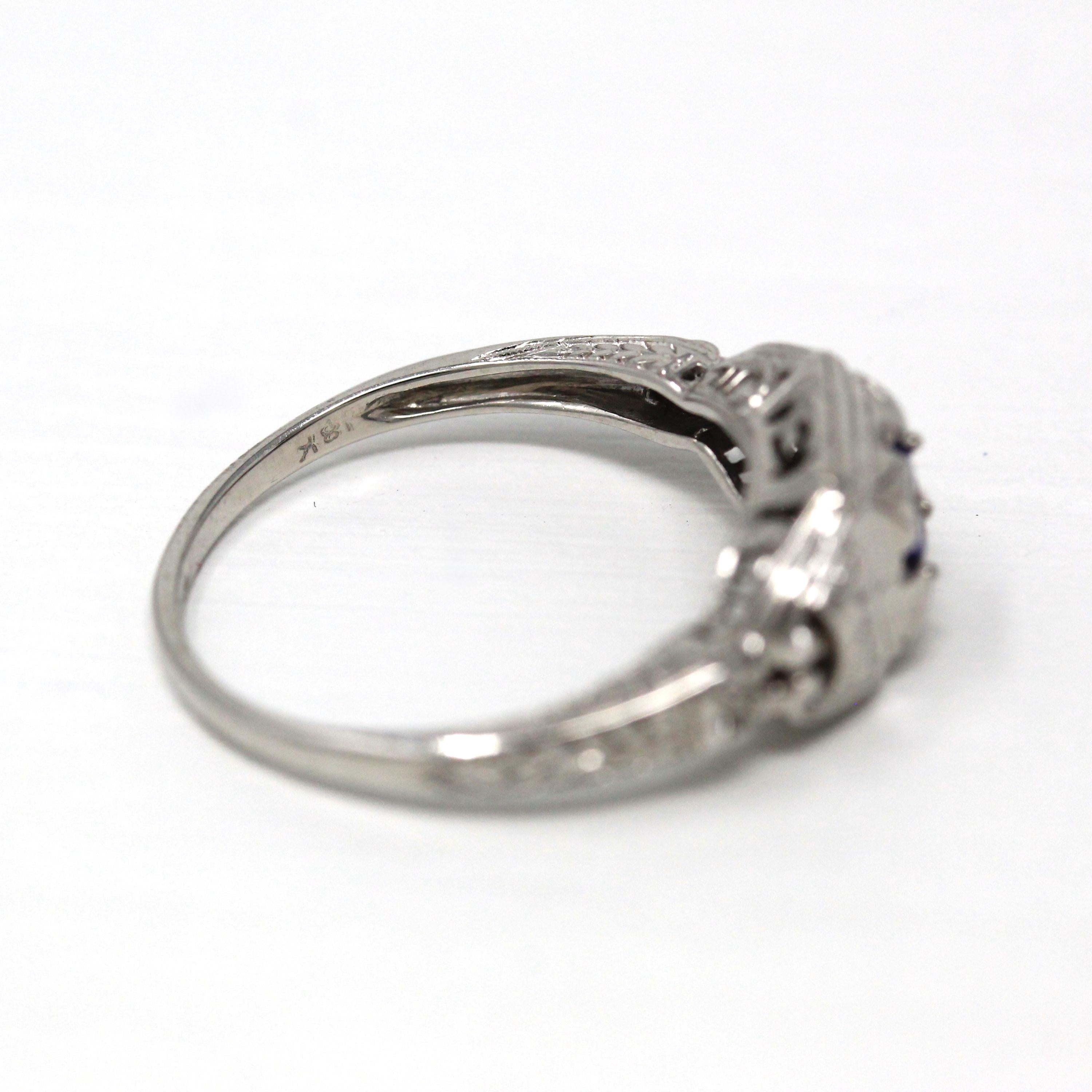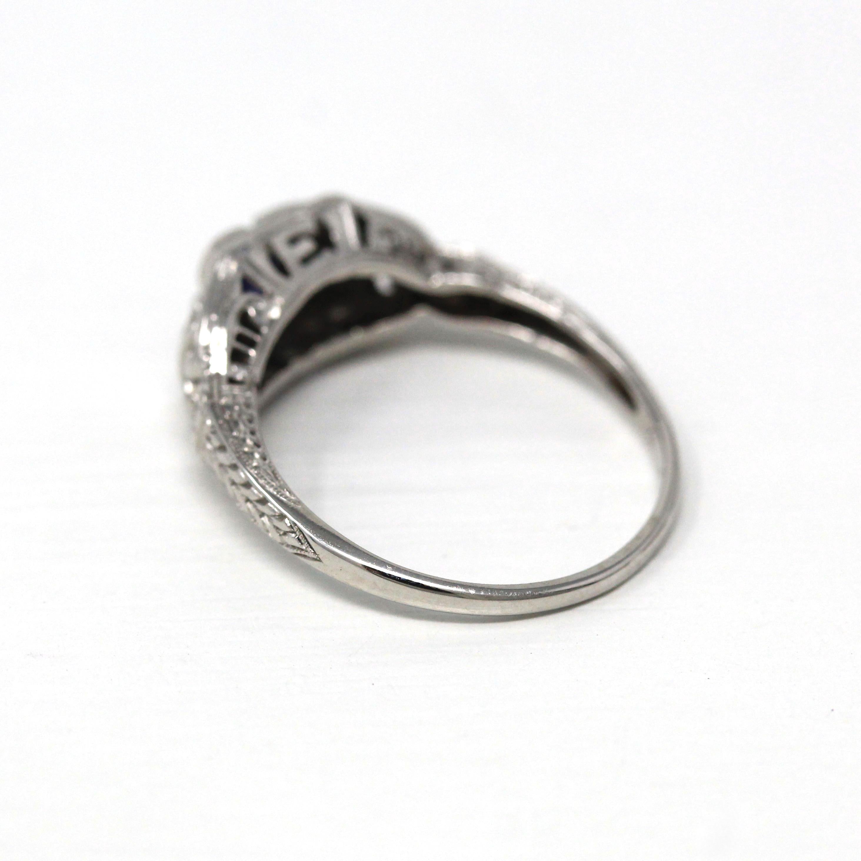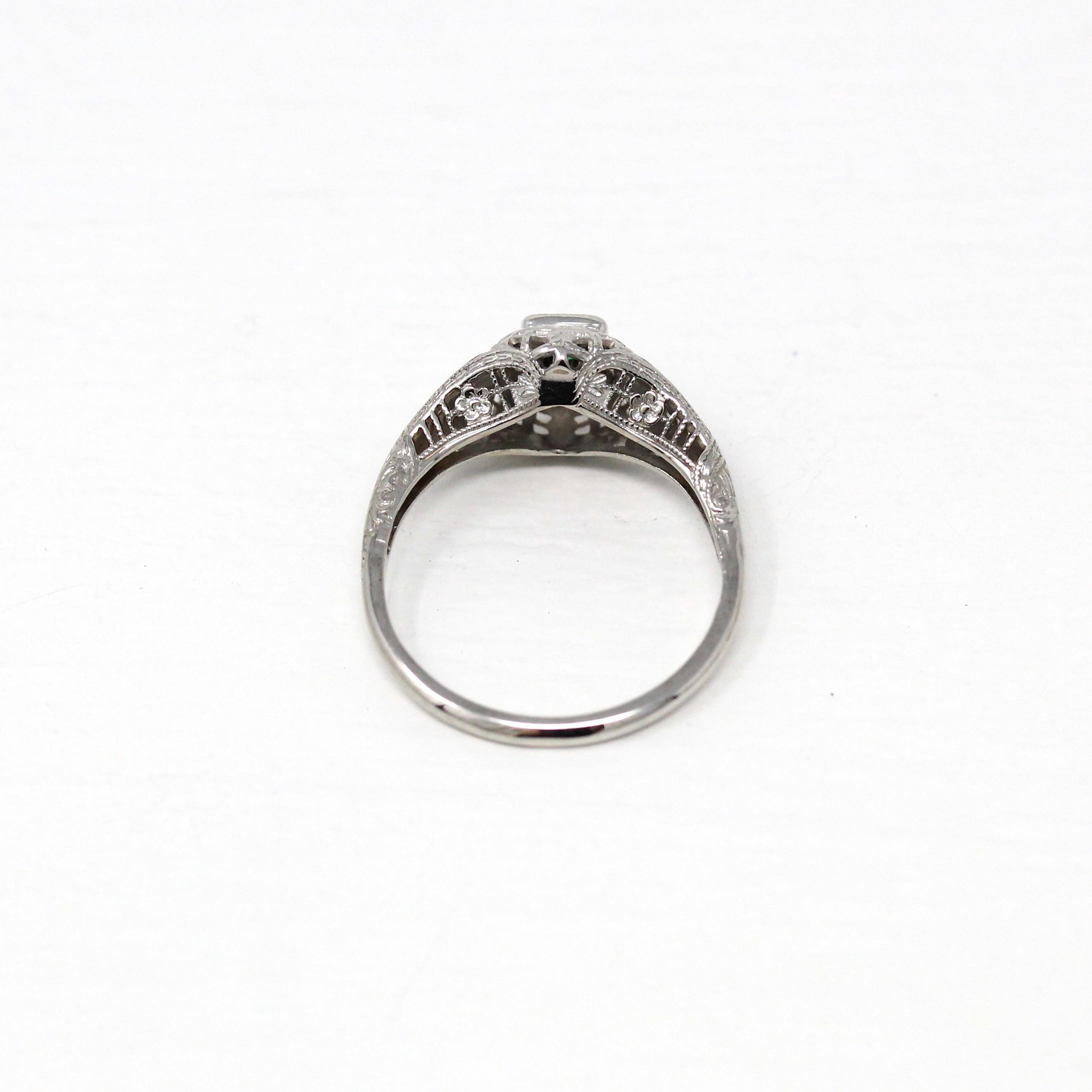Onyx Filigree Ring - Art Deco Era 14k White Gold Natural .02 CT Diamond Accent - Vintage Circa 1930s Size 7 1/2 Black Chalcedony Jewelry