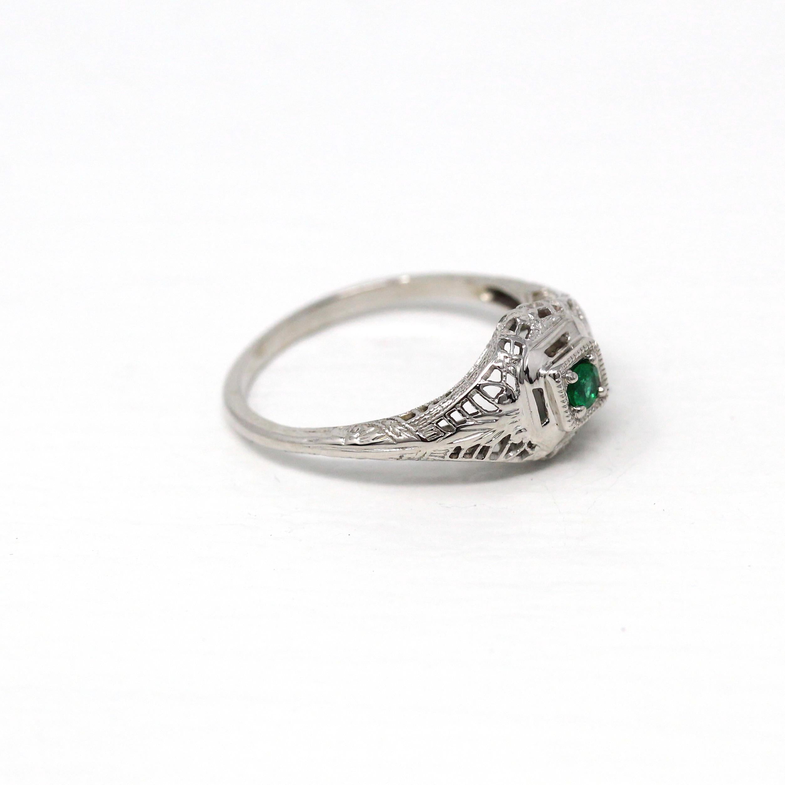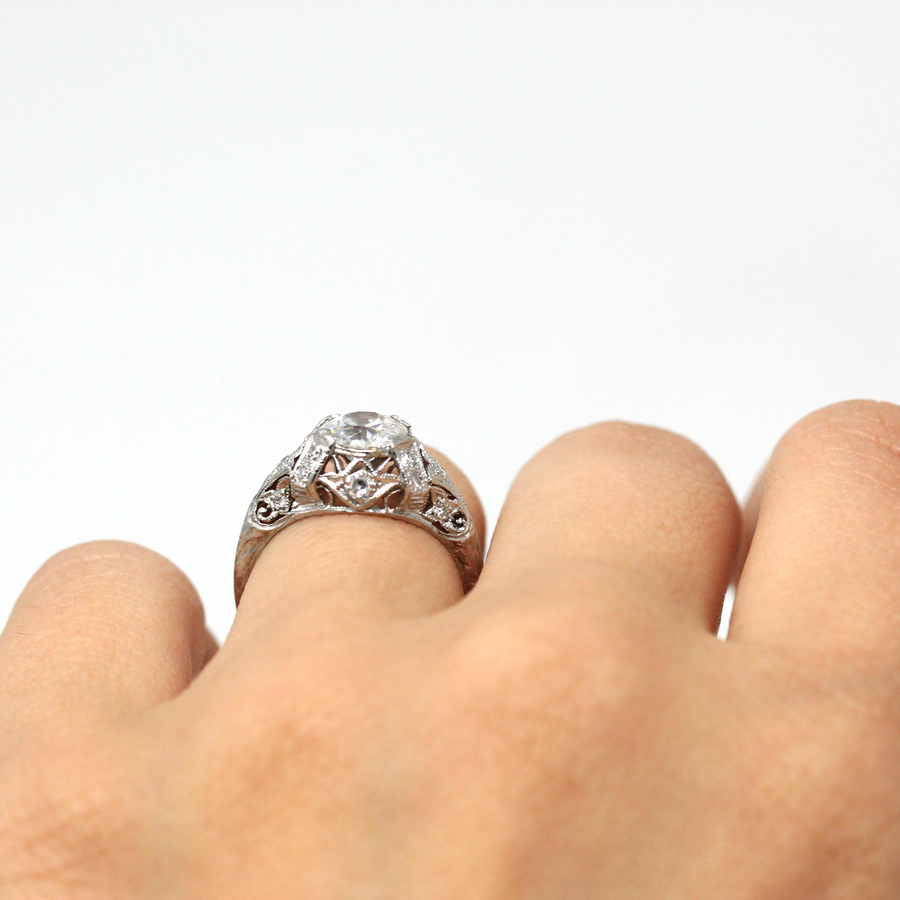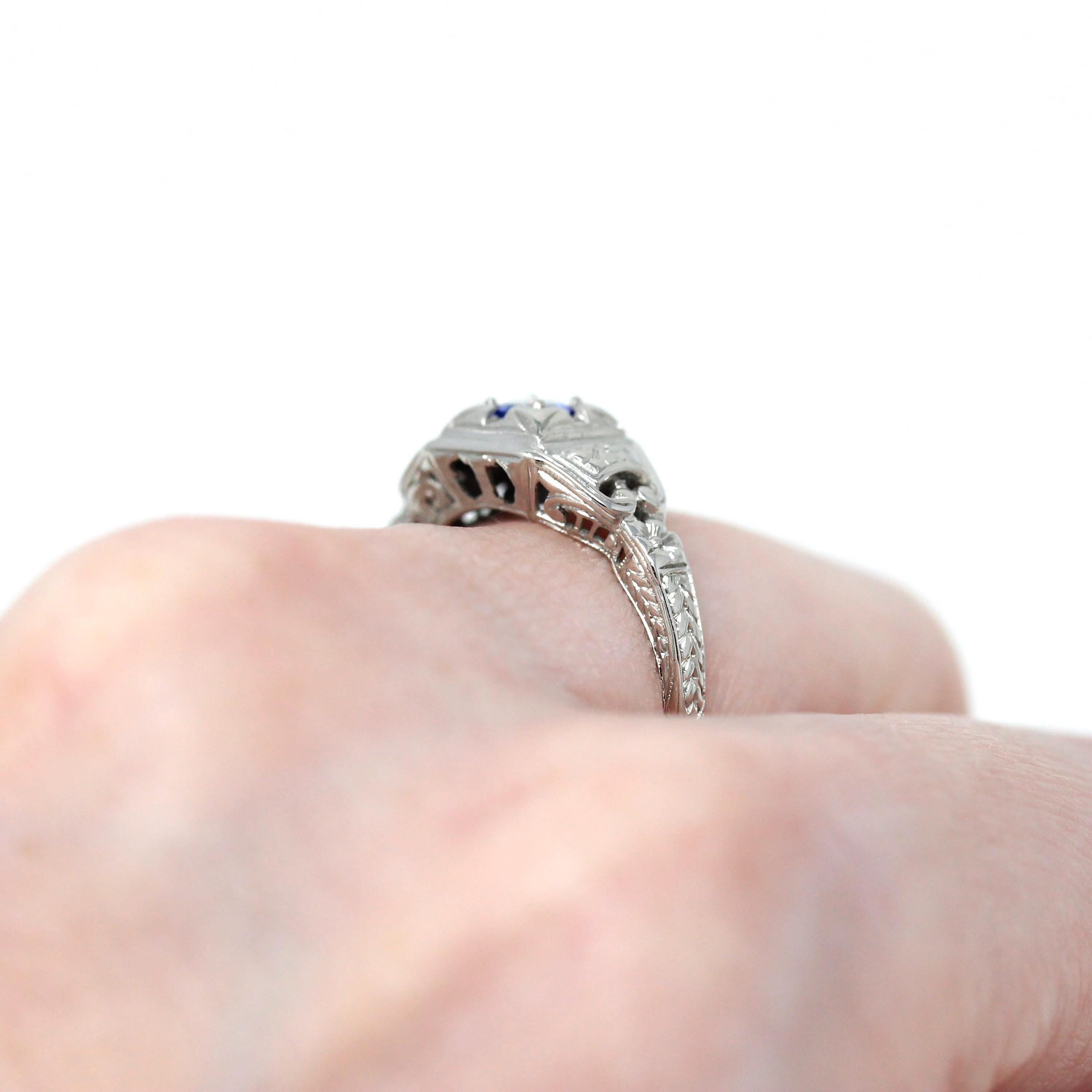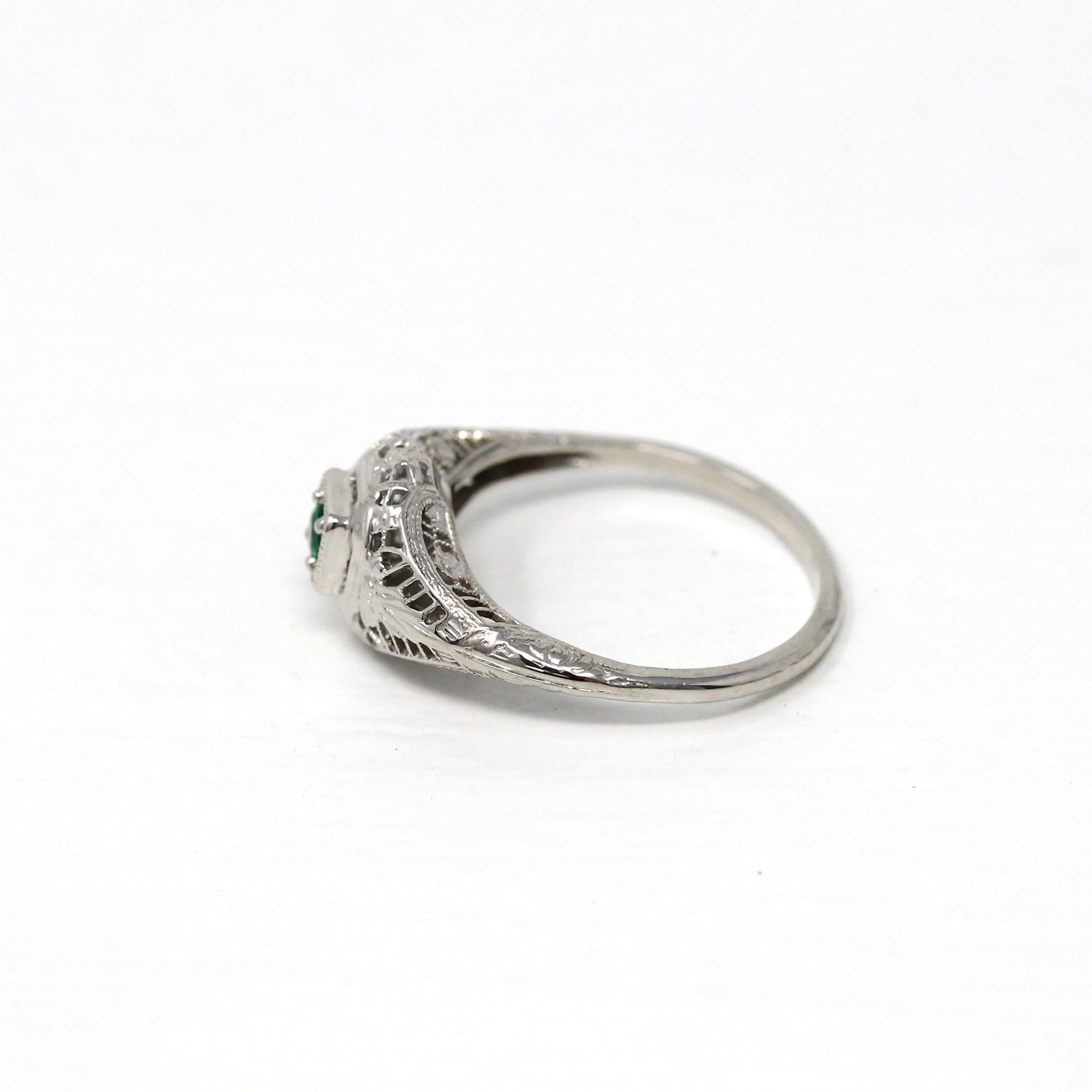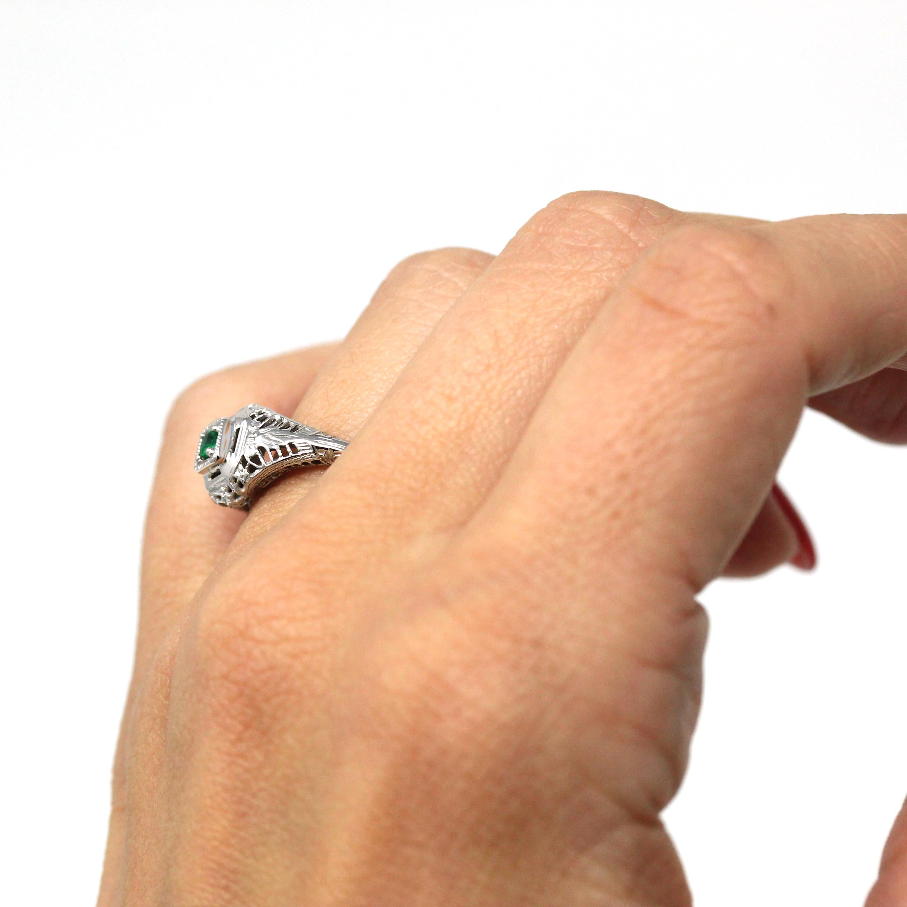 Onyx Filigree Ring - Art Deco Era 14k White Gold Natural .02 CT Diamond Accent - Vintage Circa 1930s Size 7 1/2 Black Chalcedony Jewelry