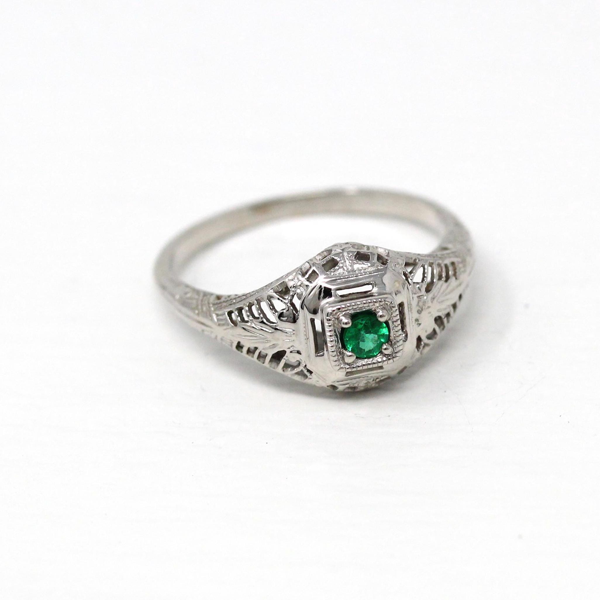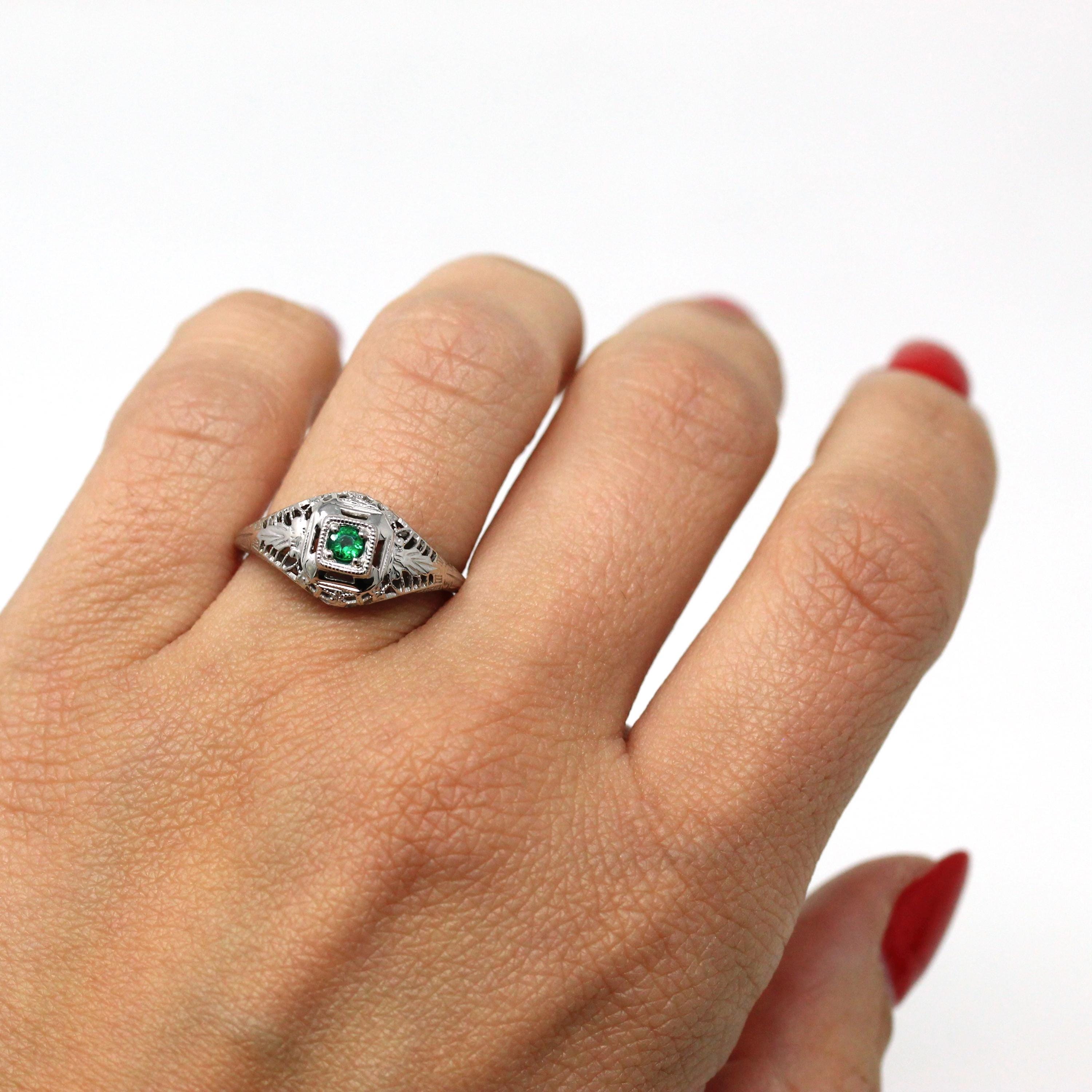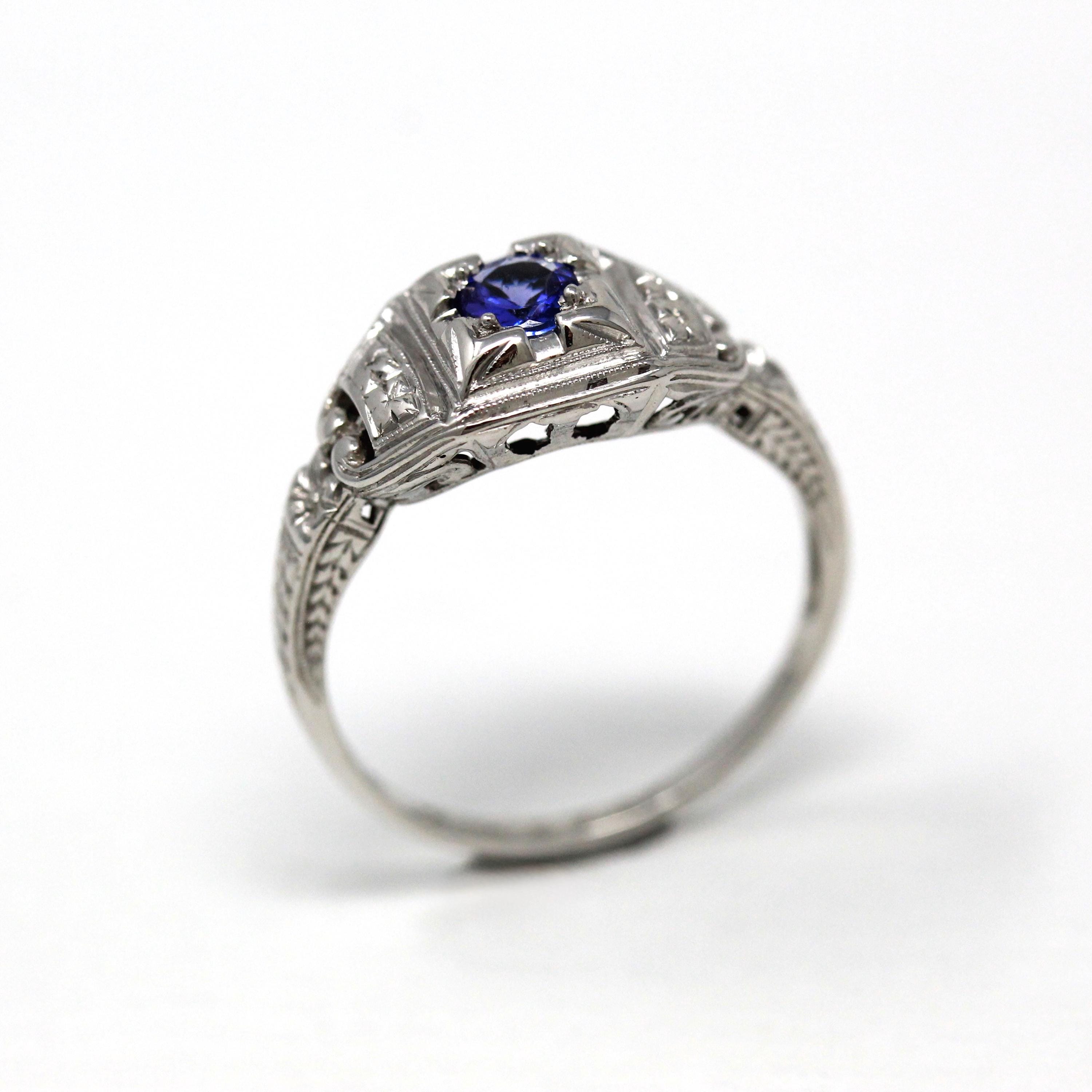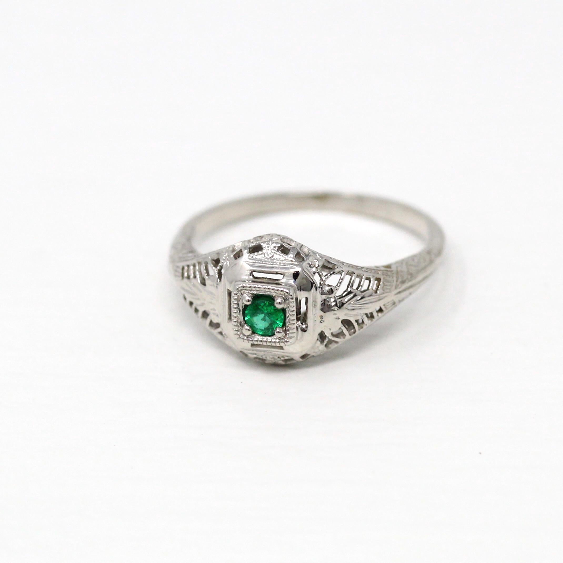 Onyx Filigree Ring - Art Deco Era 14k White Gold Natural .02 CT Diamond Accent - Vintage Circa 1930s Size 7 1/2 Black Chalcedony Jewelry