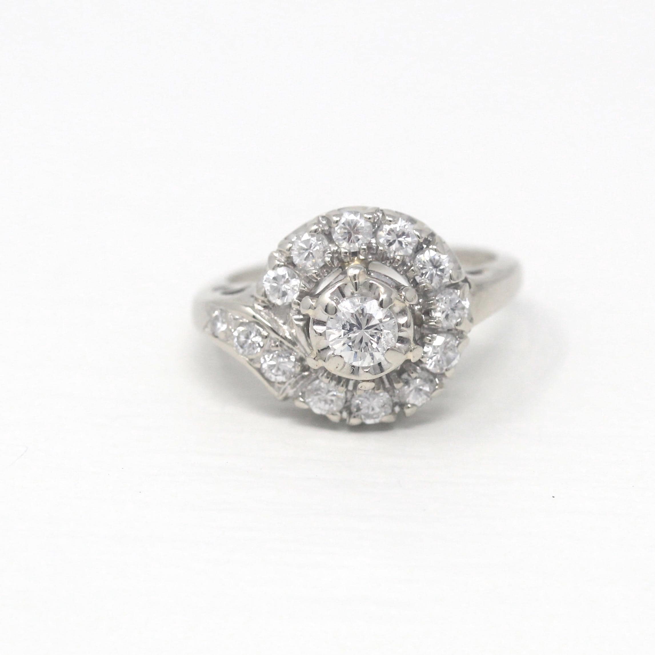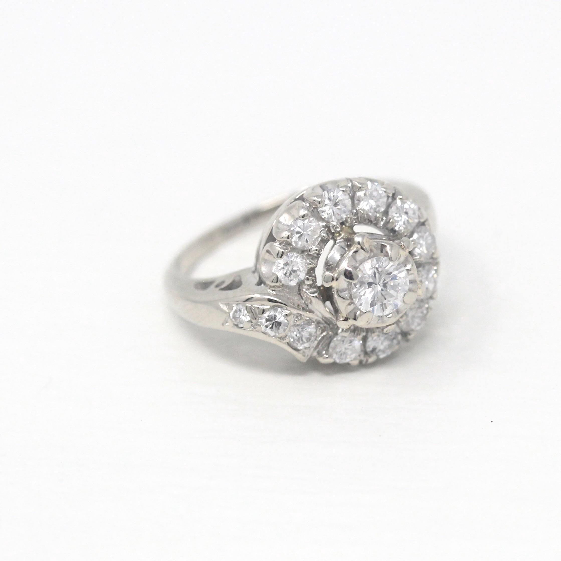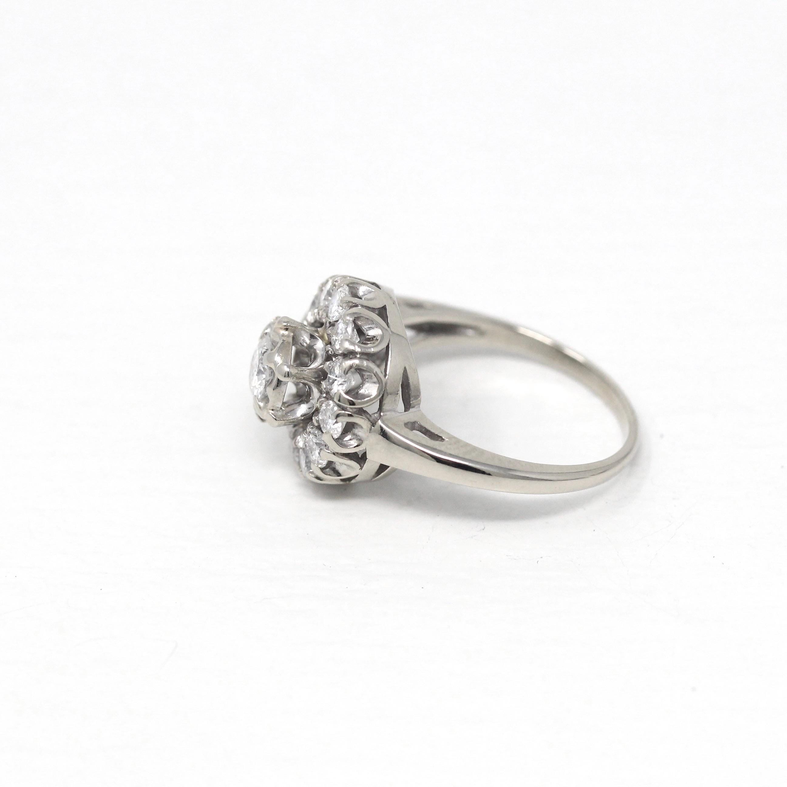 Vintage Opal & Diamond Halo Ring - Mid Century 14k White Gold Natural Gems - Retro Circa 1950s Era Size 6 1/2 Rainbow Cluster Fine Jewelry