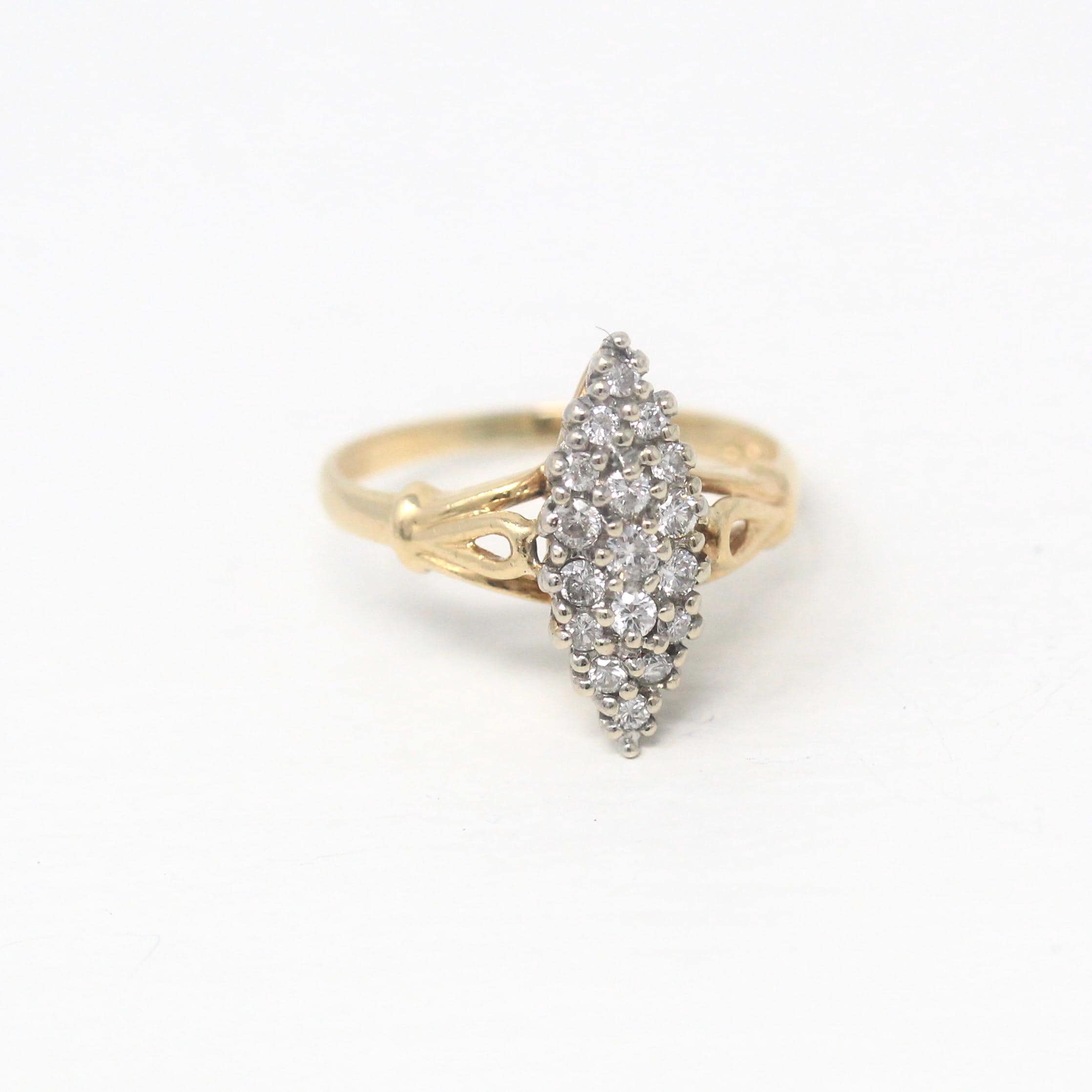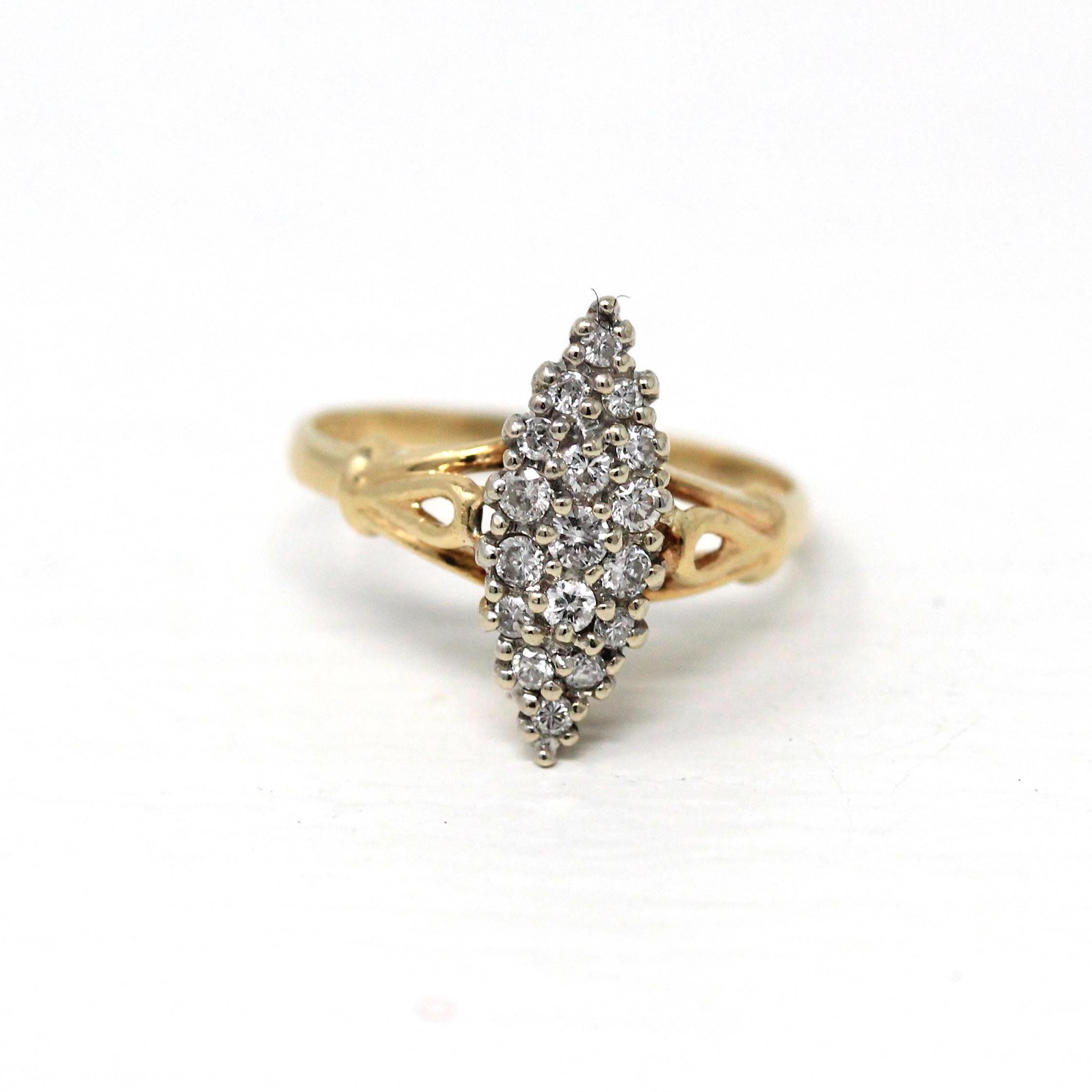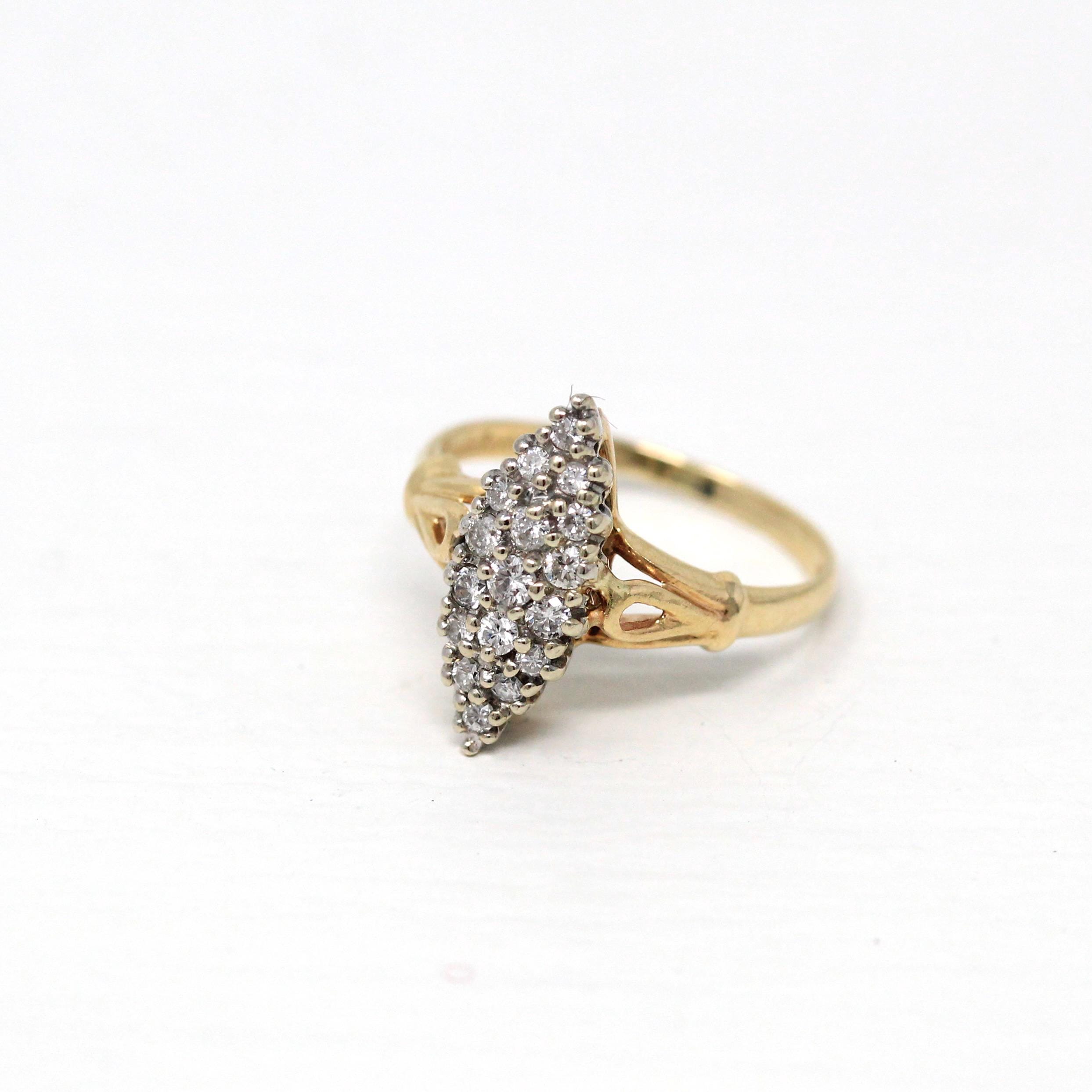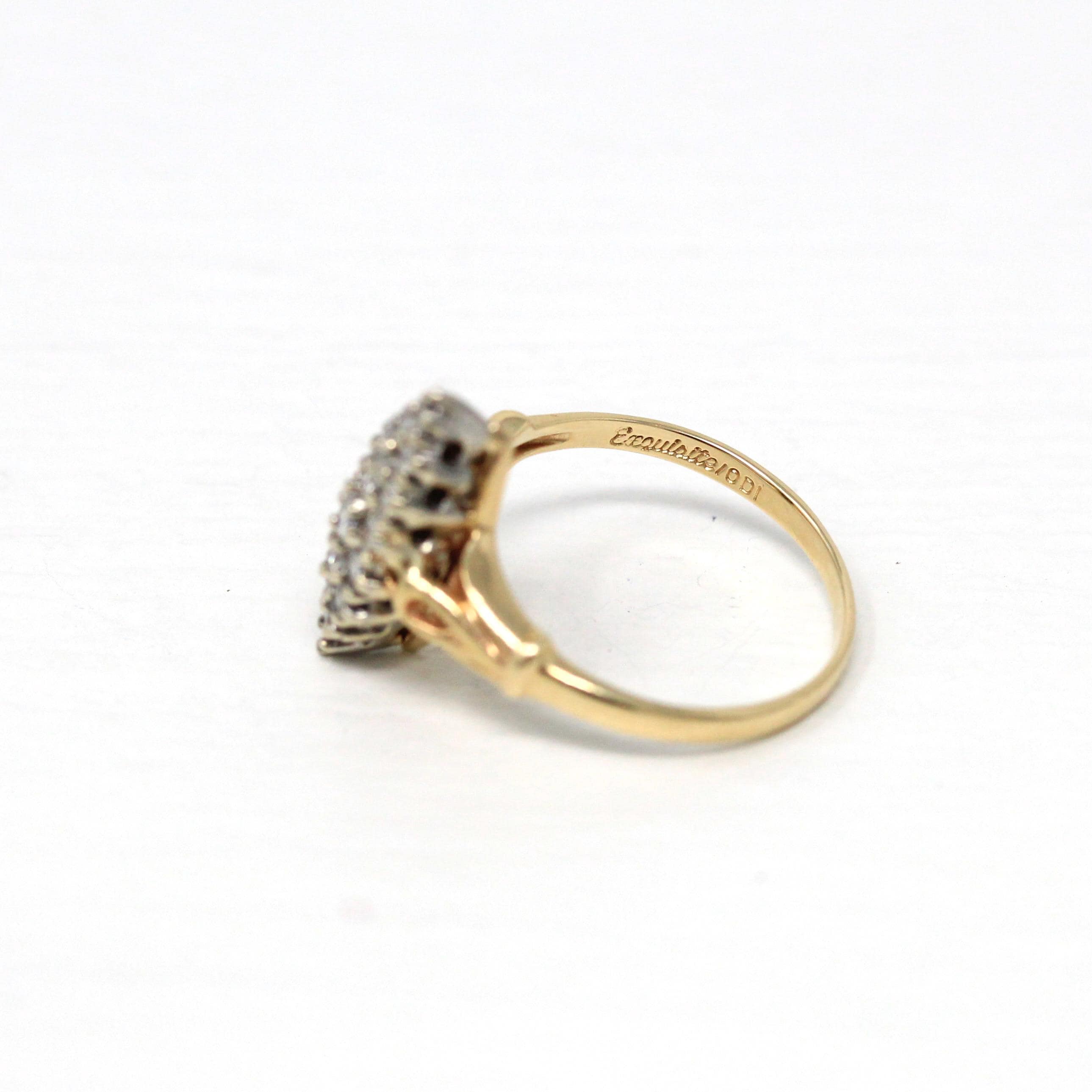 Vintage Nugget Ring - Estate 14k Yellow & White Gold .50 CTW Natural Diamond Band - Modern Size 7.5 Unisex Two Tone Textured Bridal Jewelry