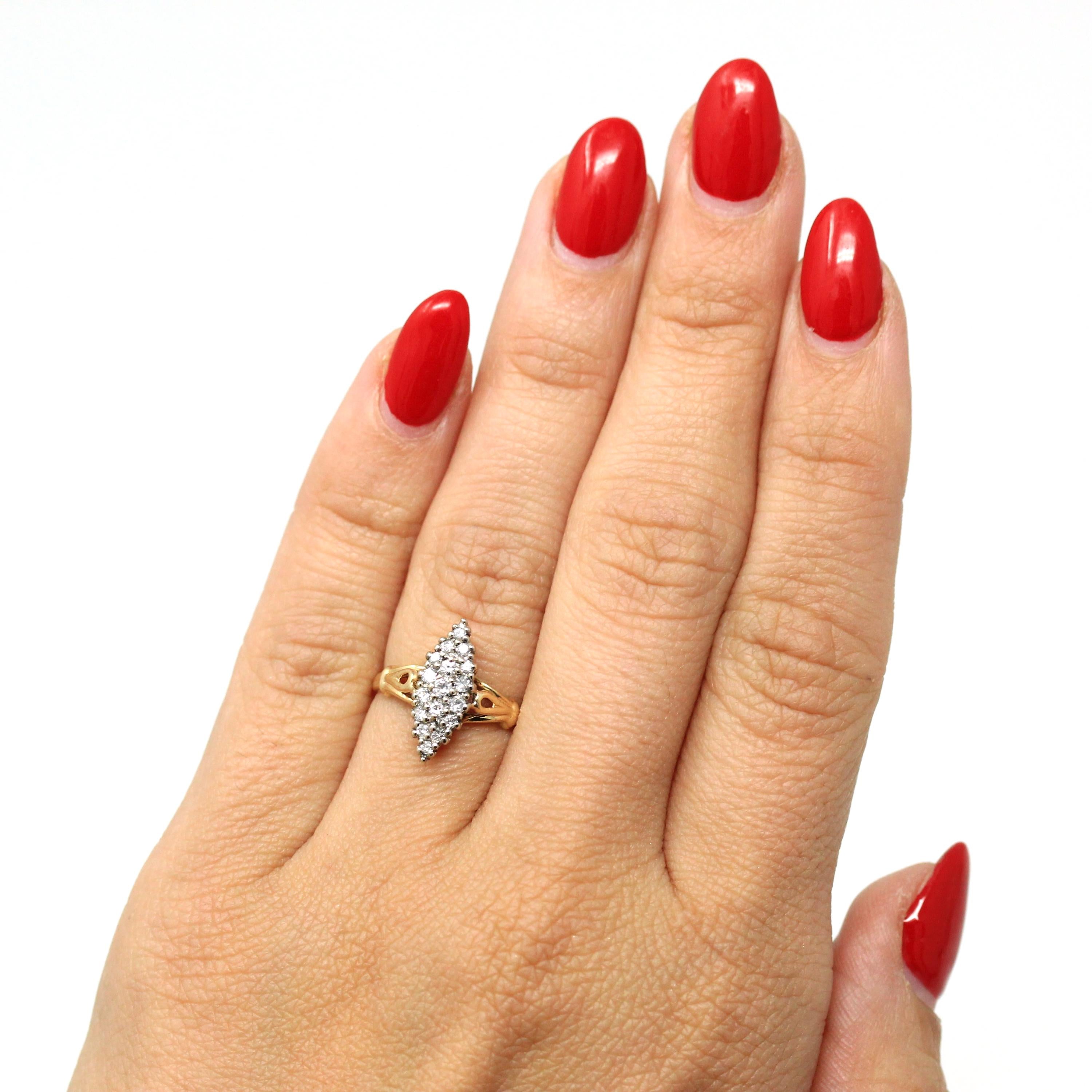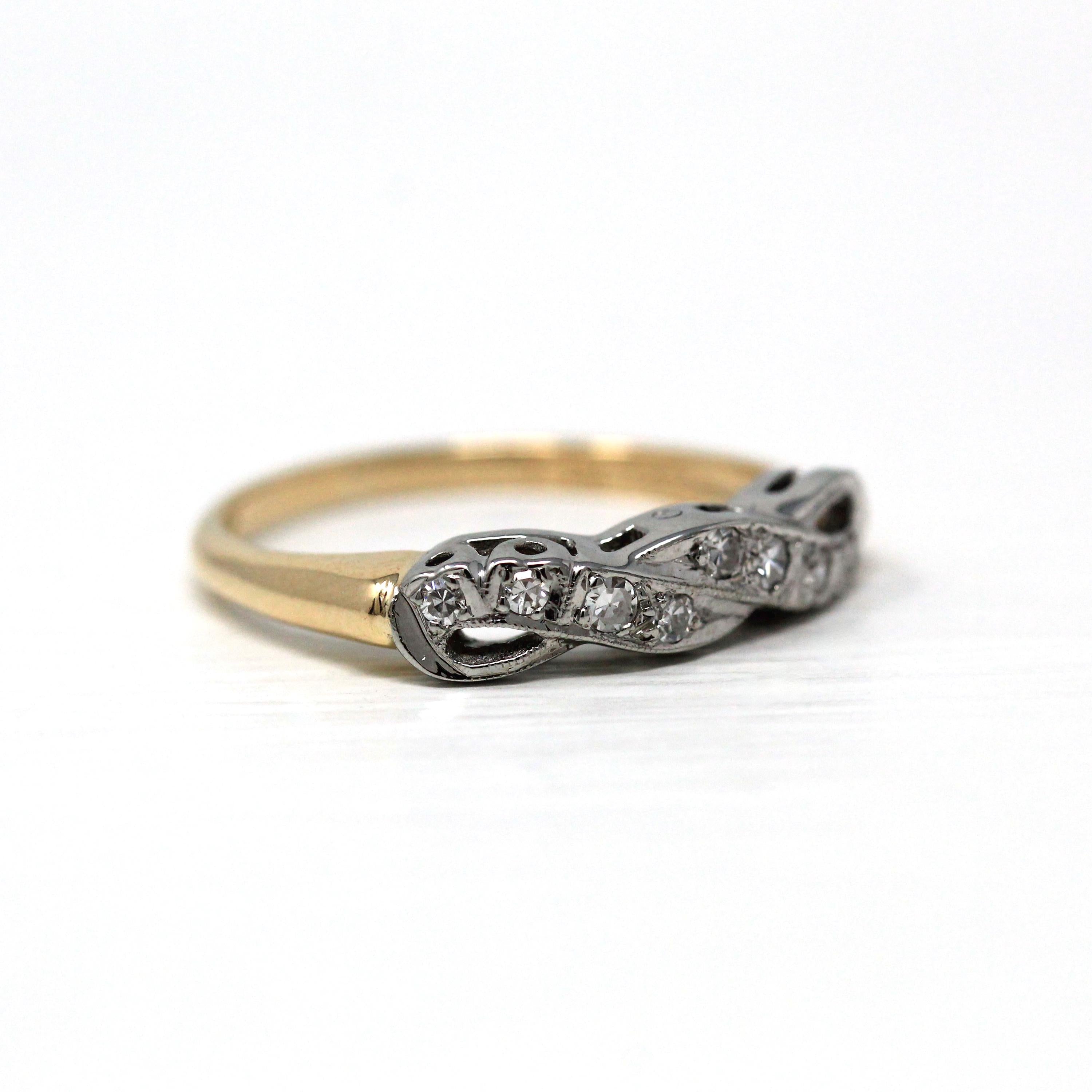 Diamond Pinky Ring - Retro 14k Yellow & White Gold Midi Baby Band Round Clear Gem - Vintage 1970s Era Size 1 3/4 April Birthstone Jewelry