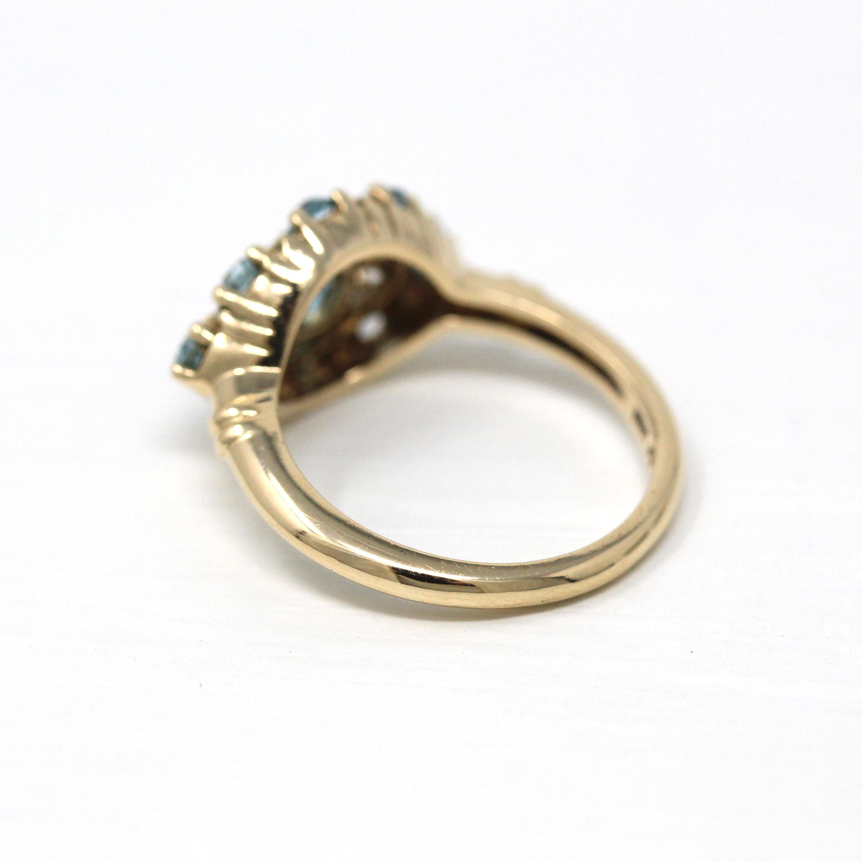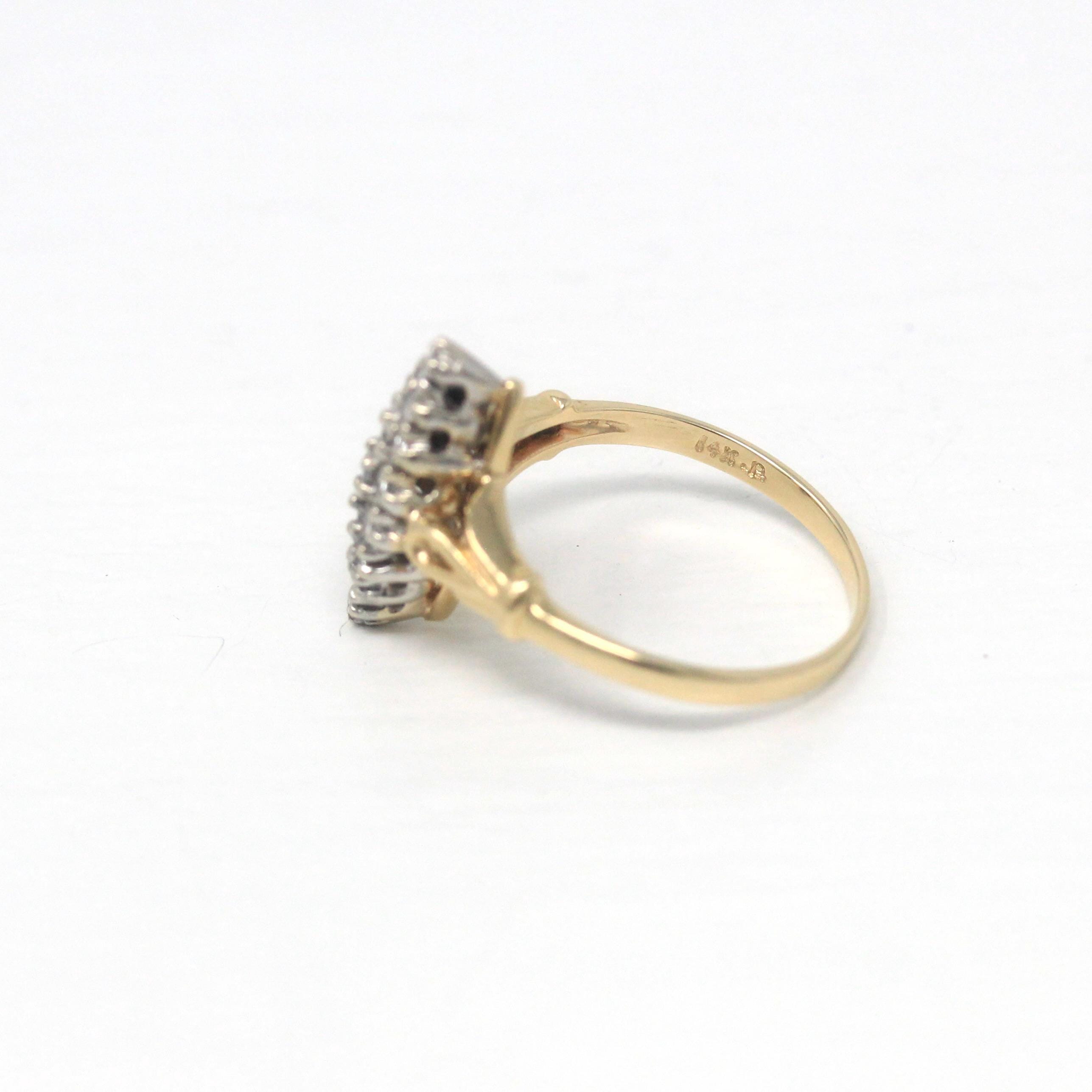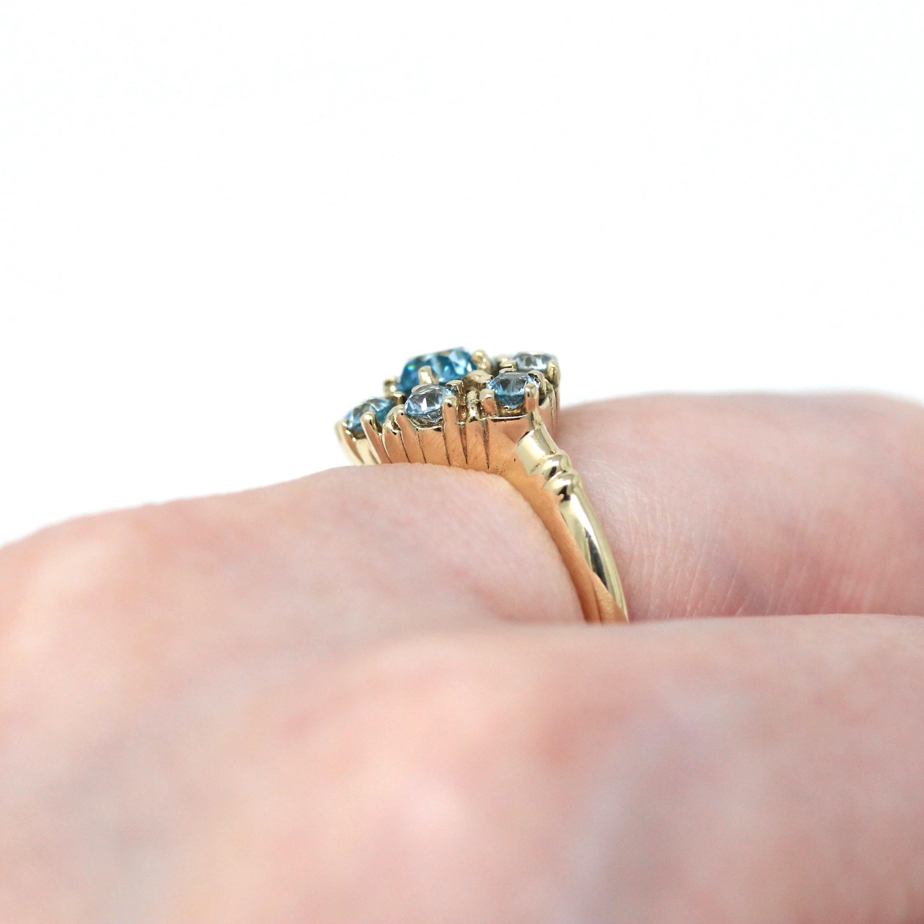 Sapphire Cluster Ring - Estate 14k Yellow Gold Natural Blue Gemstones - Modern Circa 1980s Era Size 6 3/4 Wide Band Fine 80s Flower Jewelry