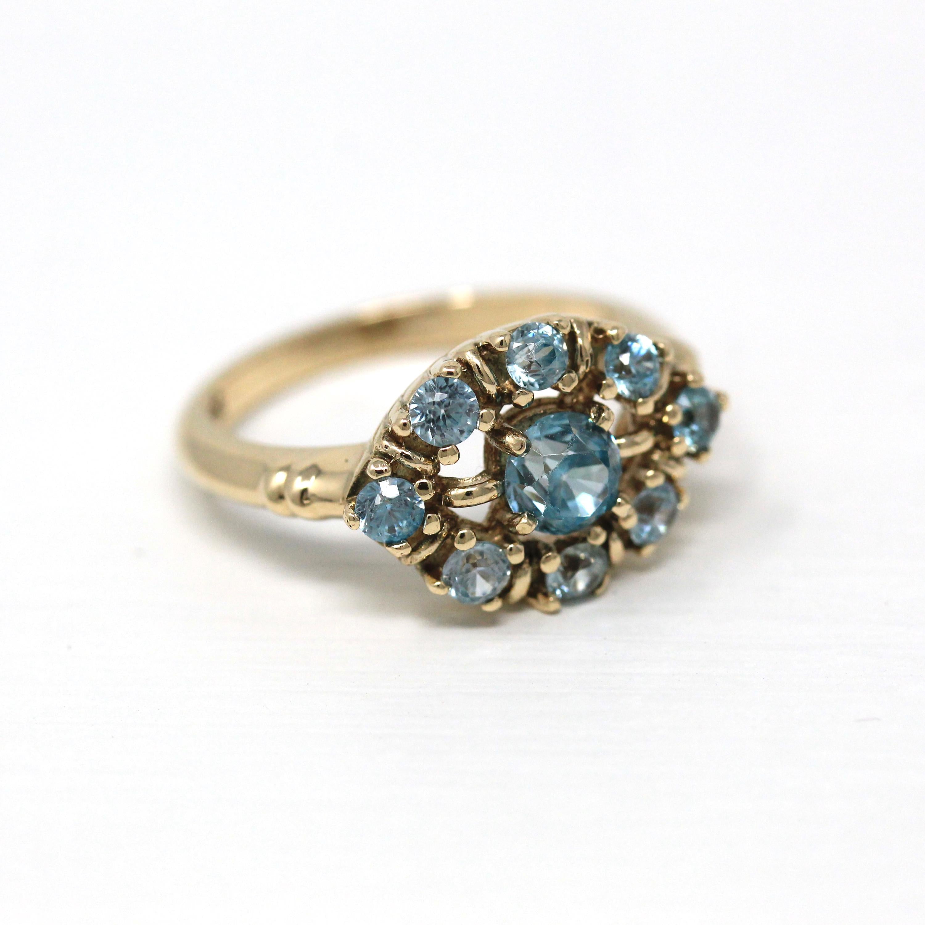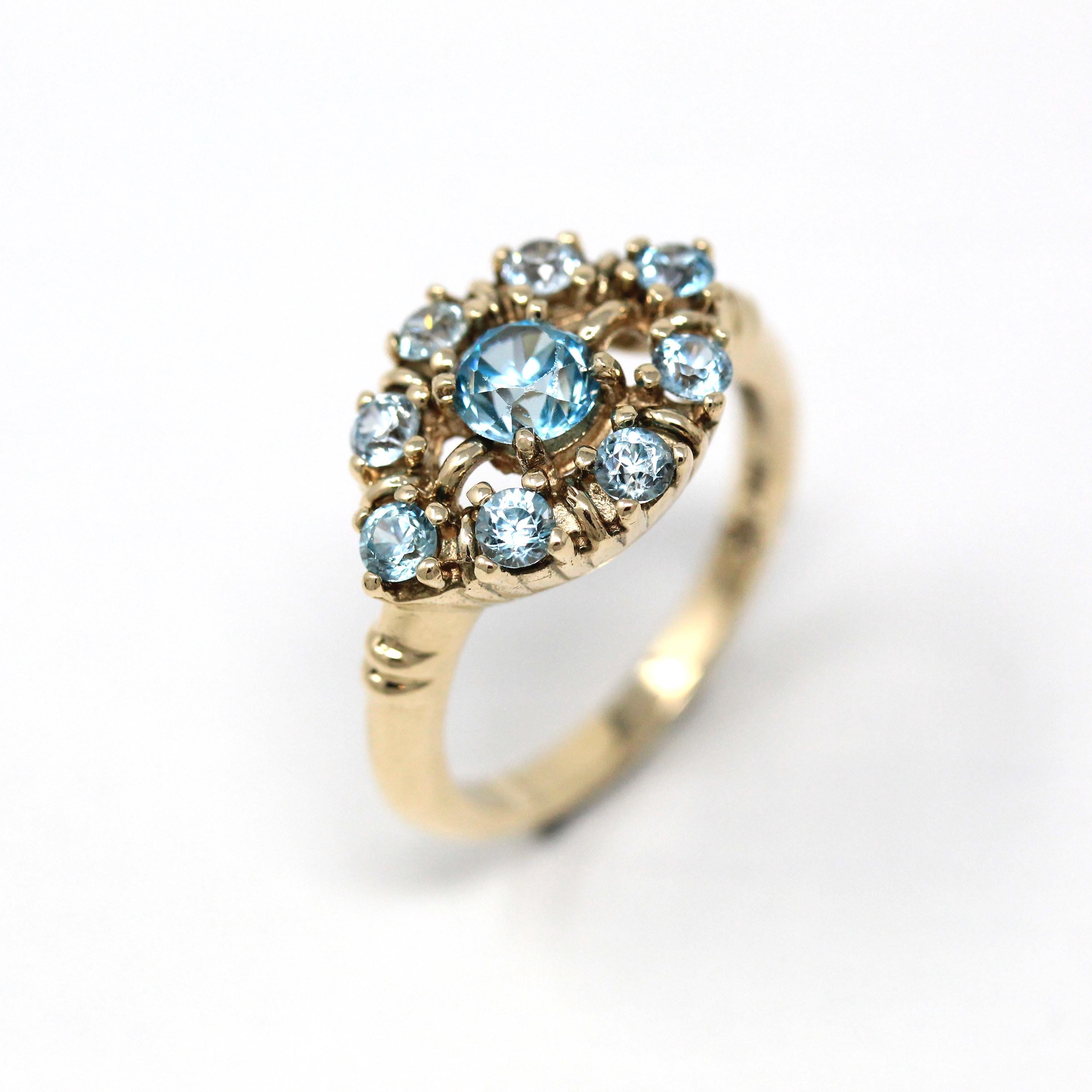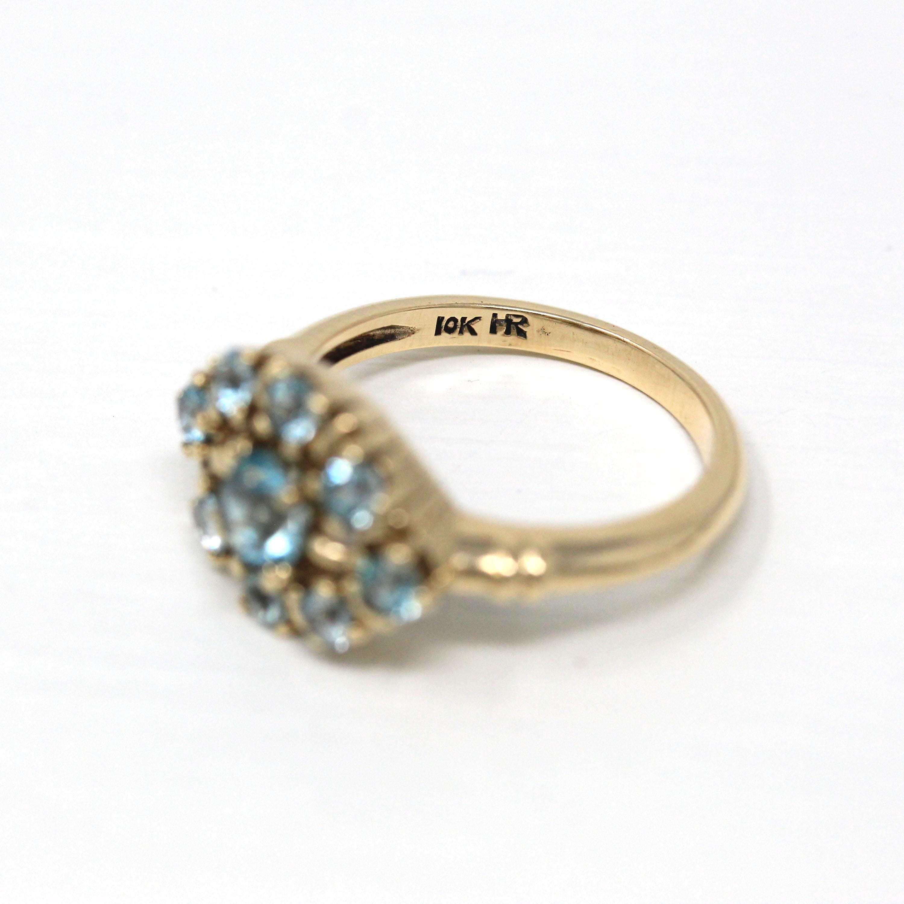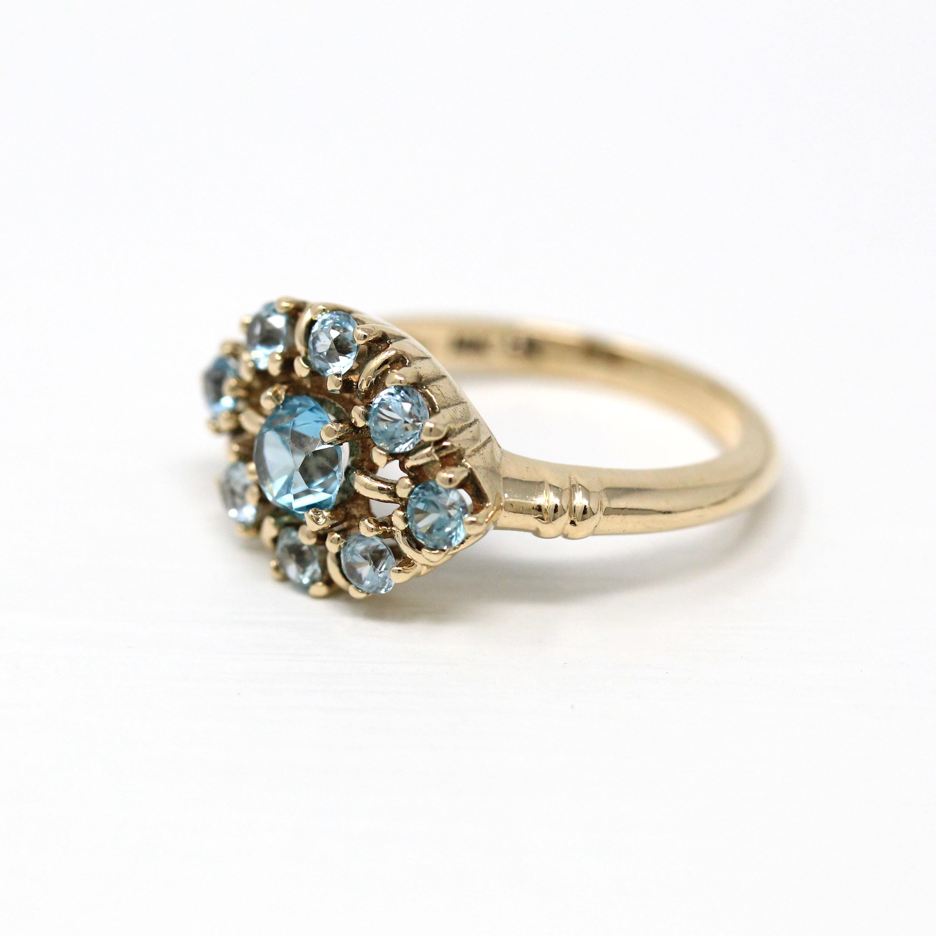 Sapphire Cluster Ring - Estate 14k Yellow Gold Natural Blue Gemstones - Modern Circa 1980s Era Size 6 3/4 Wide Band Fine 80s Flower Jewelry
