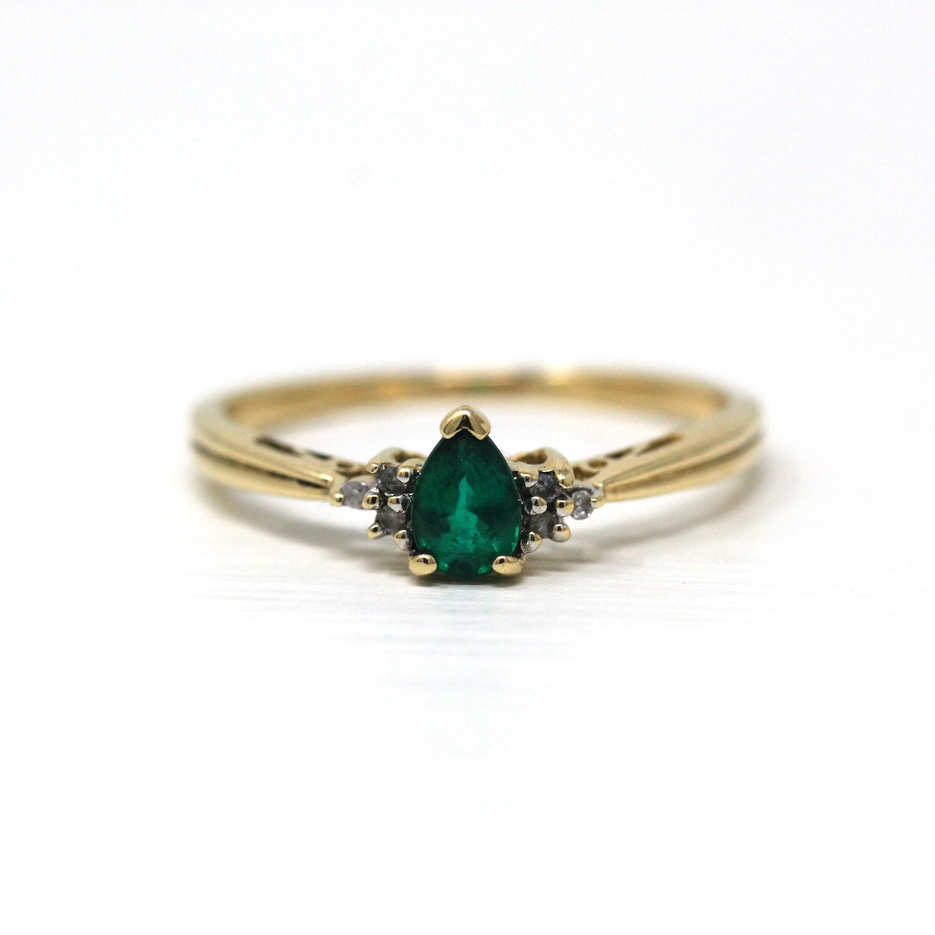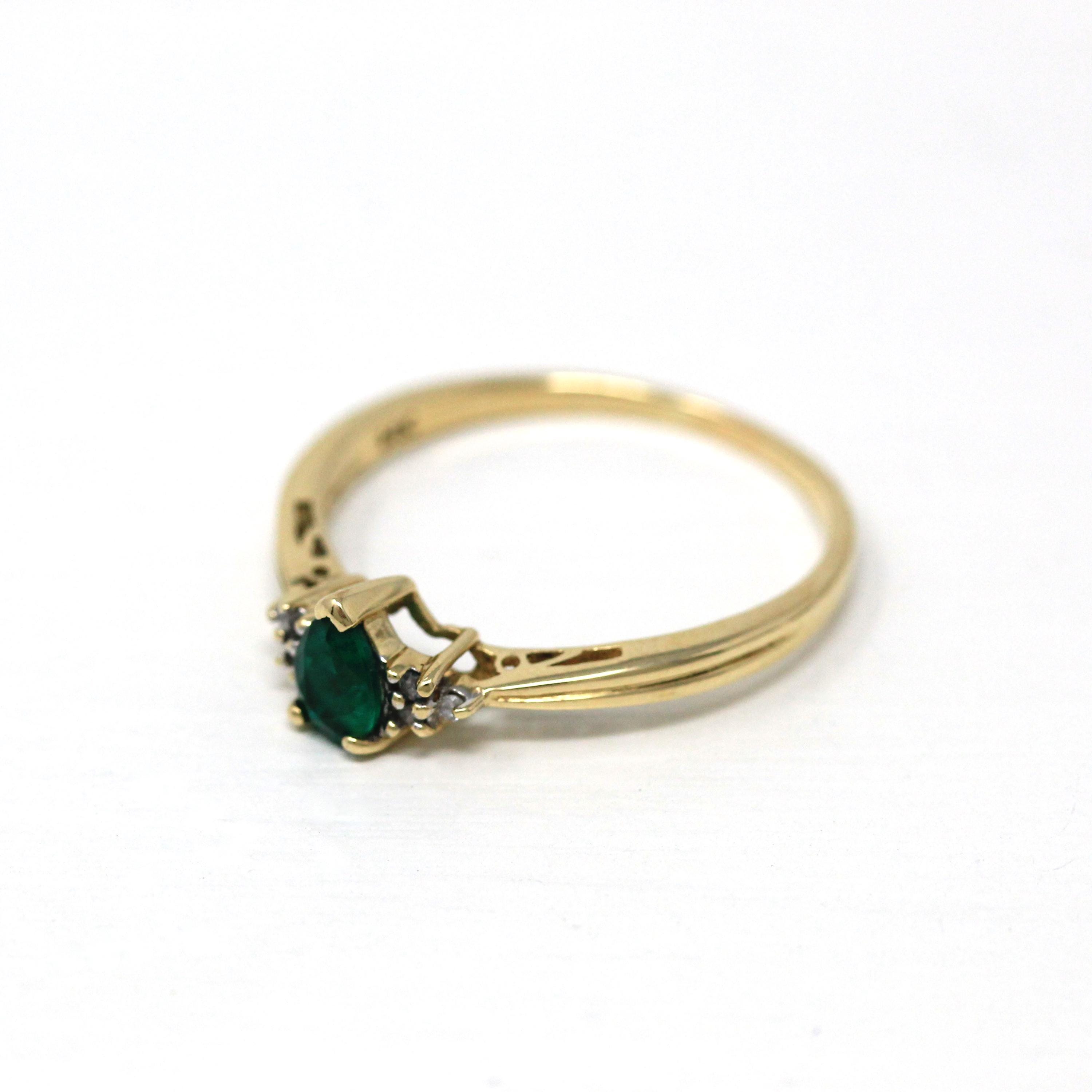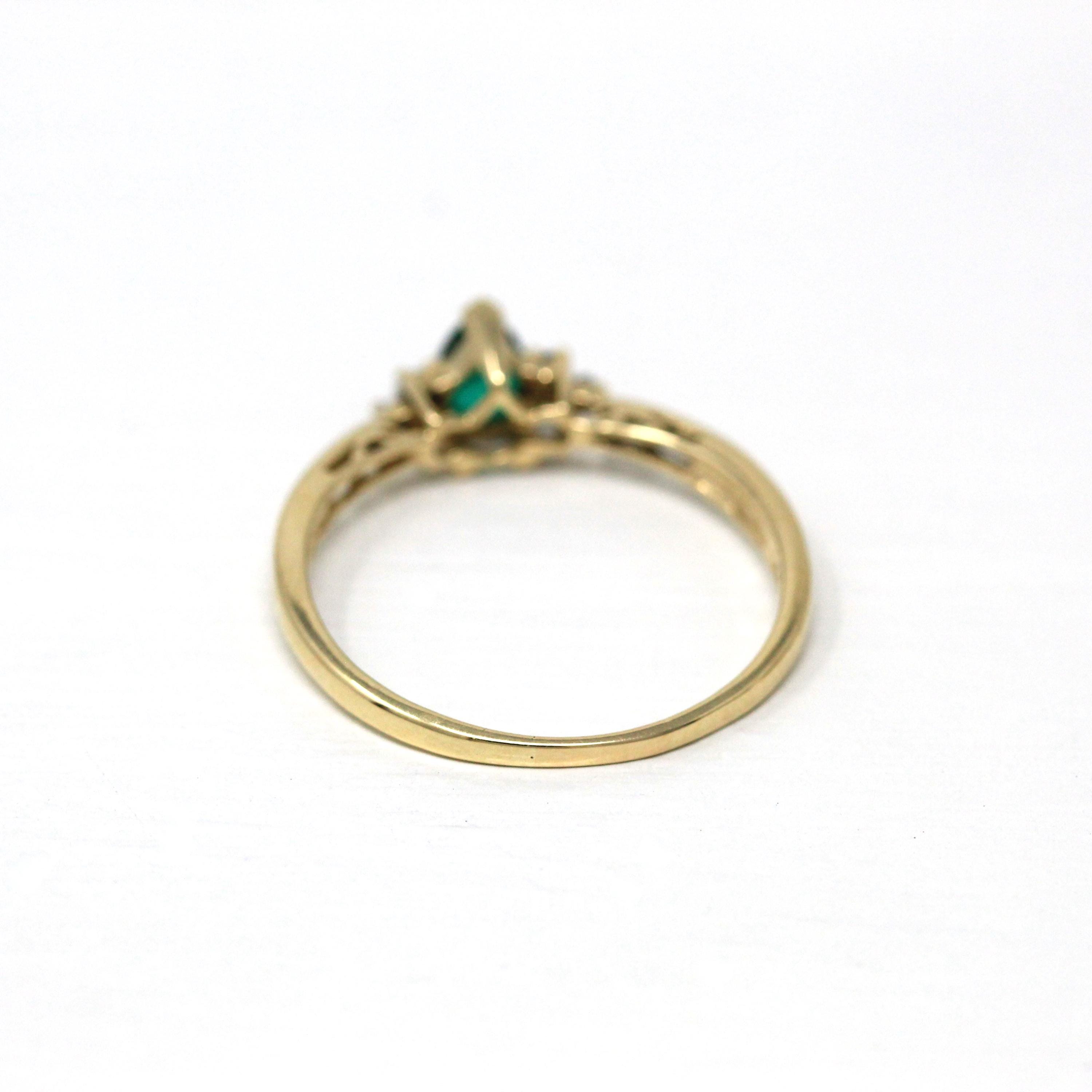 Created Ruby Ring - Retro Era 10k Yellow Gold Created Red Stone & Diamond Gemstones - Circa 1940s Size 6 1/2 Vintage Fine Statement Jewelry