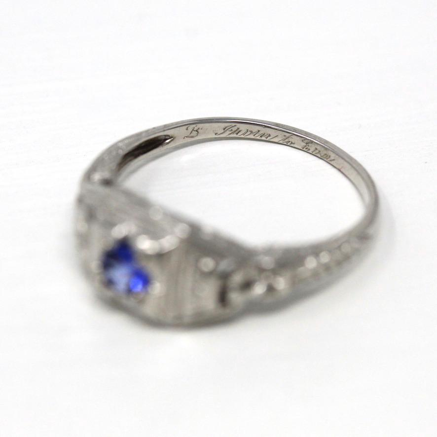 Art Deco Wedding Band - Vintage 18k White Gold Orange Blossom Inscribed Eternity Ring - Circa 1930s Size 5.75 Bridal Fine 30s Floral Jewelry