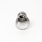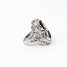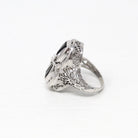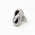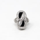 Black & White Art Deco Ring - Vintage 14k White Gold Fancy Cut Black Onyx Created White Sapphire - 1930s Size 3 1/2 Filigree Fine Jewelry
